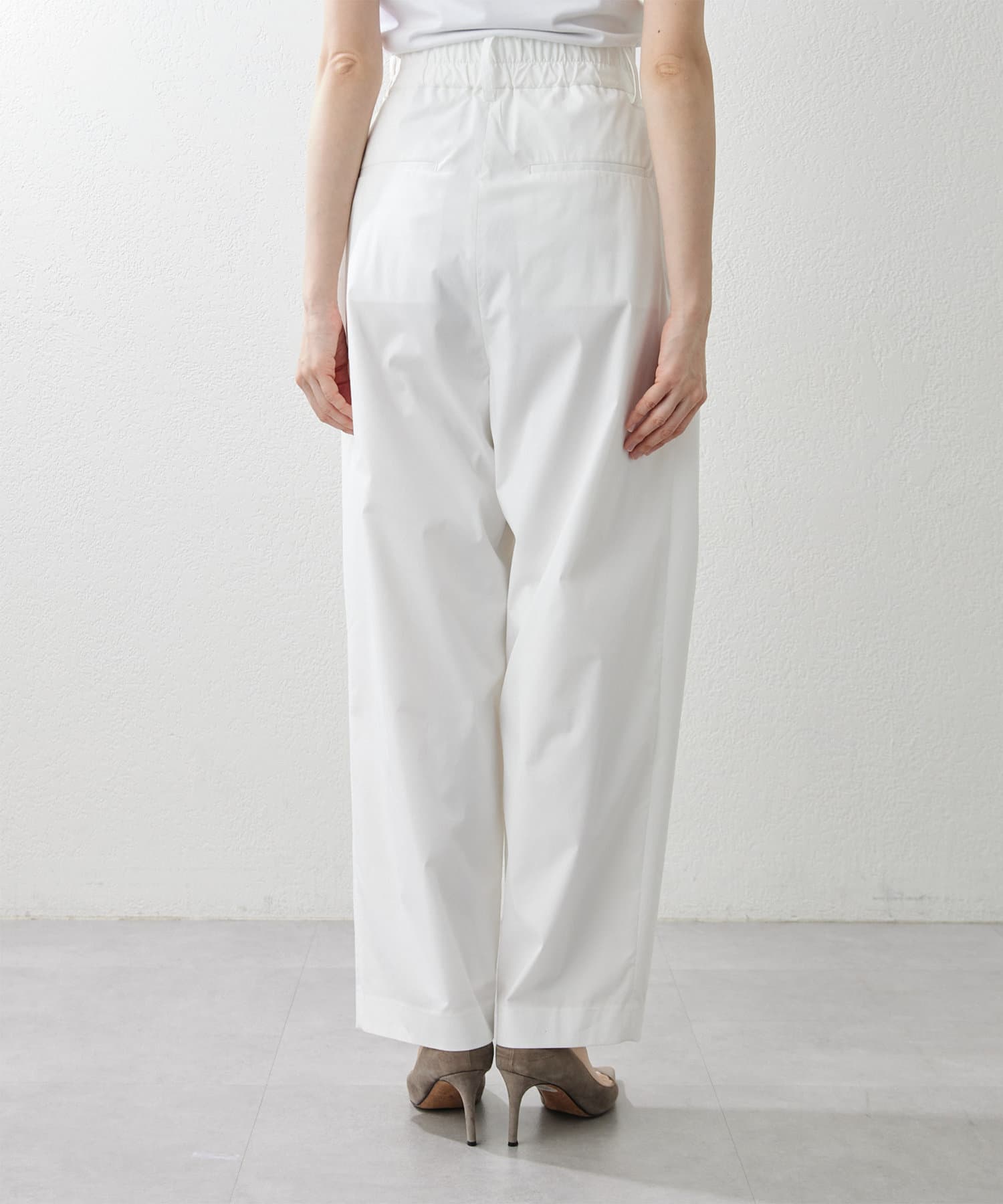 ■後ろウエストをゴム仕様にすることでイージーに着用でき、きれいめな印象をキープ。