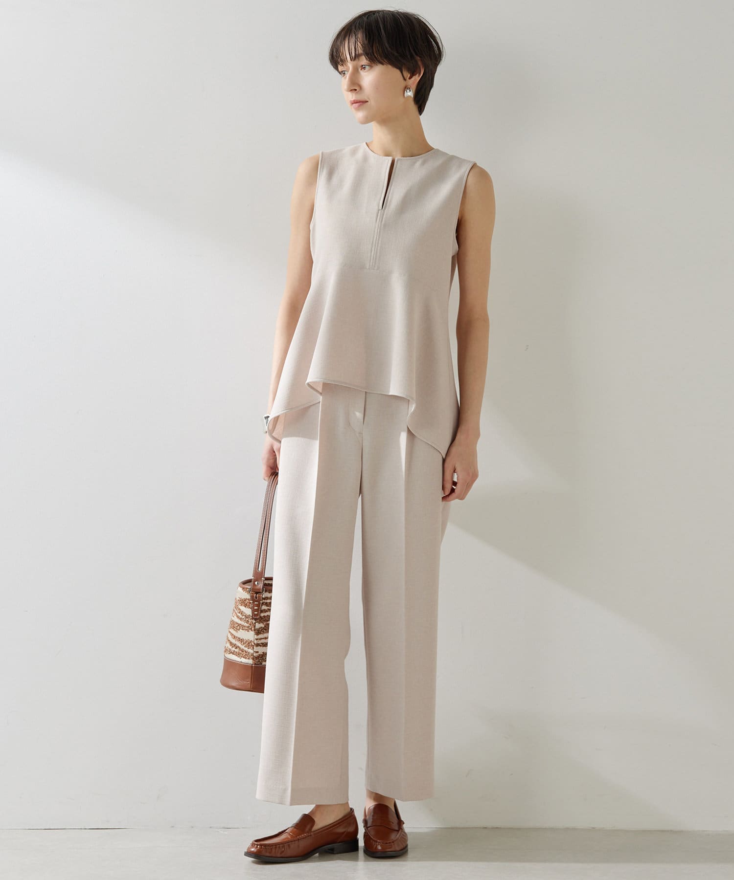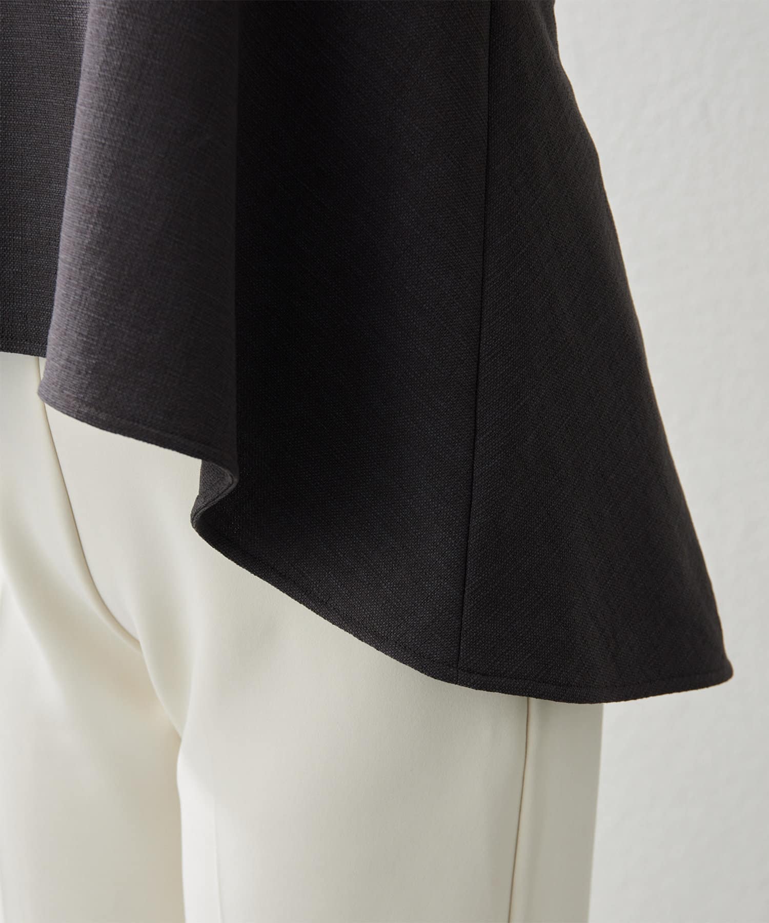 ■前後差のあるシルエットですっきりと見せ、よりスタイルアップした印象に。