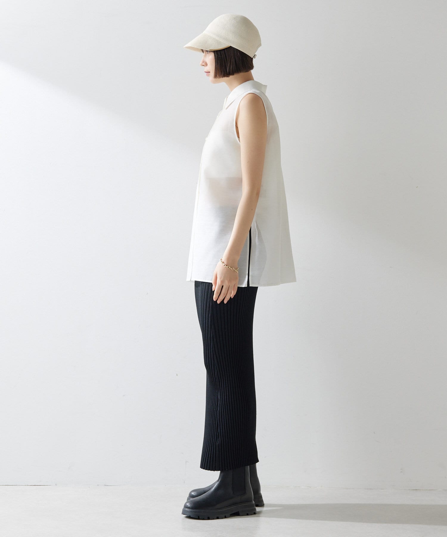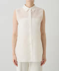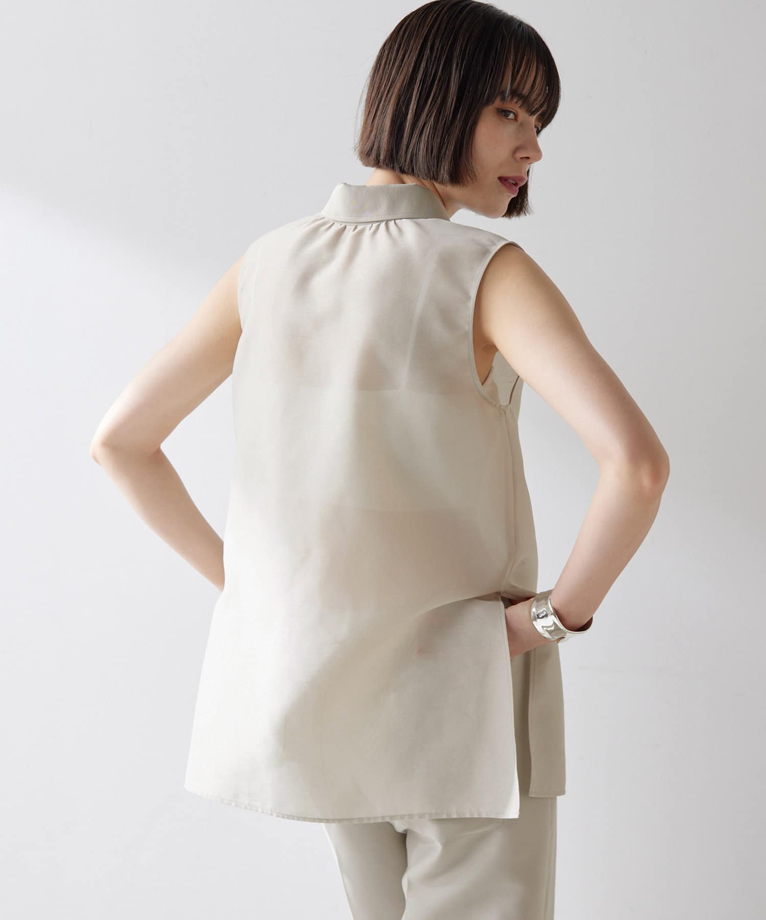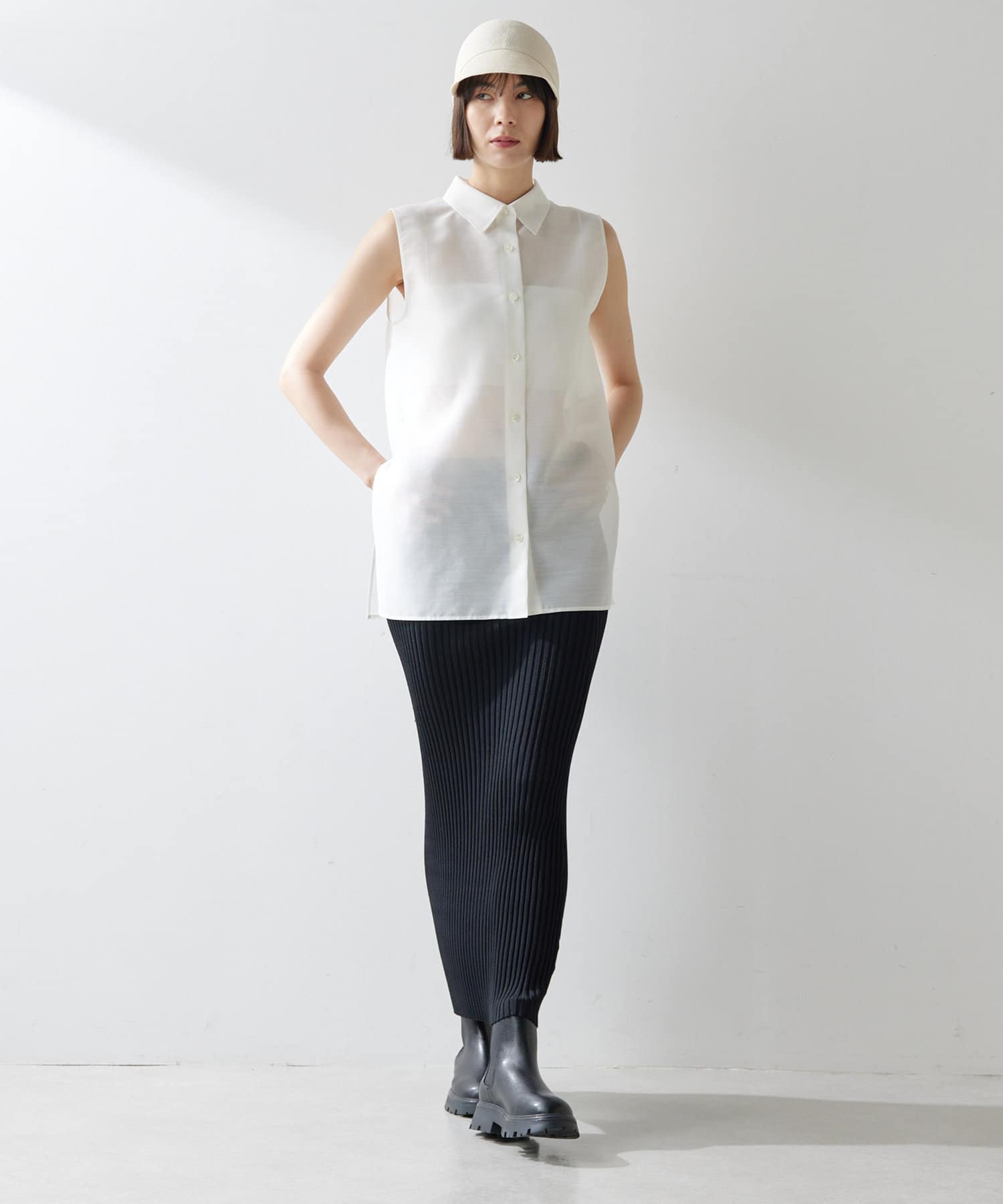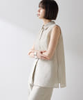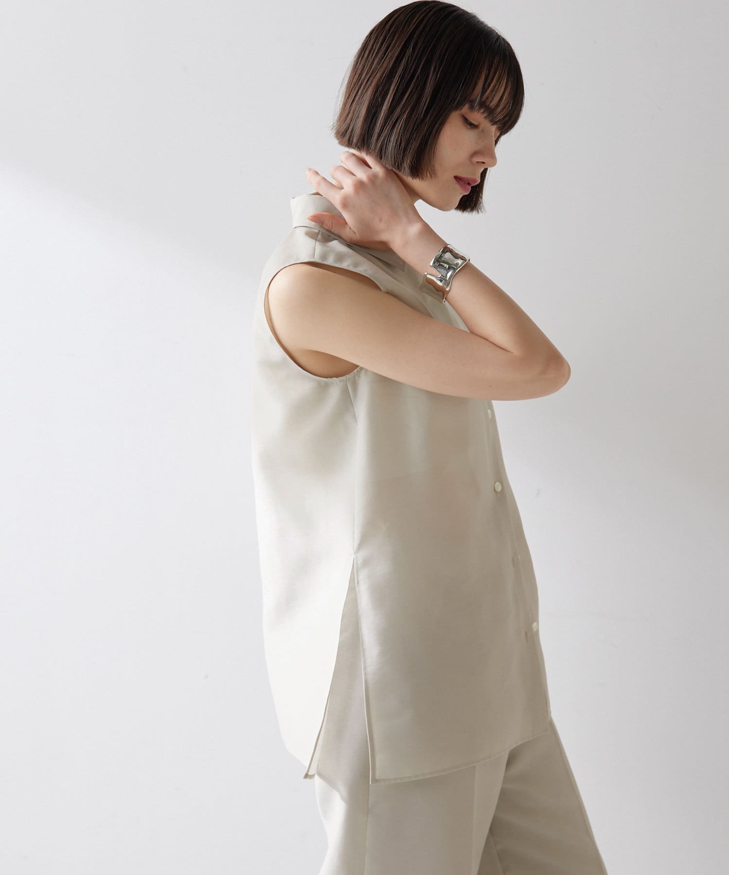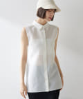 ■生地を活かしたミニマルなデザインのノースリーブシャツ。