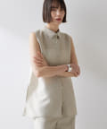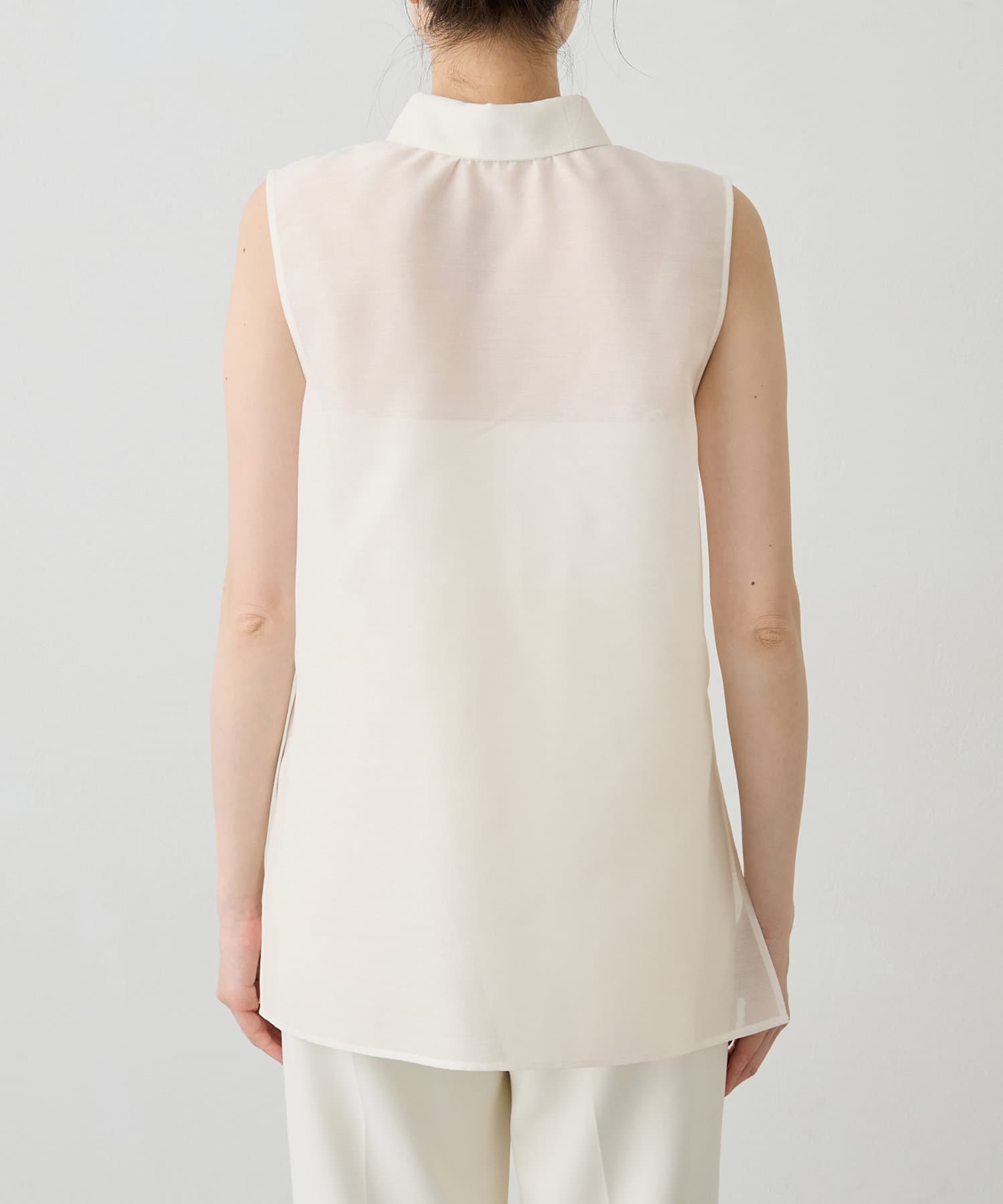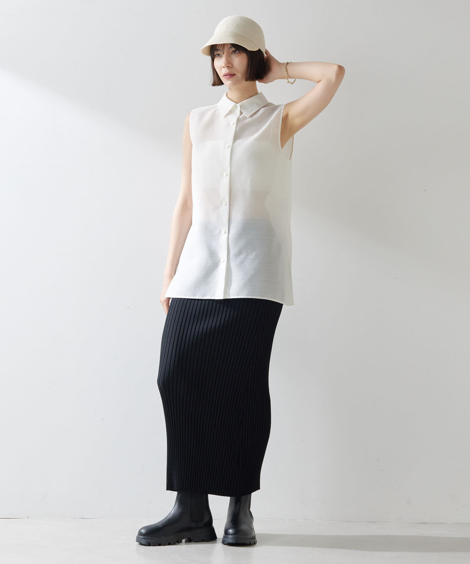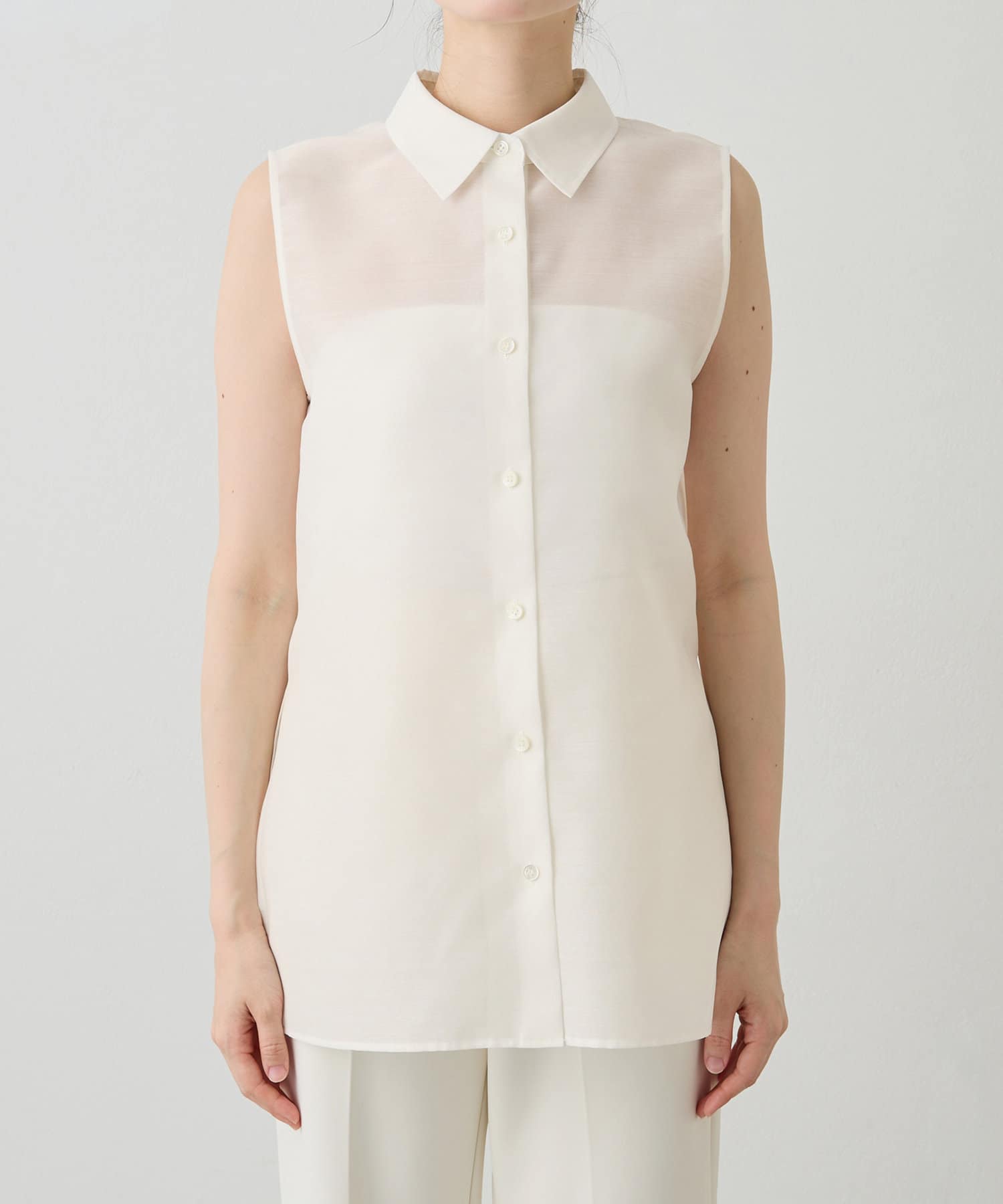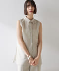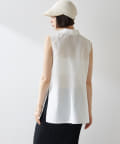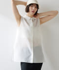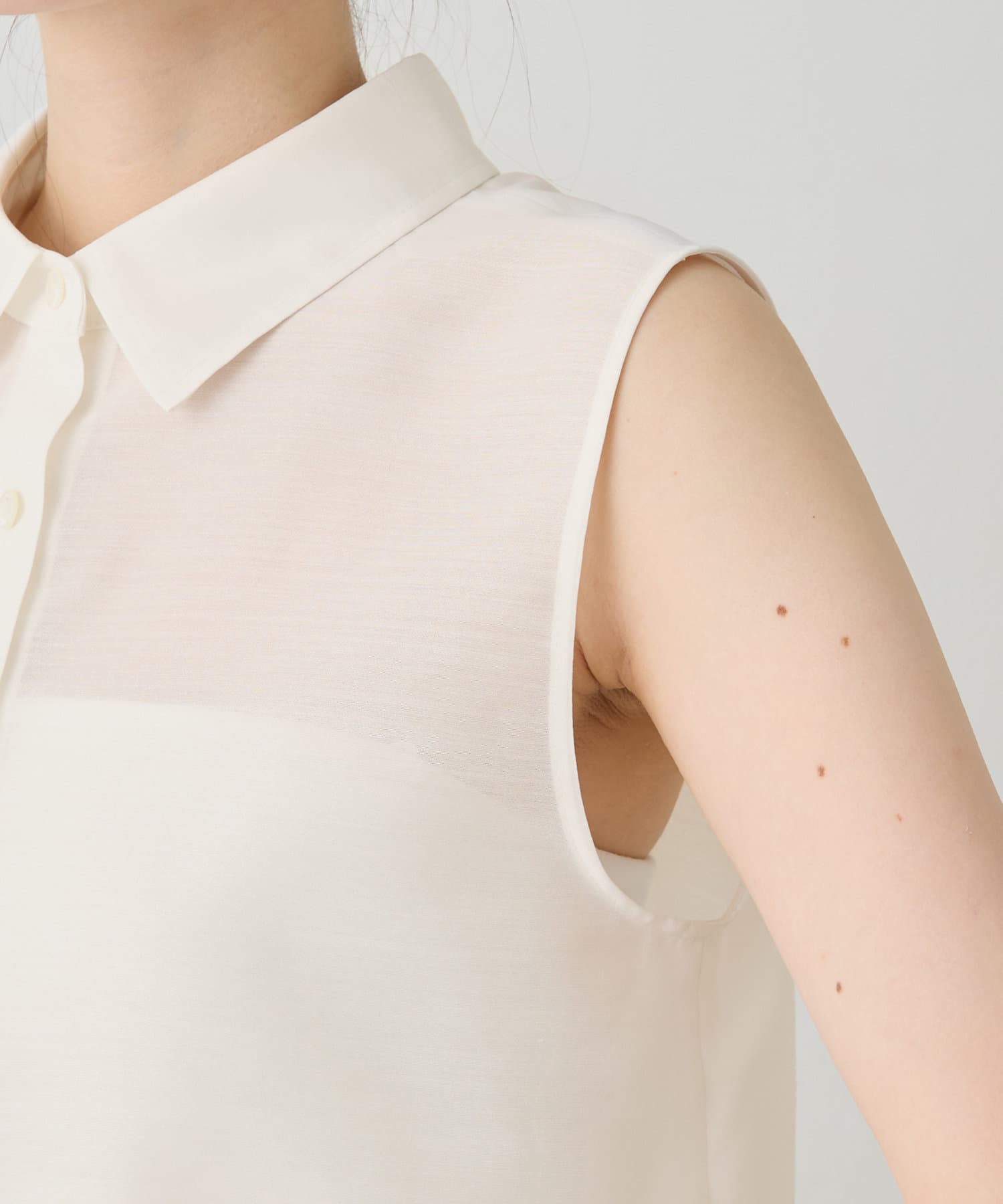 ■生地を活かしたミニマルなデザインのノースリーブシャツ。