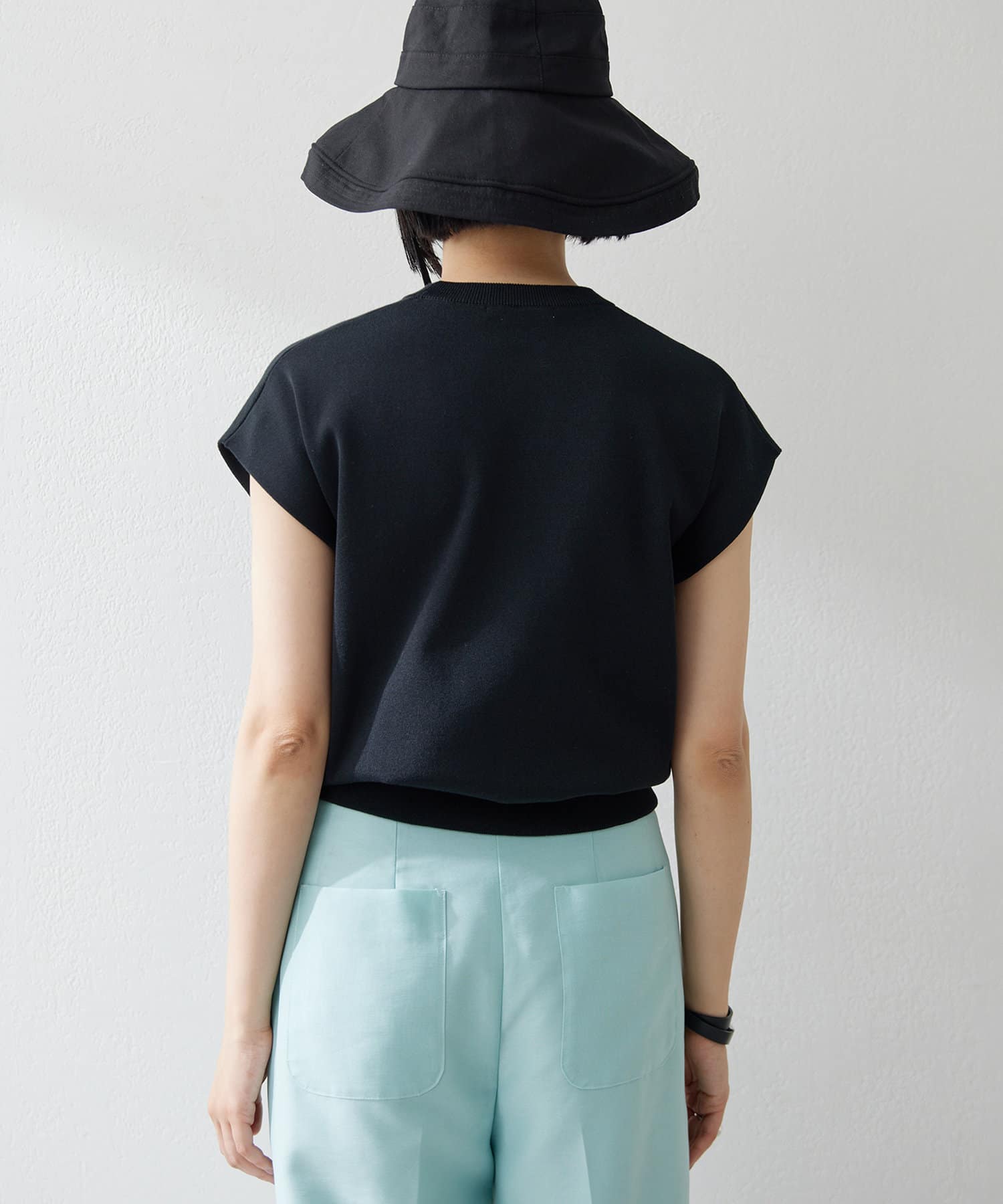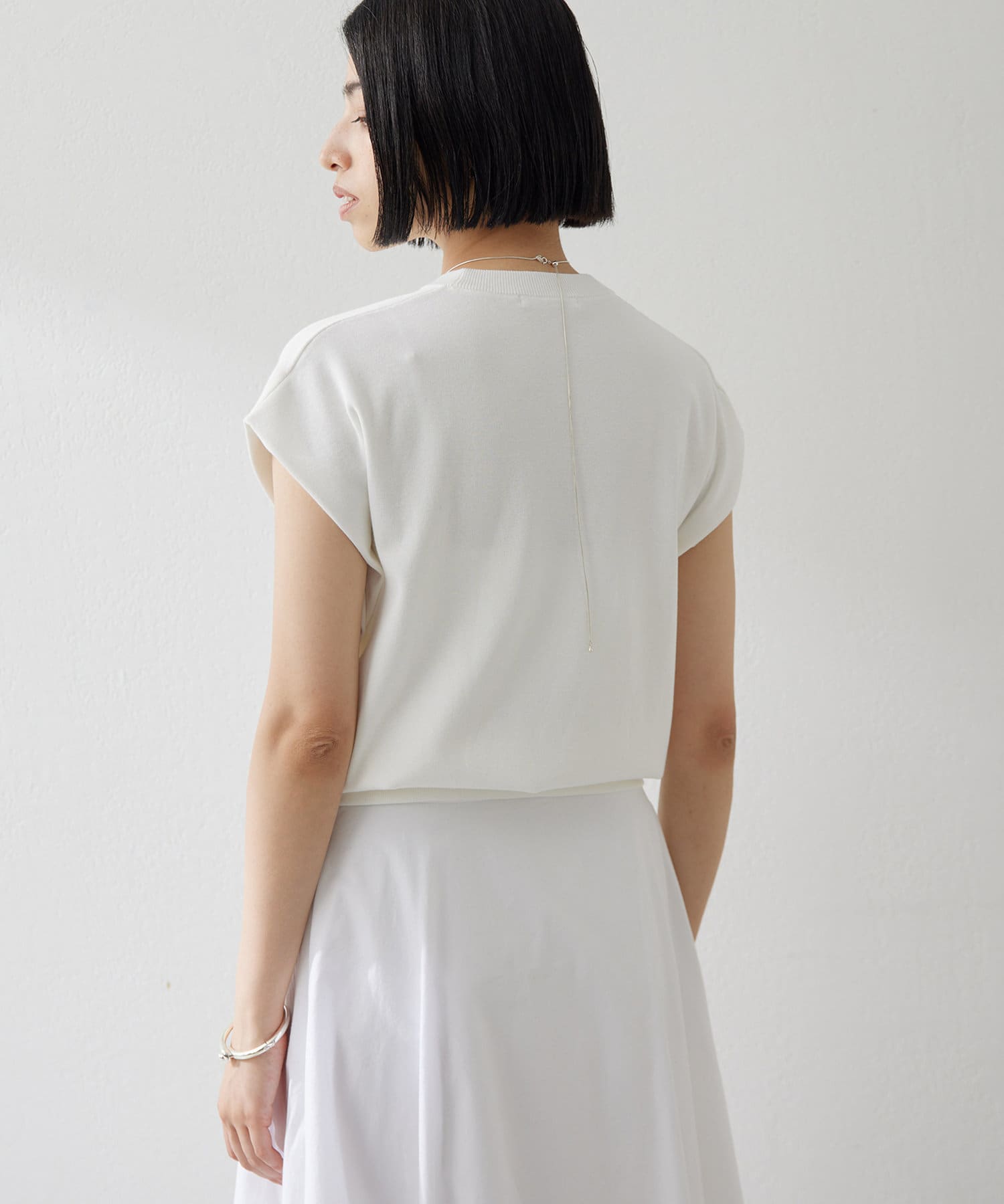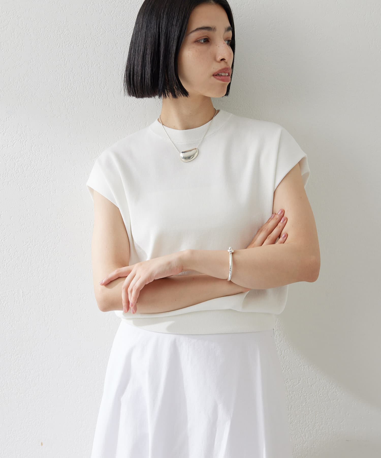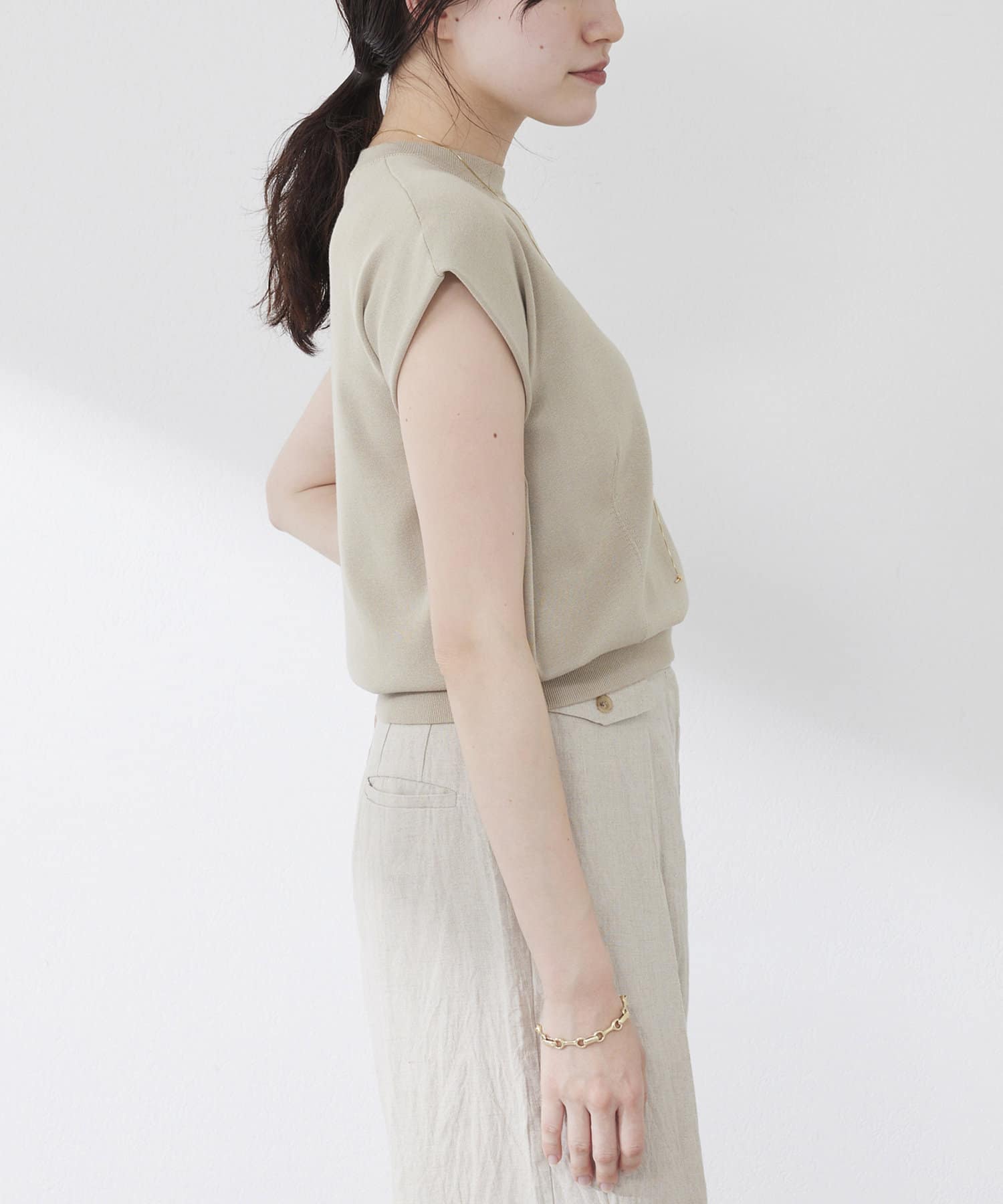■短めの着丈ですっきりと仕上げたノースリーブニットプルオーバー。
