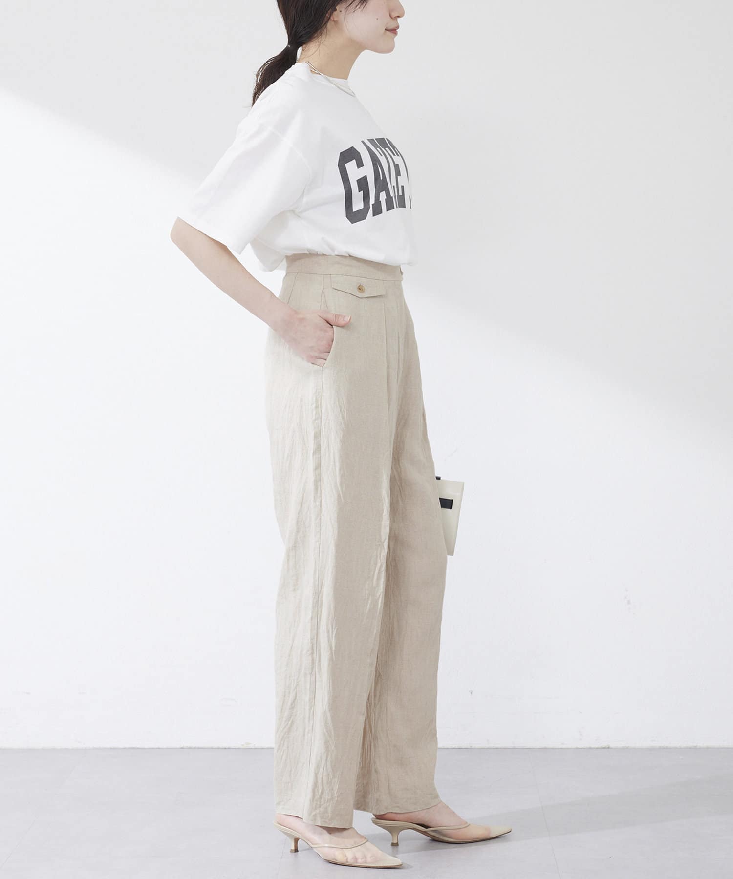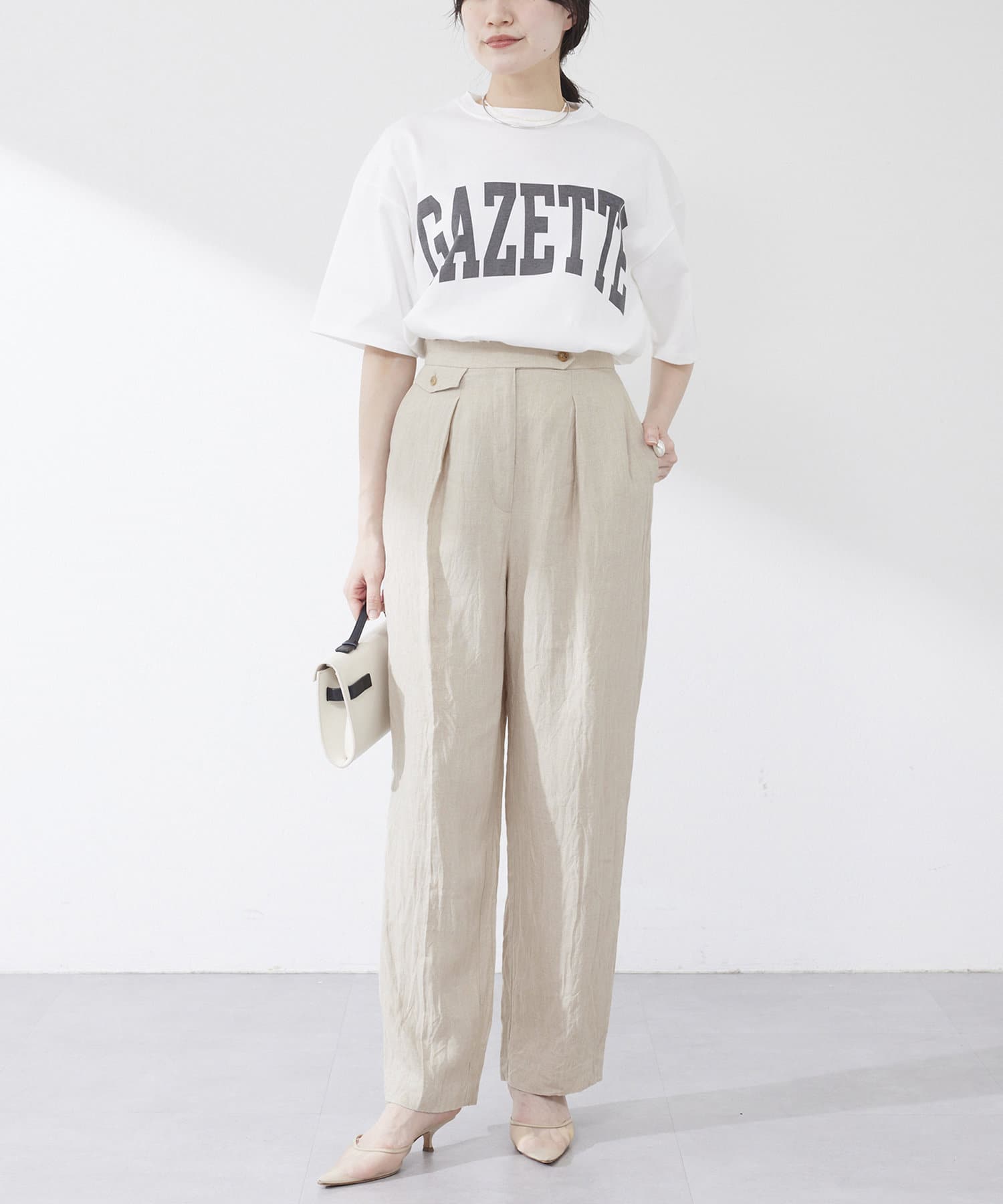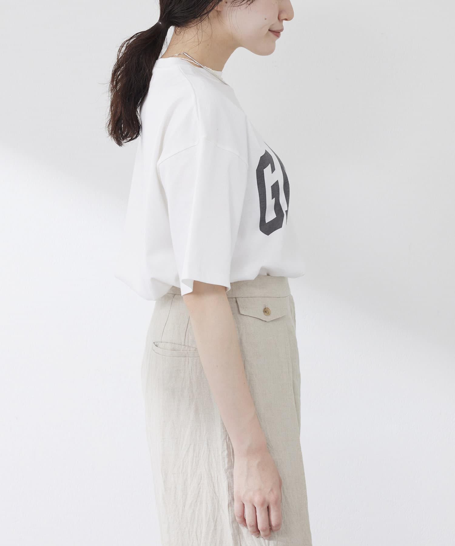 ■生地に馴染んだプリントでカジュアルな印象になりすぎず、大人のスタイリングにも取り入れやすいアイテム。