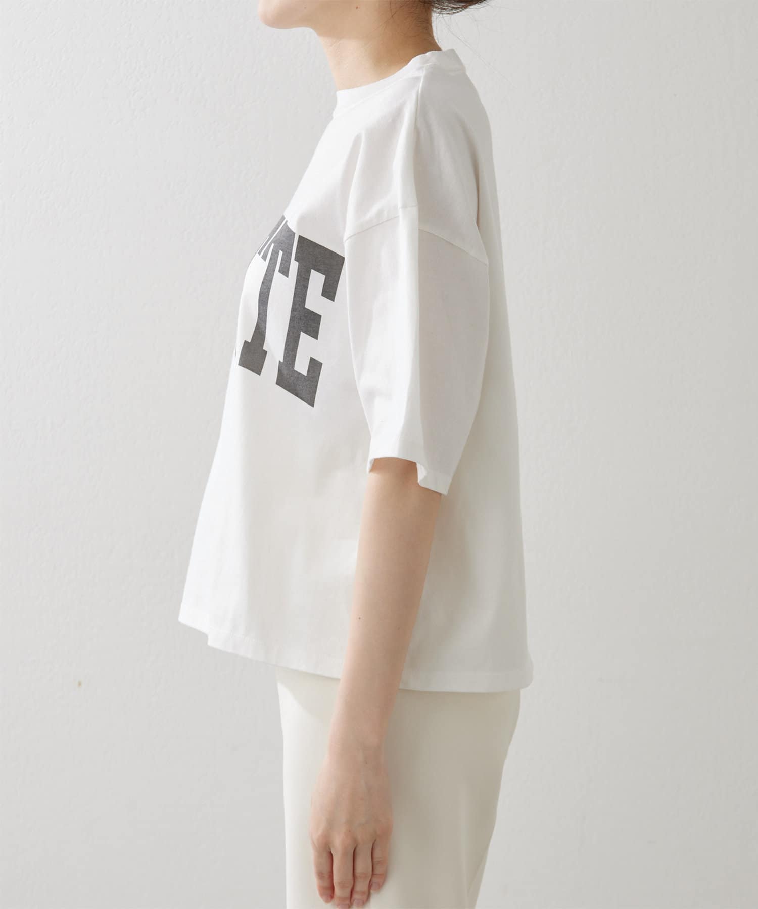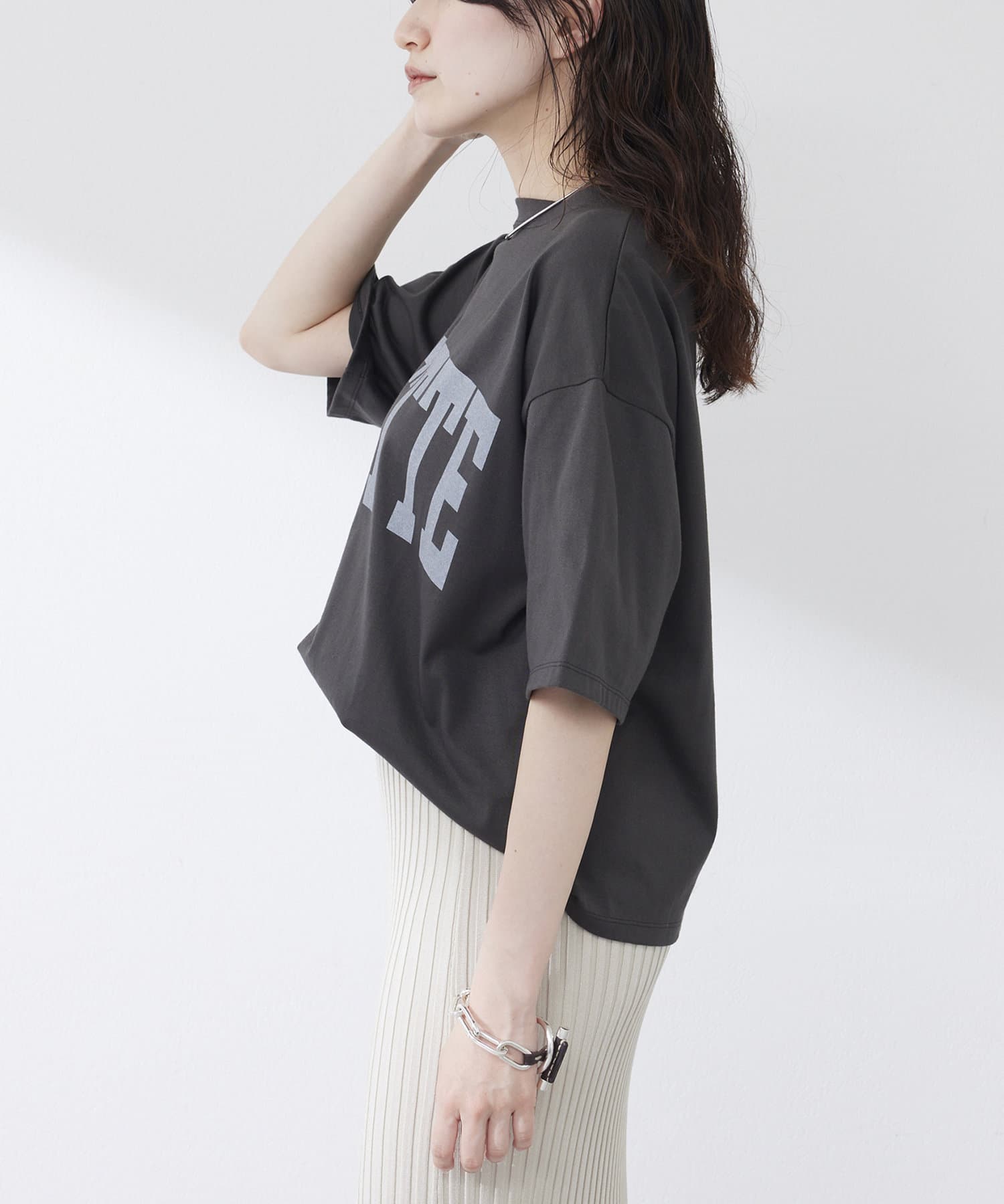 ■大きめのロゴプリントがアクセントになり、一枚で着てもサマになるのが◎。