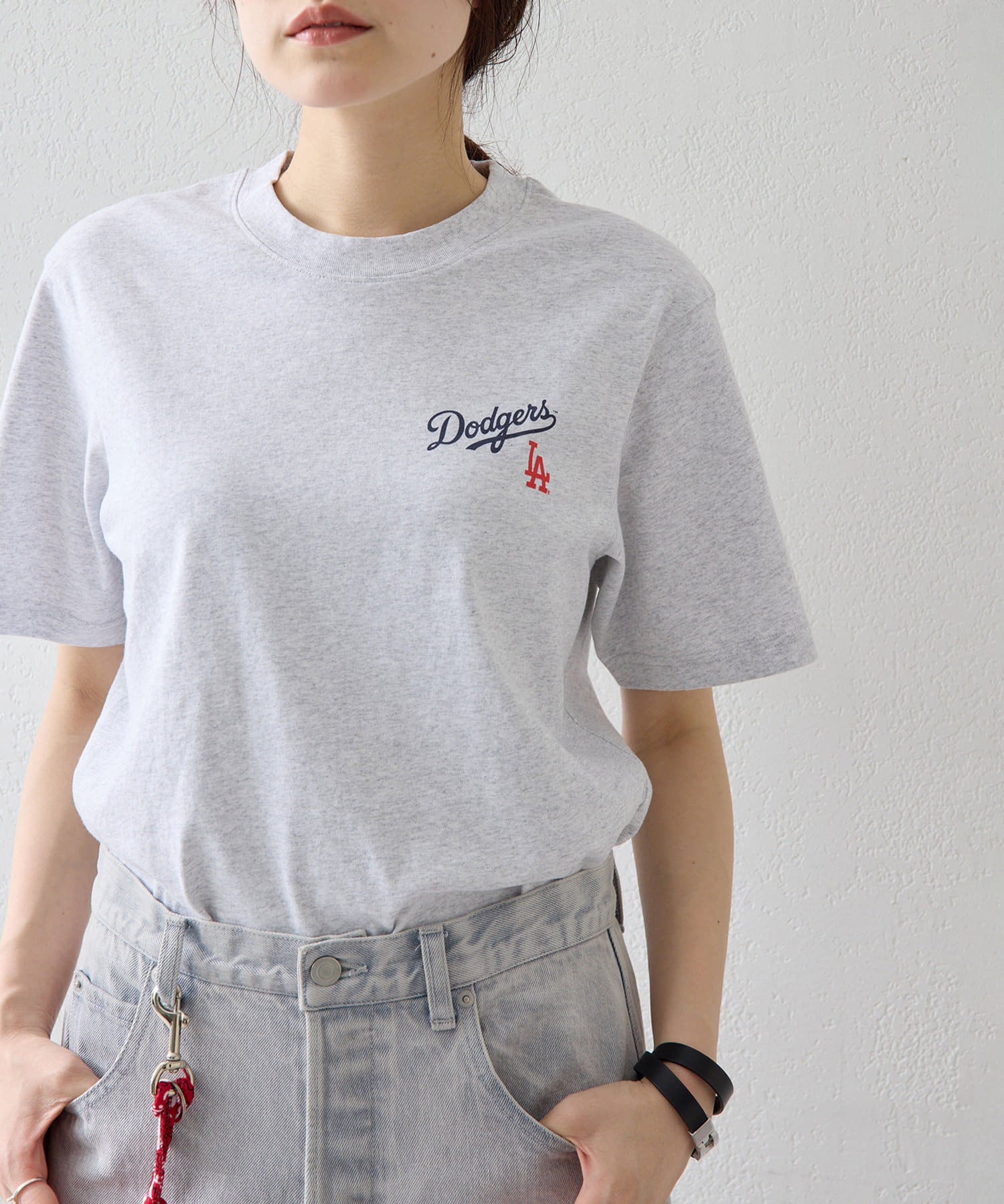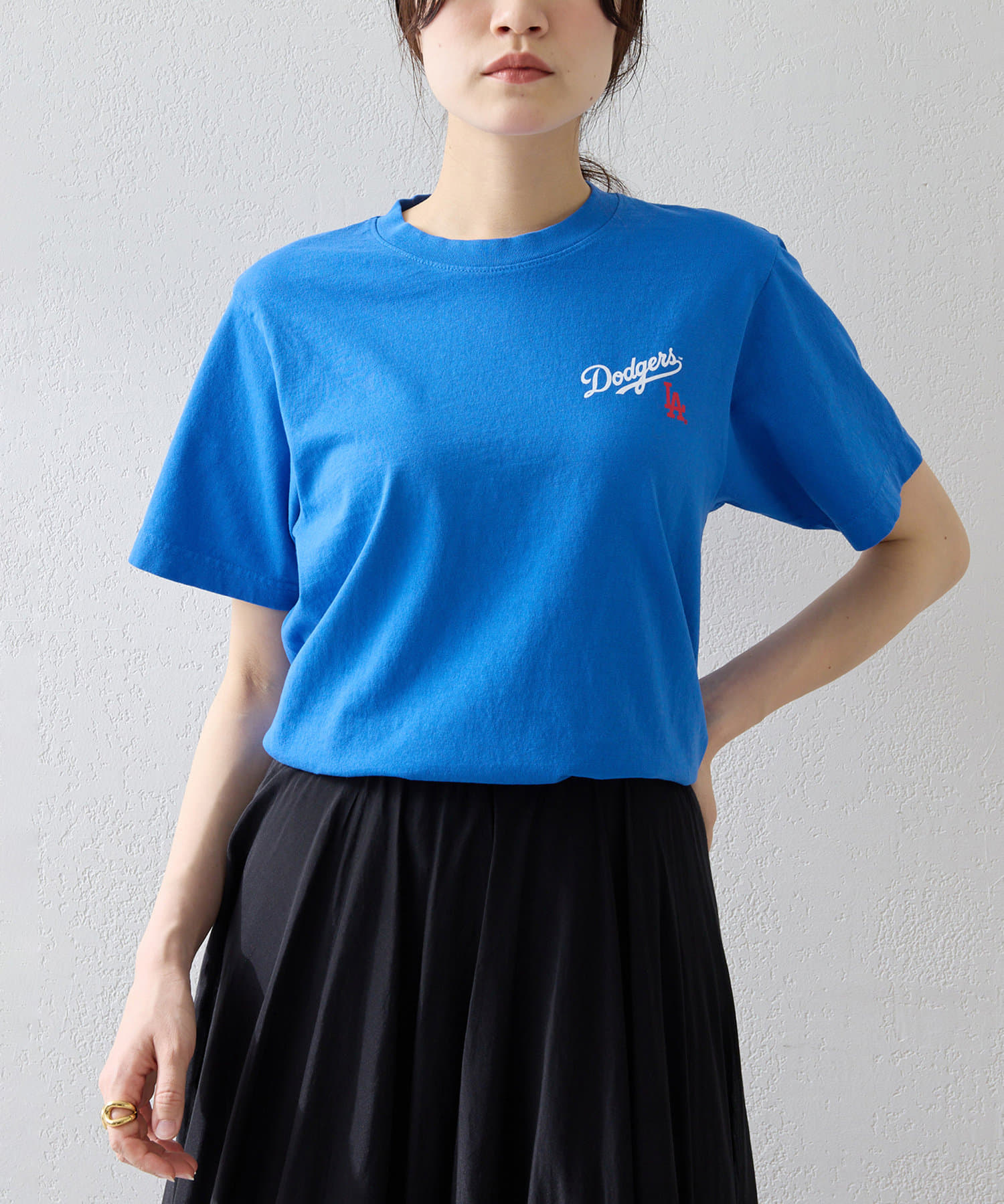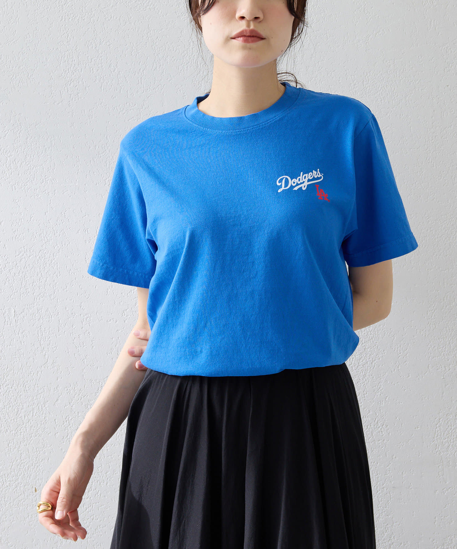 ■左胸にLAドジャースのチームロゴをあしらった半袖Tシャツ。
