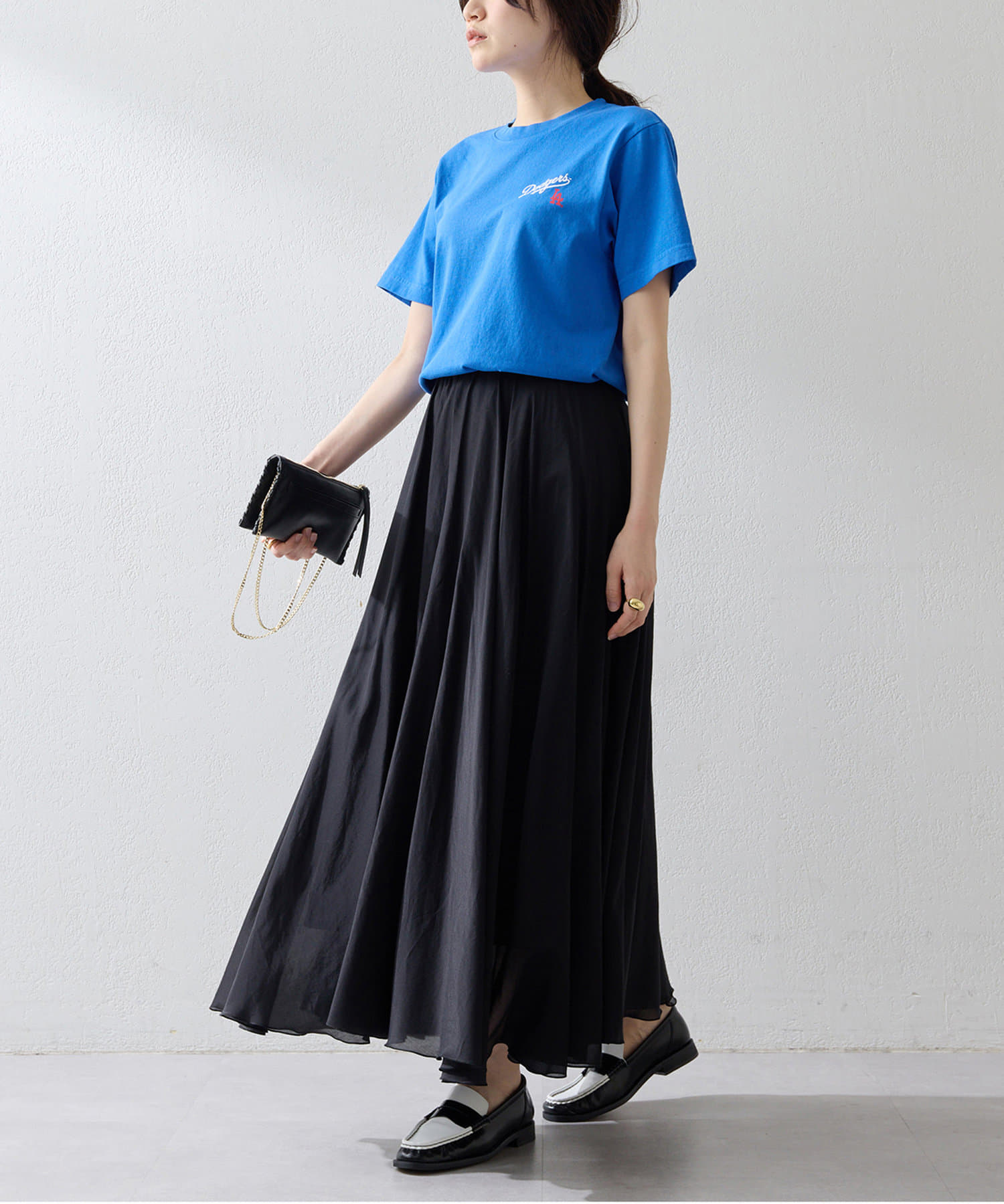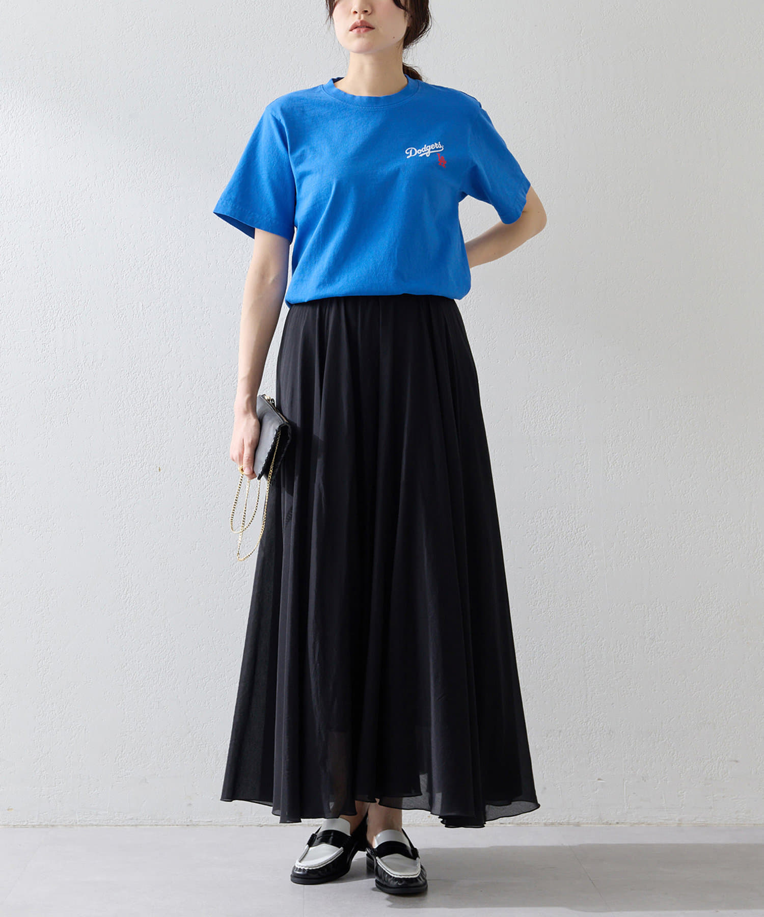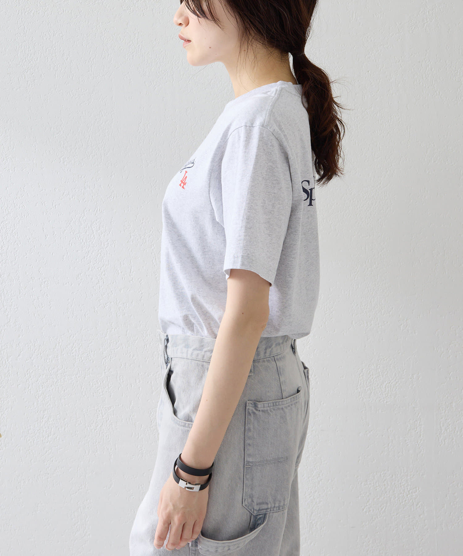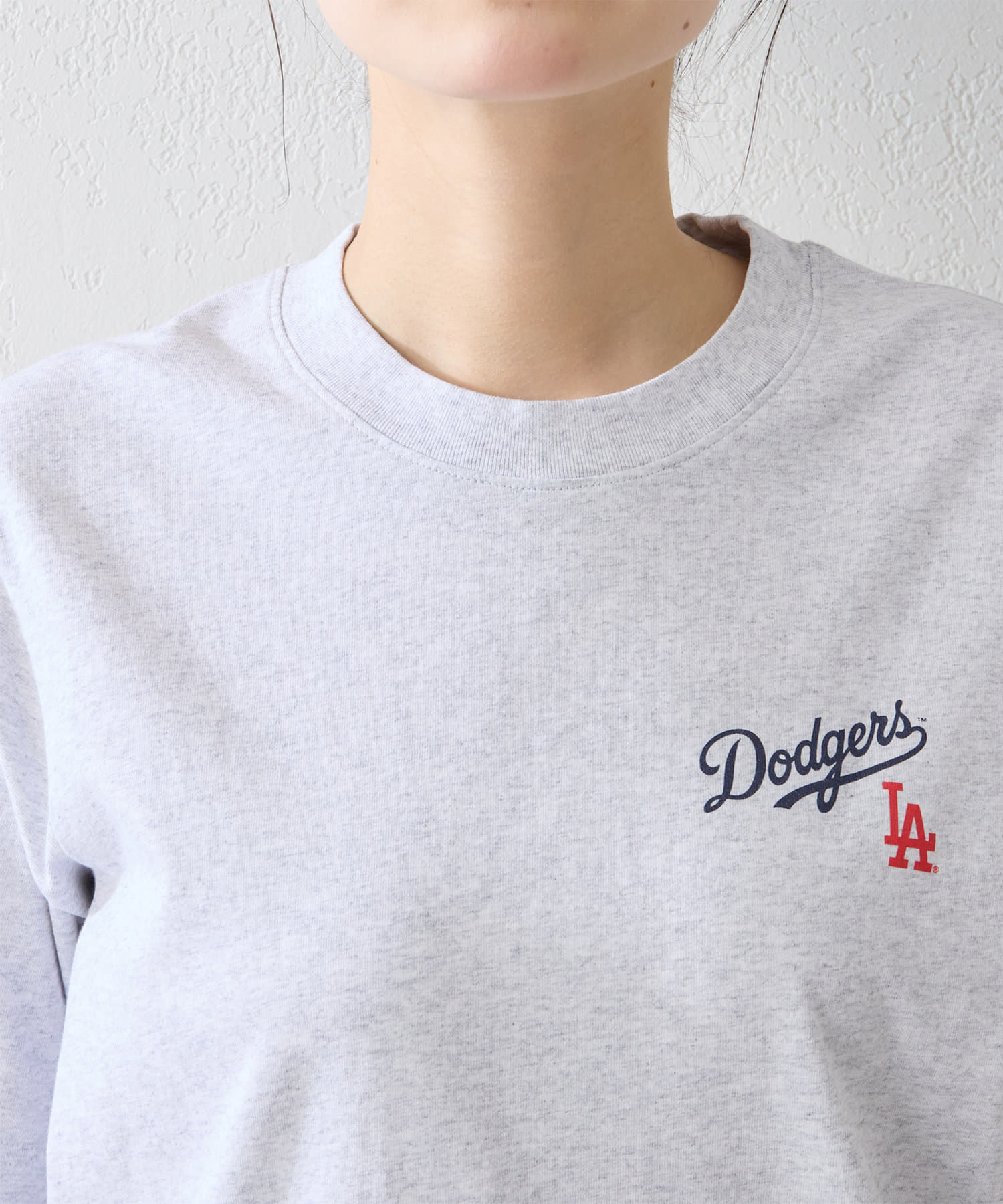 ■左胸にLAドジャースのチームロゴをあしらった半袖Tシャツ。