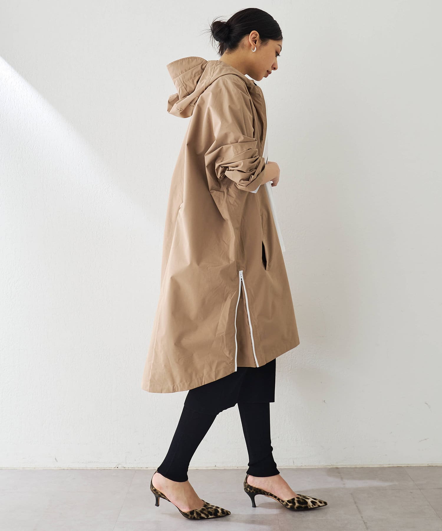 ベージュ:トレンチ感覚できれいめに着こなせるベージュ。