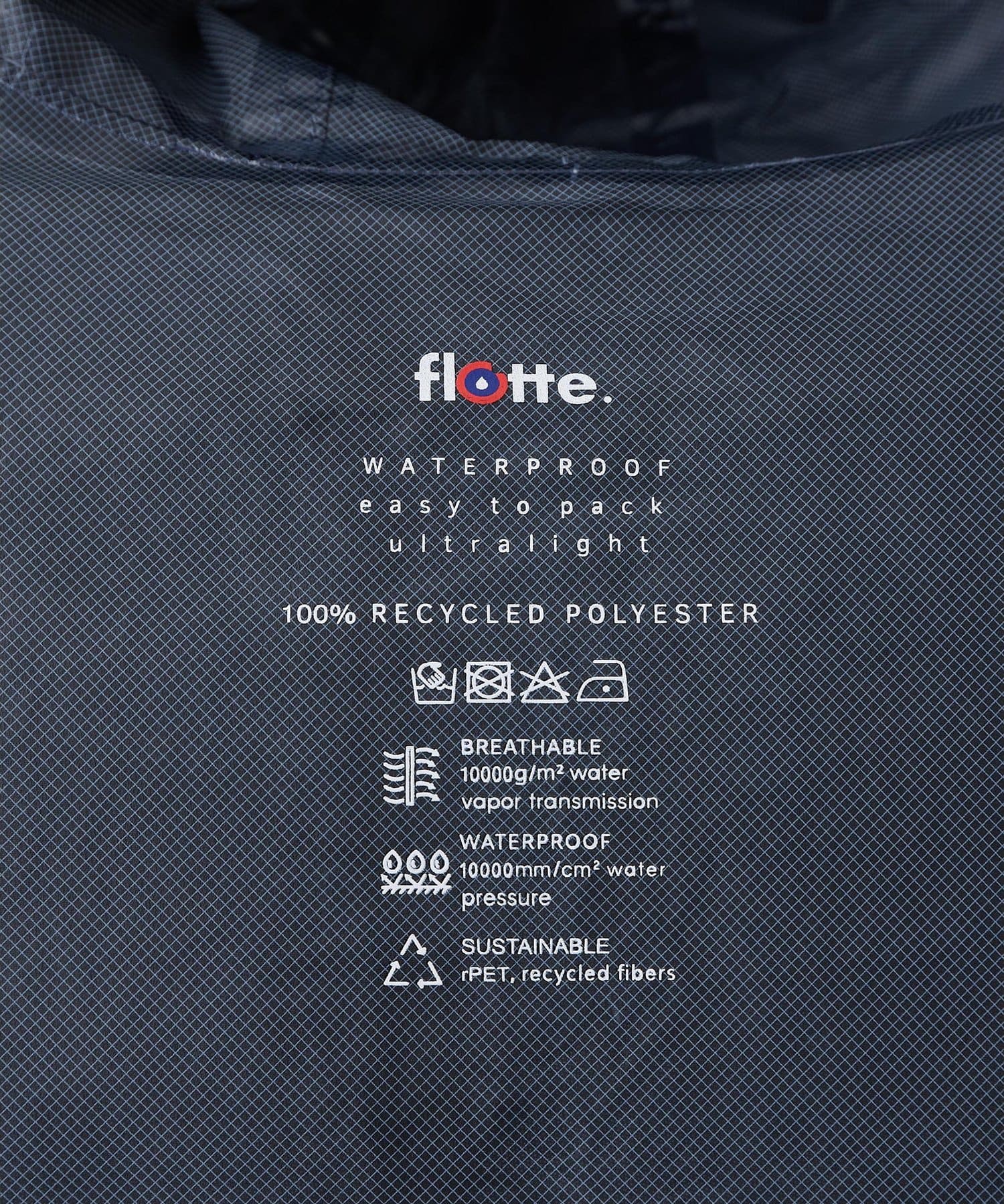 環境に優しくカラフルでミックスされたレインウェアを通じて、「雨の日を楽しむ-笑顔で幸せに-」をコンセプトに作られたフランスブランド。「FLOTTE」はフランス語で水を意味します。環境に優しいサスティナブルに力を入れ、デザイン性と機能性を兼ね備えたアイテムを展開。パッカブルウェアとして背中部分のポケット口に収納してバッグとして持ち歩くことができるポケッタブル仕様。