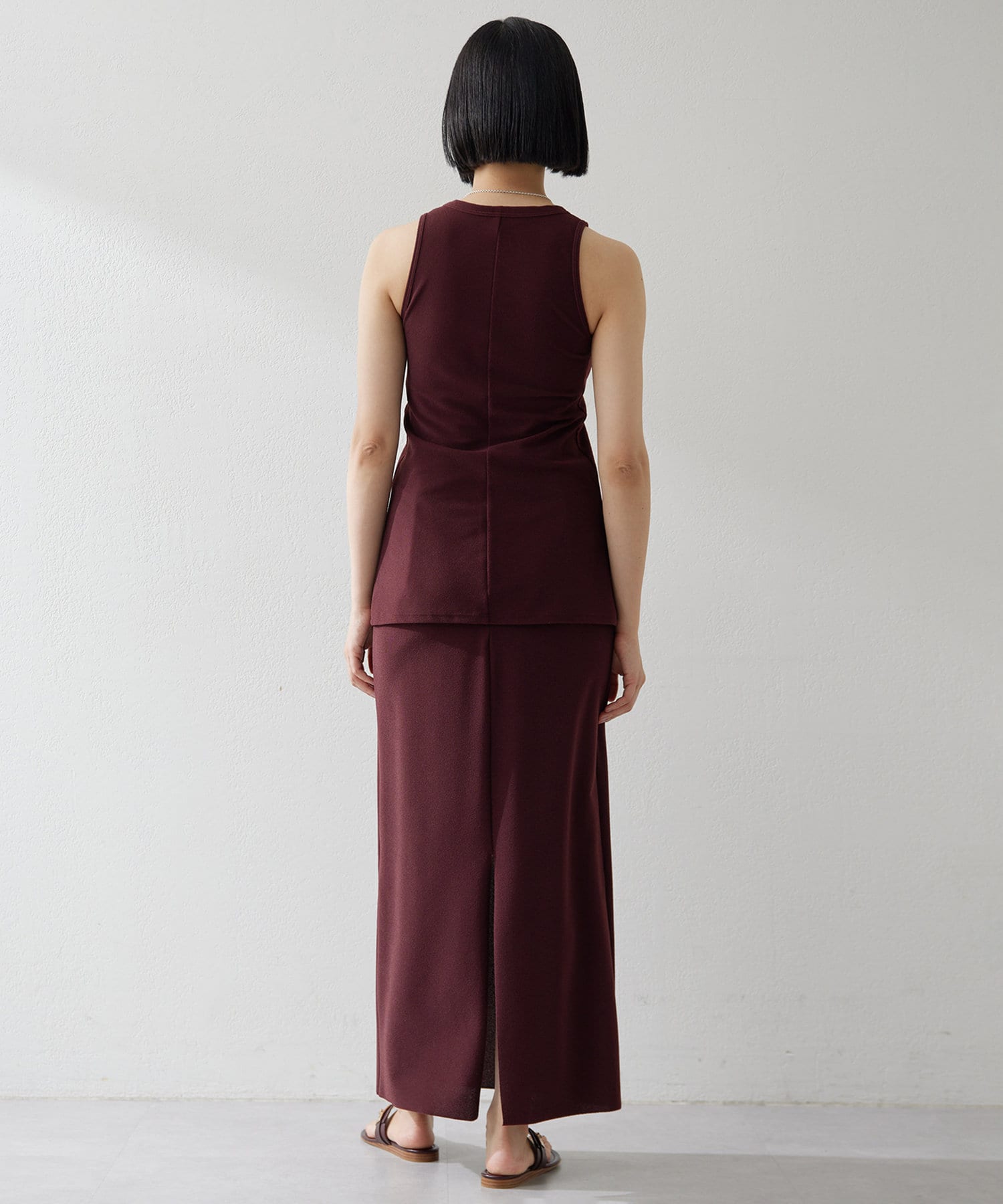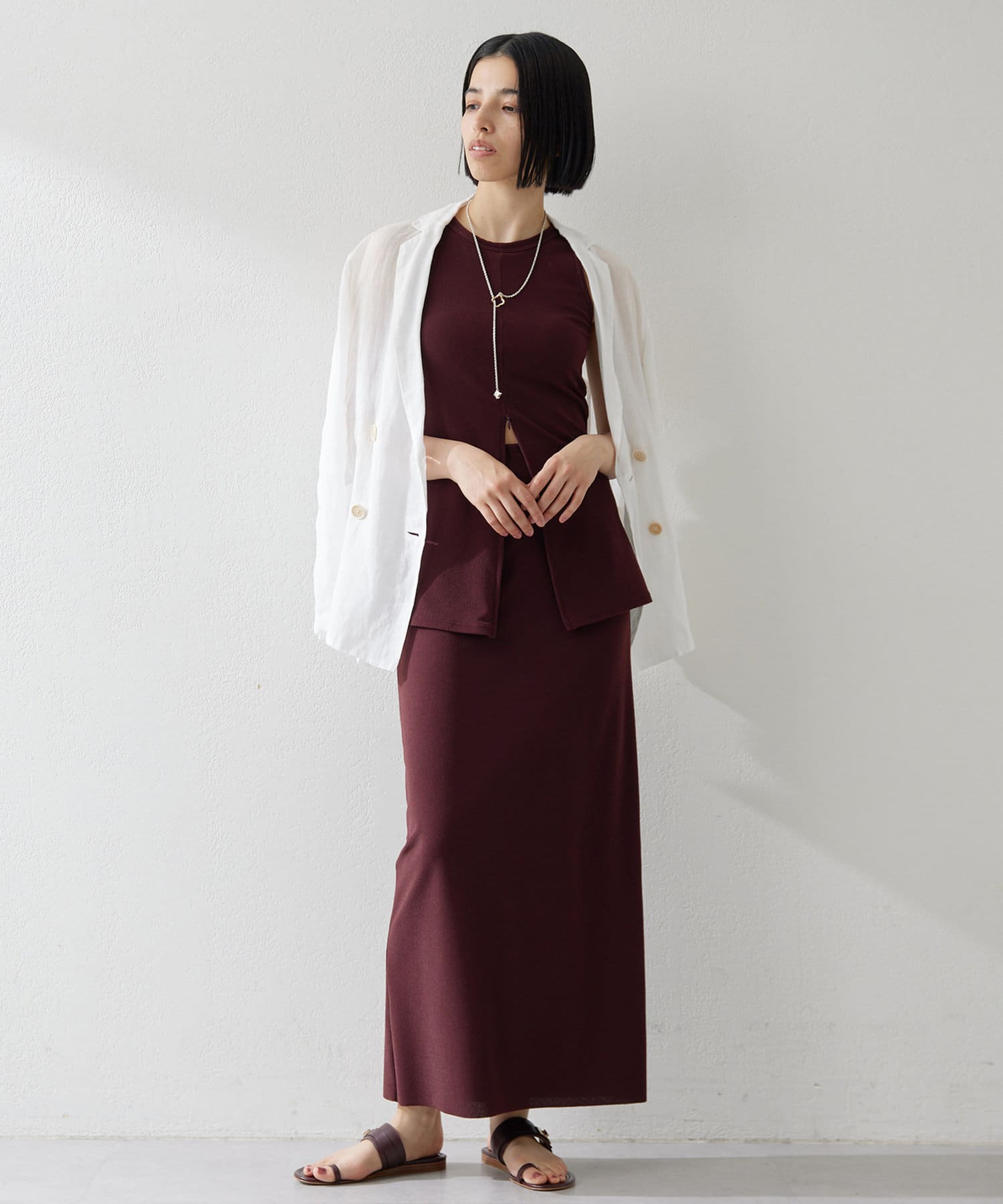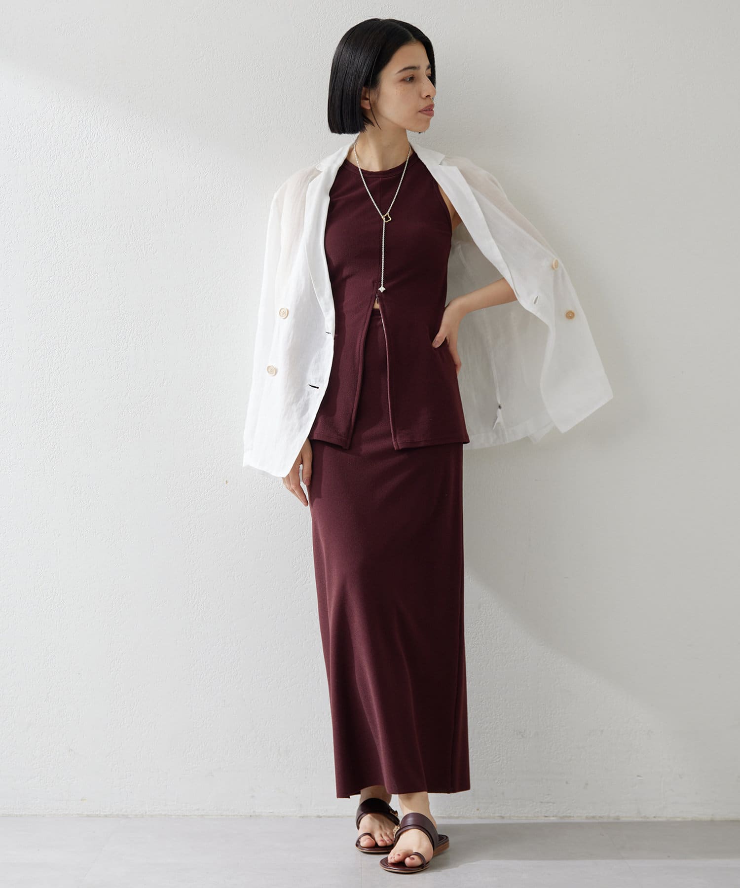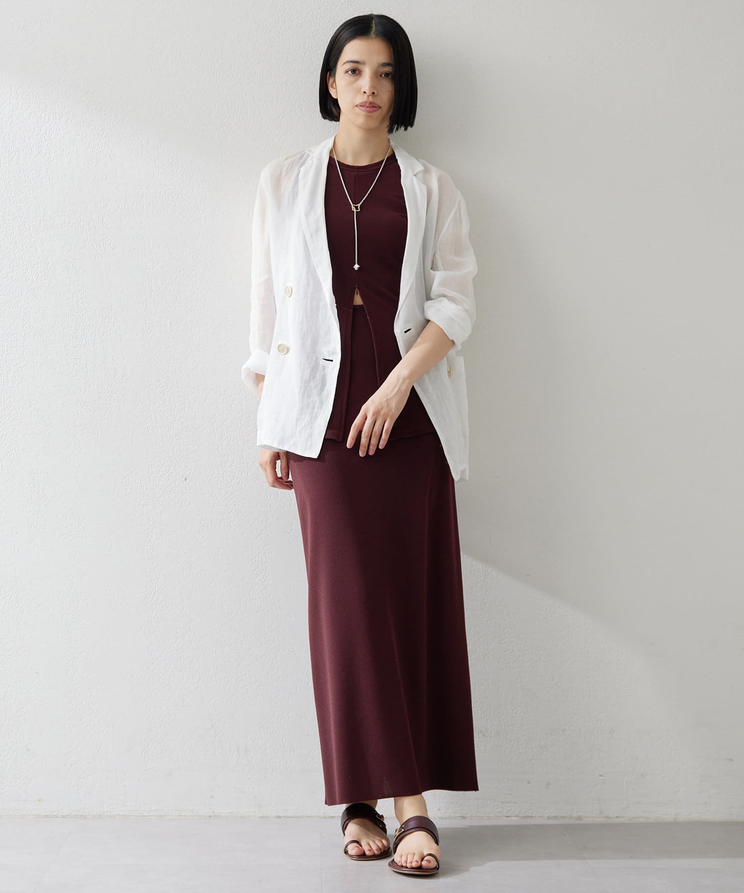 ■深めのバックスリットが程よい抜け感と足捌きの良さをプラスする一枚。