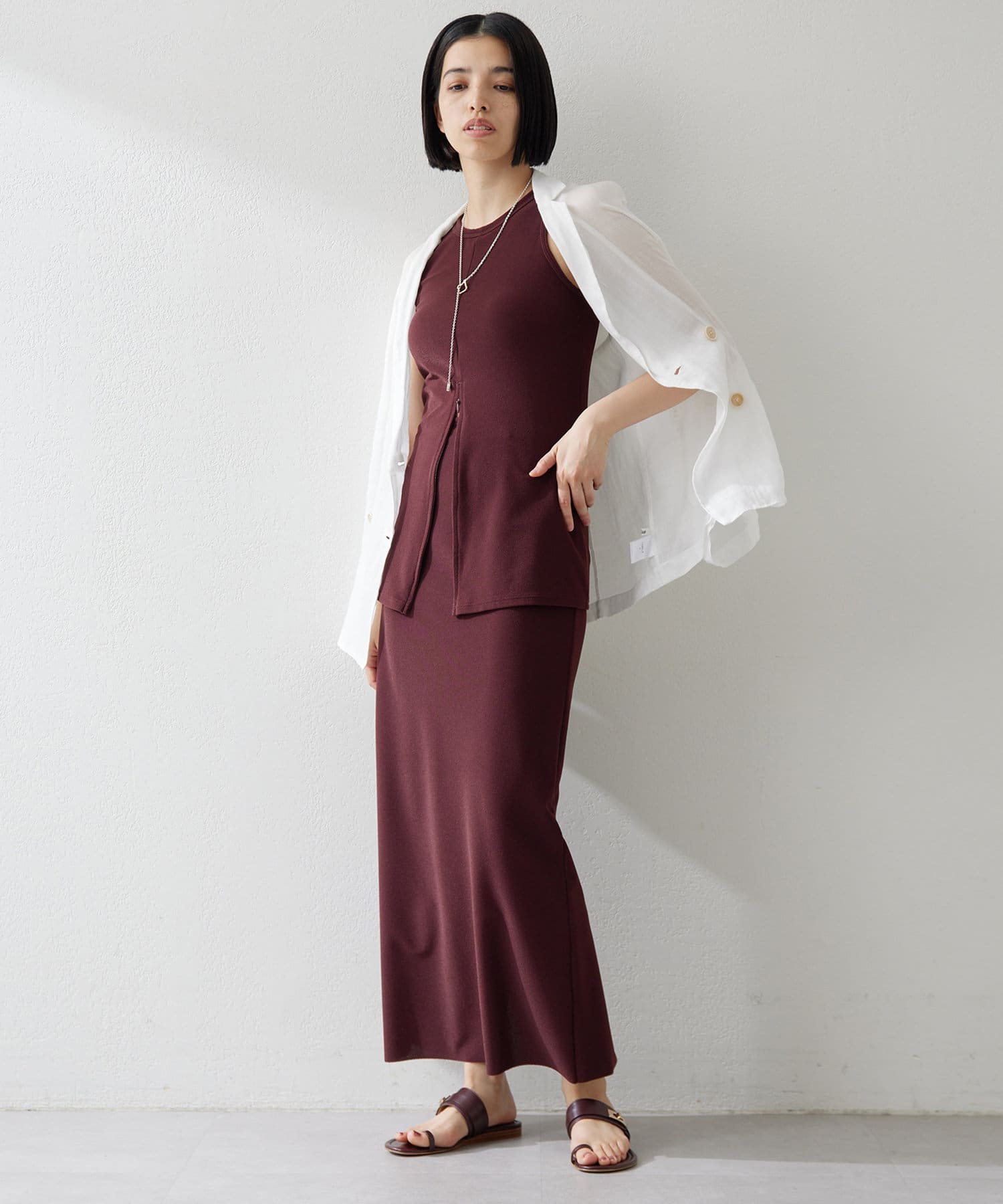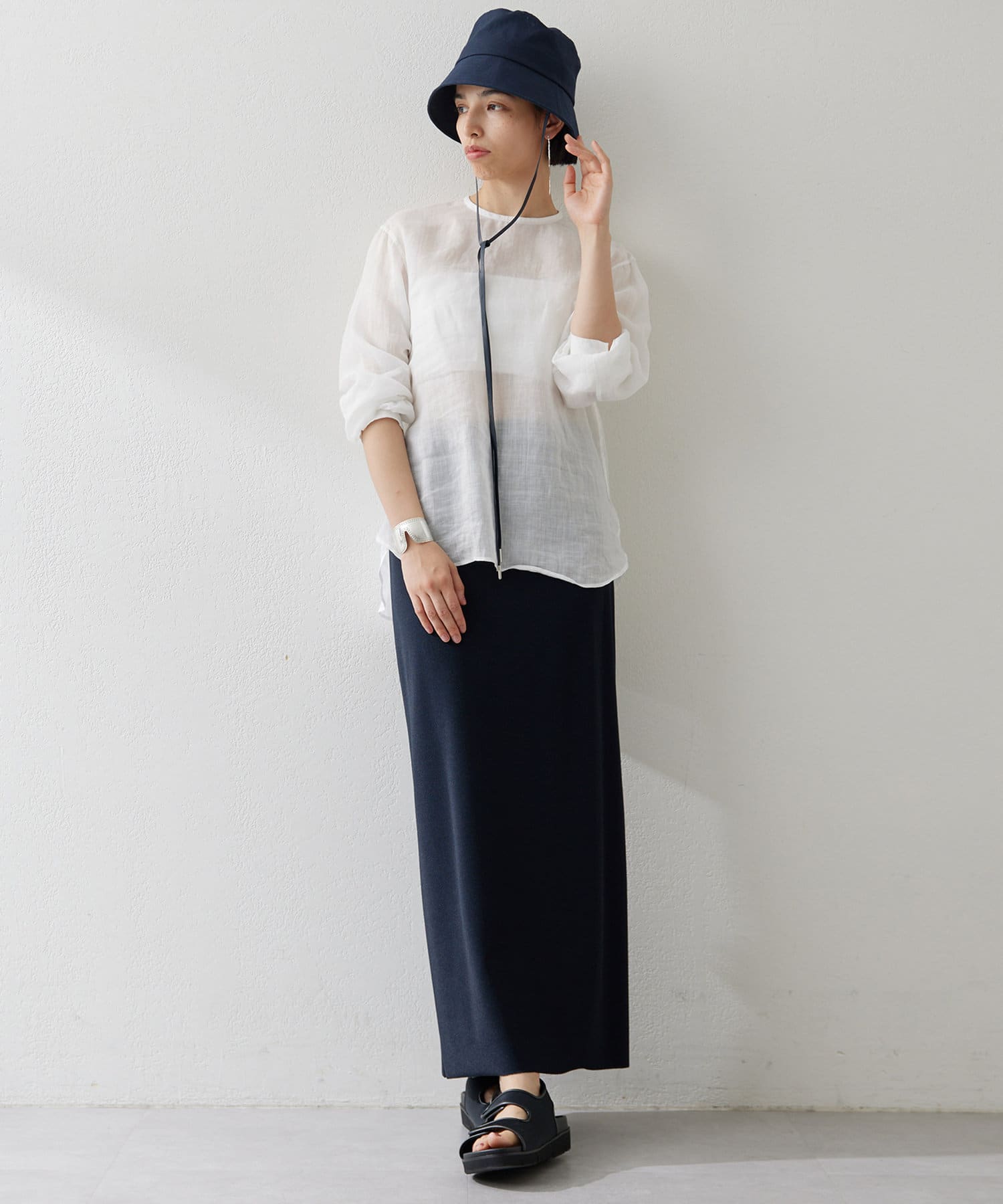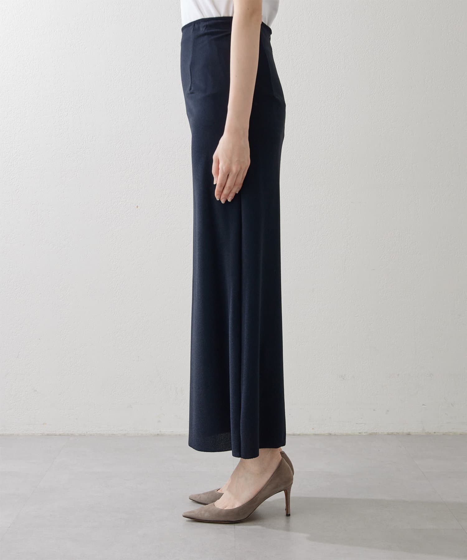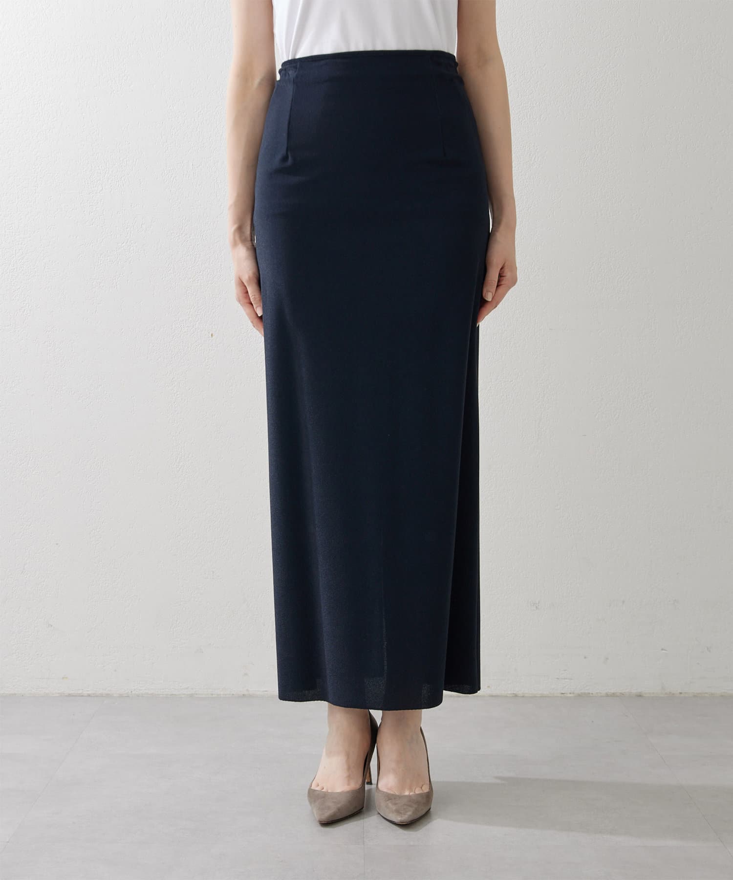 ■すとんと落ちるロング丈ですっきりと見せ、ハイウエストでスタイルアップ効果も◎。