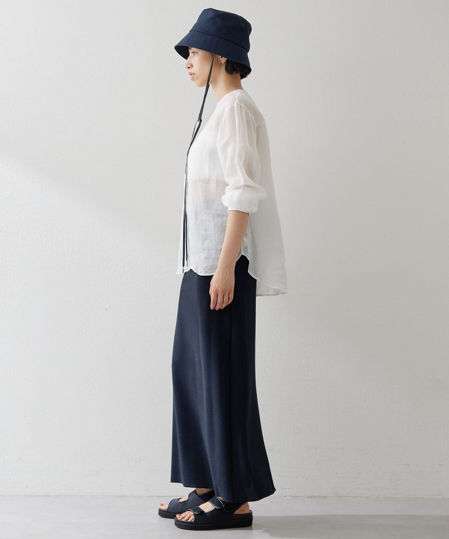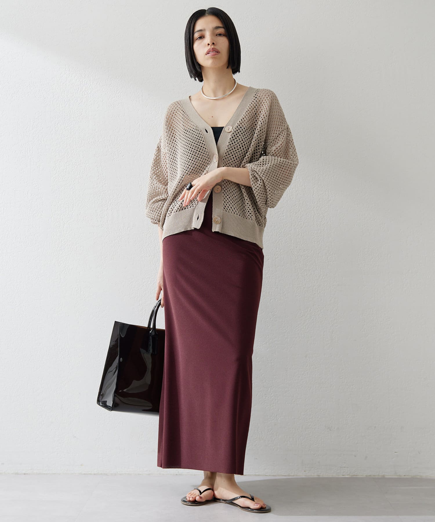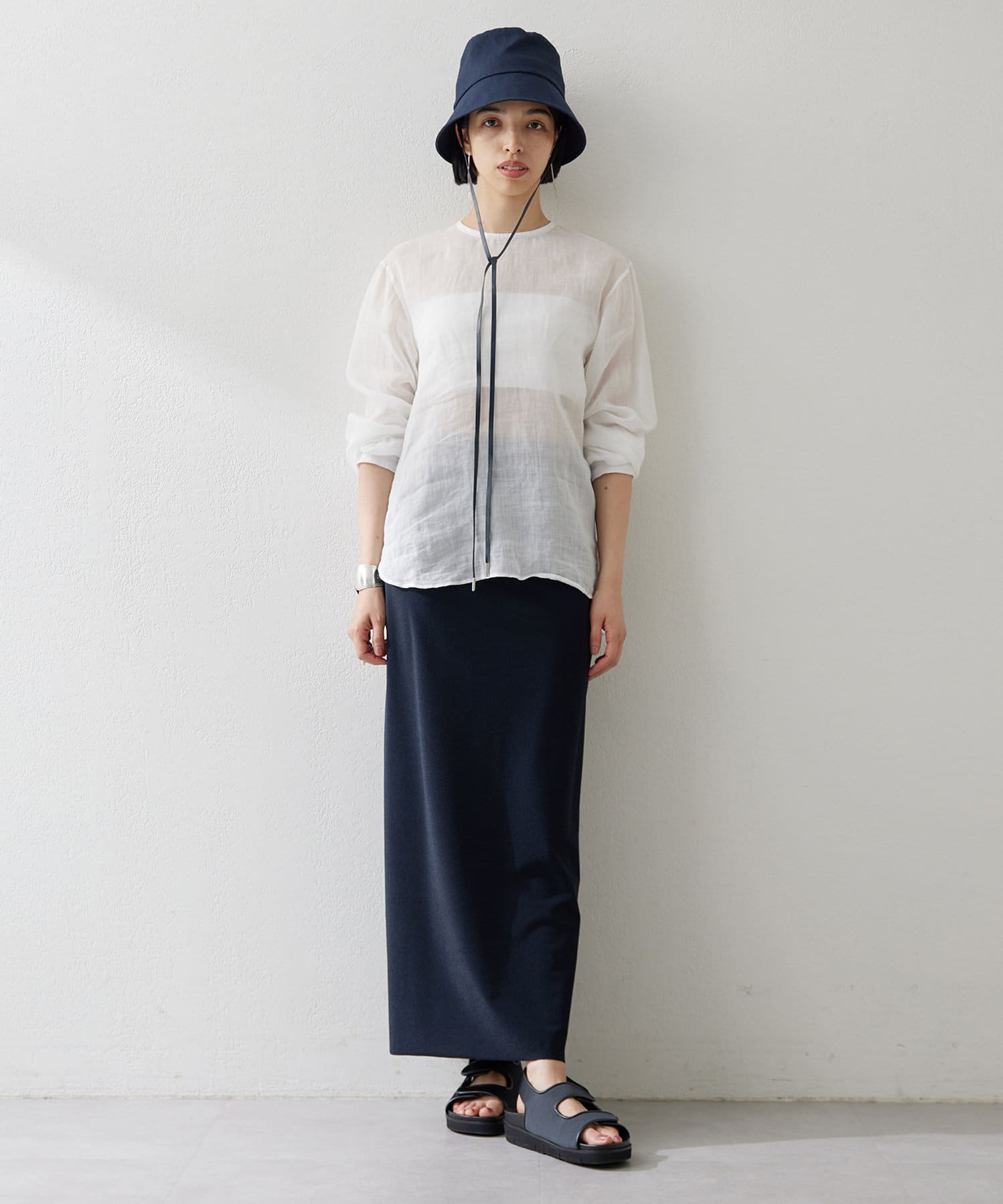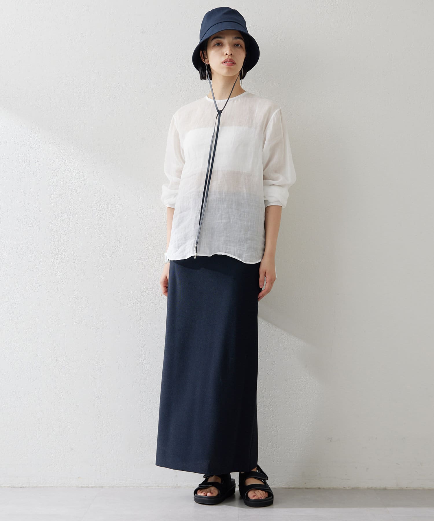 ■すとんと落ちるロング丈ですっきりと見せ、ハイウエストでスタイルアップ効果も◎。