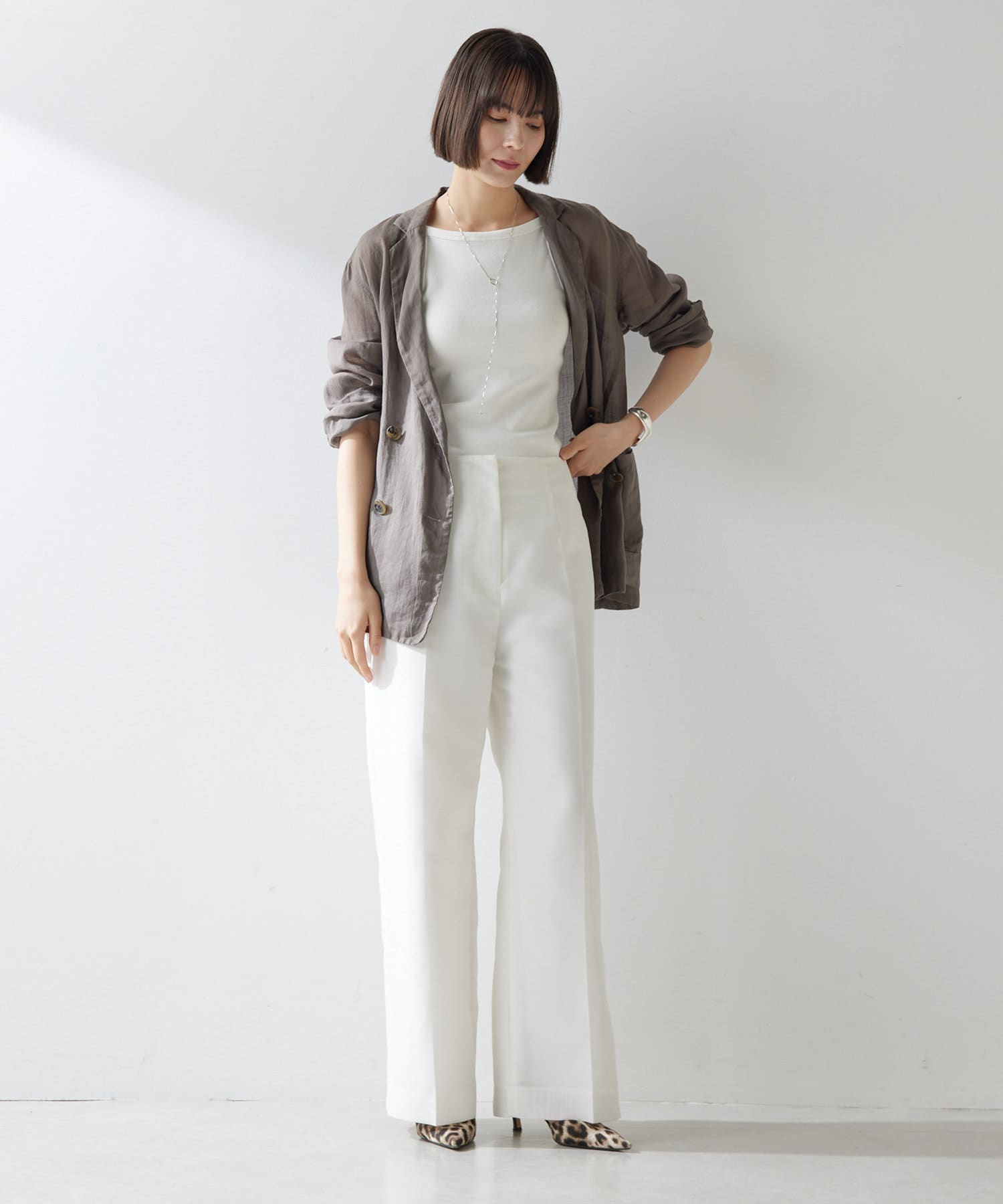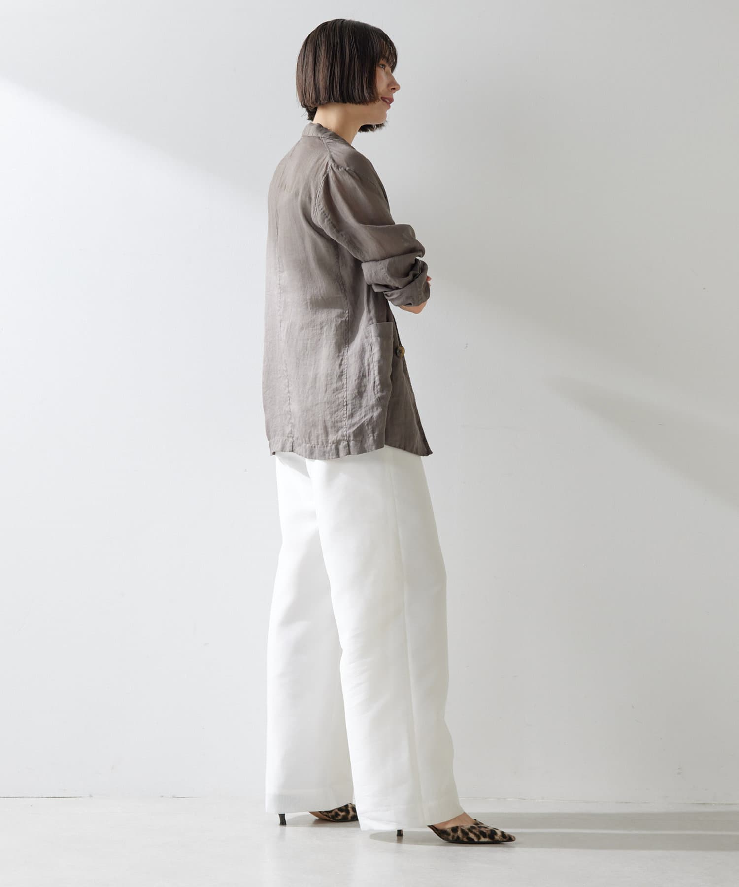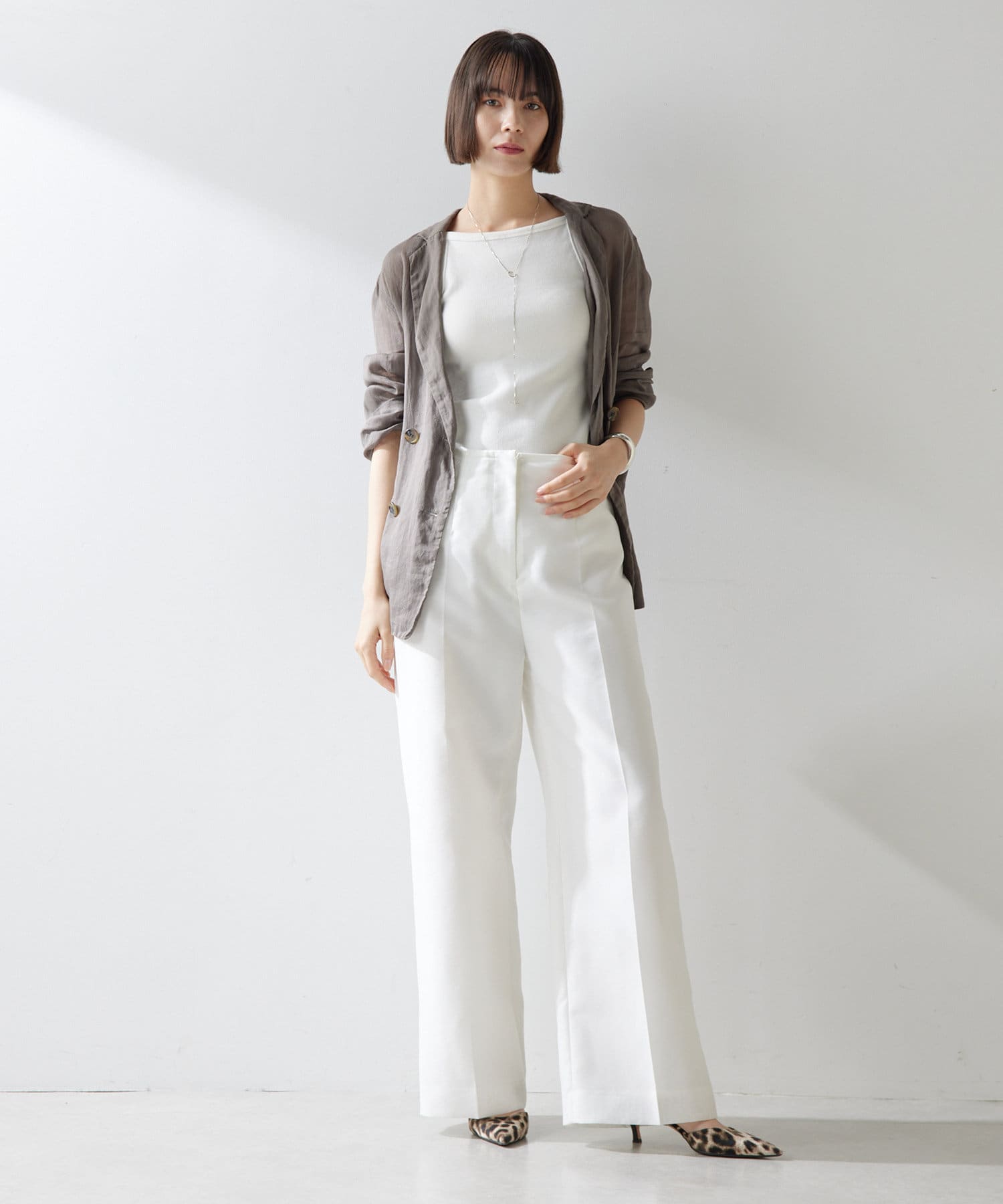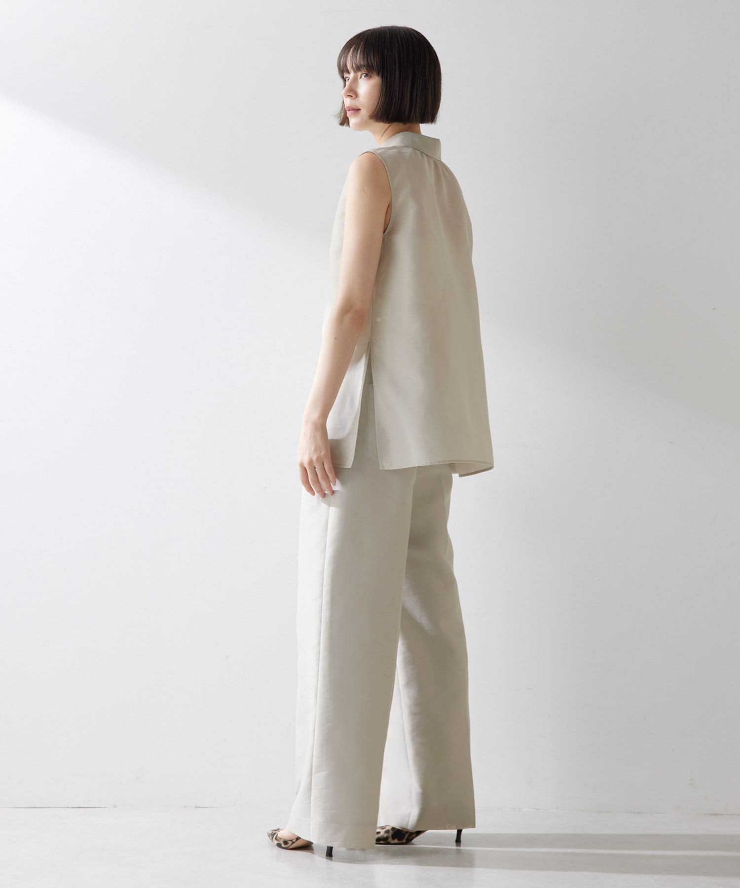 ■同素材のシアーノースリーブシャツ(ブランド品番:WGZ1051404A0010)とのセットアップもおすすめ。