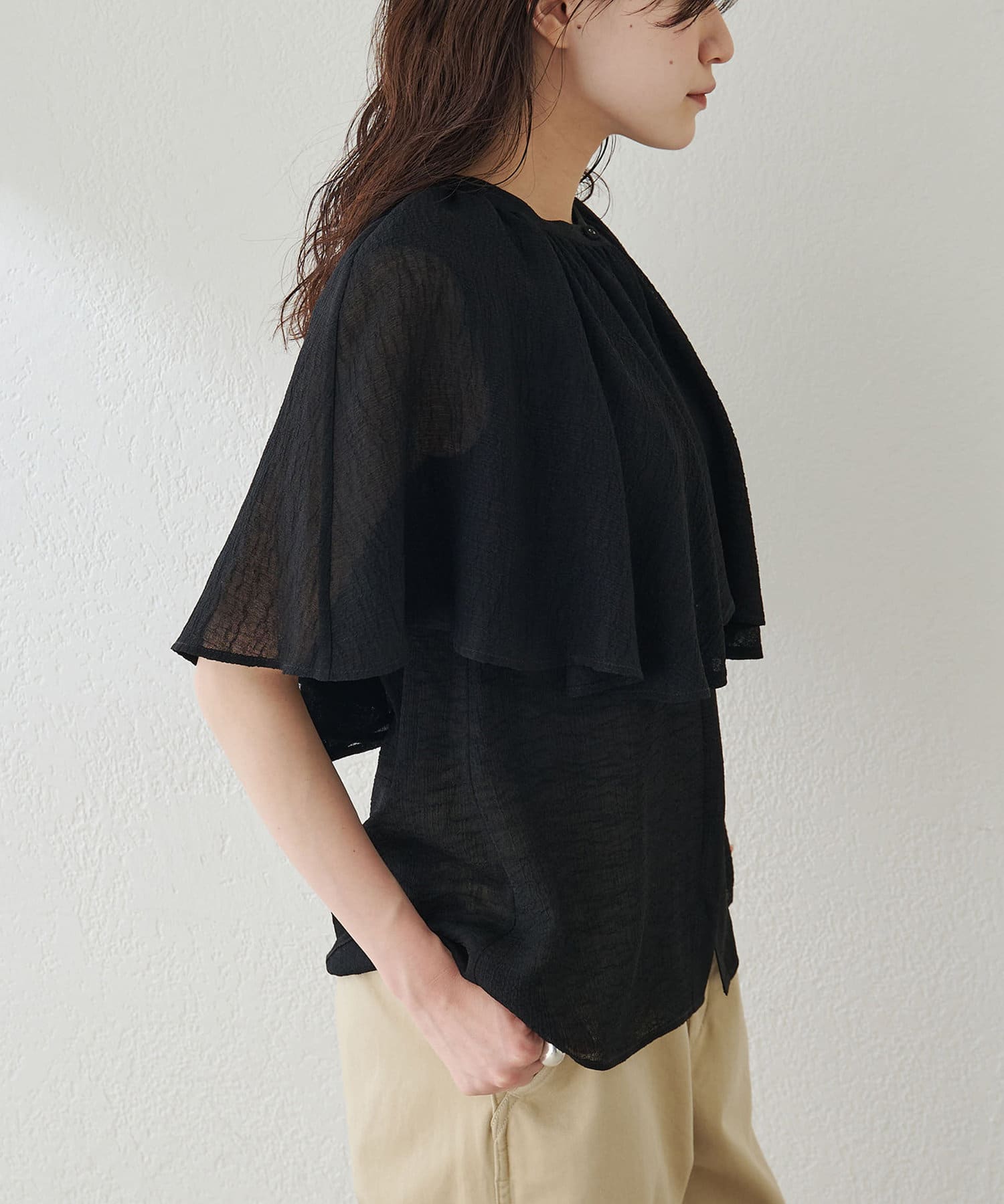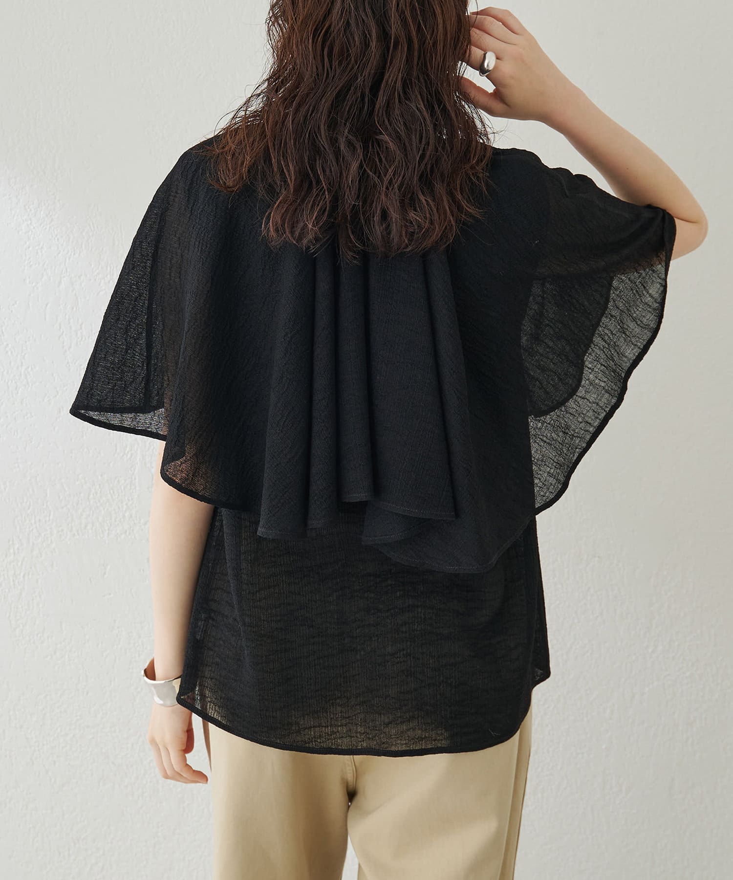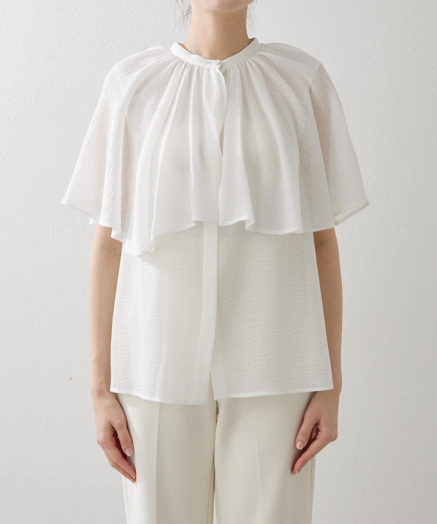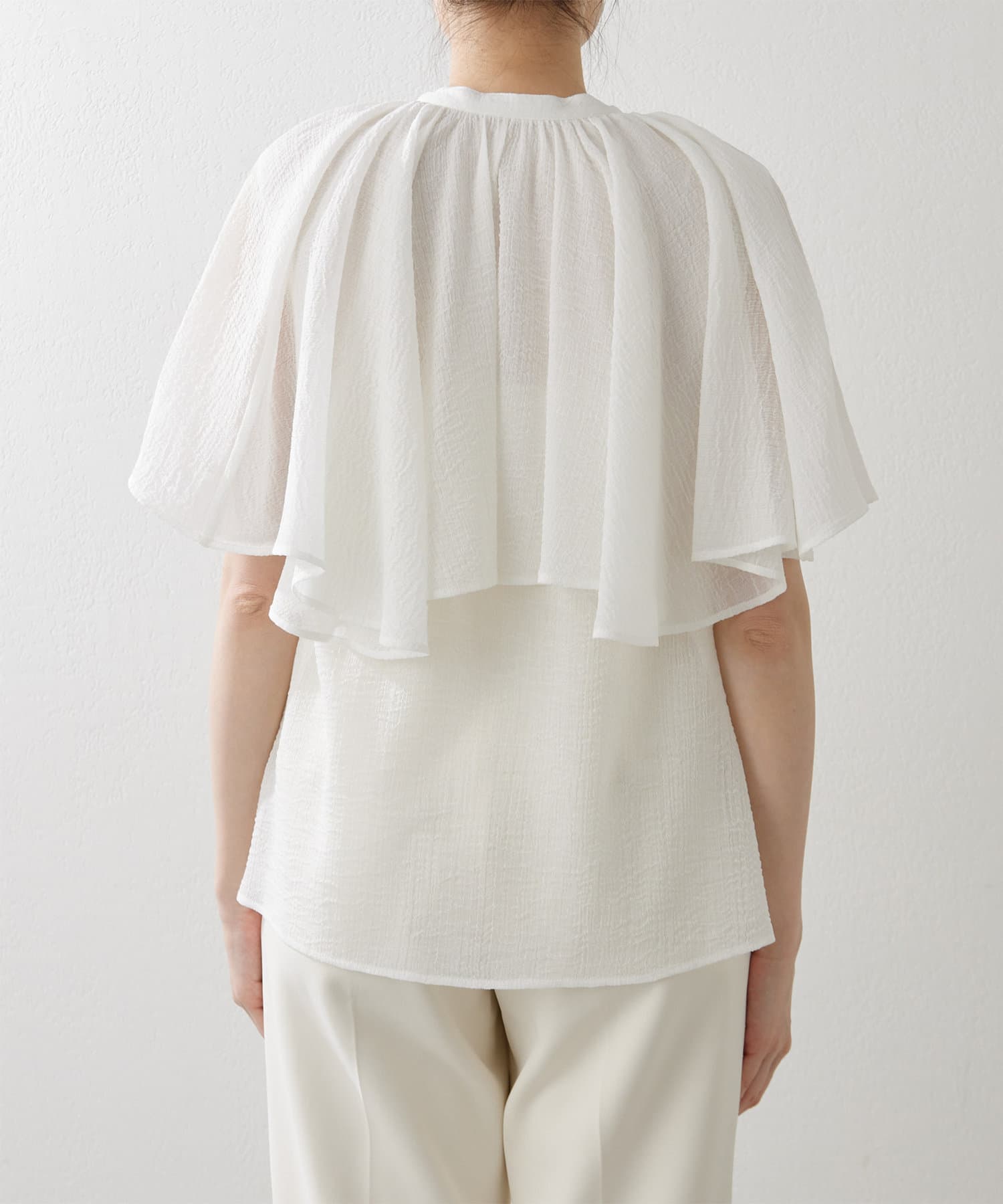 ケープデザインが華ぎを添える、エアリーなブラウス