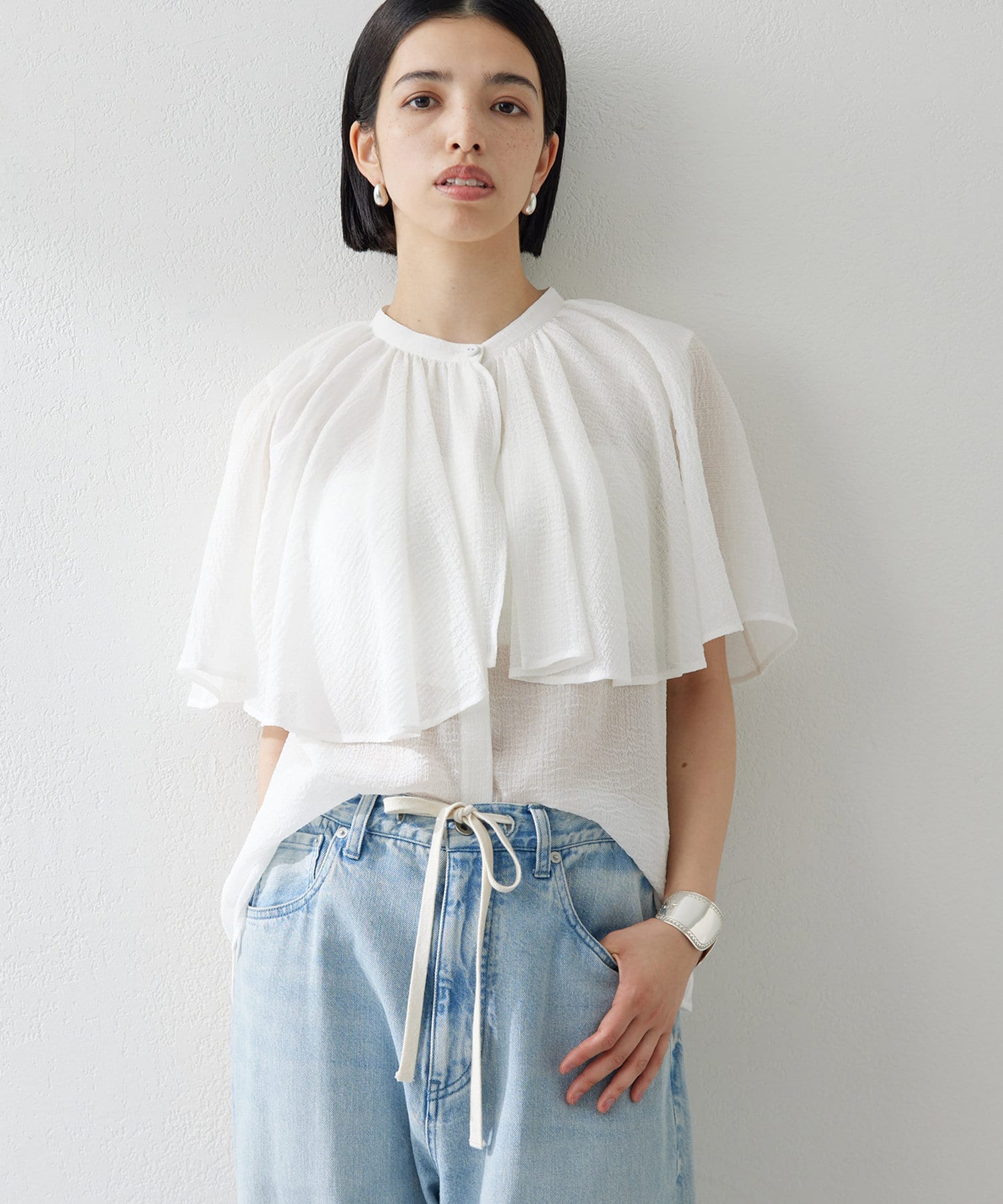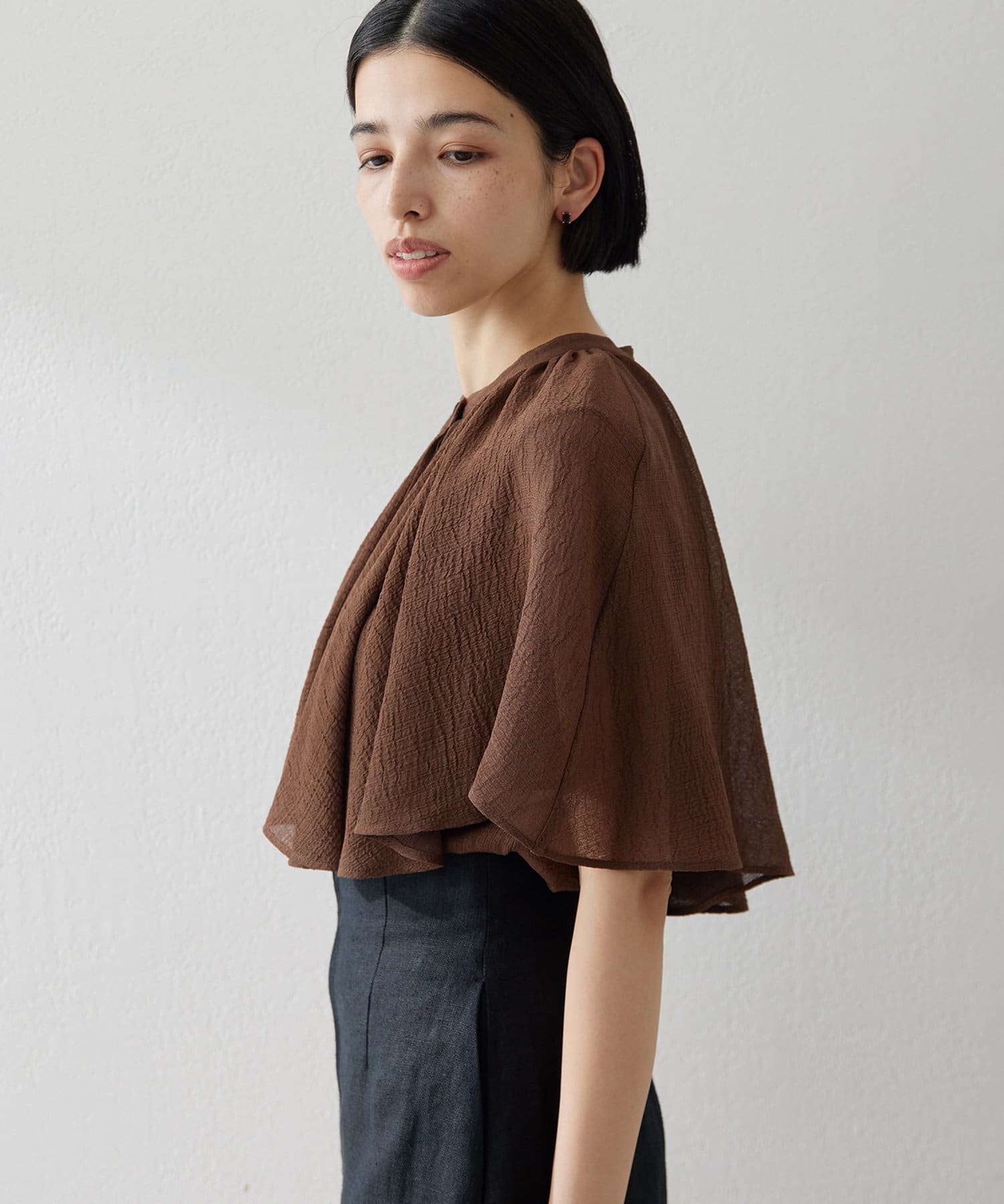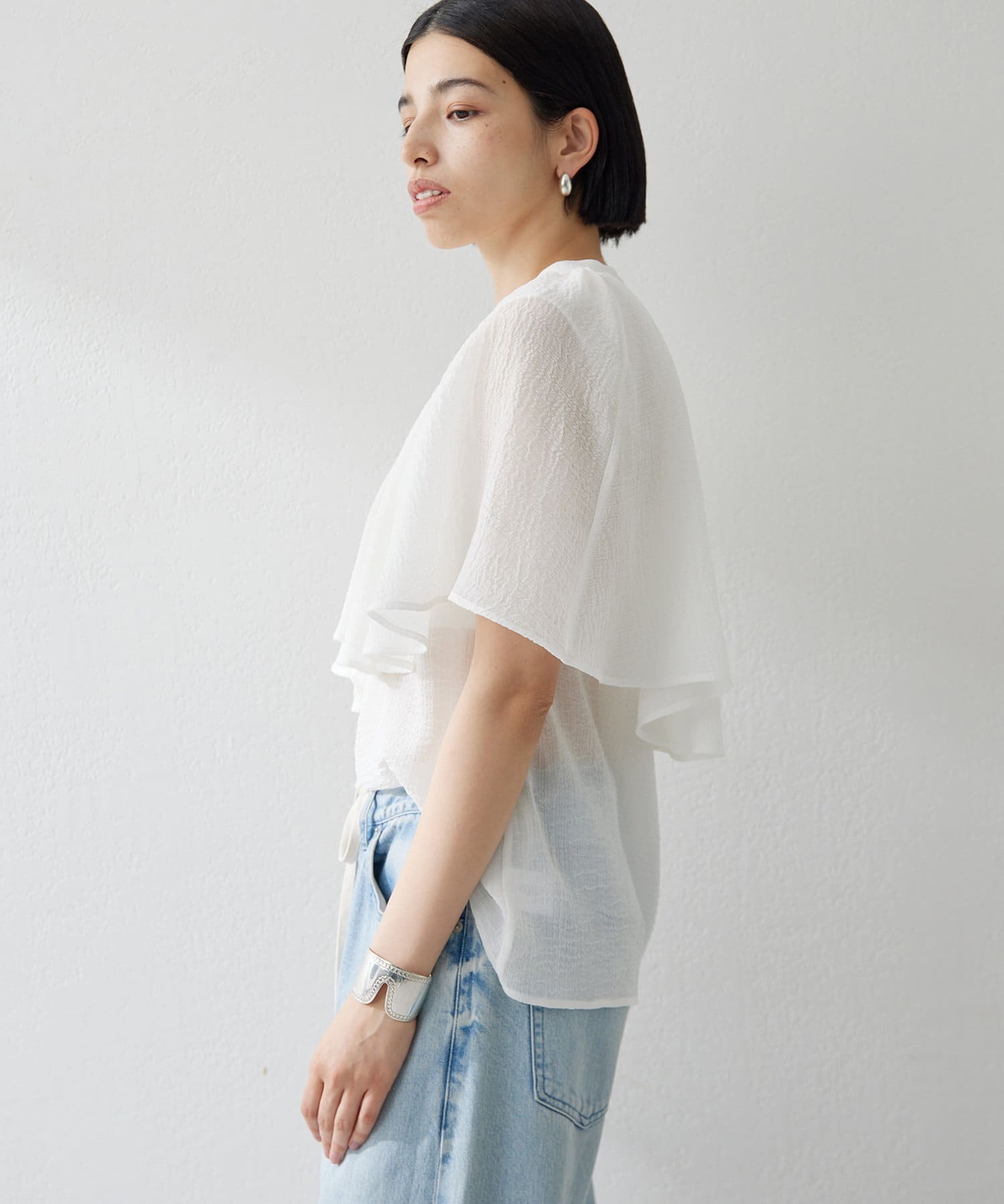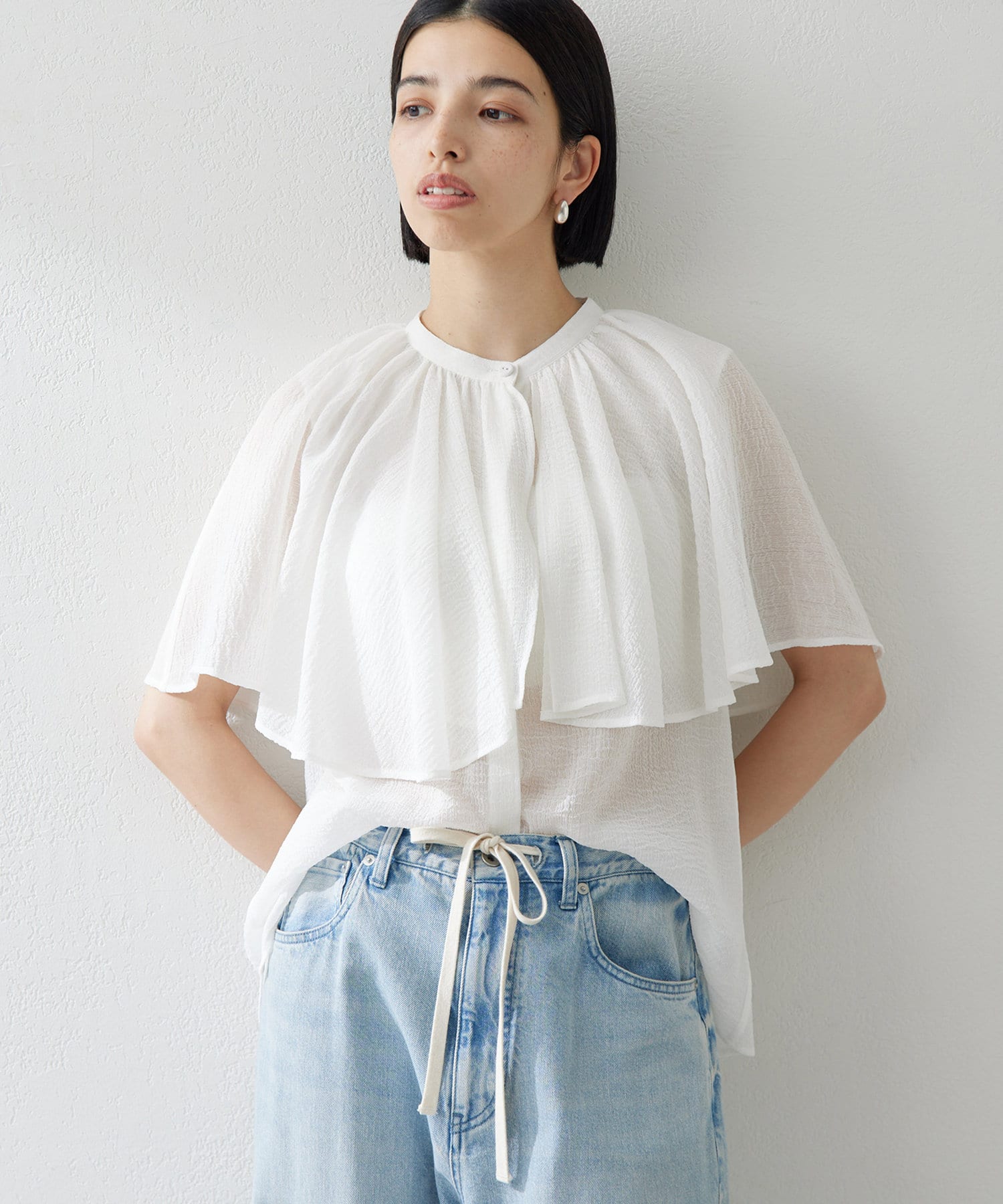 ケープデザインが華ぎを添える、エアリーなブラウス