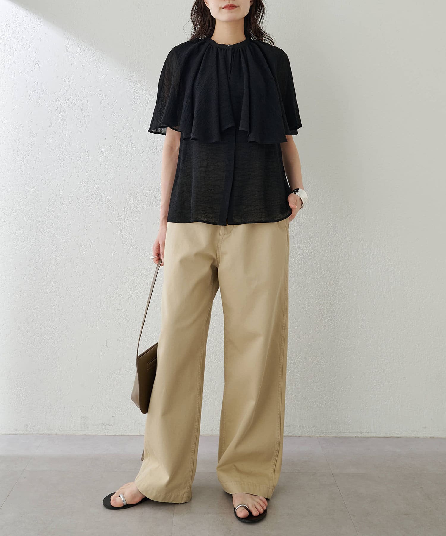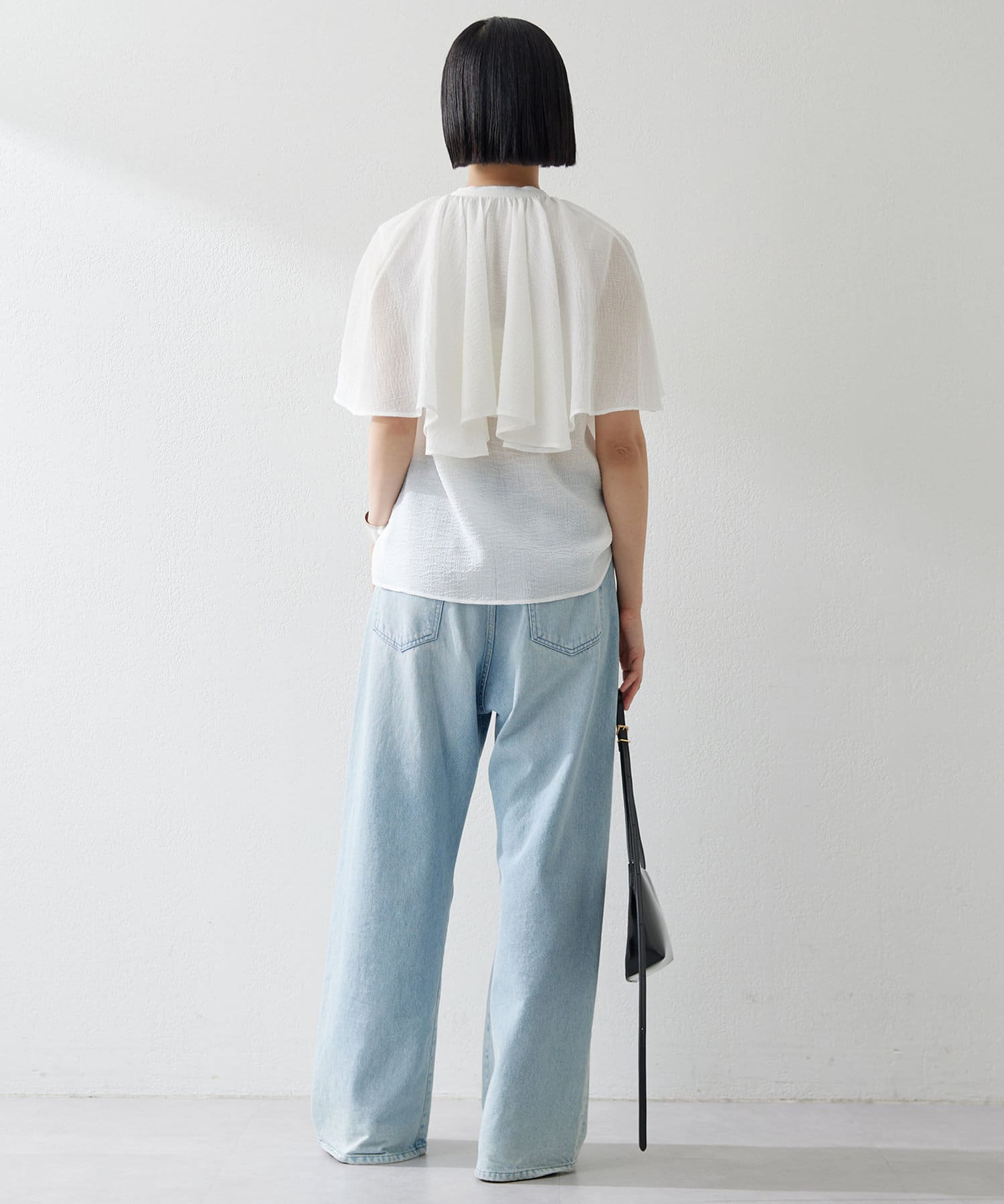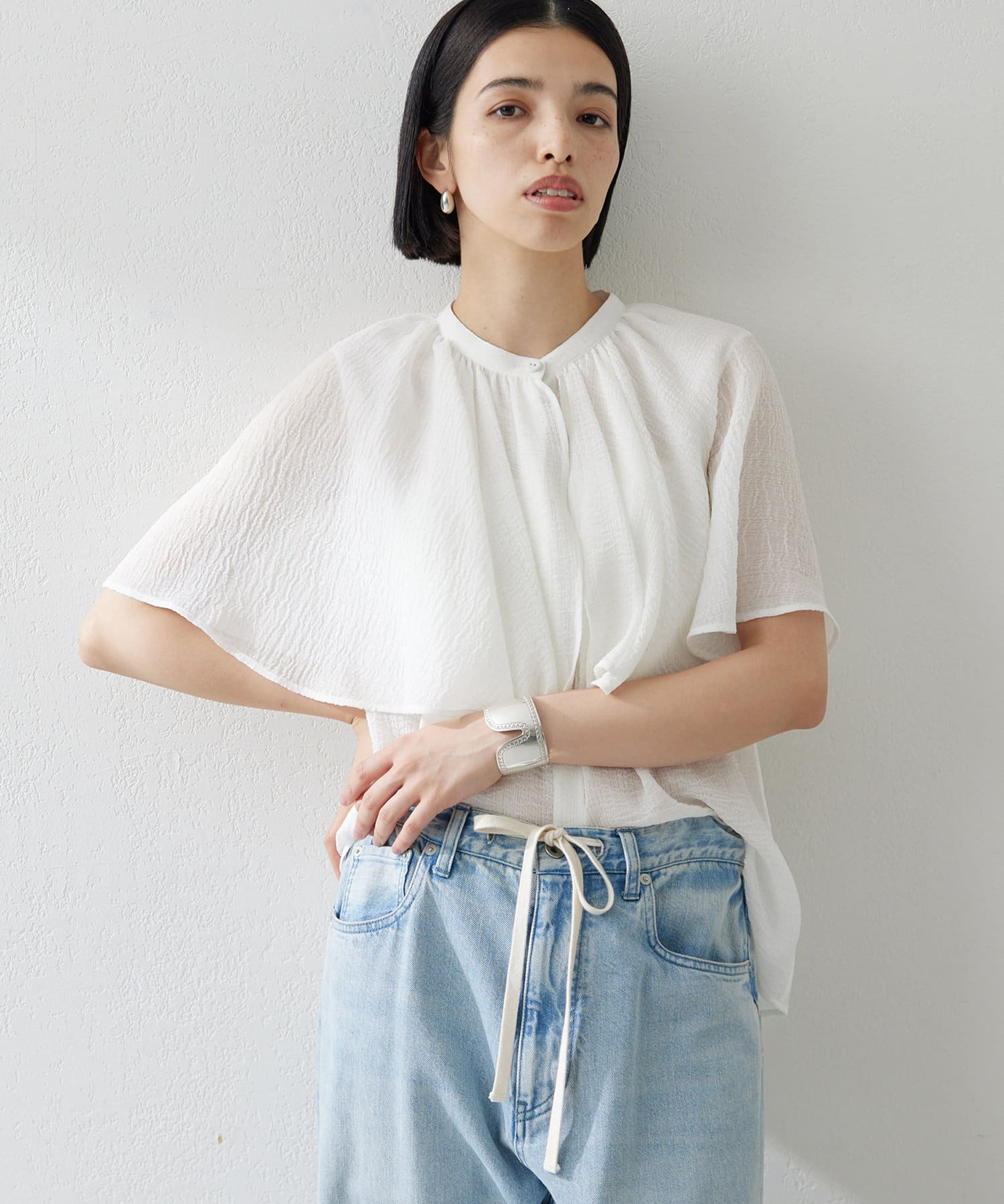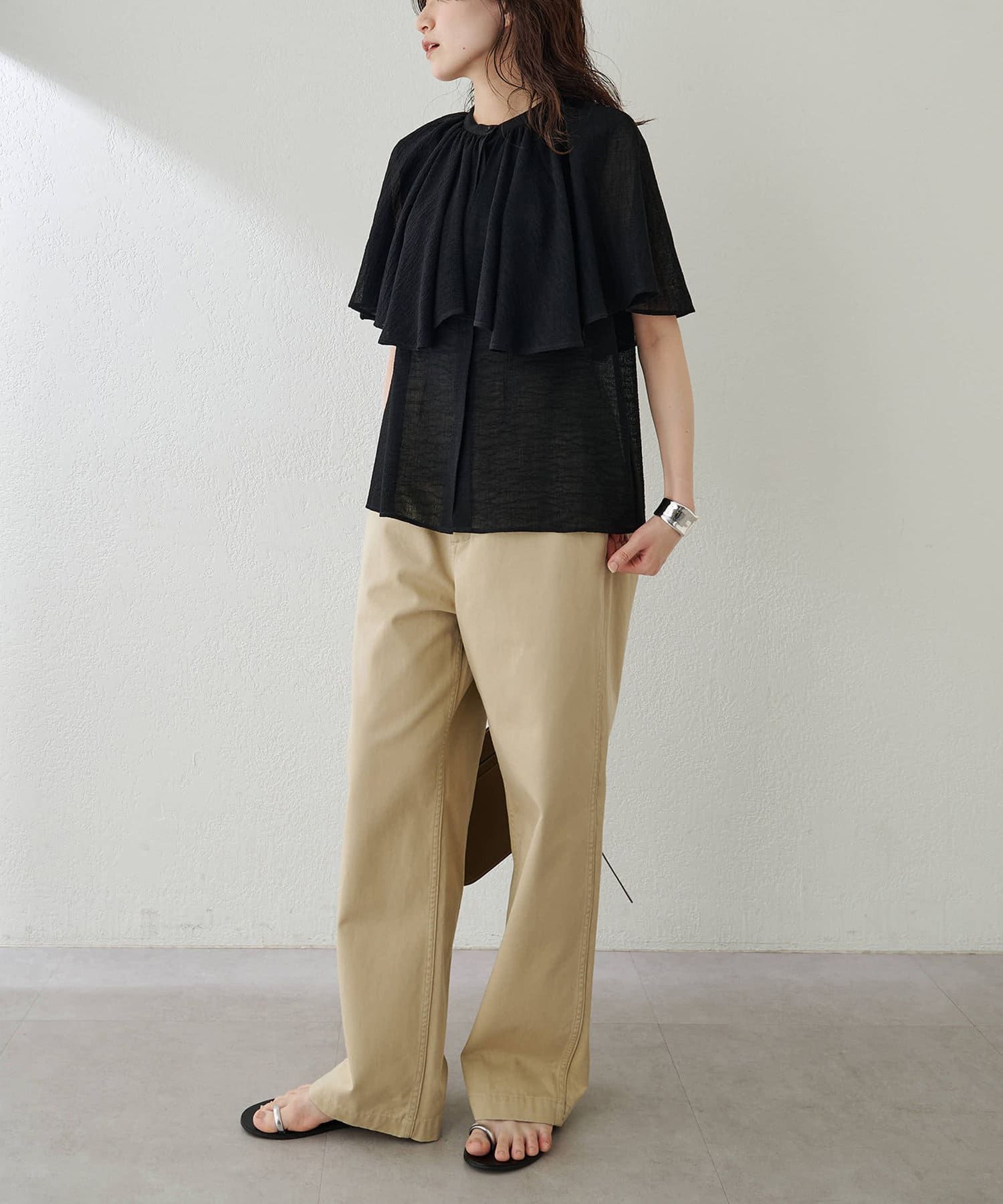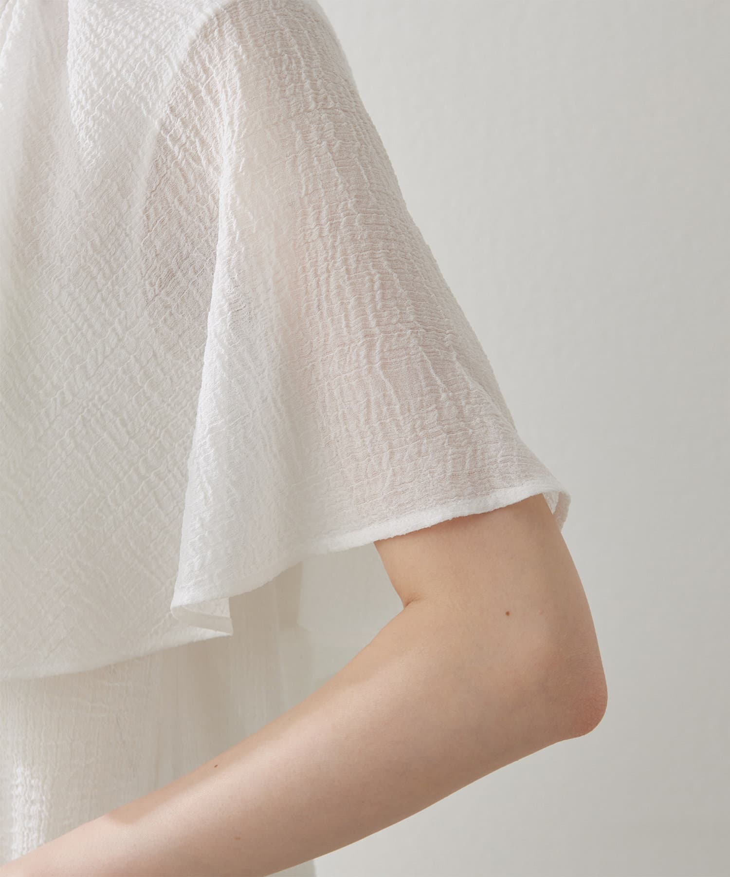ケープデザインが華ぎを添える、エアリーなブラウス