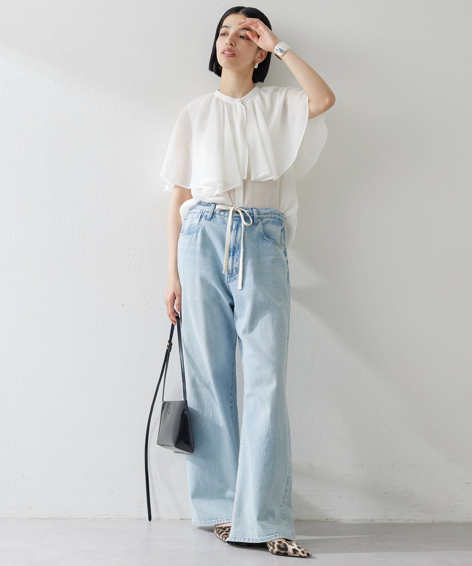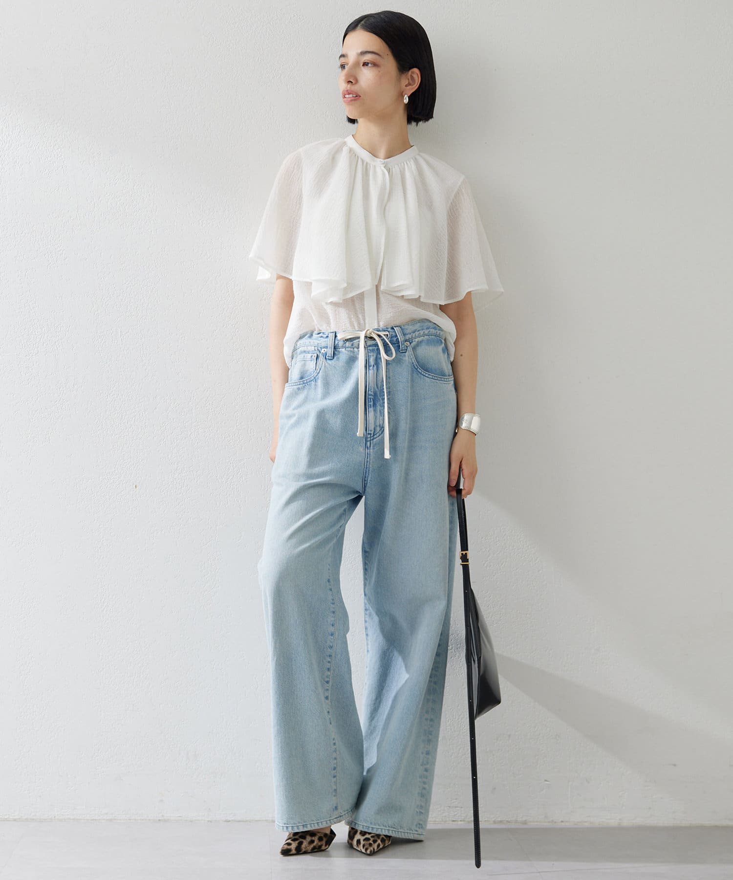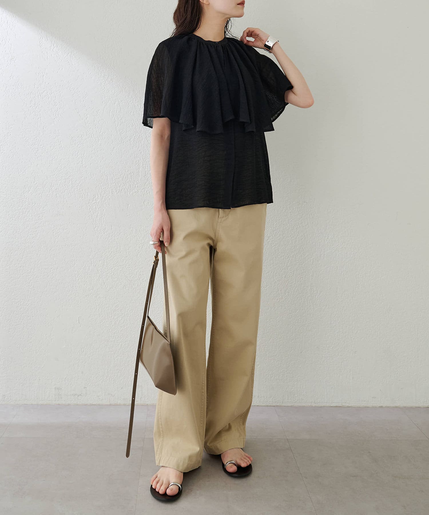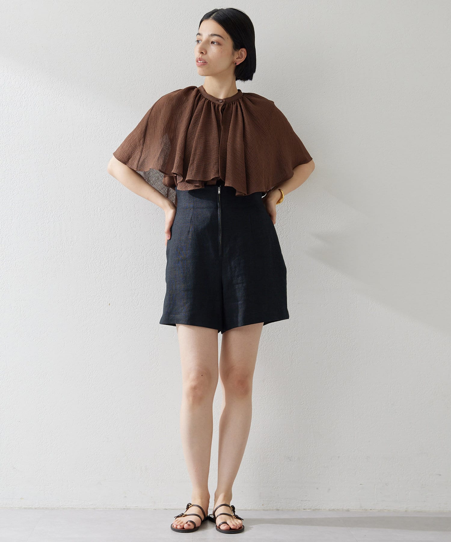 ケープデザインが華ぎを添える、エアリーなブラウス