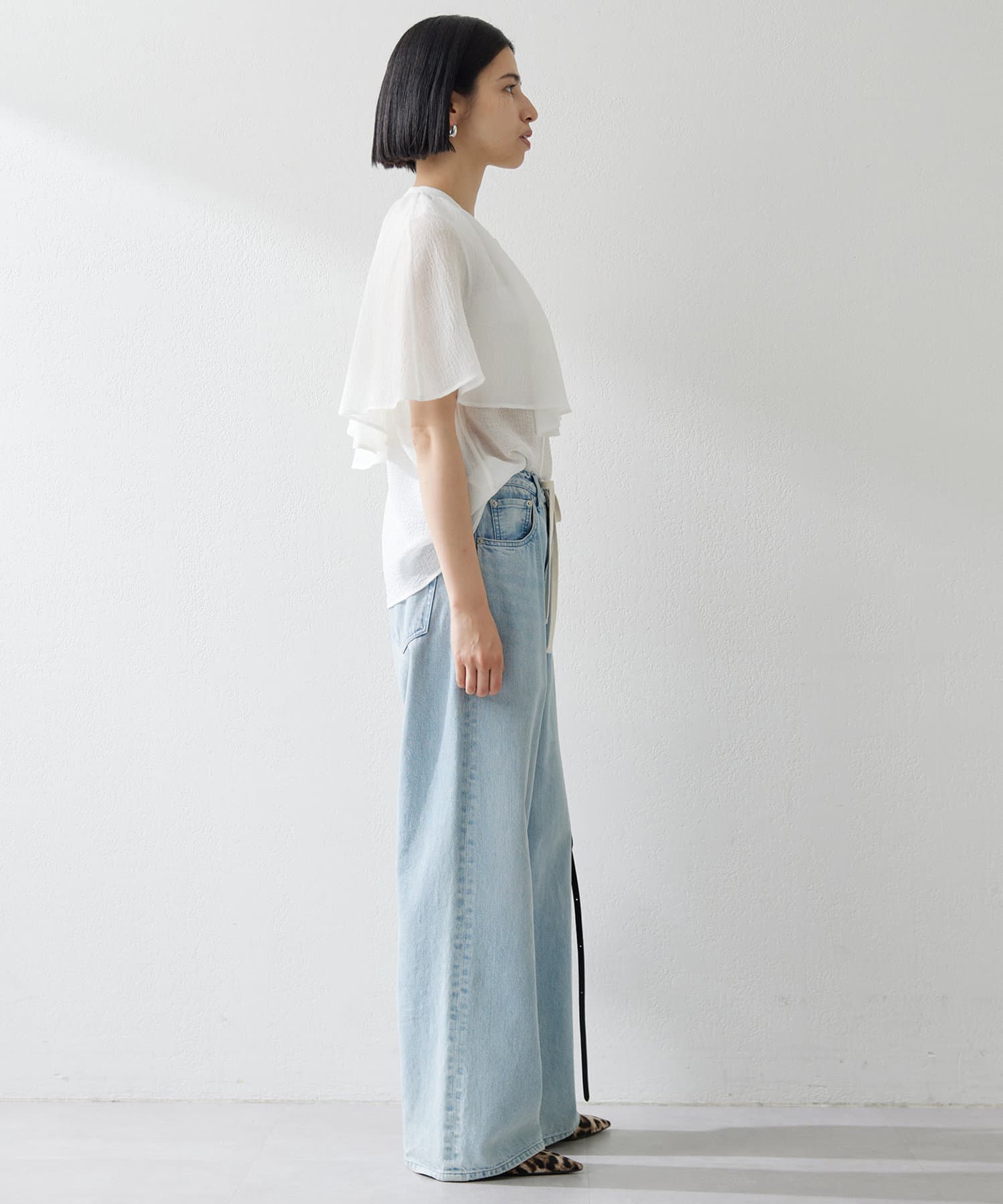 ■ケープを羽織っているようなデザインは、裾をボトムインでもアウトでも雰囲気を違いを楽しめるのが◎。