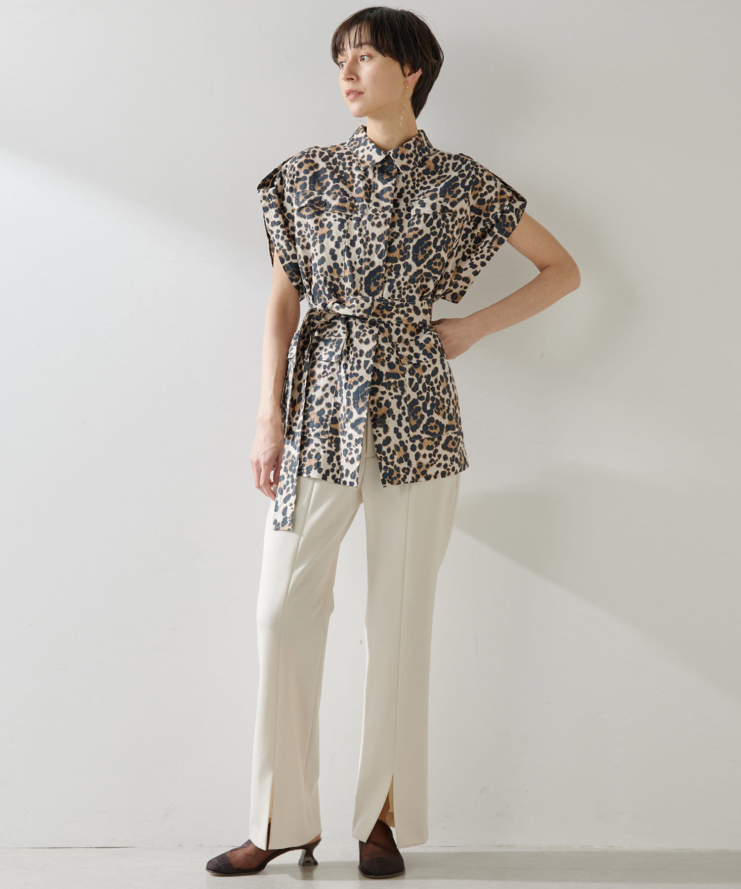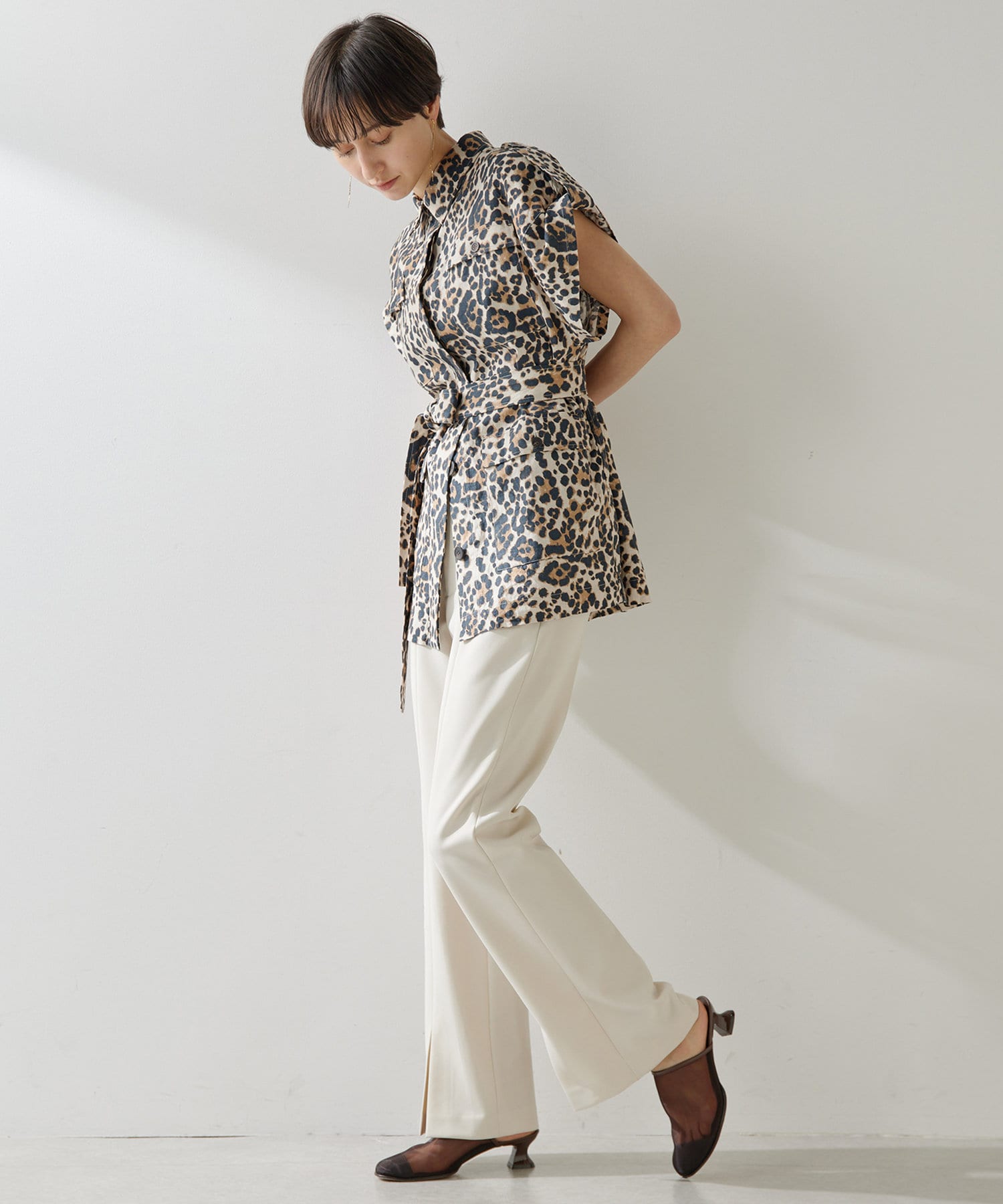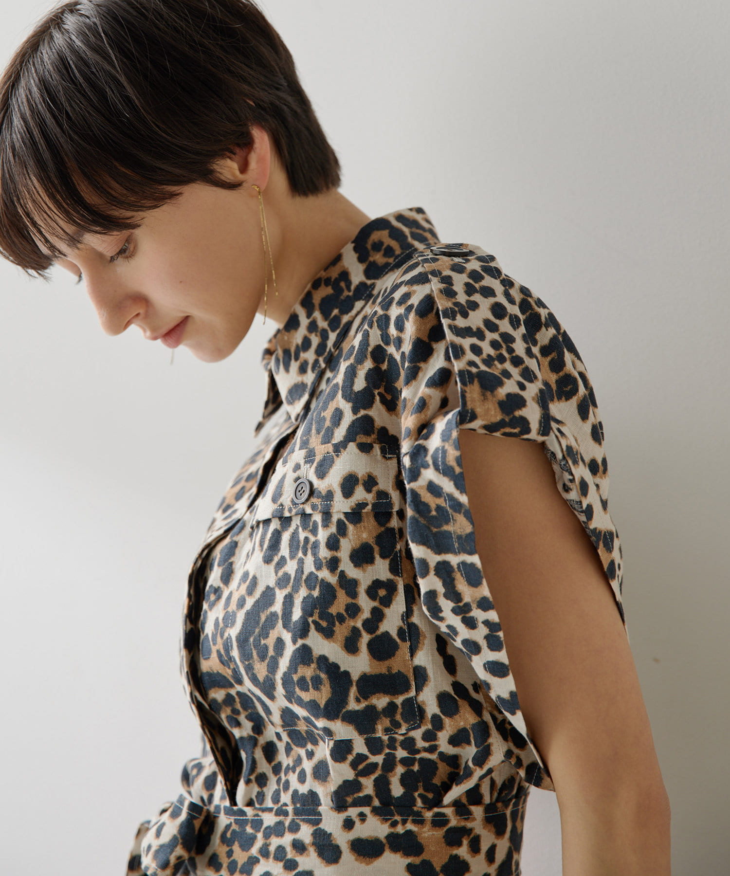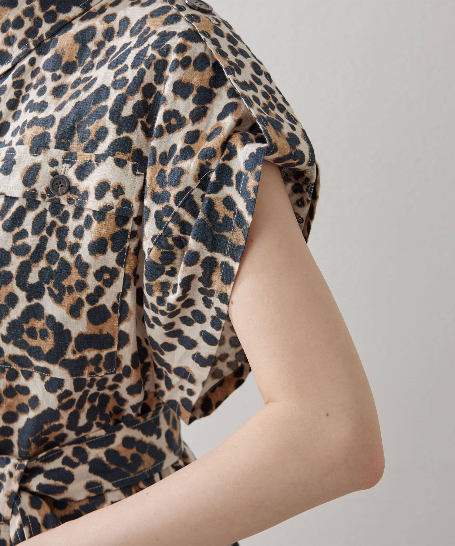 夏コーデにエッジを添える、リネン素材のレオパードジレ
