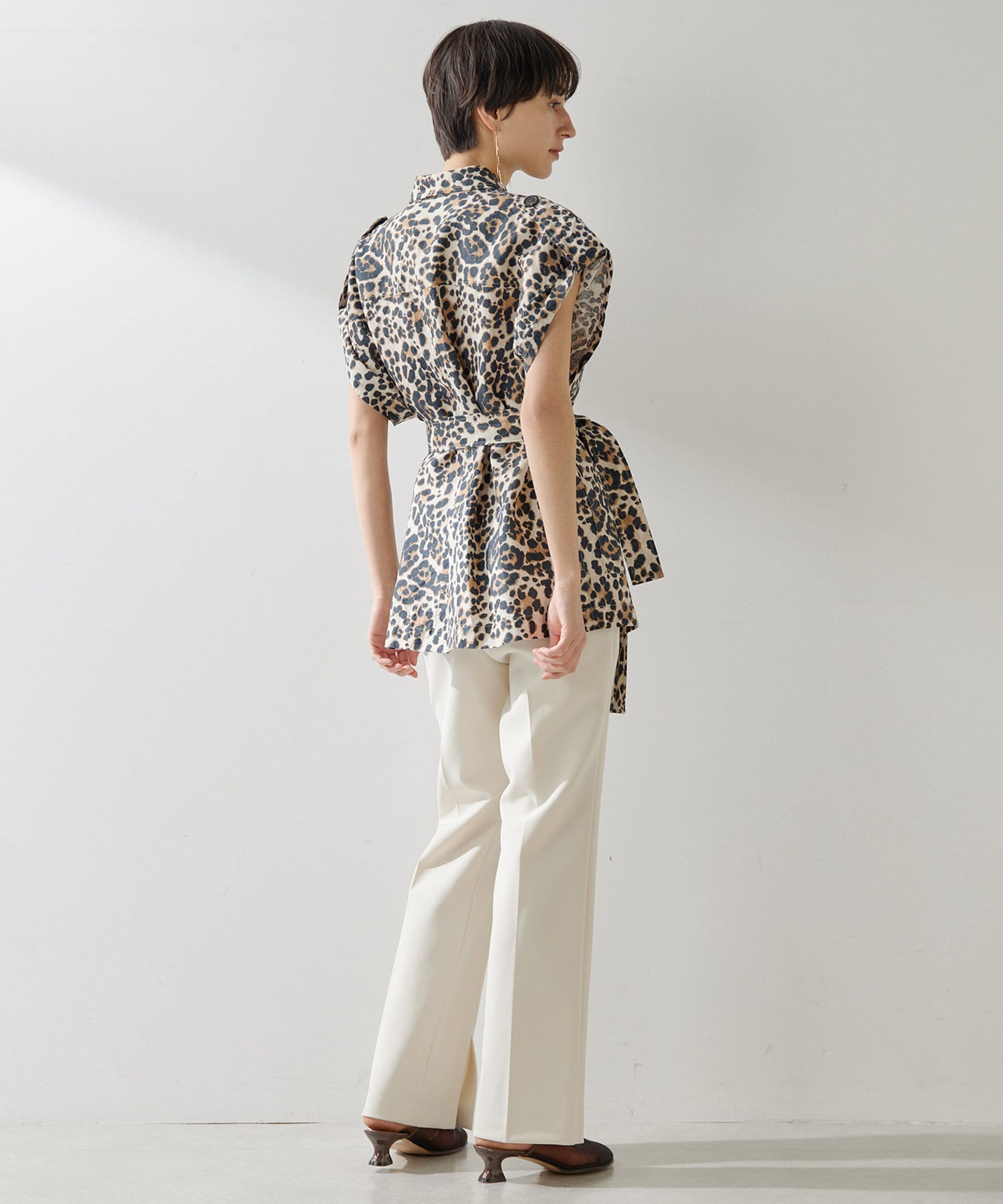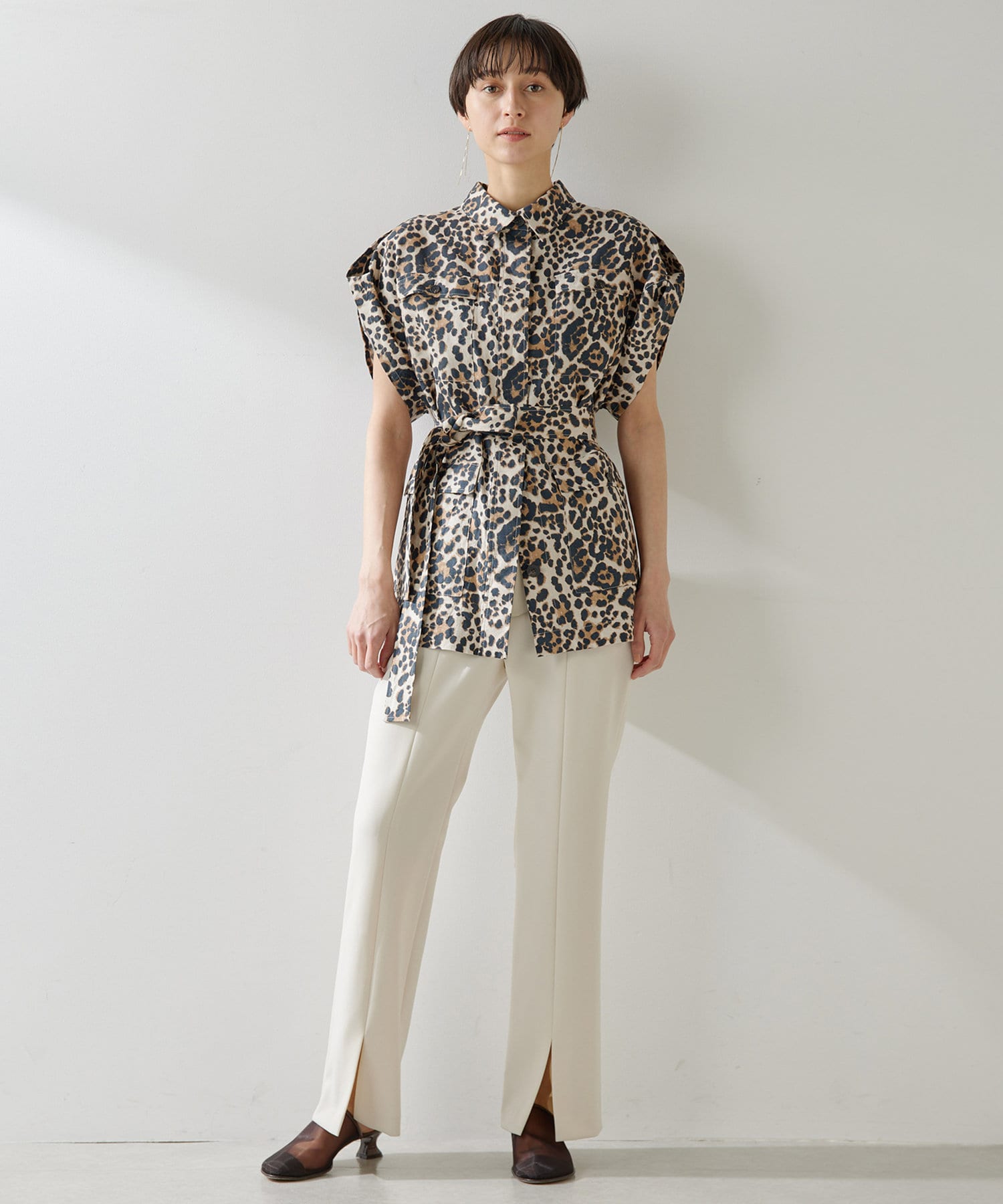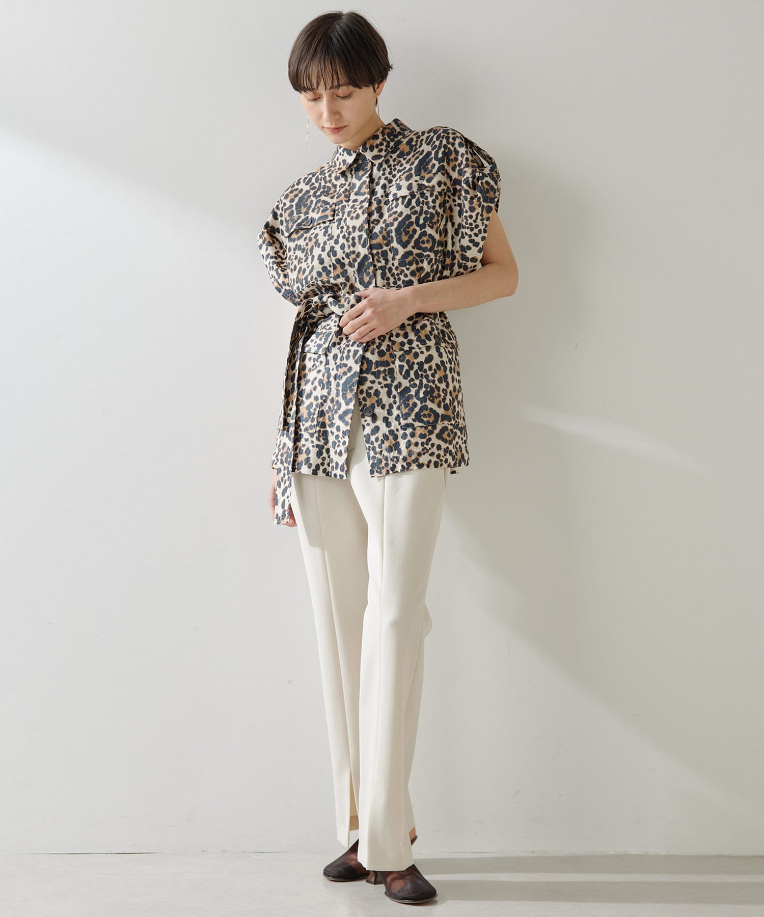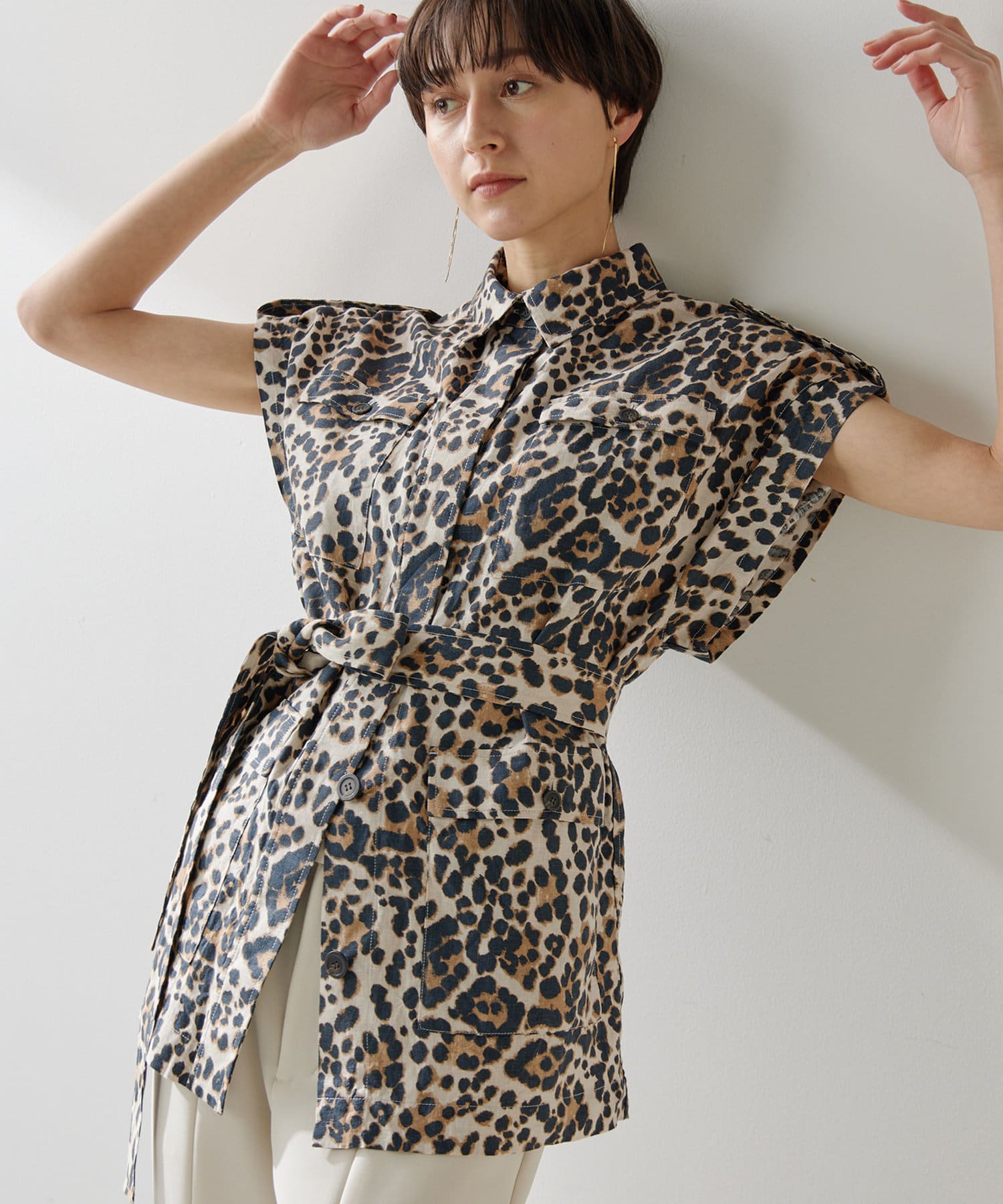 夏コーデにエッジを添える、リネン素材のレオパードジレ