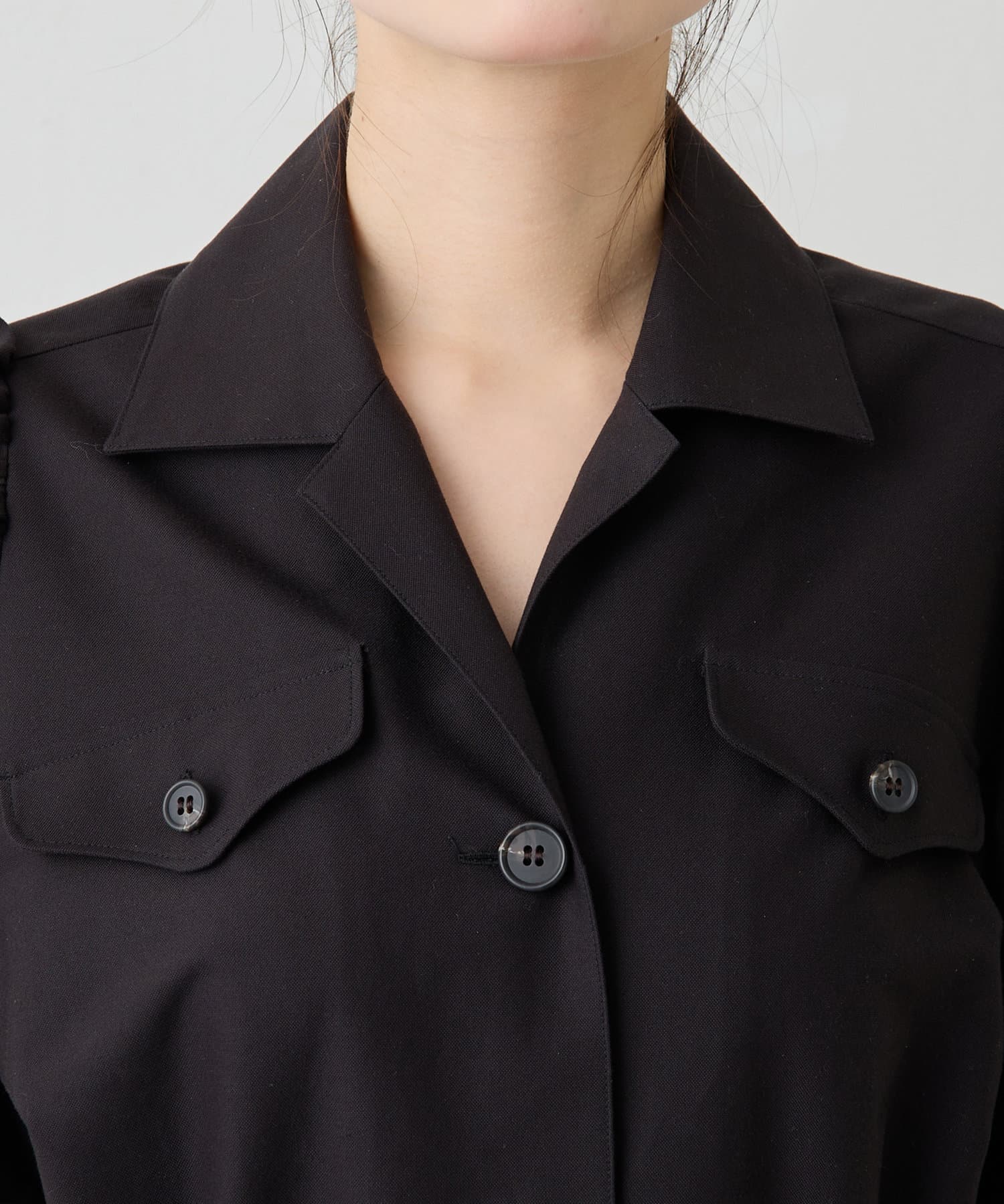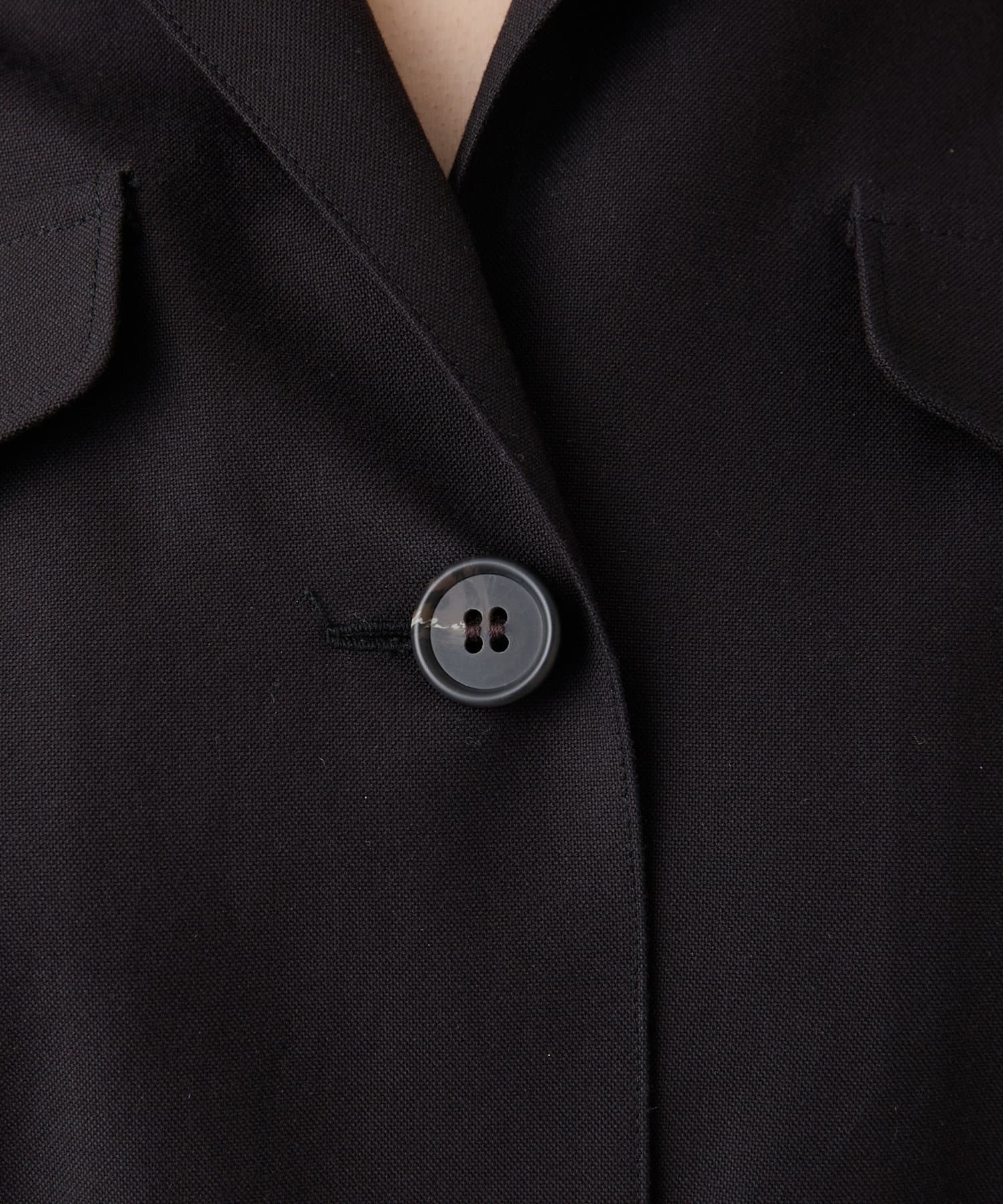 ■胸元のポケットディティールや少し大きめのボタンもアクセントに。