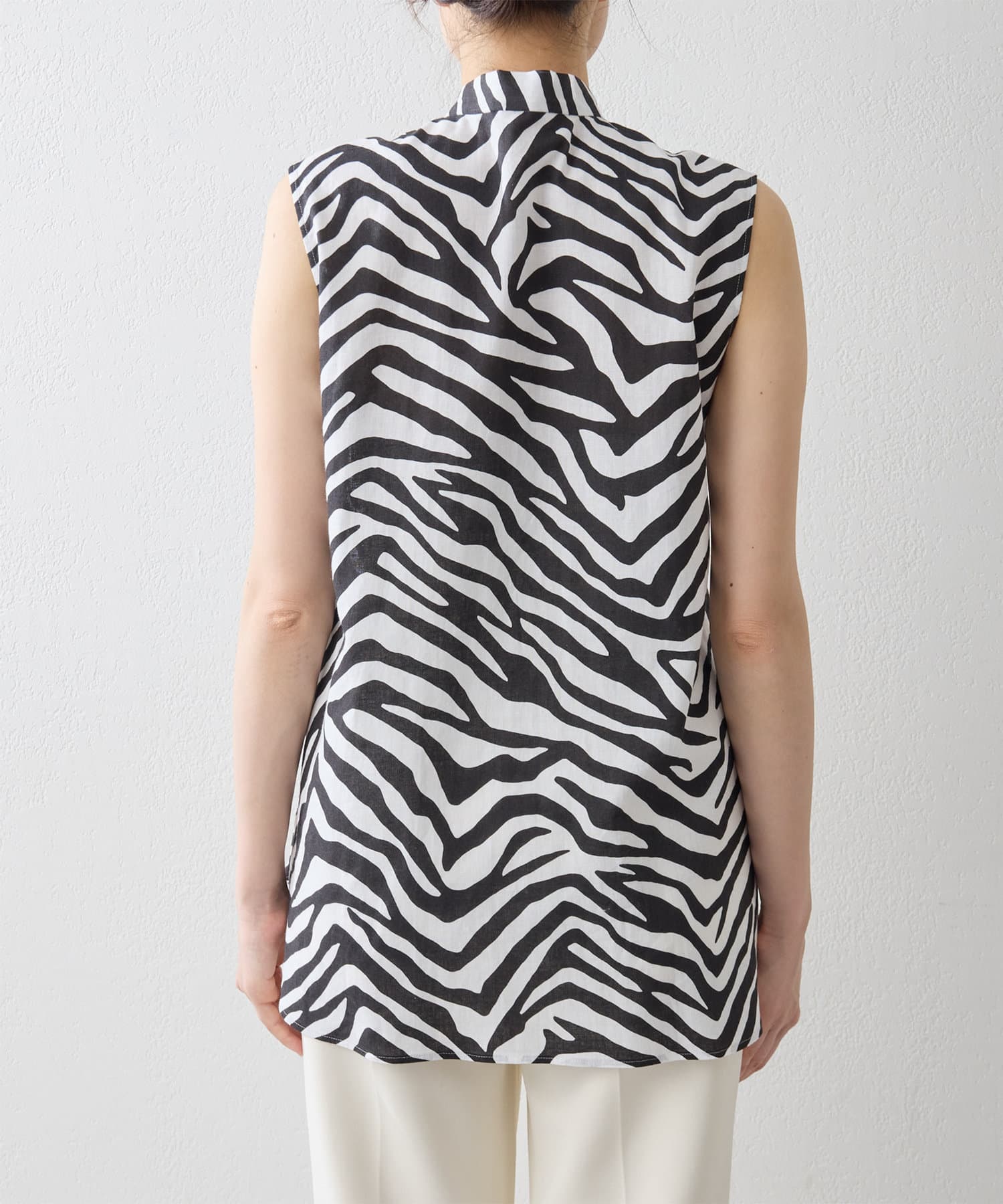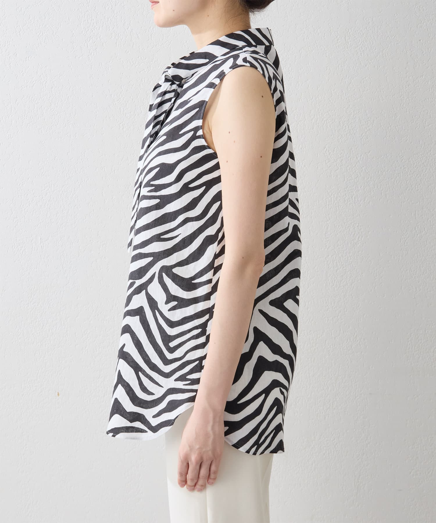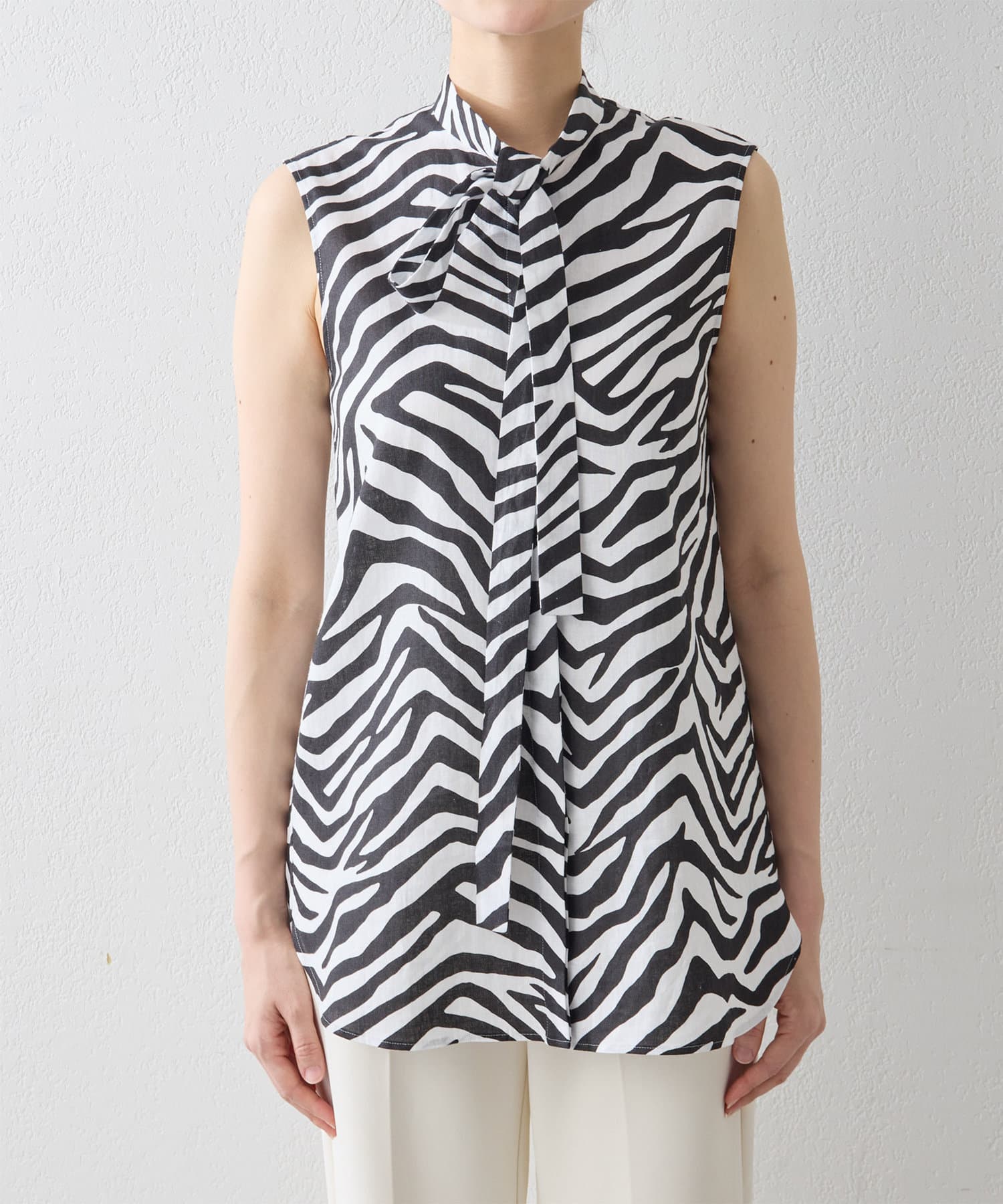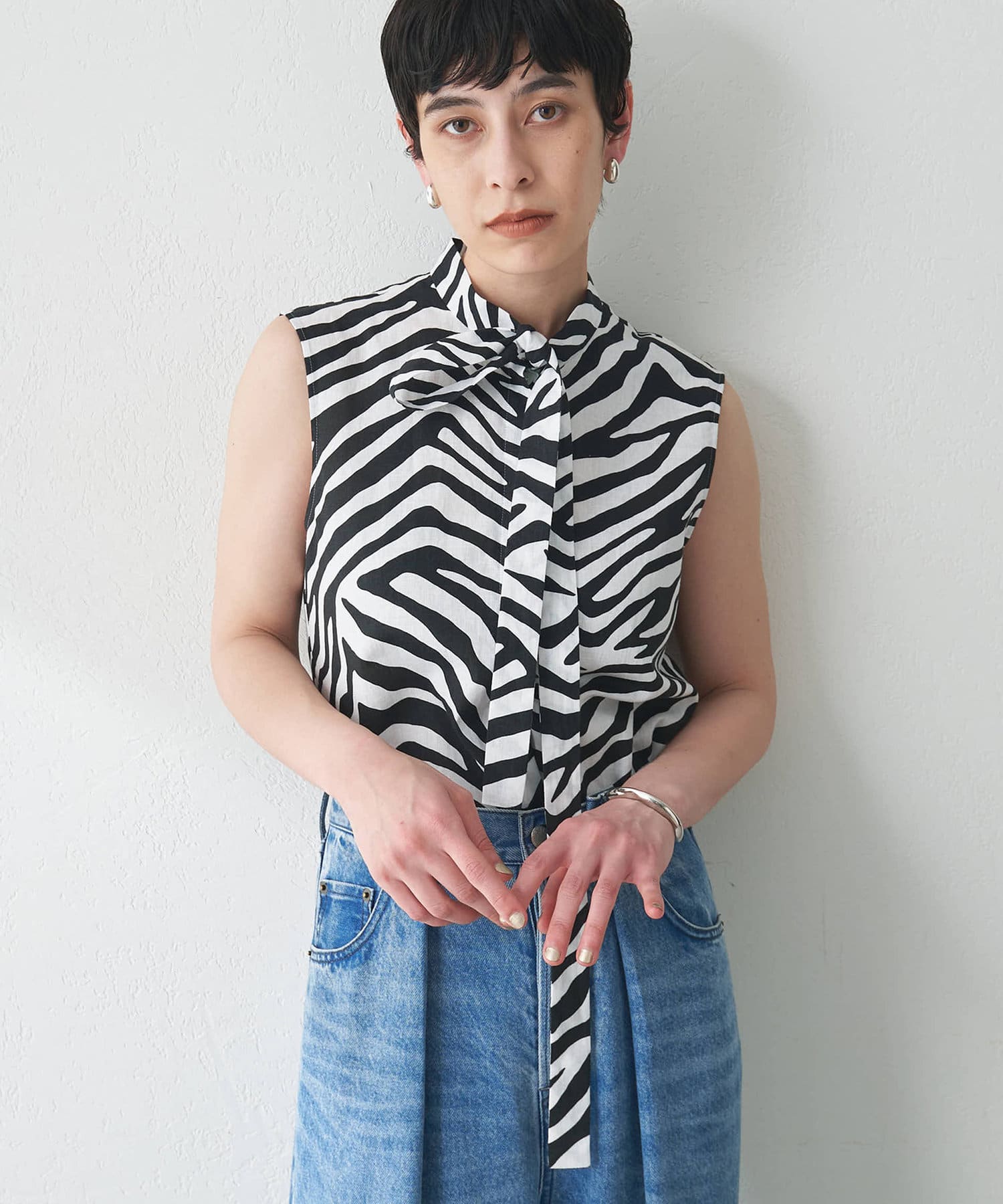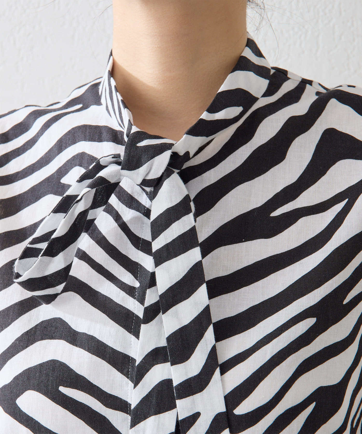 ■オリジナルのゼブラ柄がモダンな雰囲気漂うボウタイブラウス。