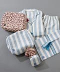 ブルー:爽やかな印象のライトブルー×ホワイトのストライプ柄。