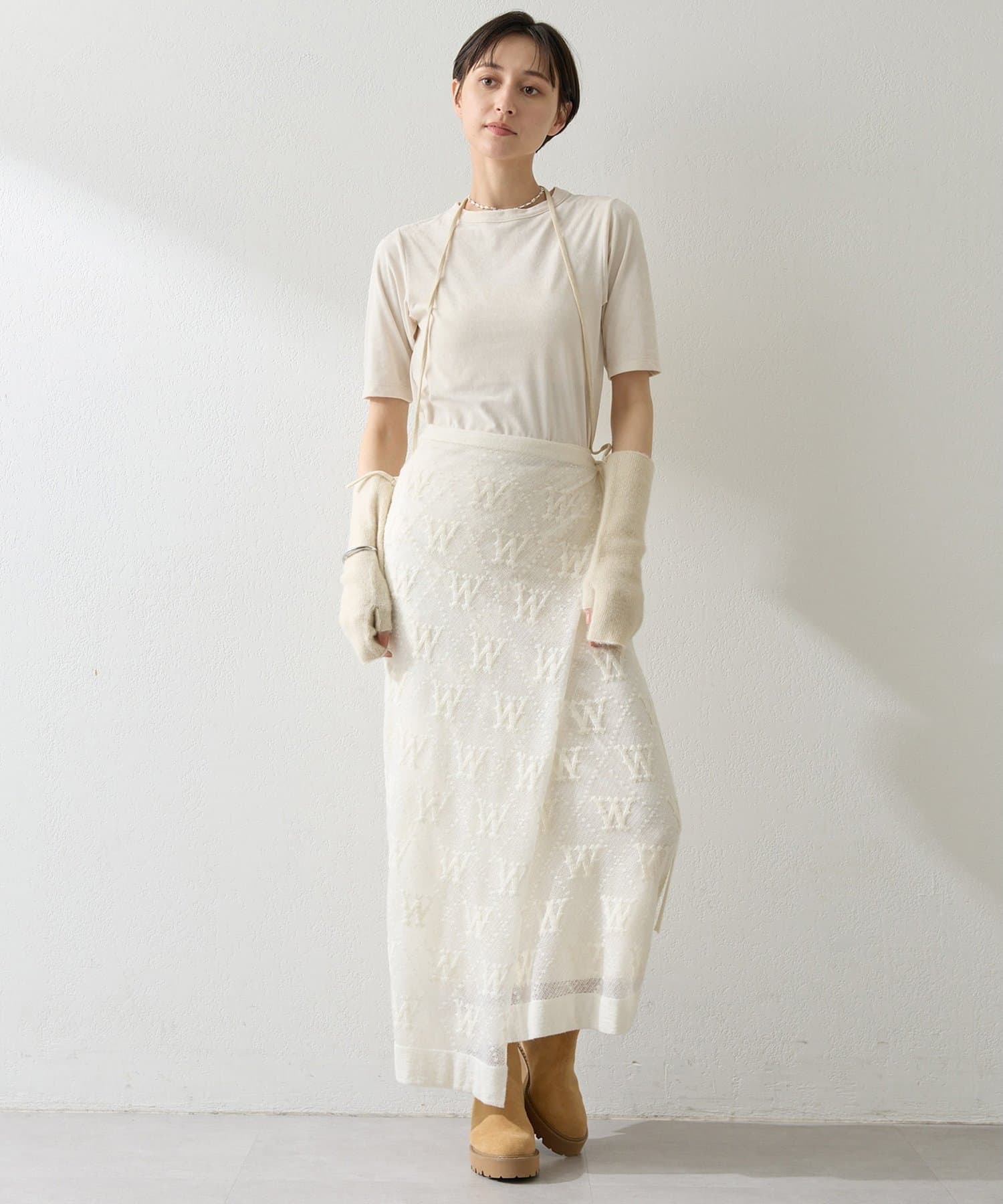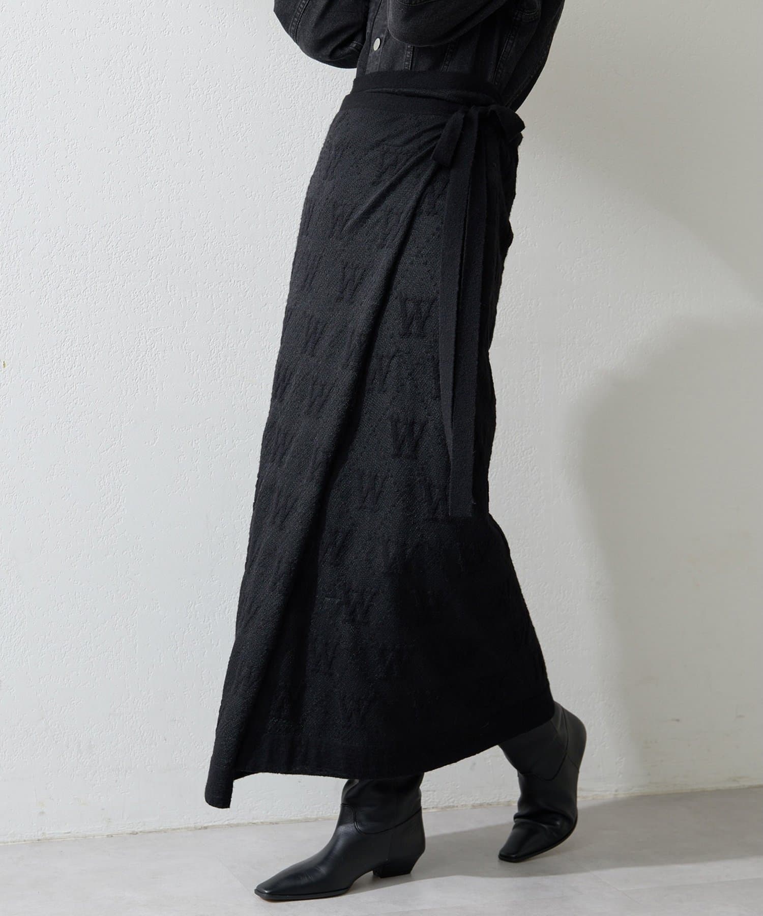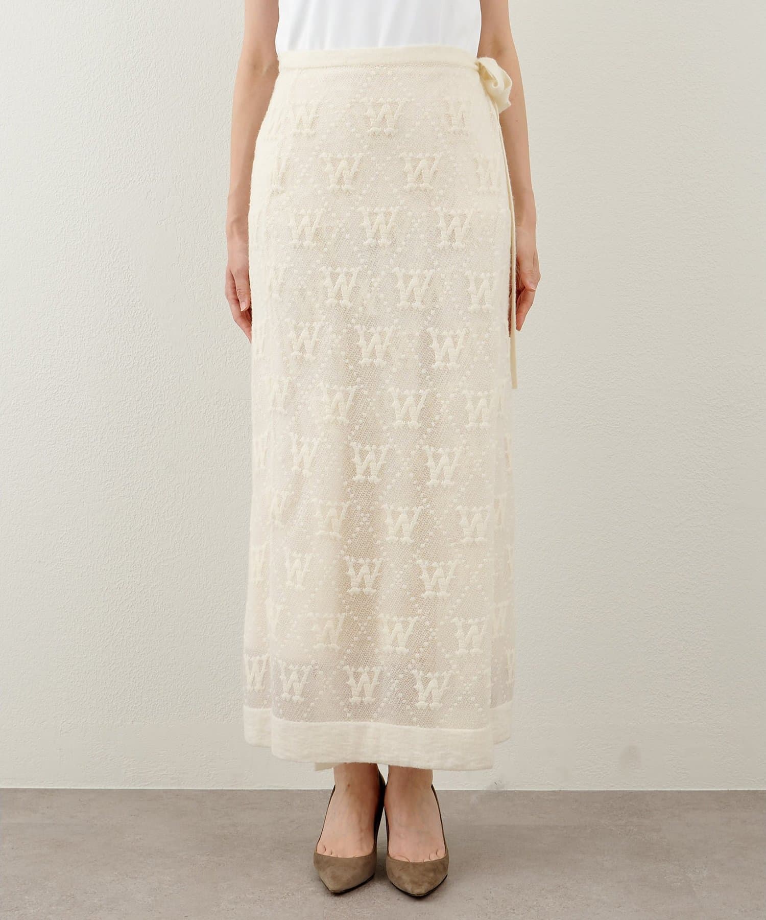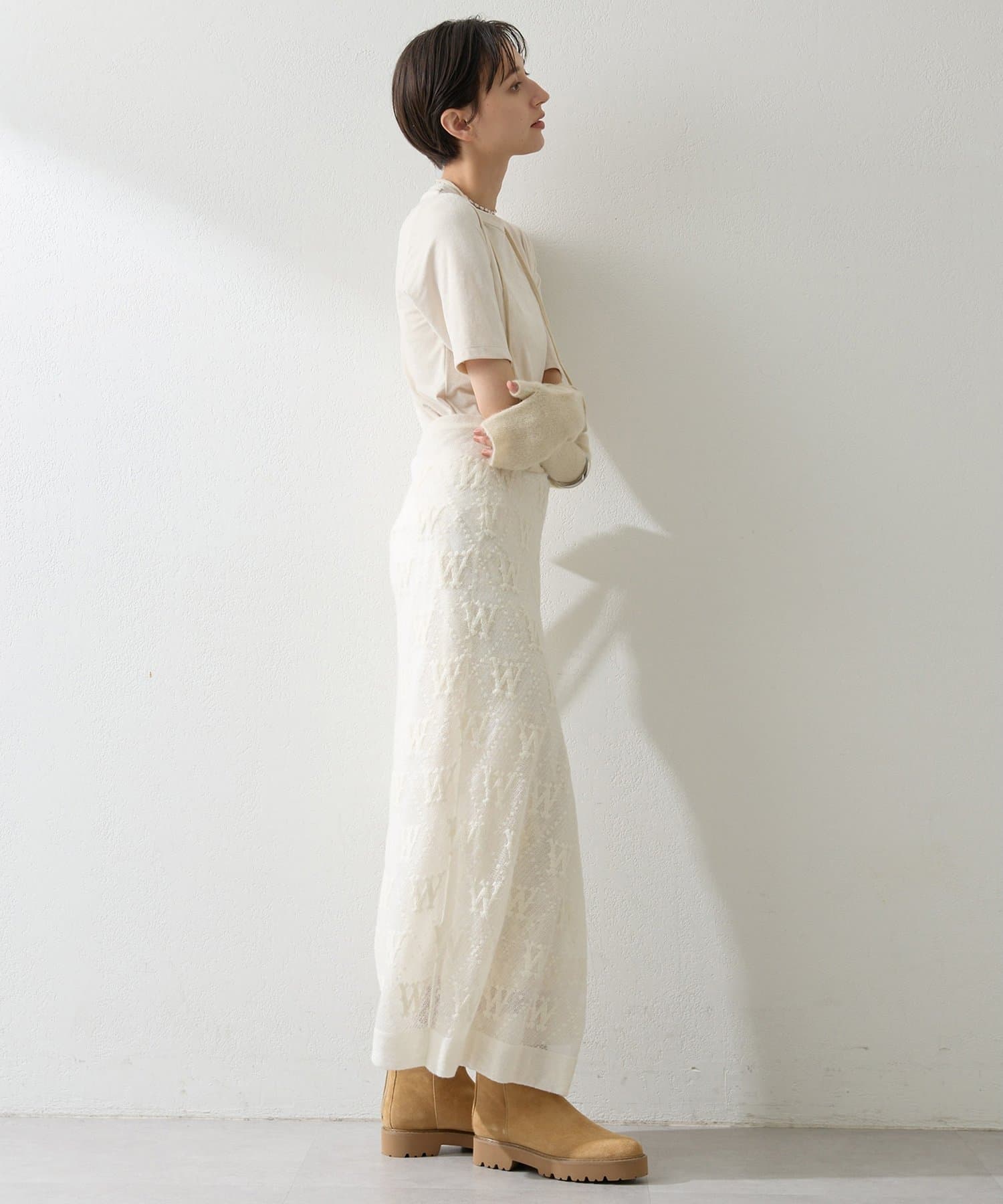 ■「W」の文字をあしらったジャガード編みがアクセントのニットスカート。