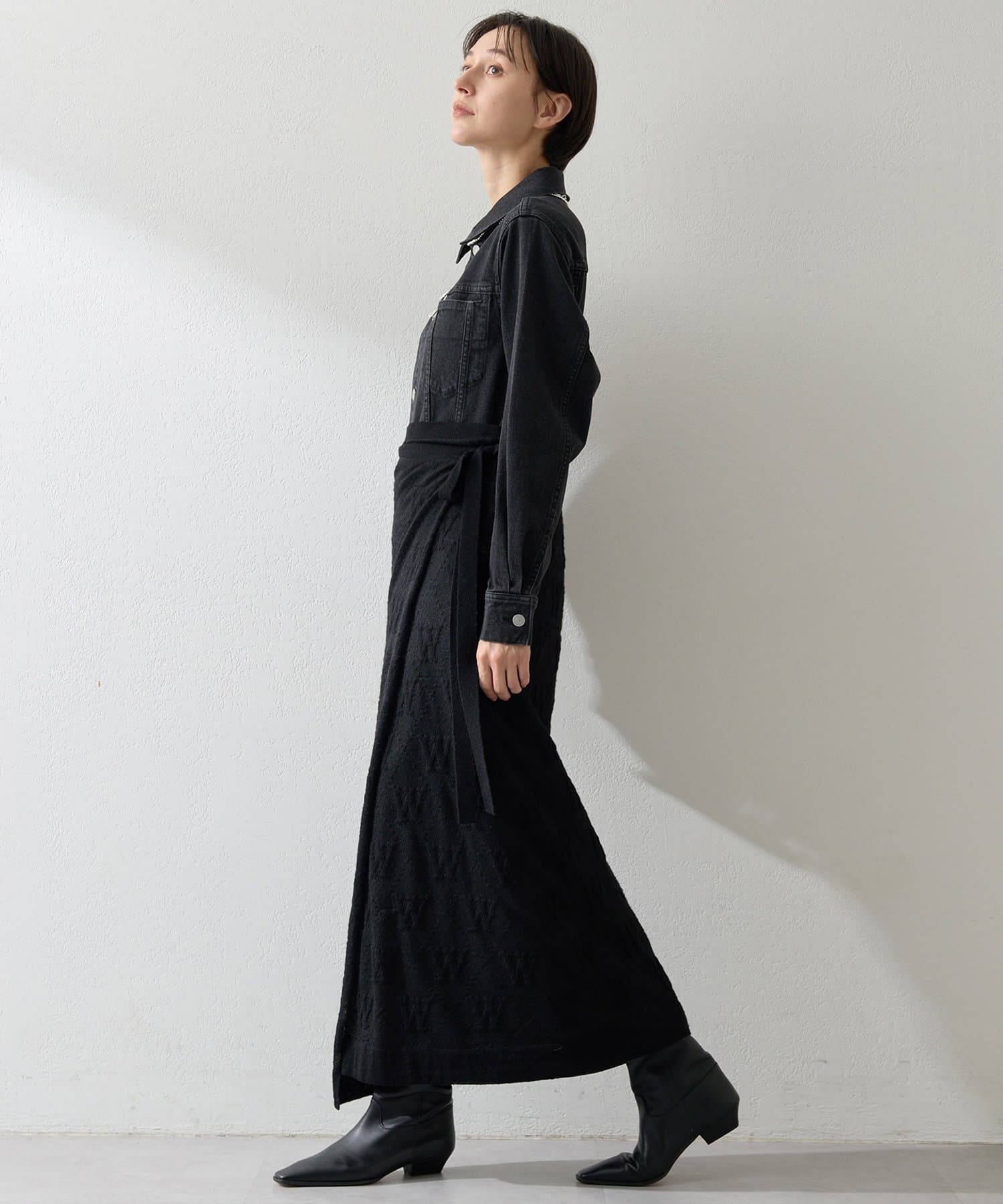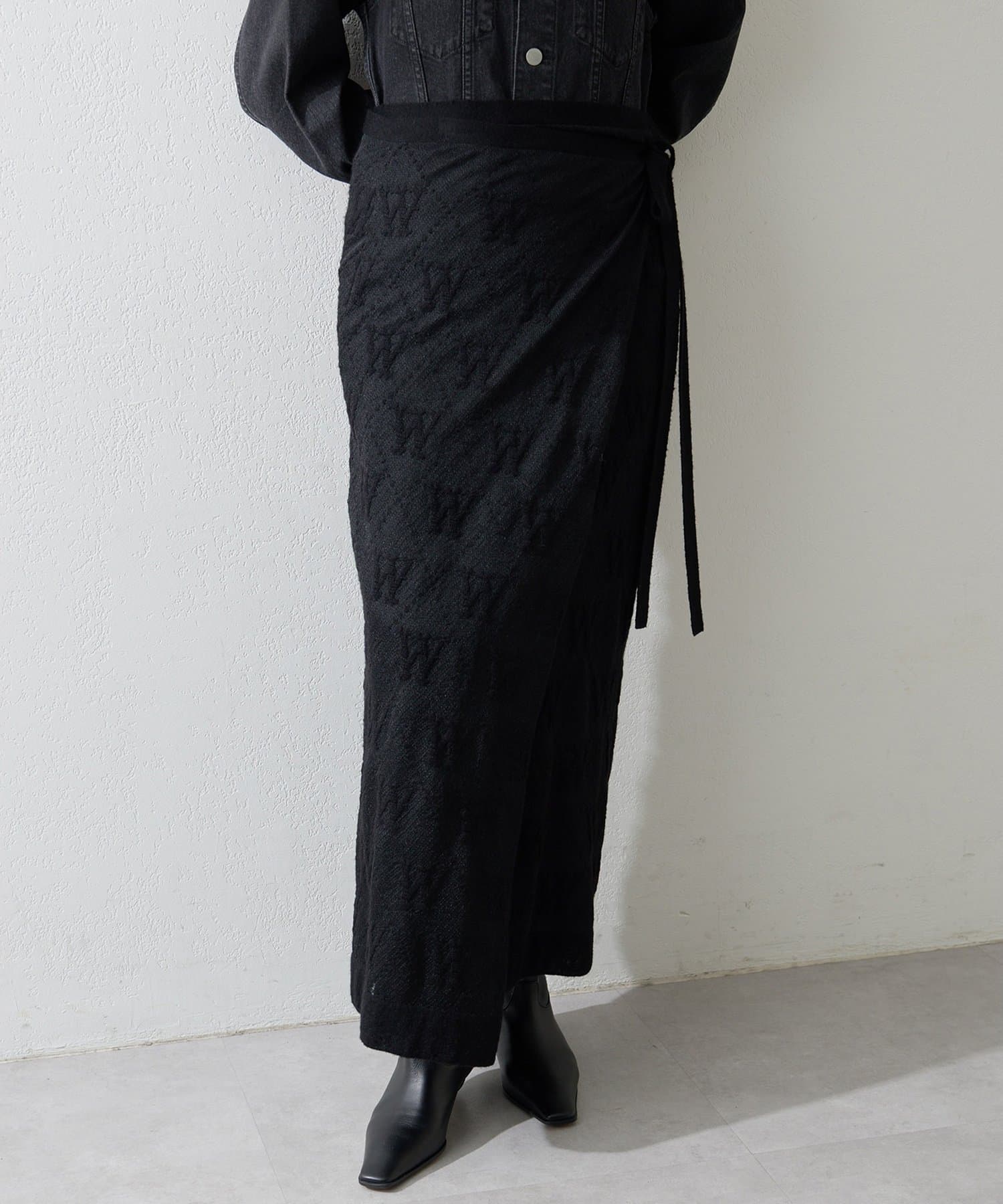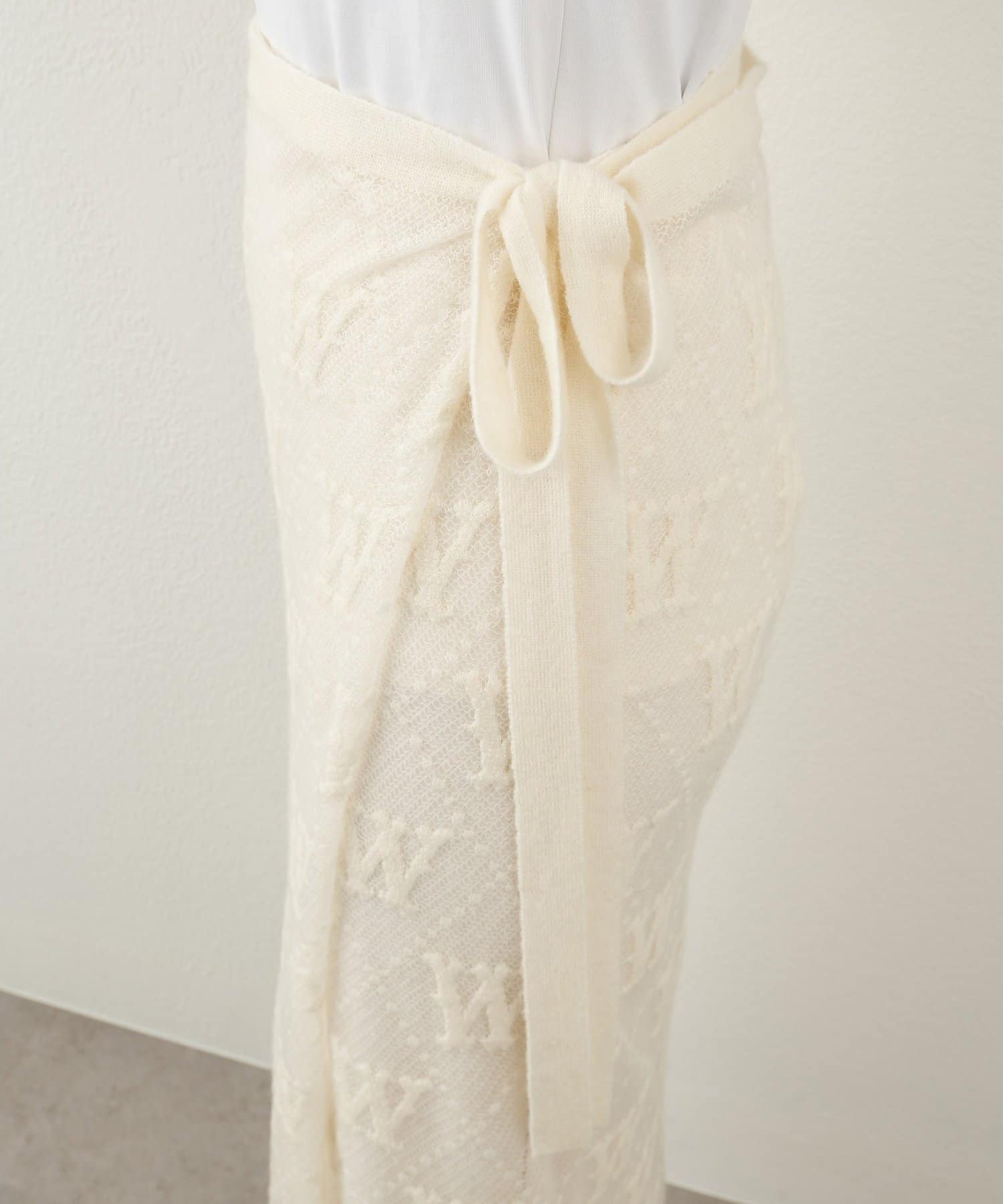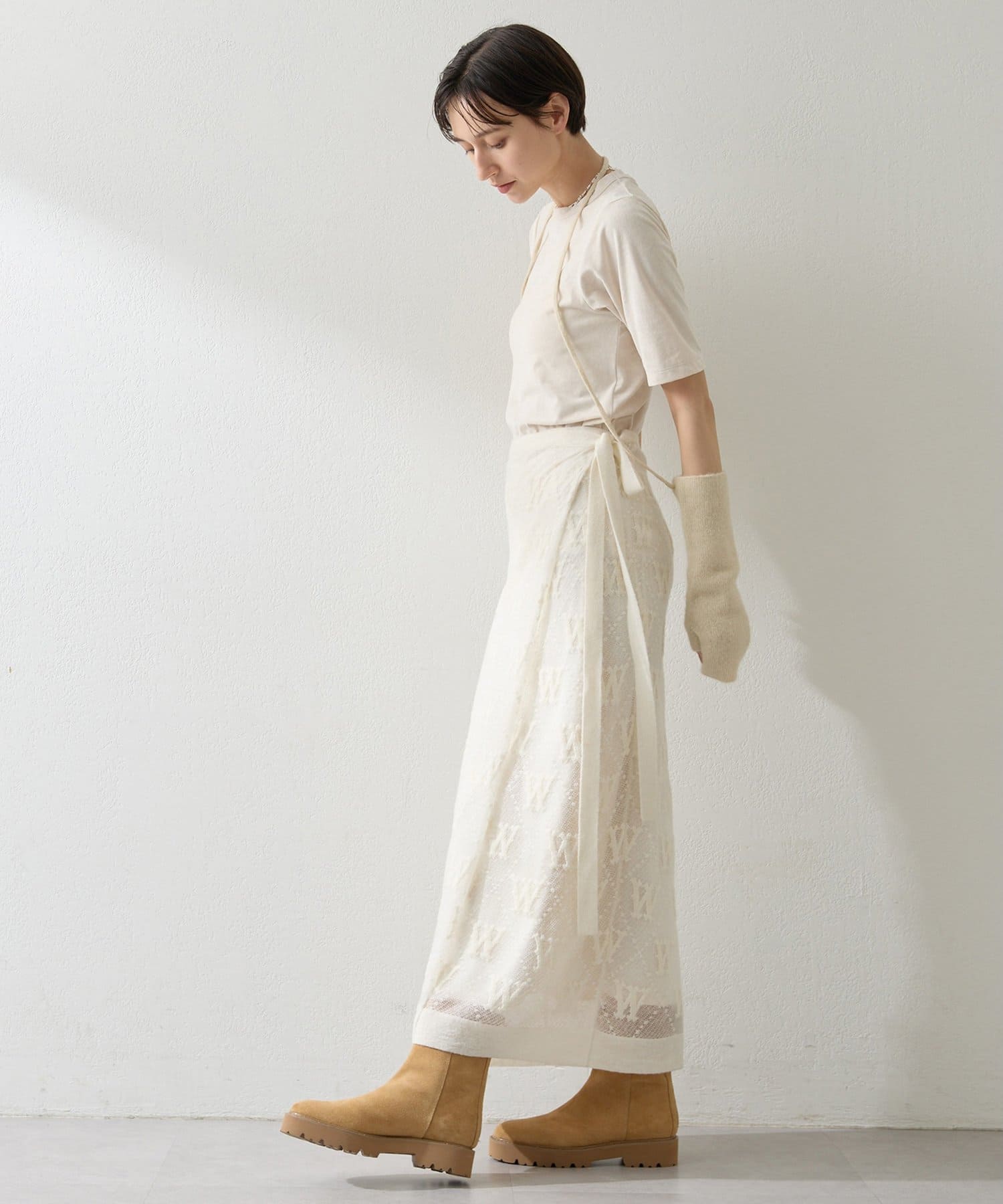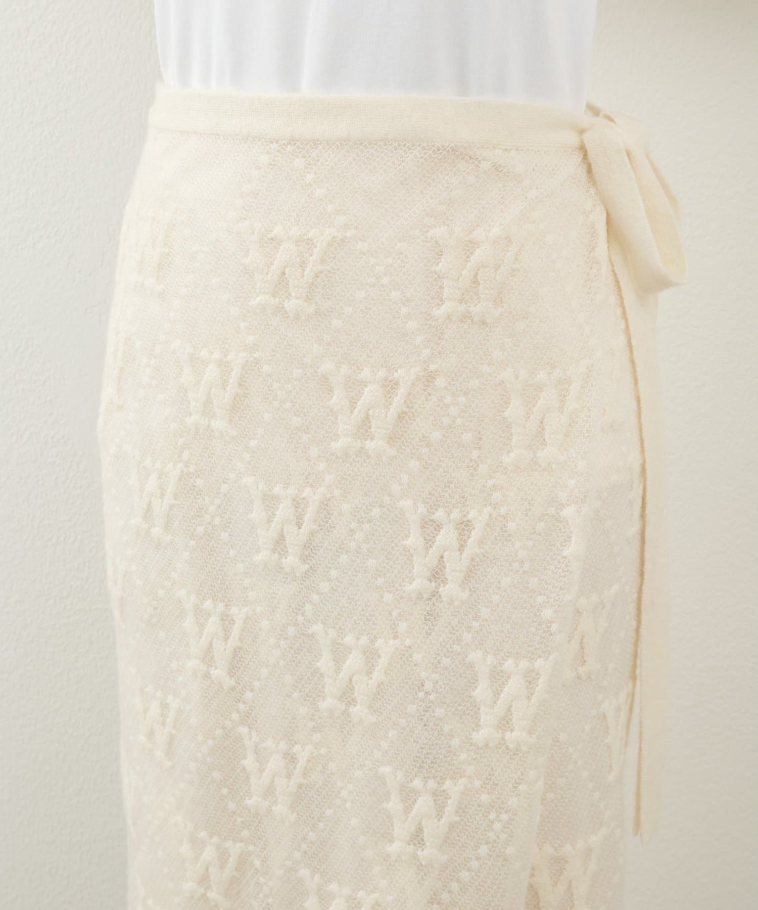 ■「W」の文字をあしらったジャガード編みがアクセントのニットスカート。
