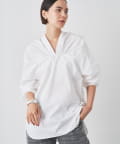 ■ハリ感がある綿ポリエステルのタイプライターにすることで甘すぎない印象に。