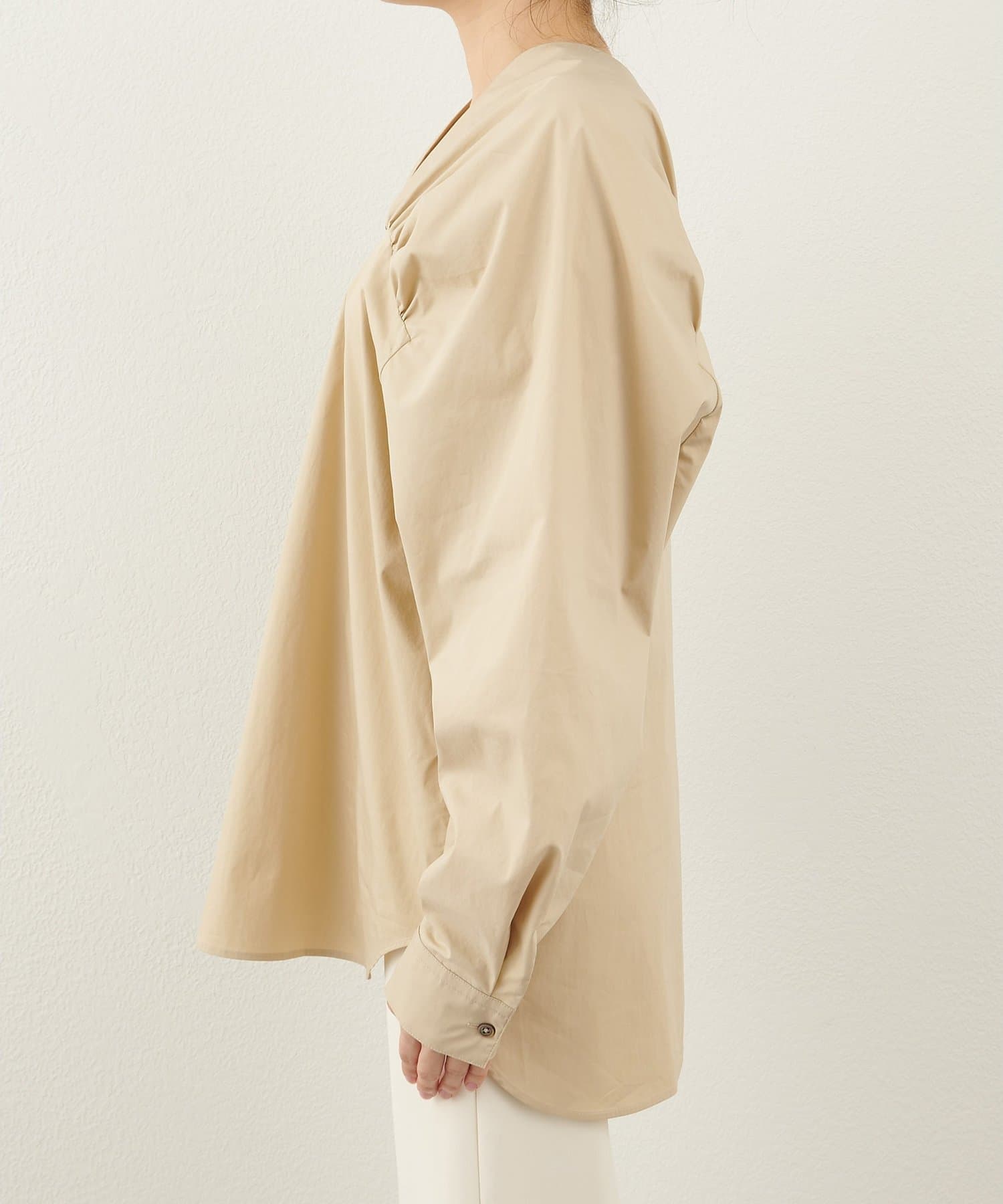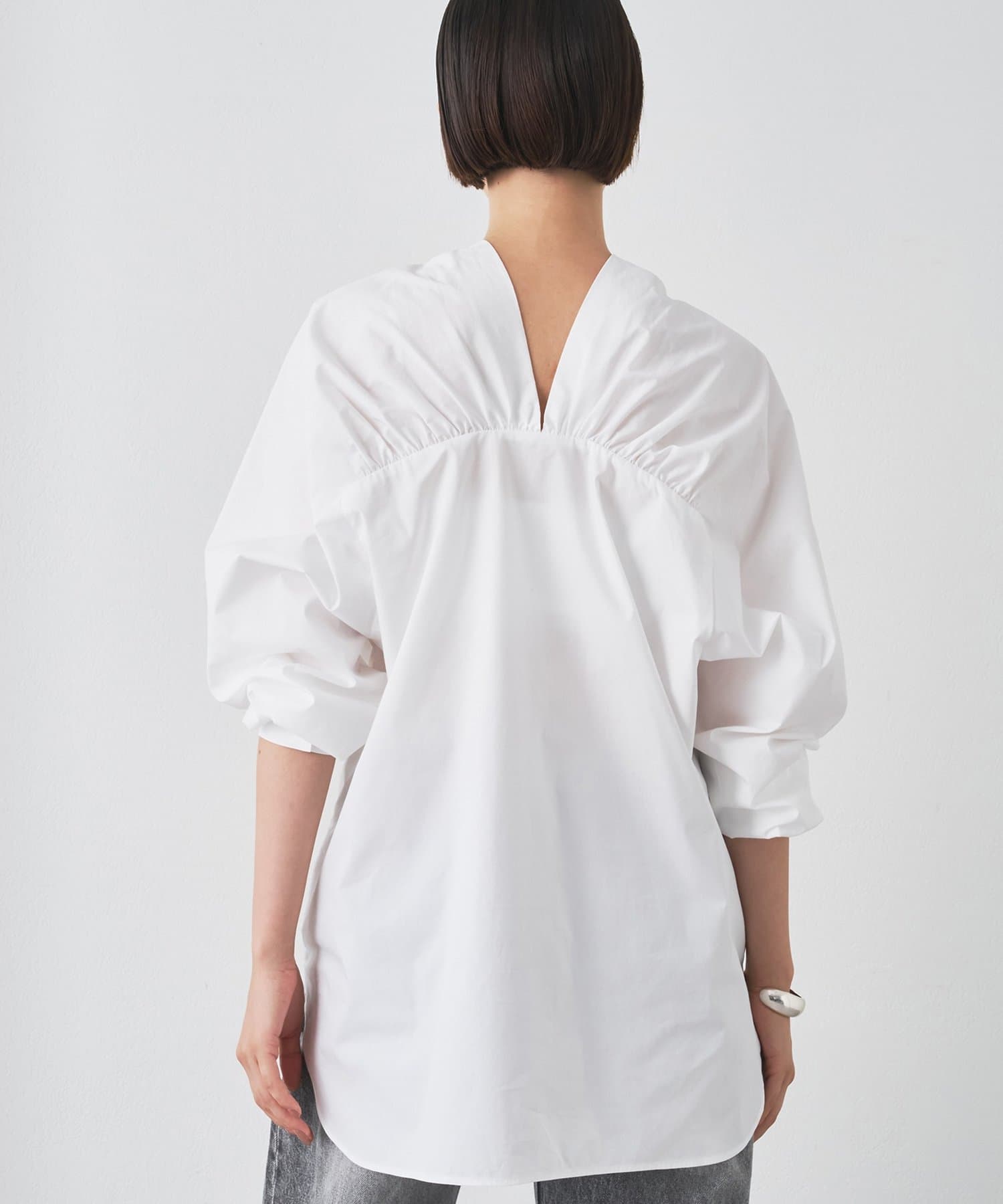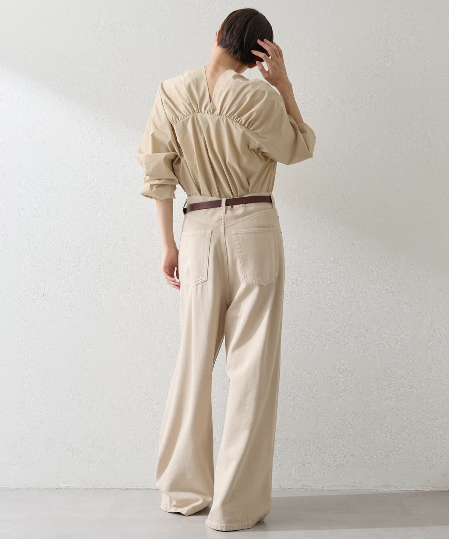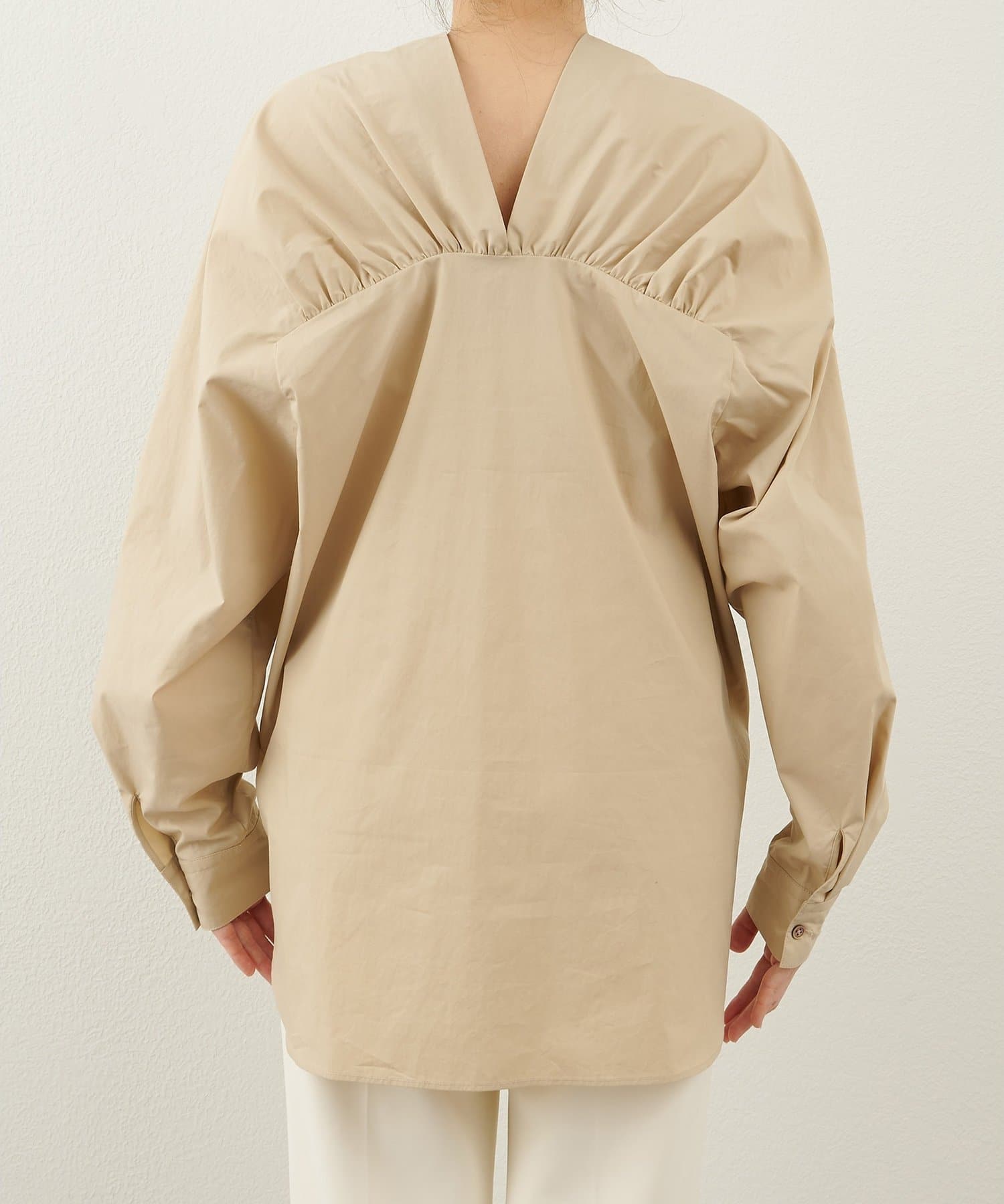 ■胸元に施したギャザーが着映え感のあるブラウス。