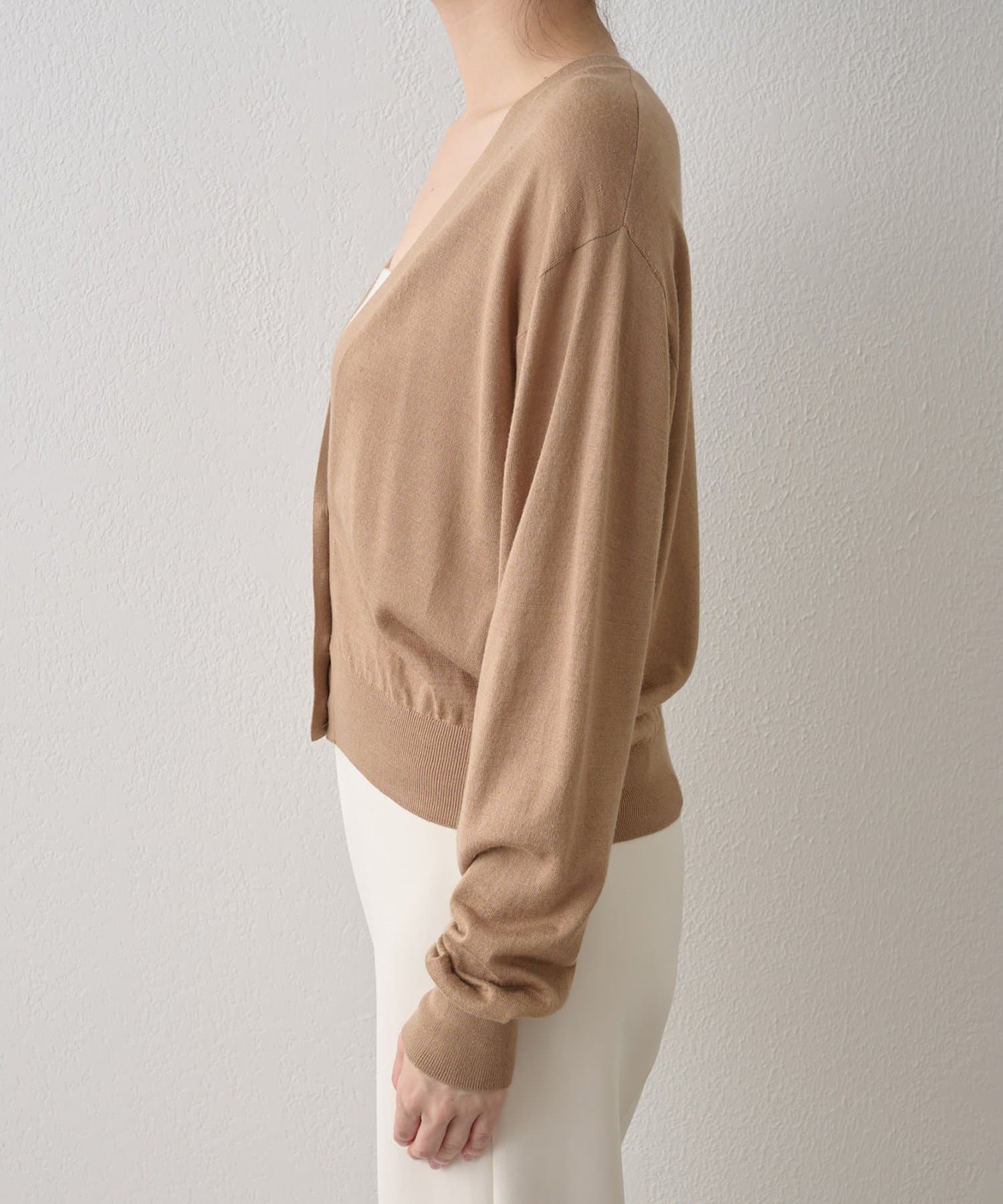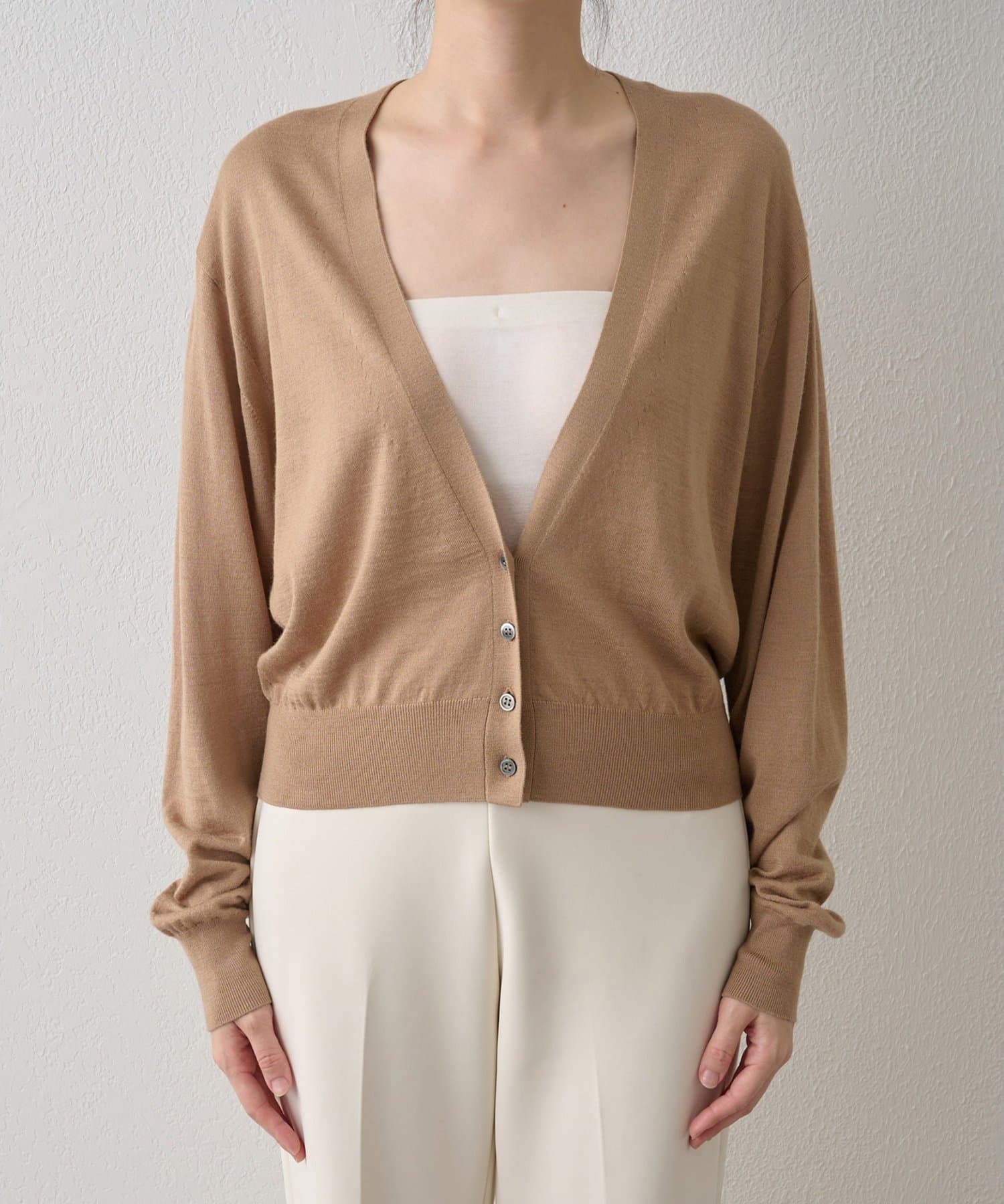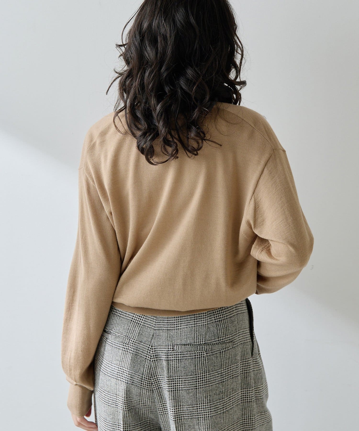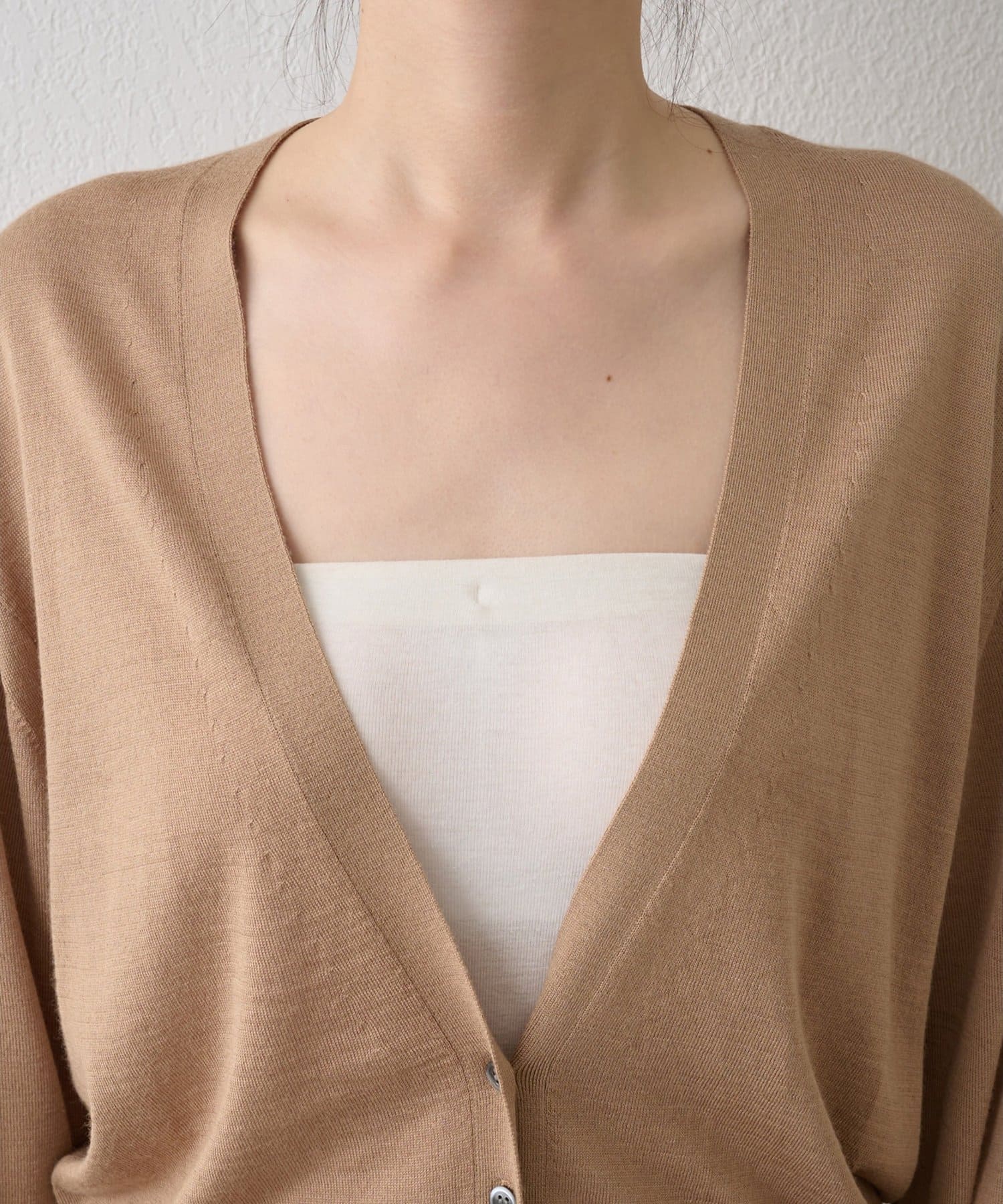 ■ざっくりとした深めの開きがポイントのVネックカーディガン。