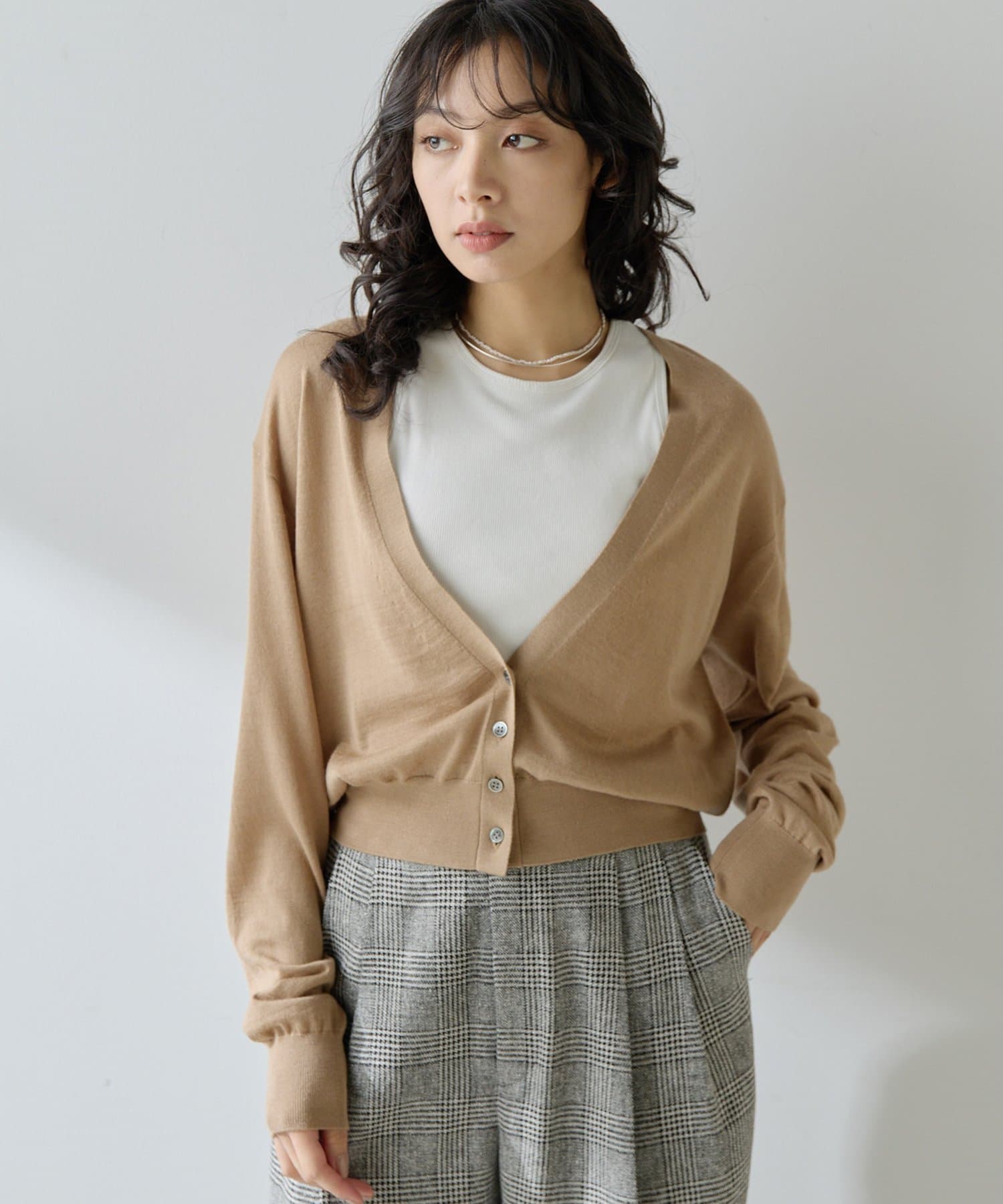 ■カットソーやシャツの上に羽織るのはもちろん、ベアトップ合わせでボタンを閉じてもサマになり、ロングシーズン活躍できる一枚。