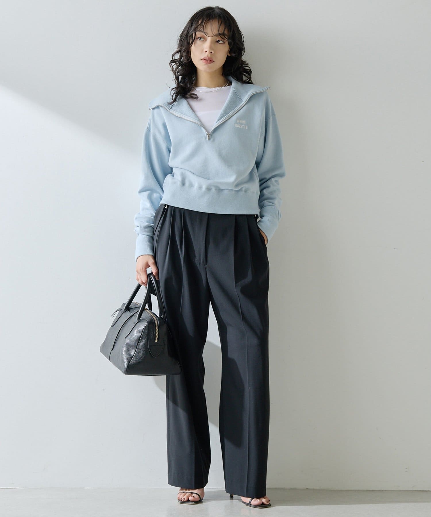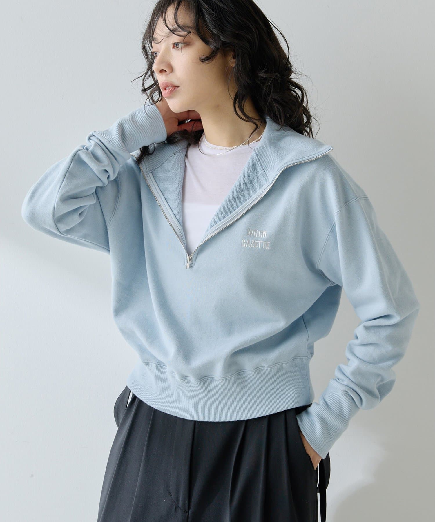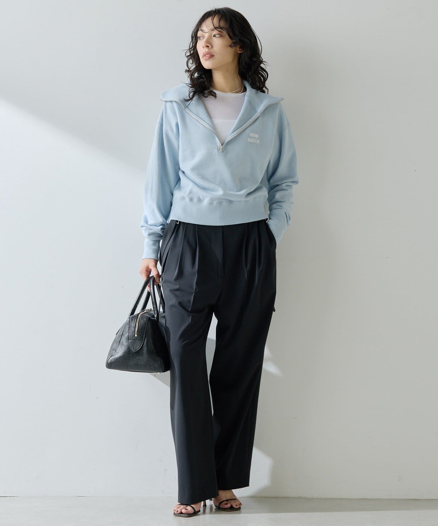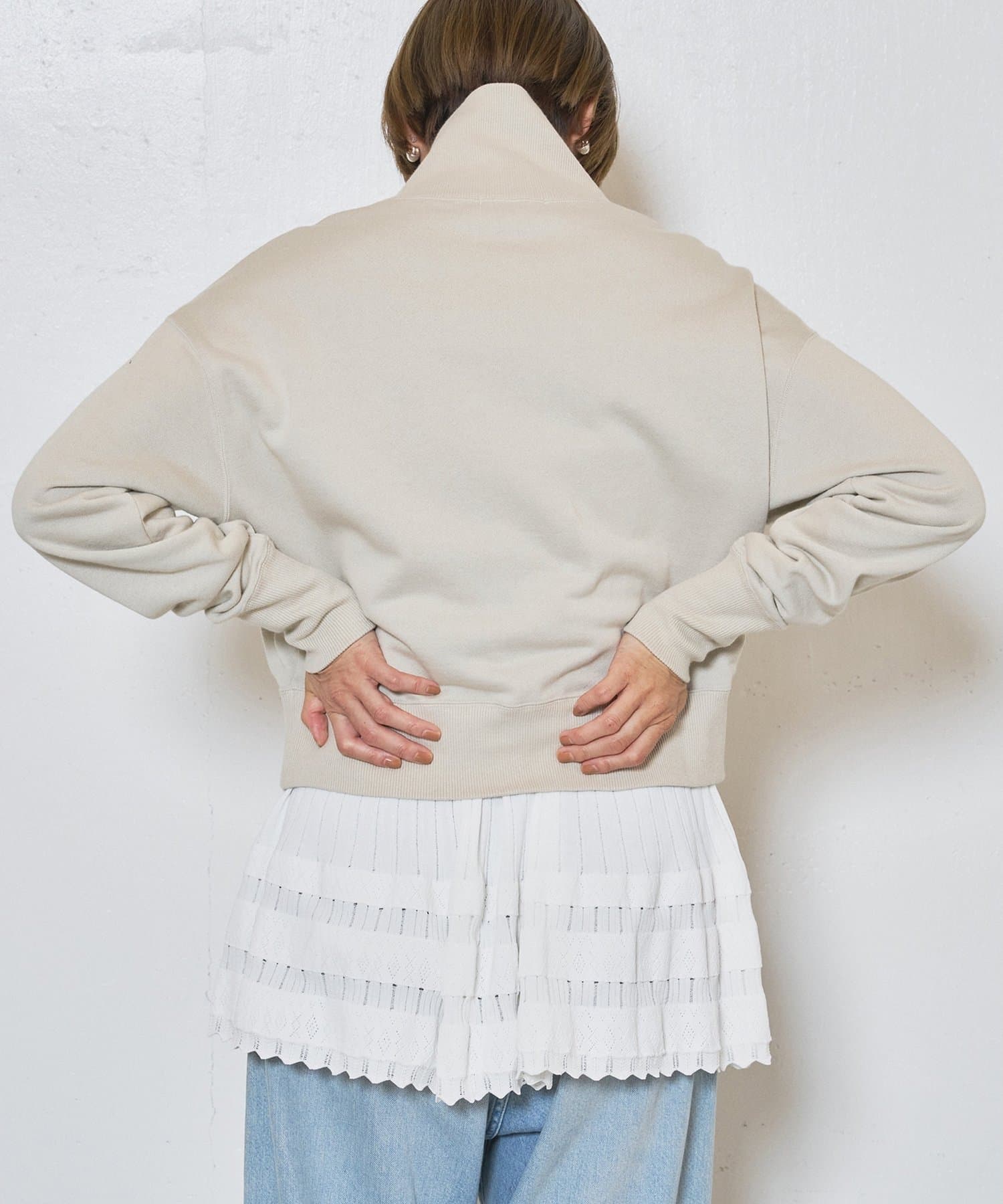 ■ハーフジップ×短丈でバランス良く決まり、幅広いボトムに合わせやすいのが嬉しいポイント。