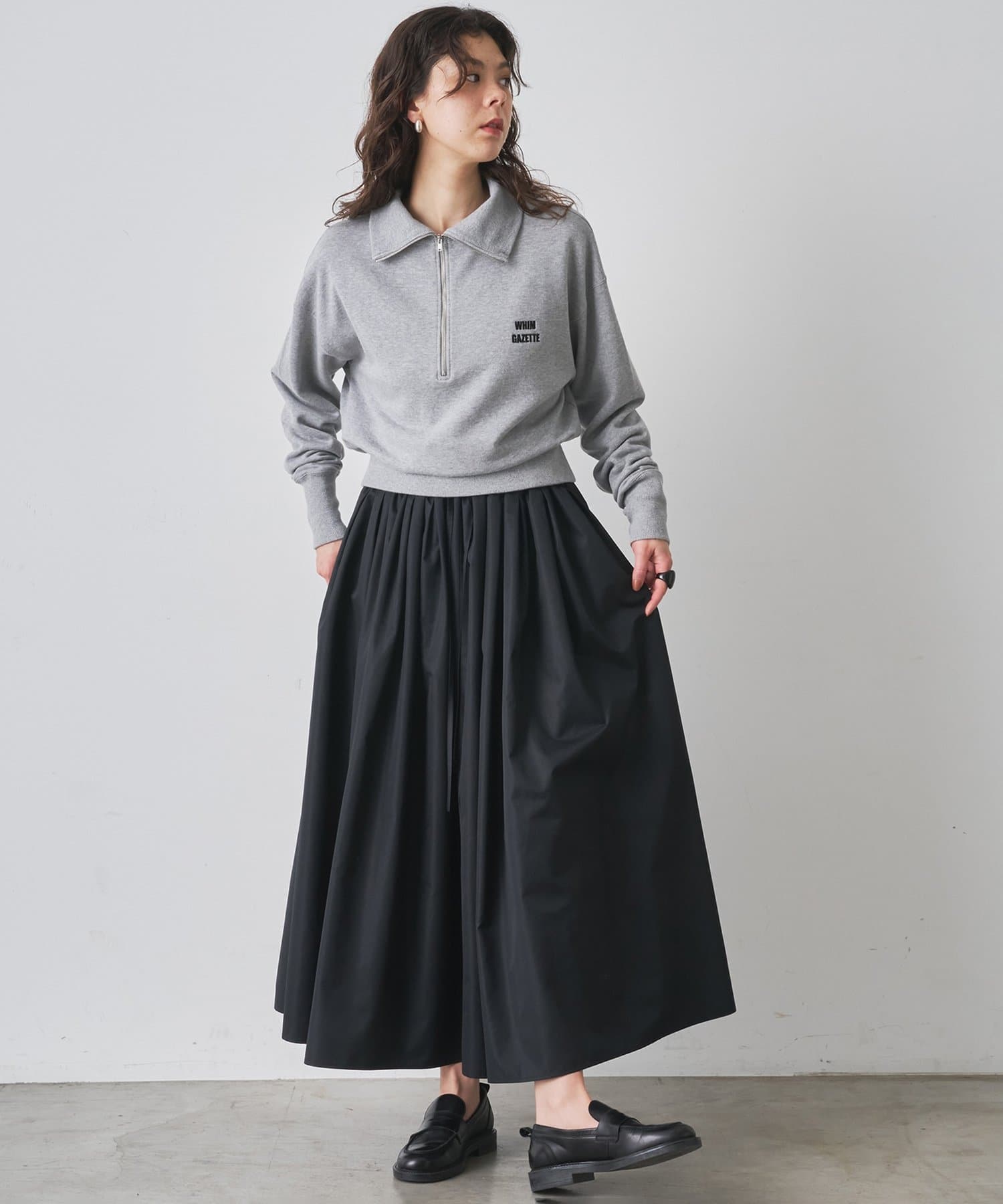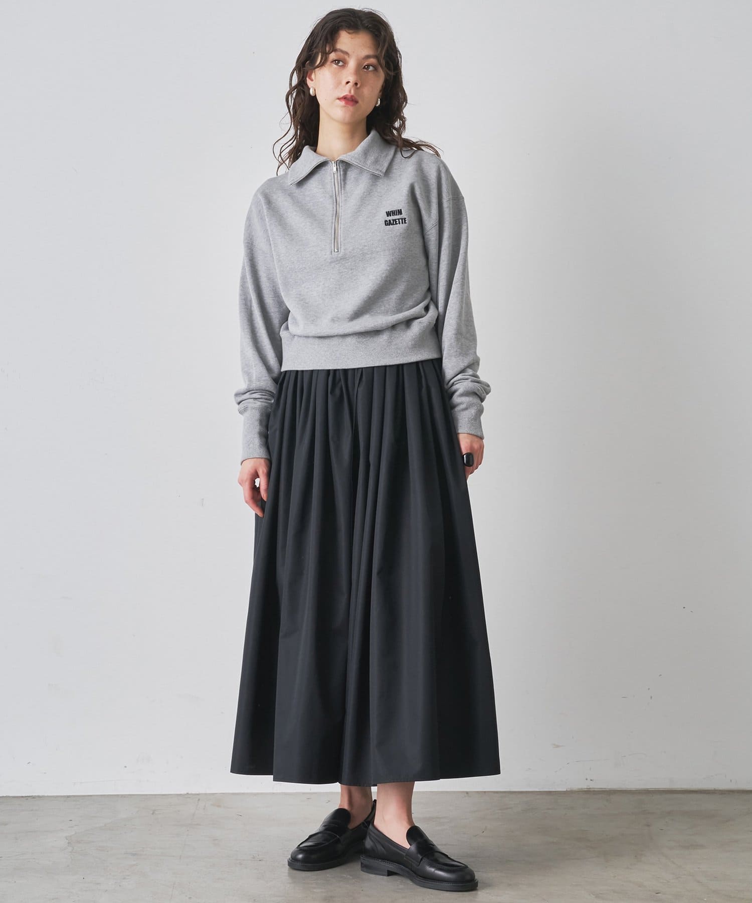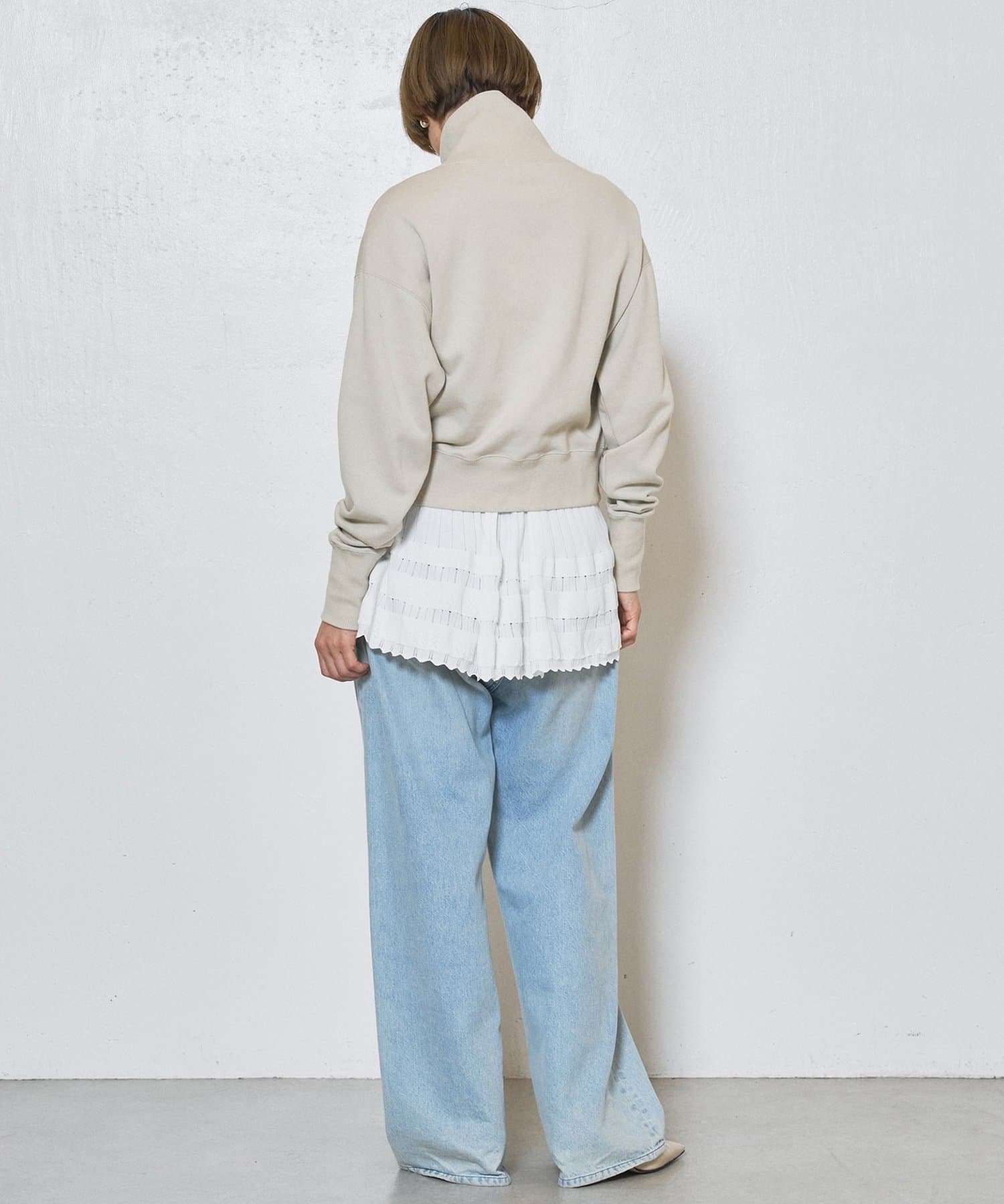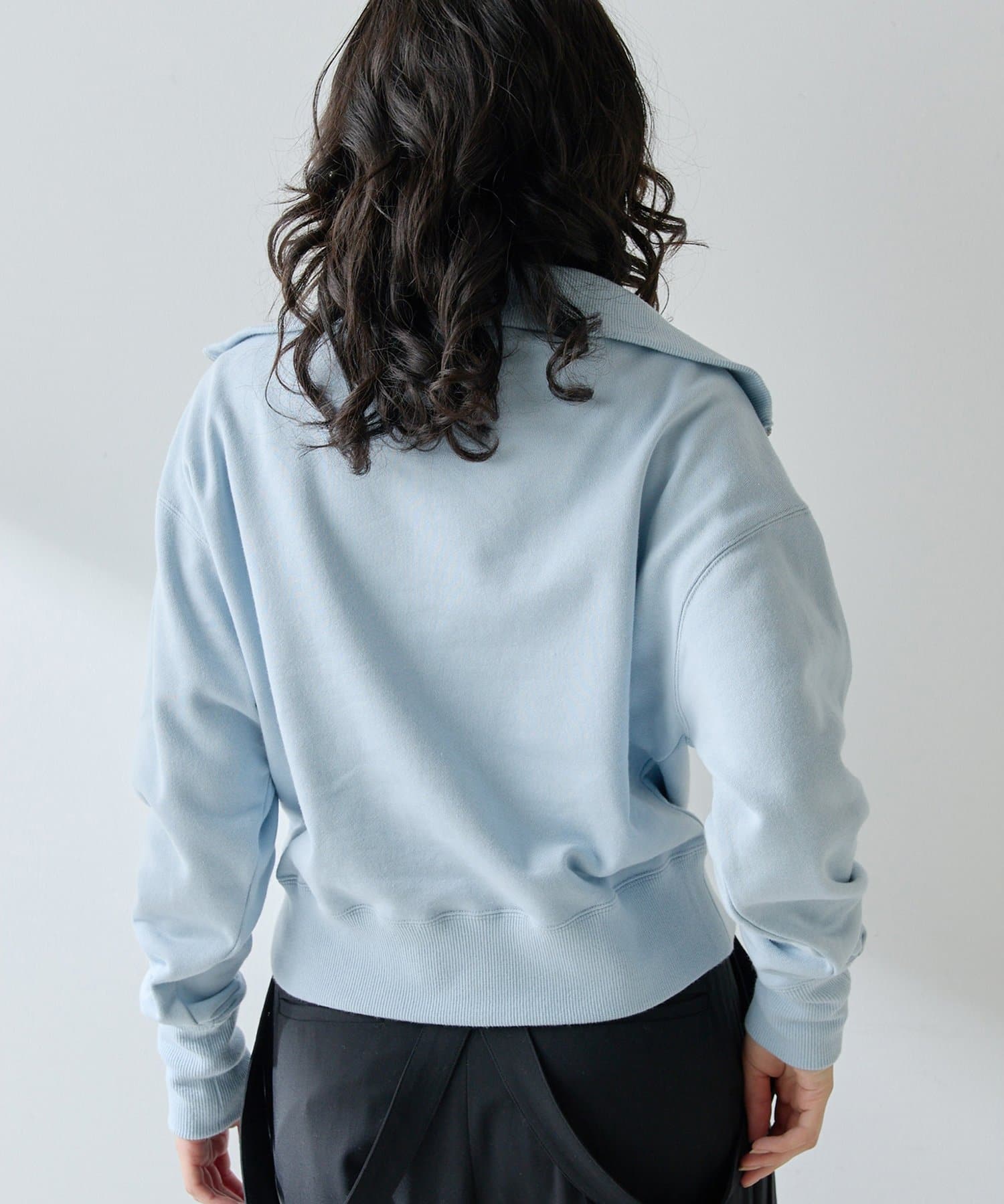 ■ハーフジップ×短丈でバランス良く決まり、幅広いボトムに合わせやすいのが嬉しいポイント。