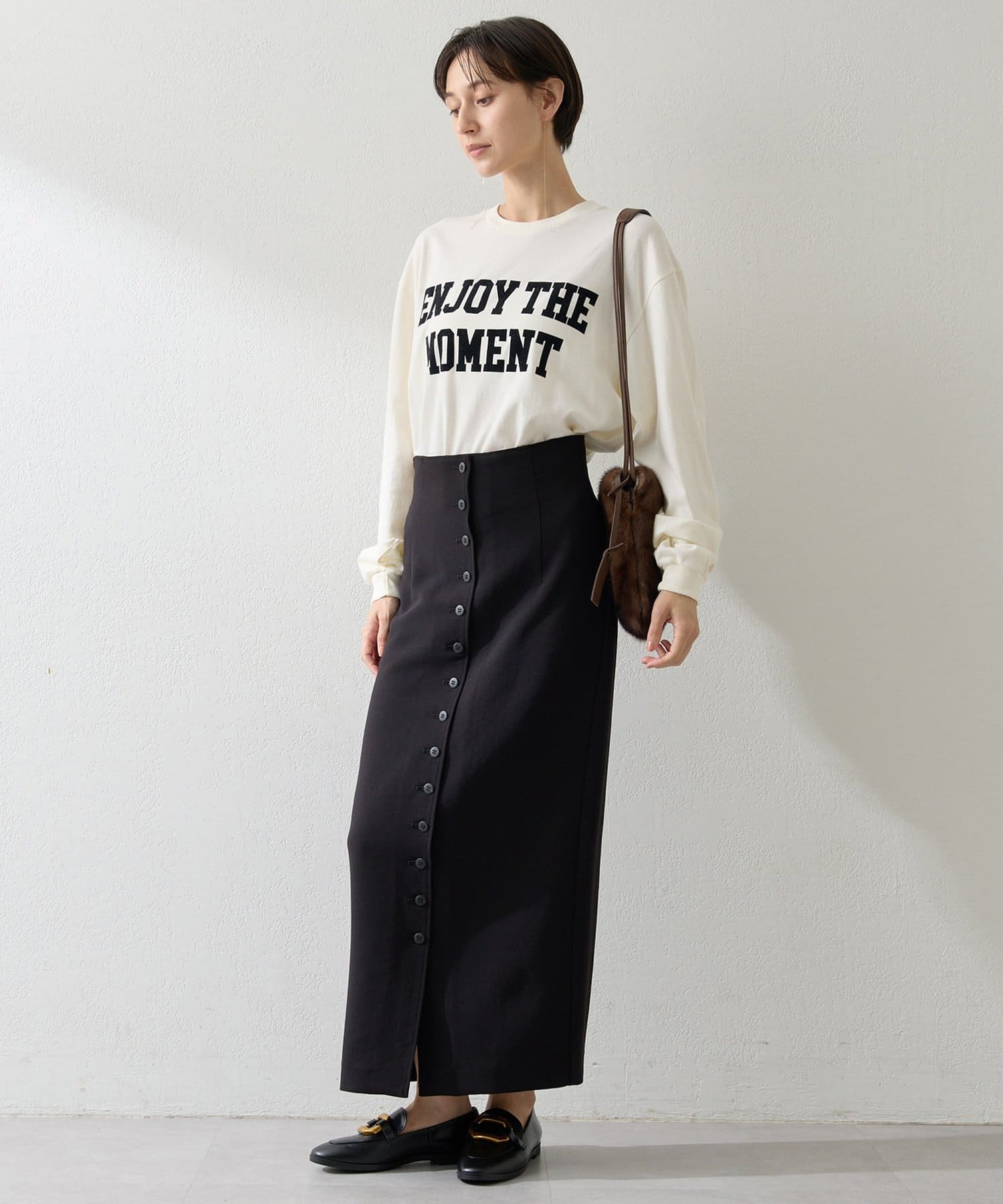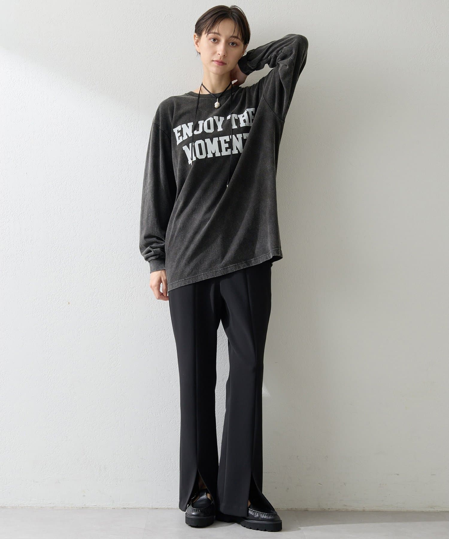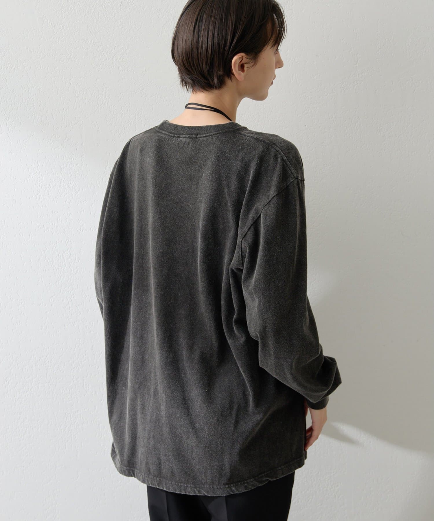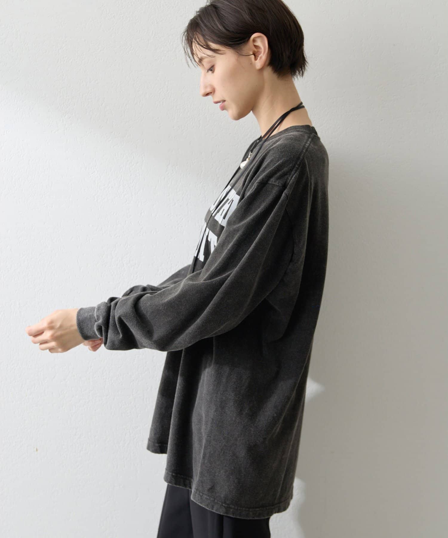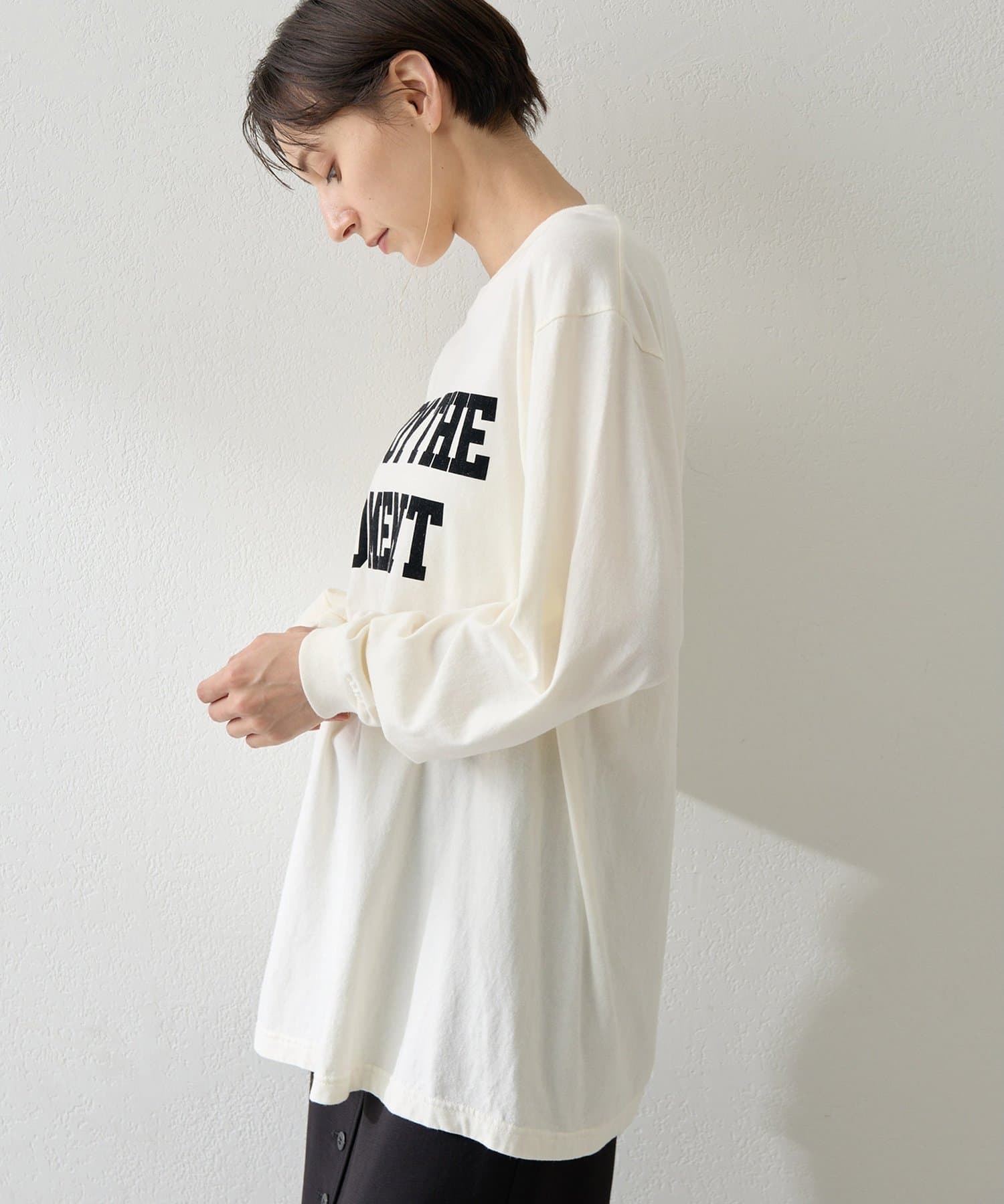 ■フロッキープリントがポイントになったロングスリーブTシャツ。