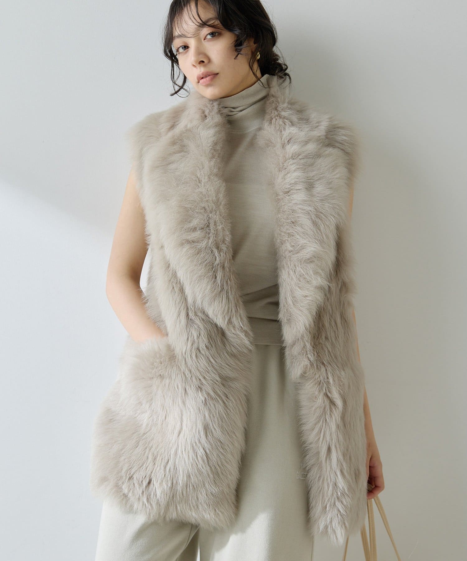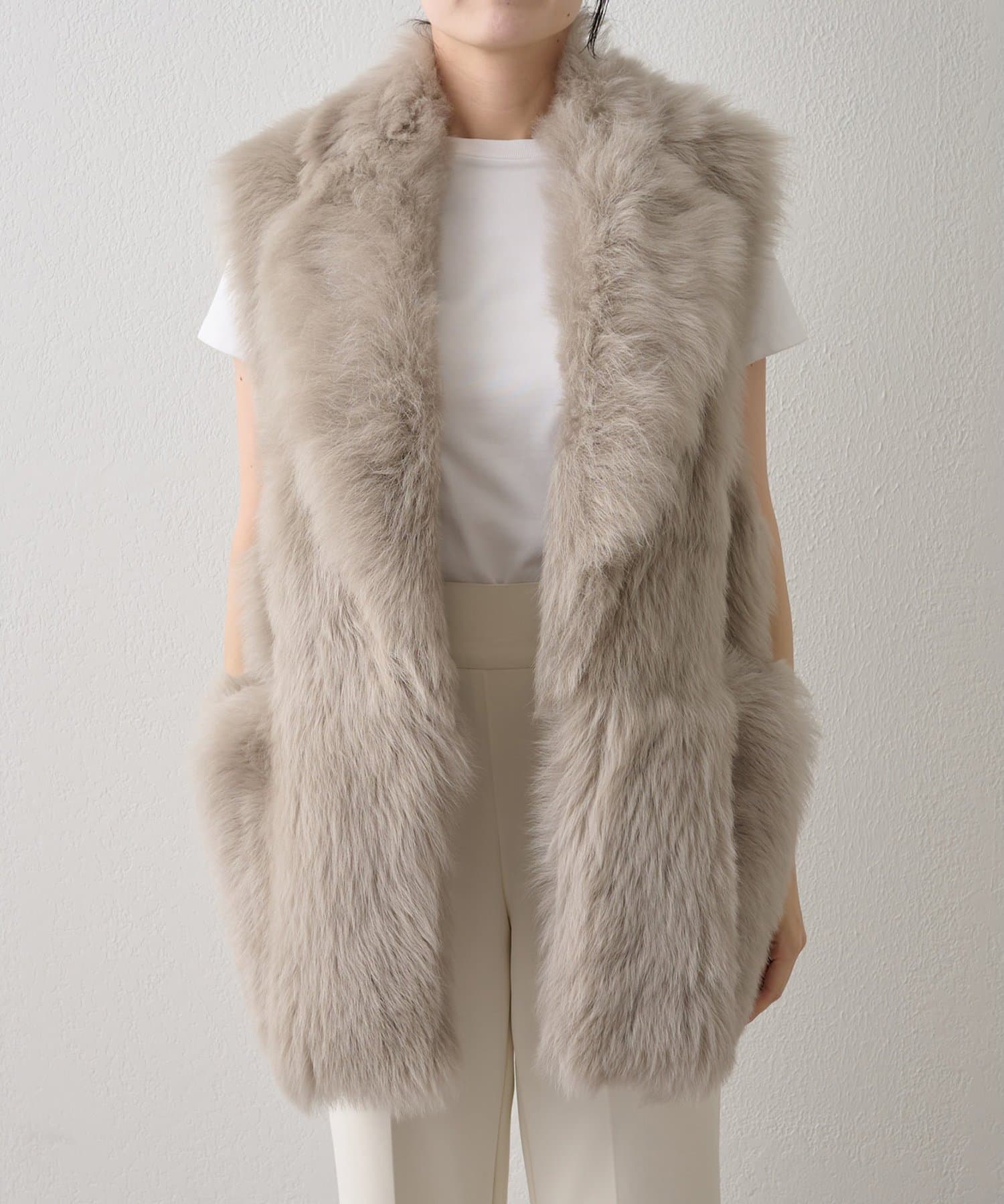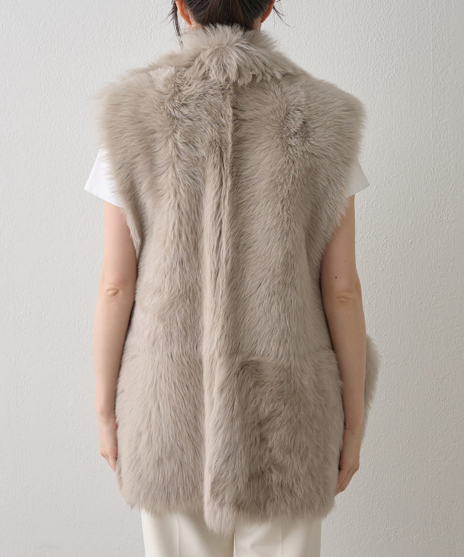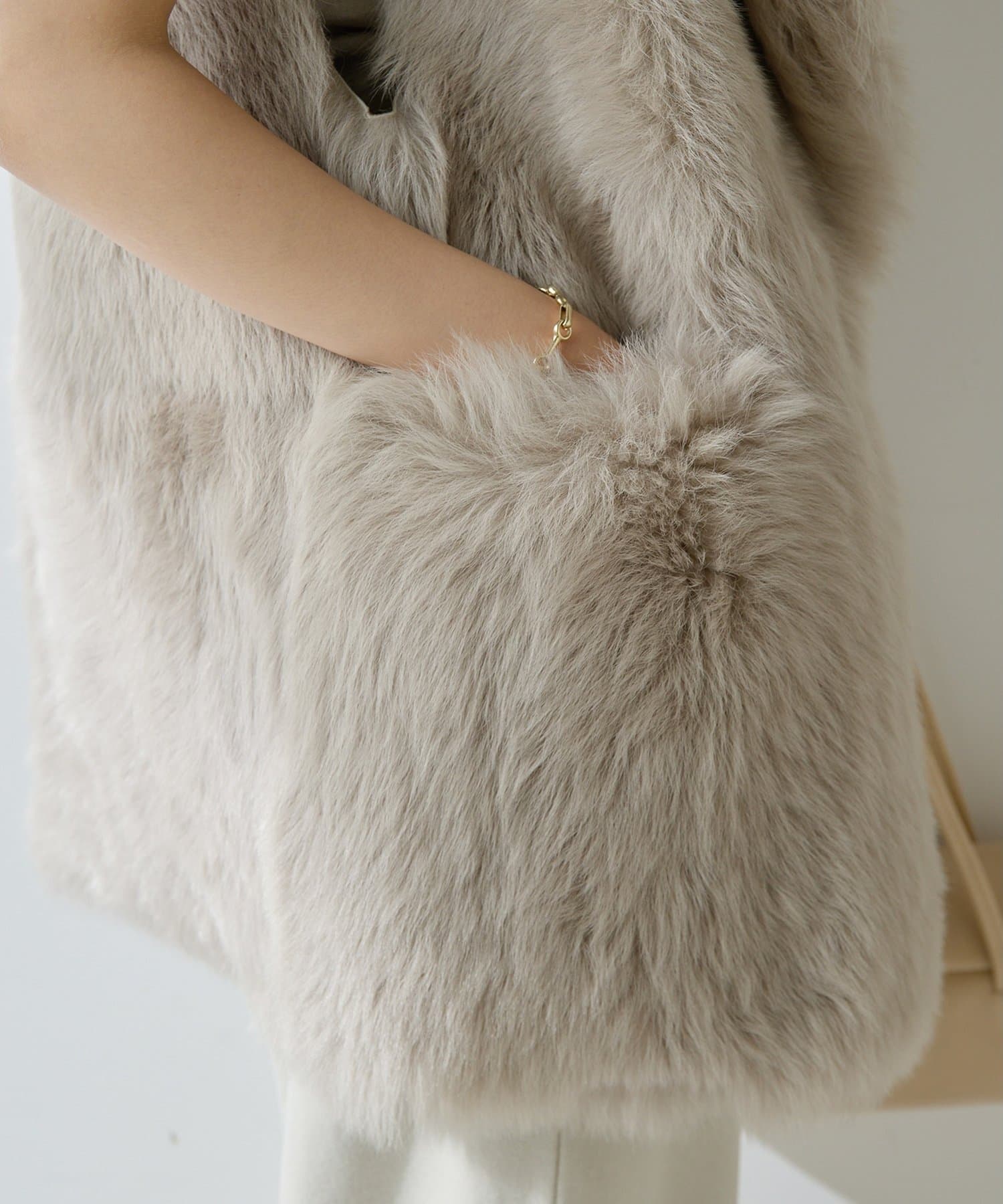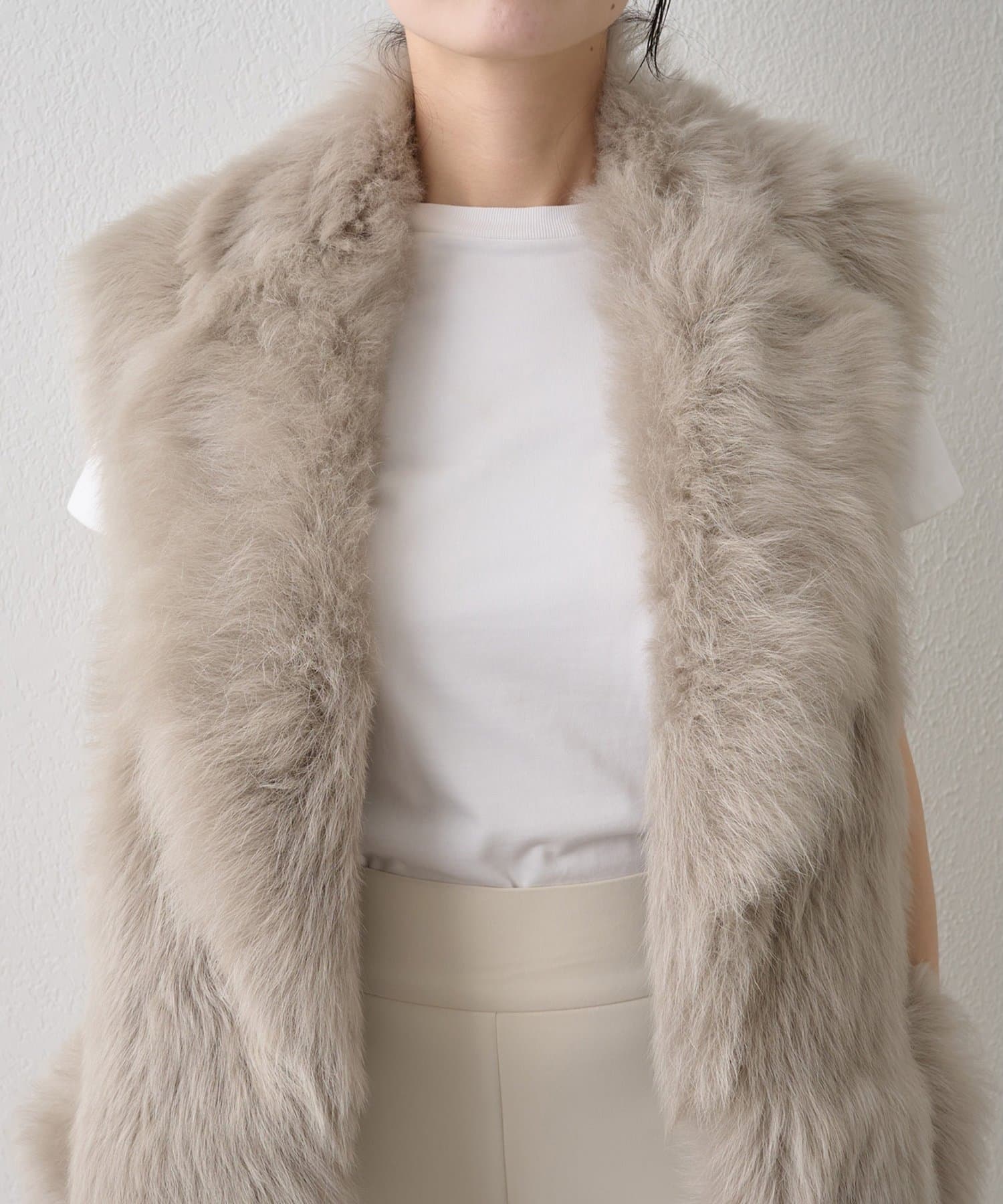 ■テーラーカラーを採用したオーバーサイズのファーベスト。
