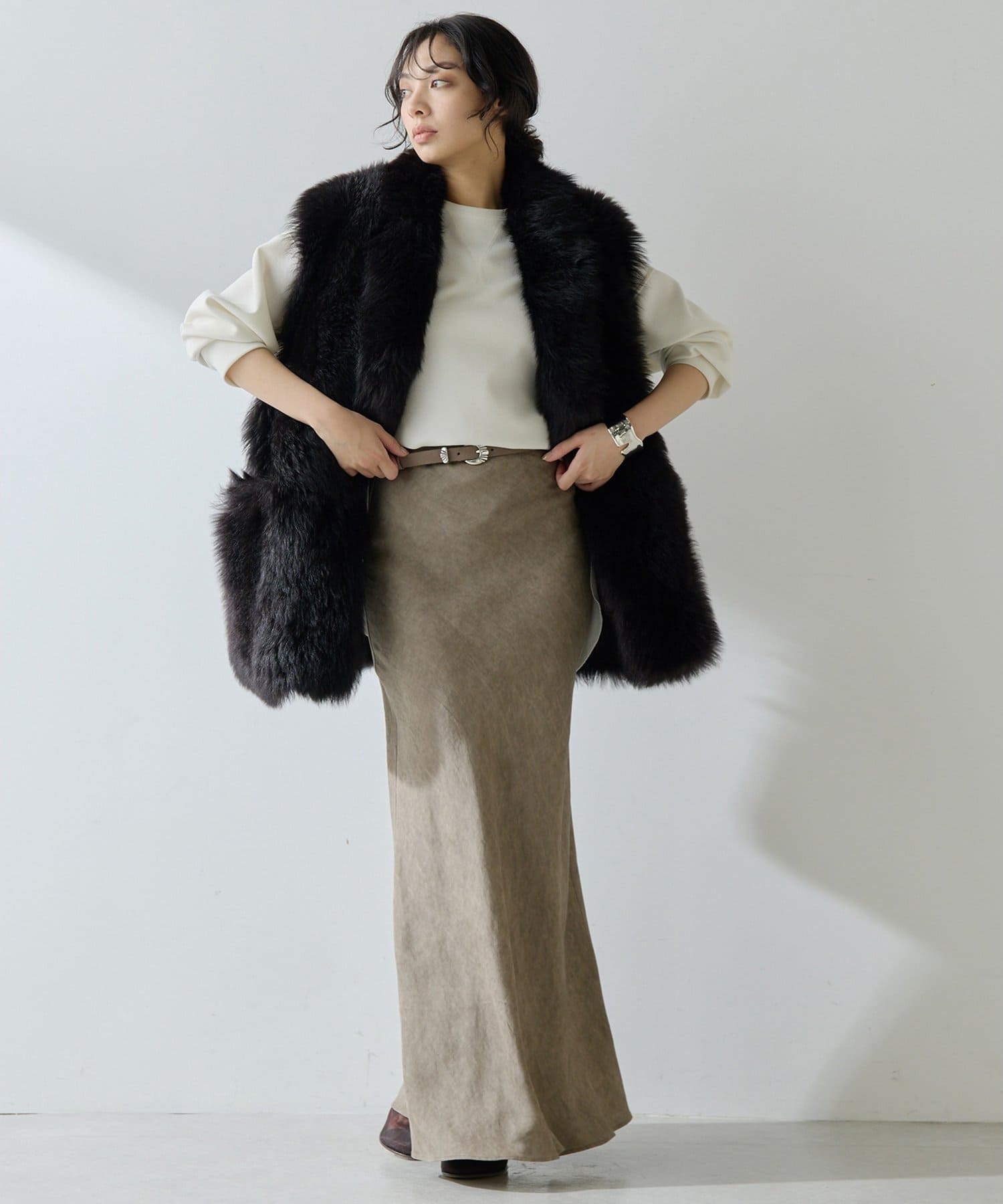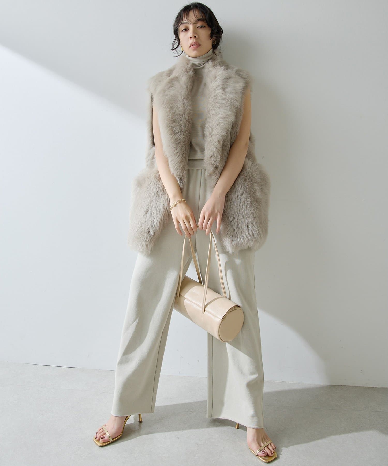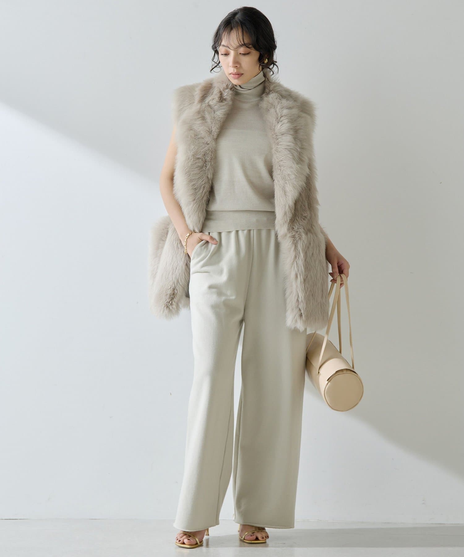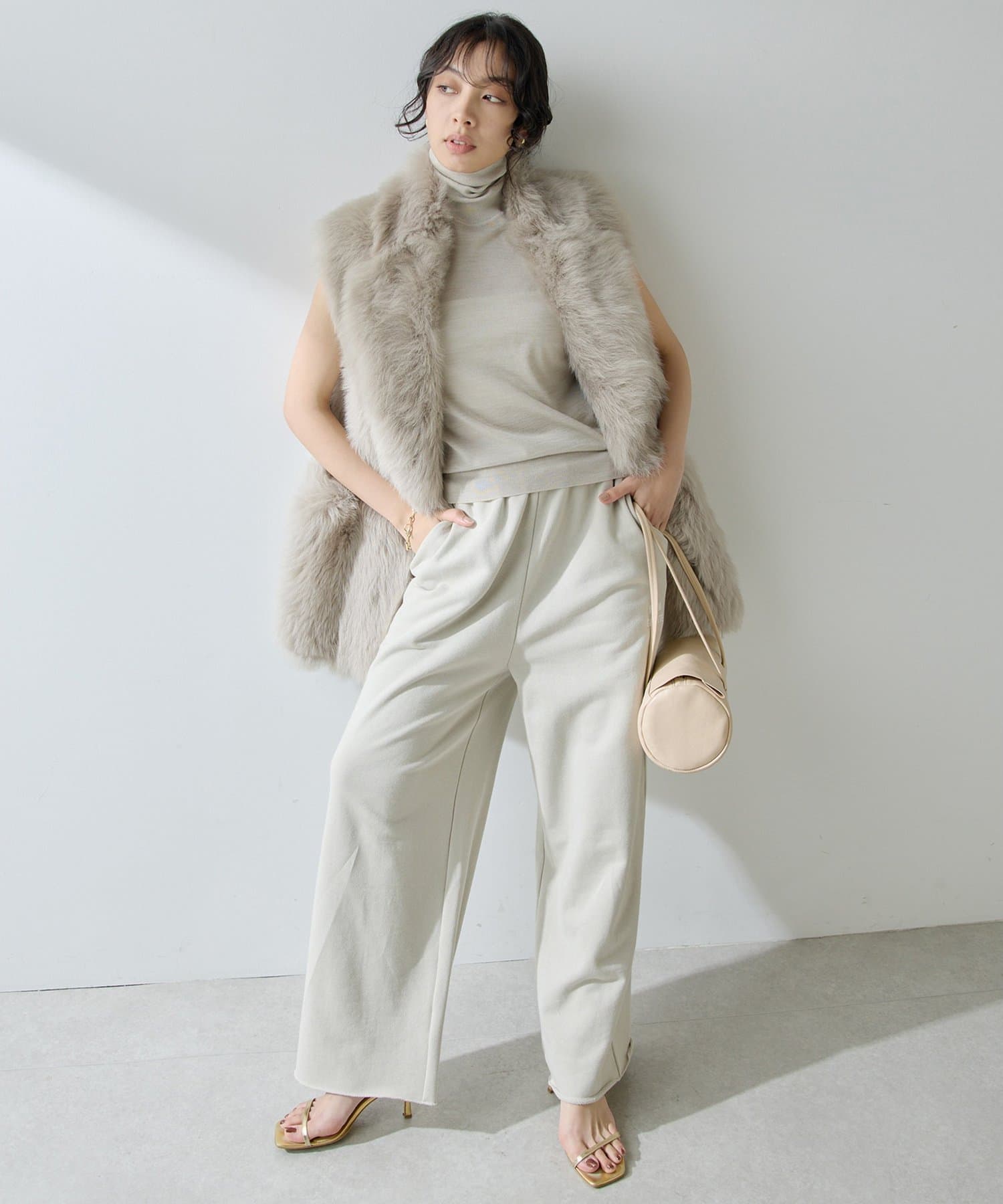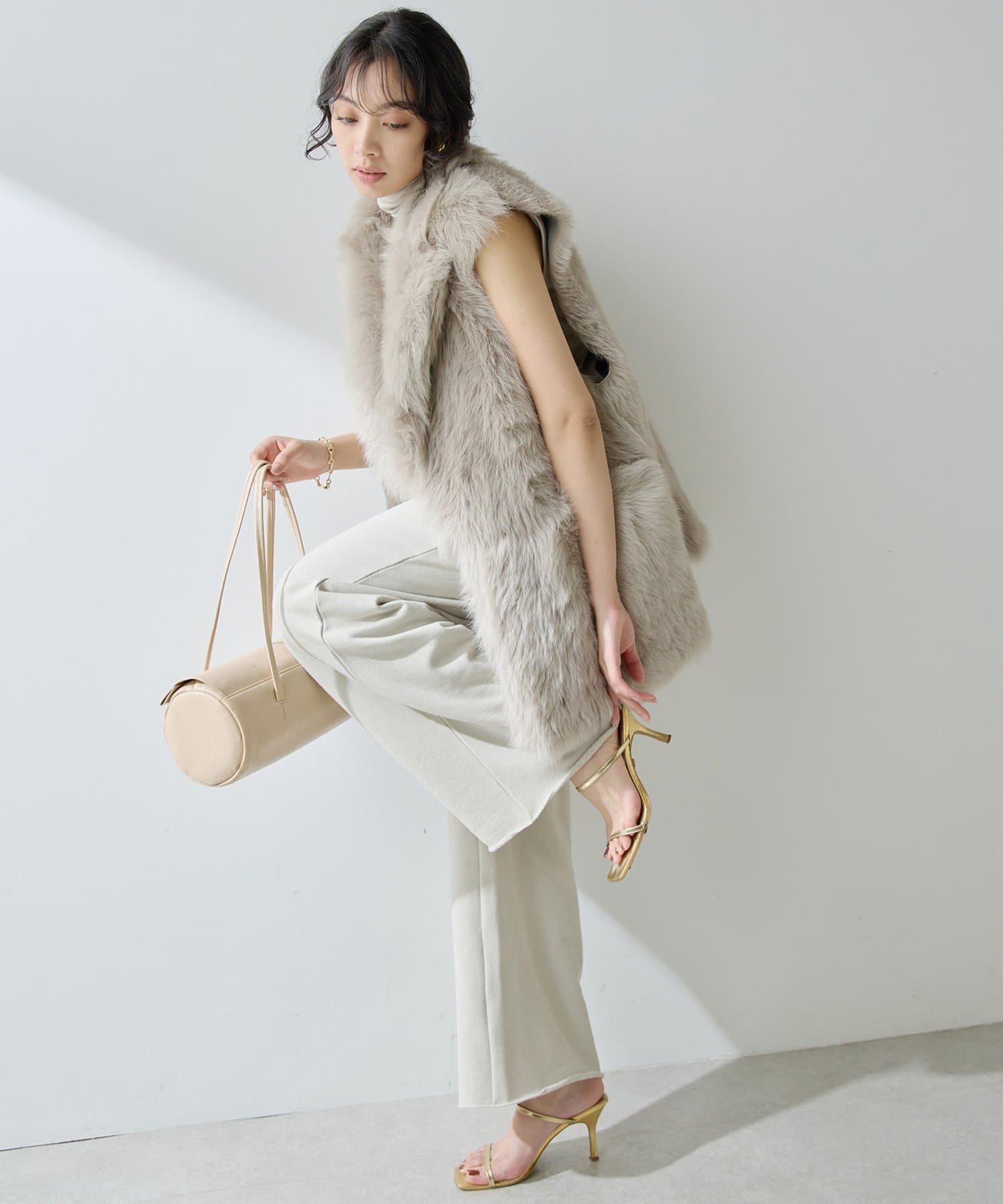 ■テーラーカラーを採用したオーバーサイズのファーベスト。