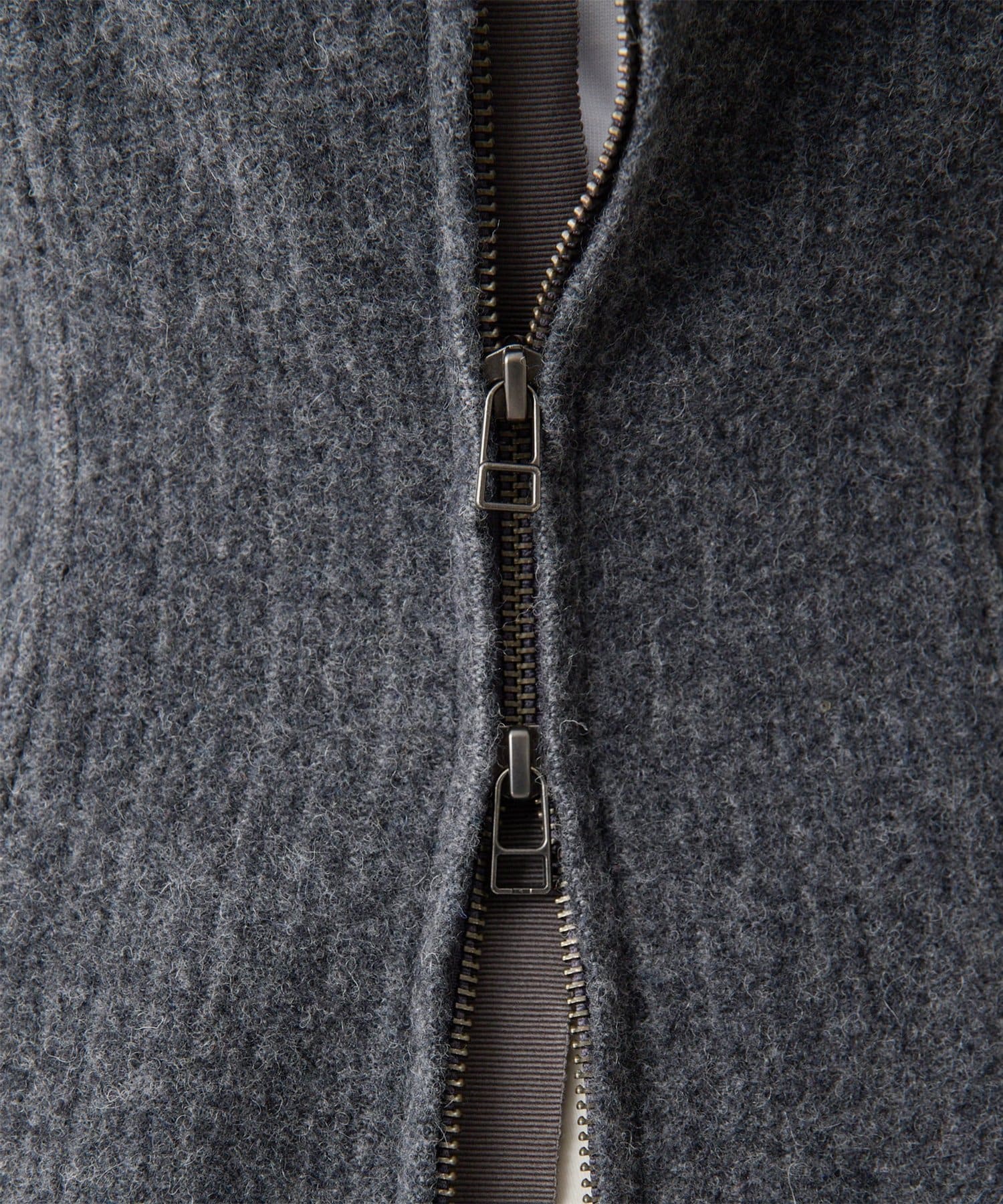 ■リサイクルウールを使用し、コーデュロイ風のピケ組織で表情を作った生地が魅力。