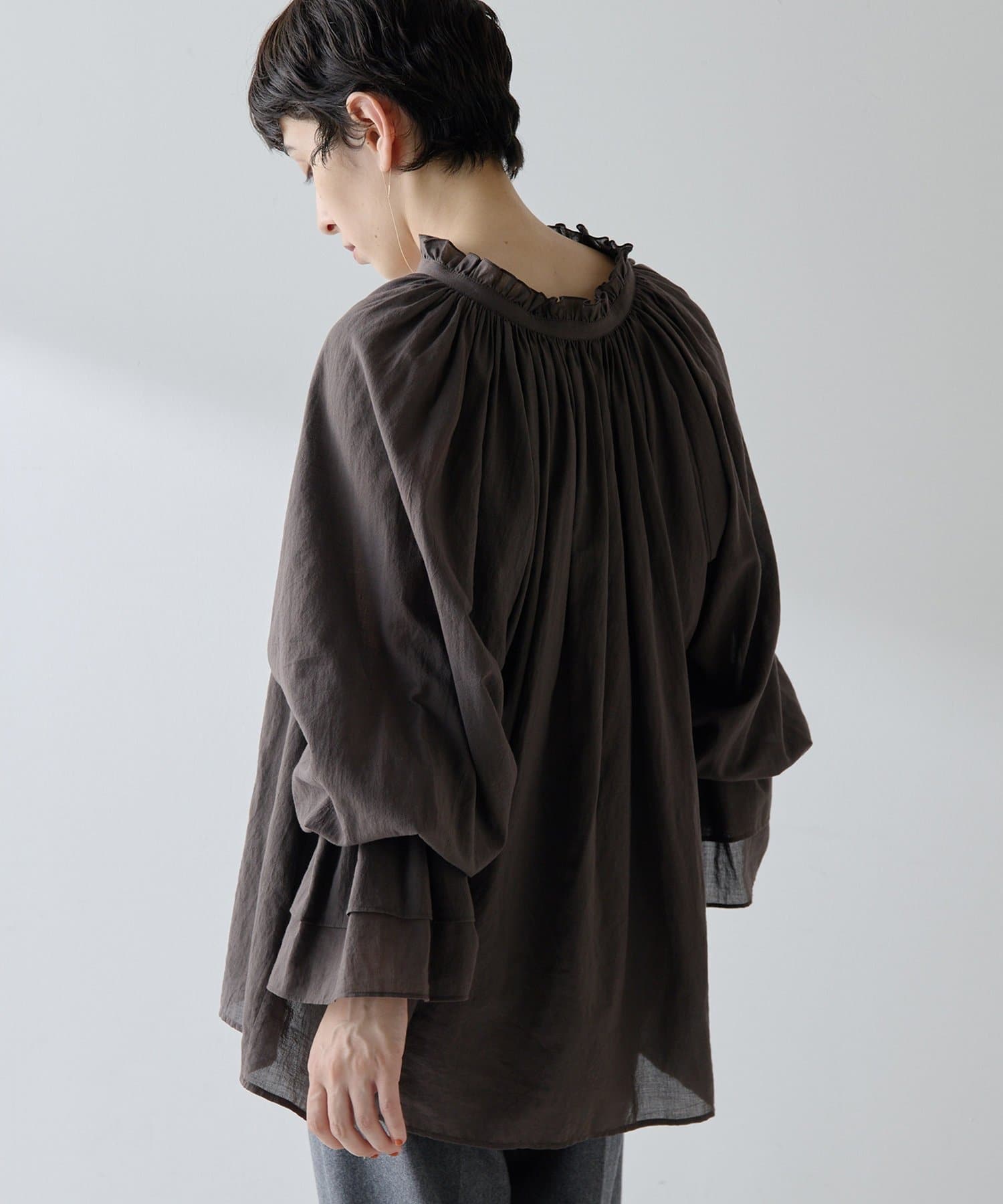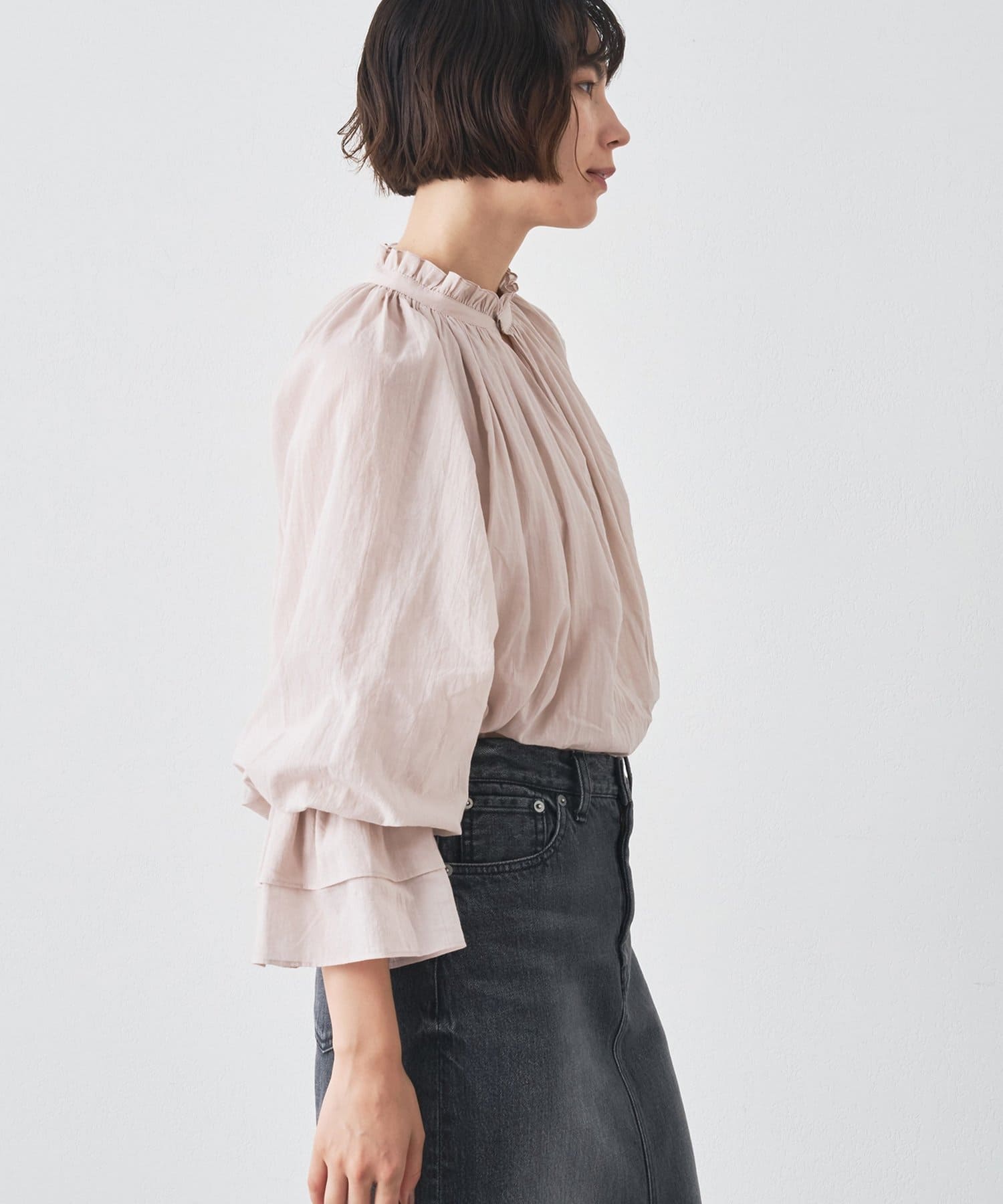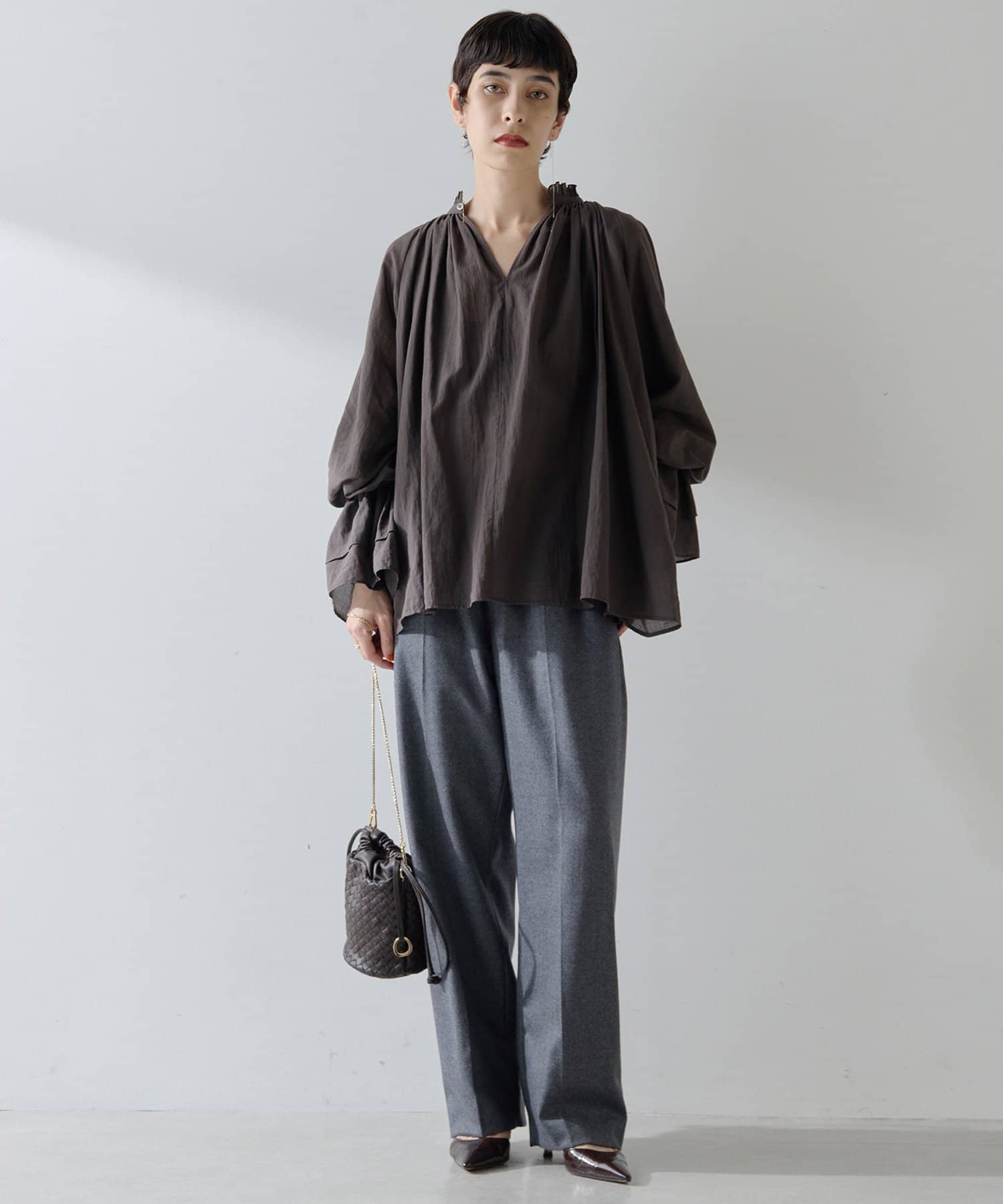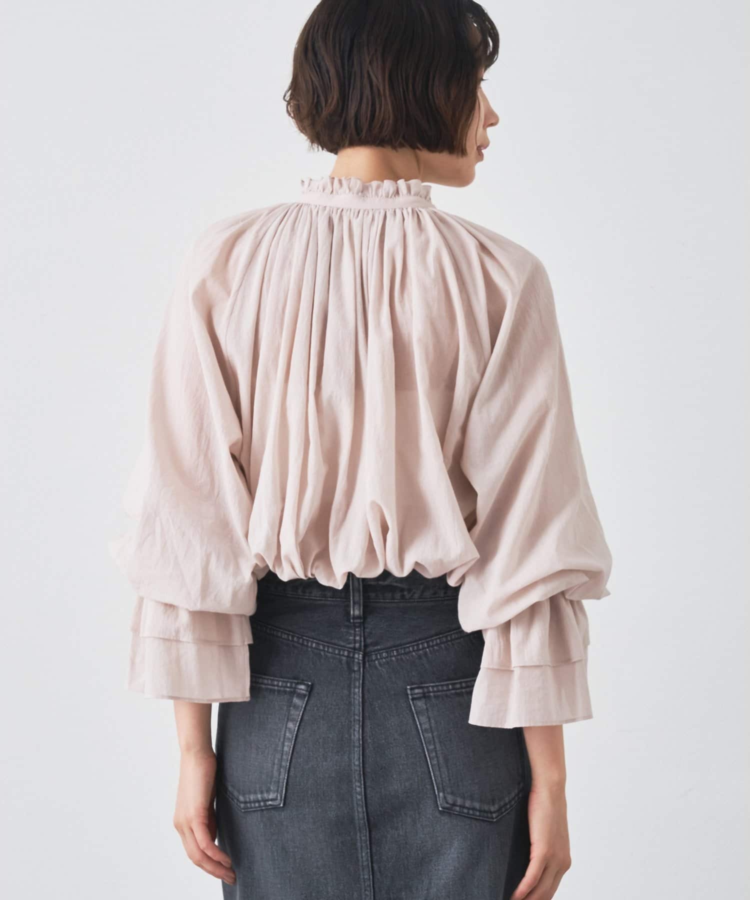 ■袖口にはギャザーをたっぷり寄せた二重のカフスを採用し、手元にニュアンスを添えながらふんわりとした立体感を演出。