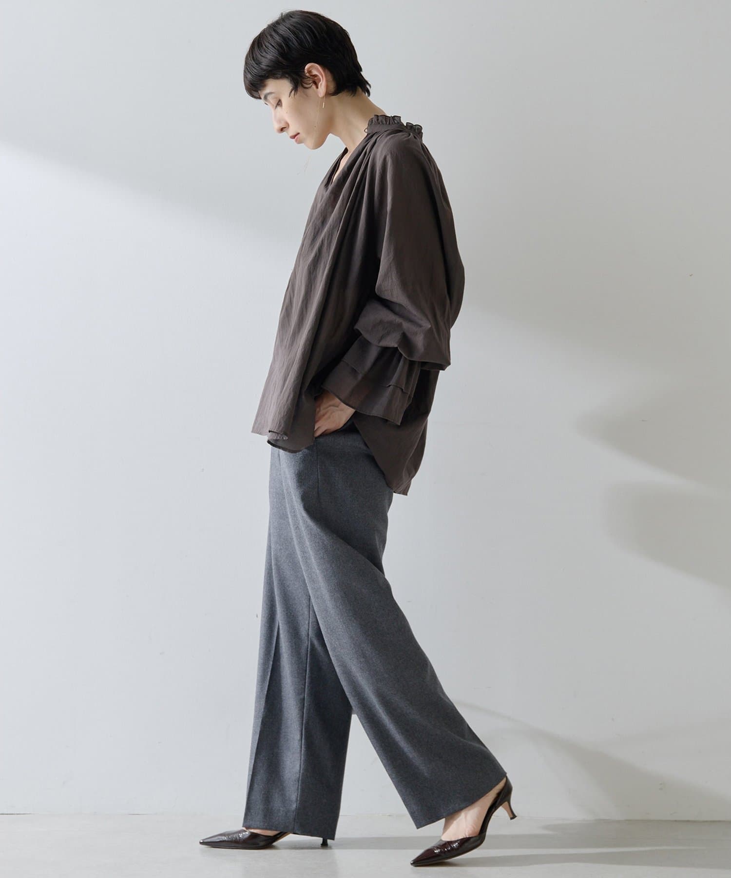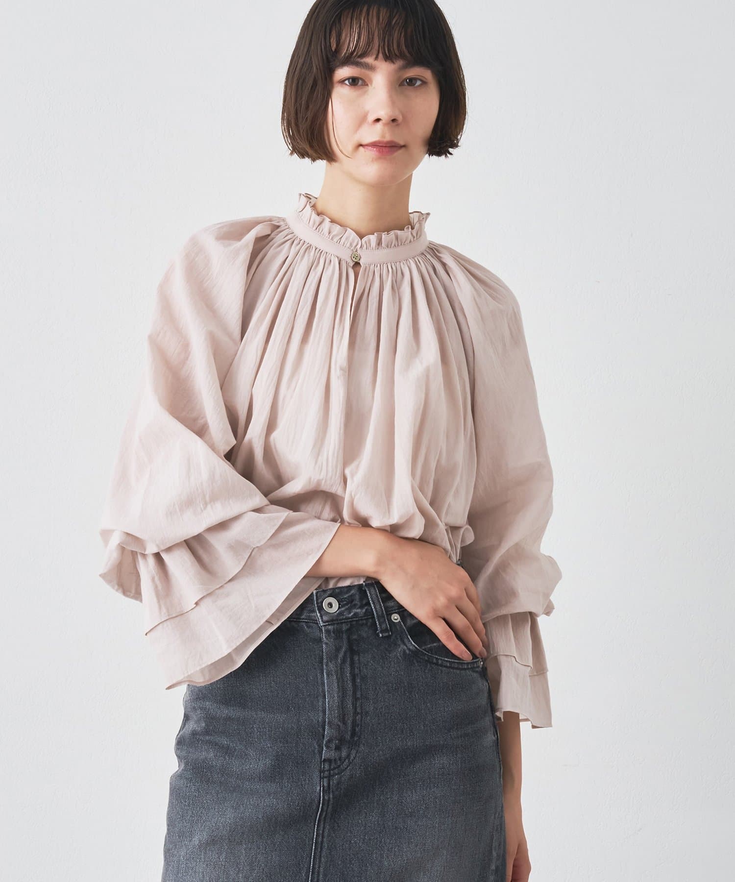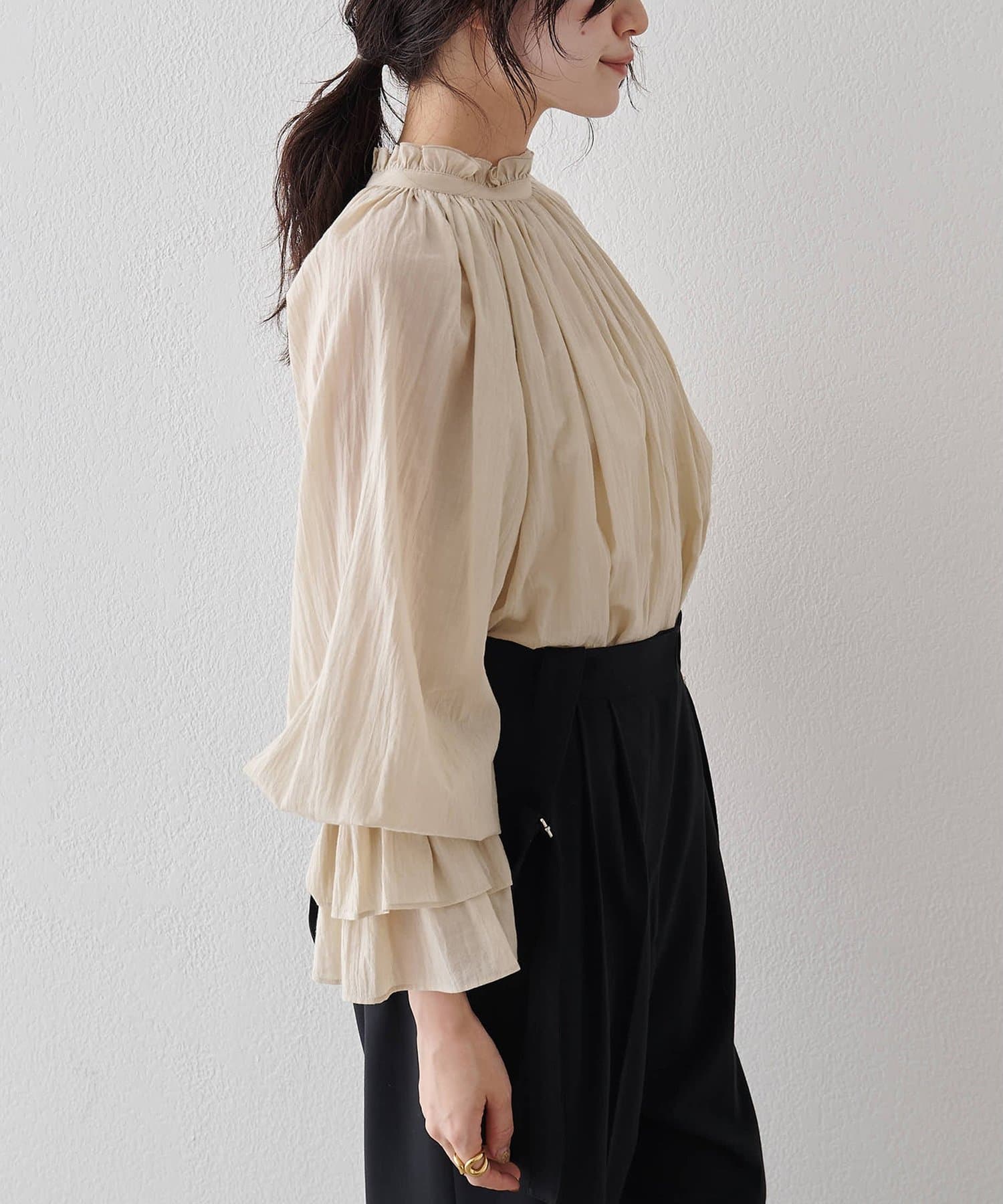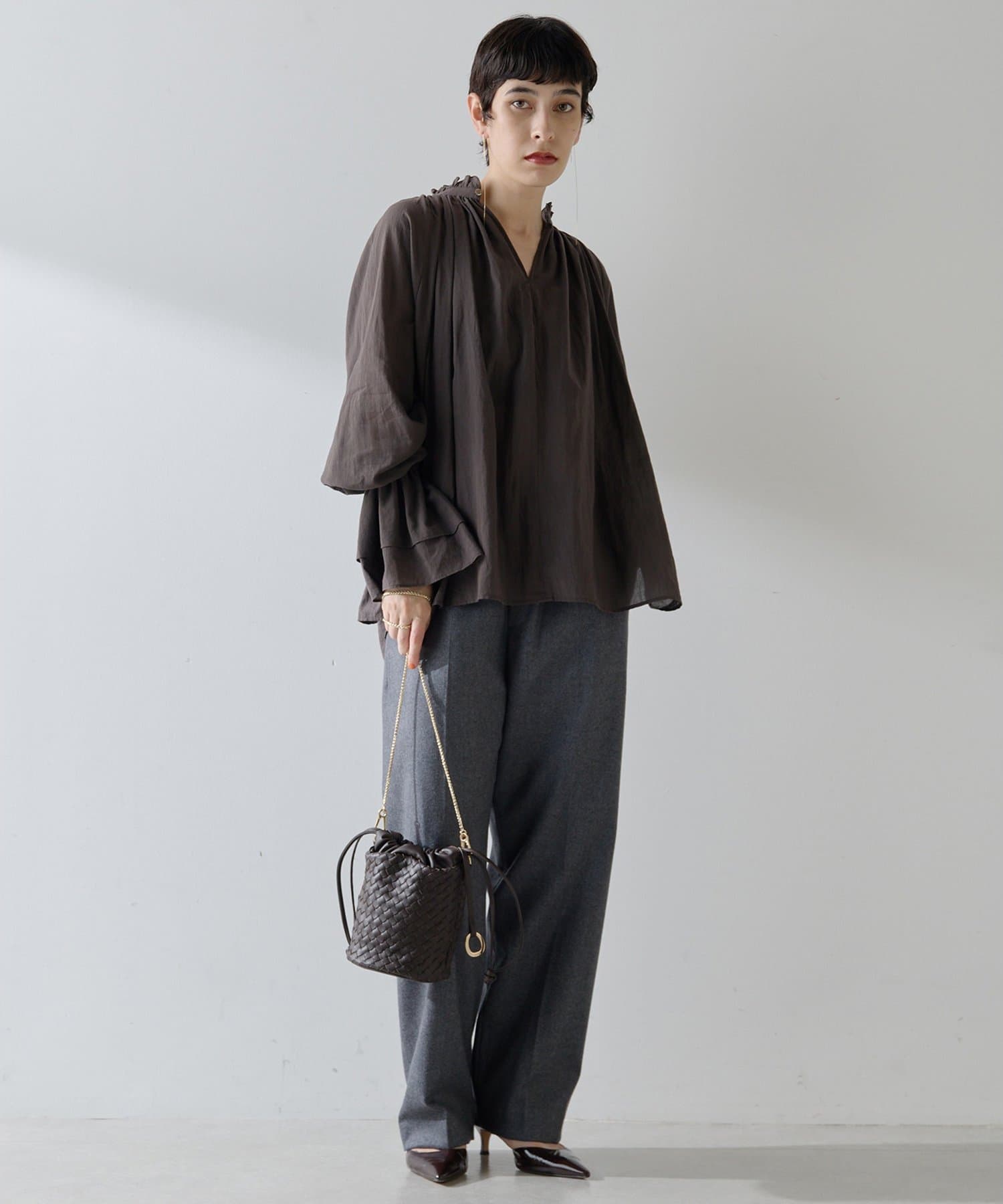 ■袖口にはギャザーをたっぷり寄せた二重のカフスを採用し、手元にニュアンスを添えながらふんわりとした立体感を演出。