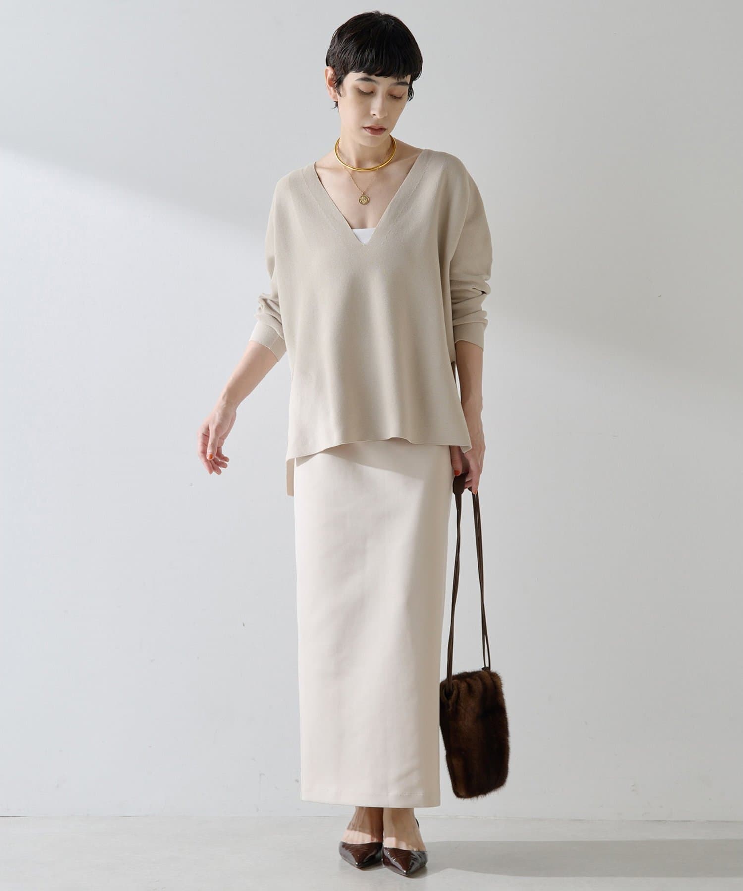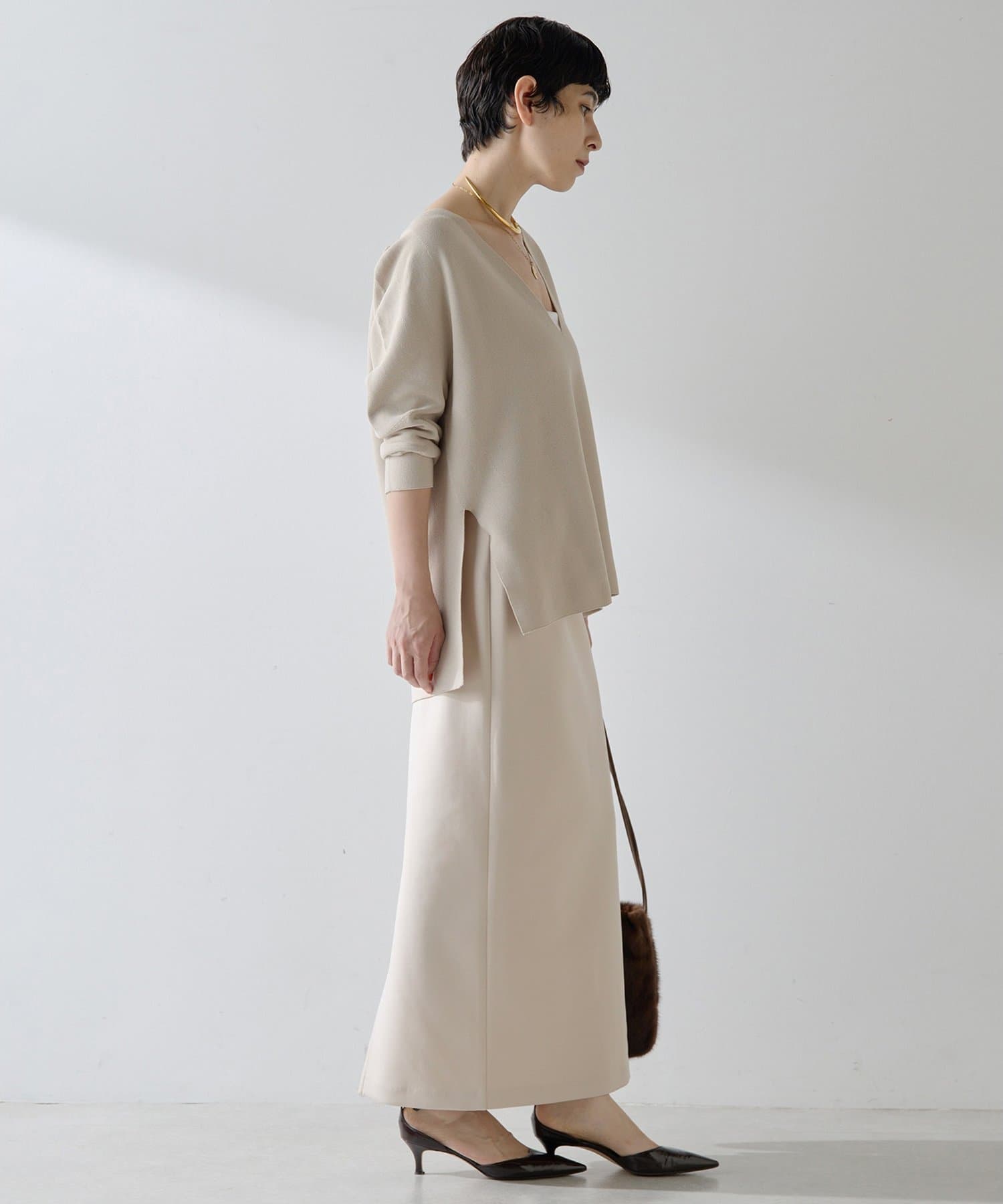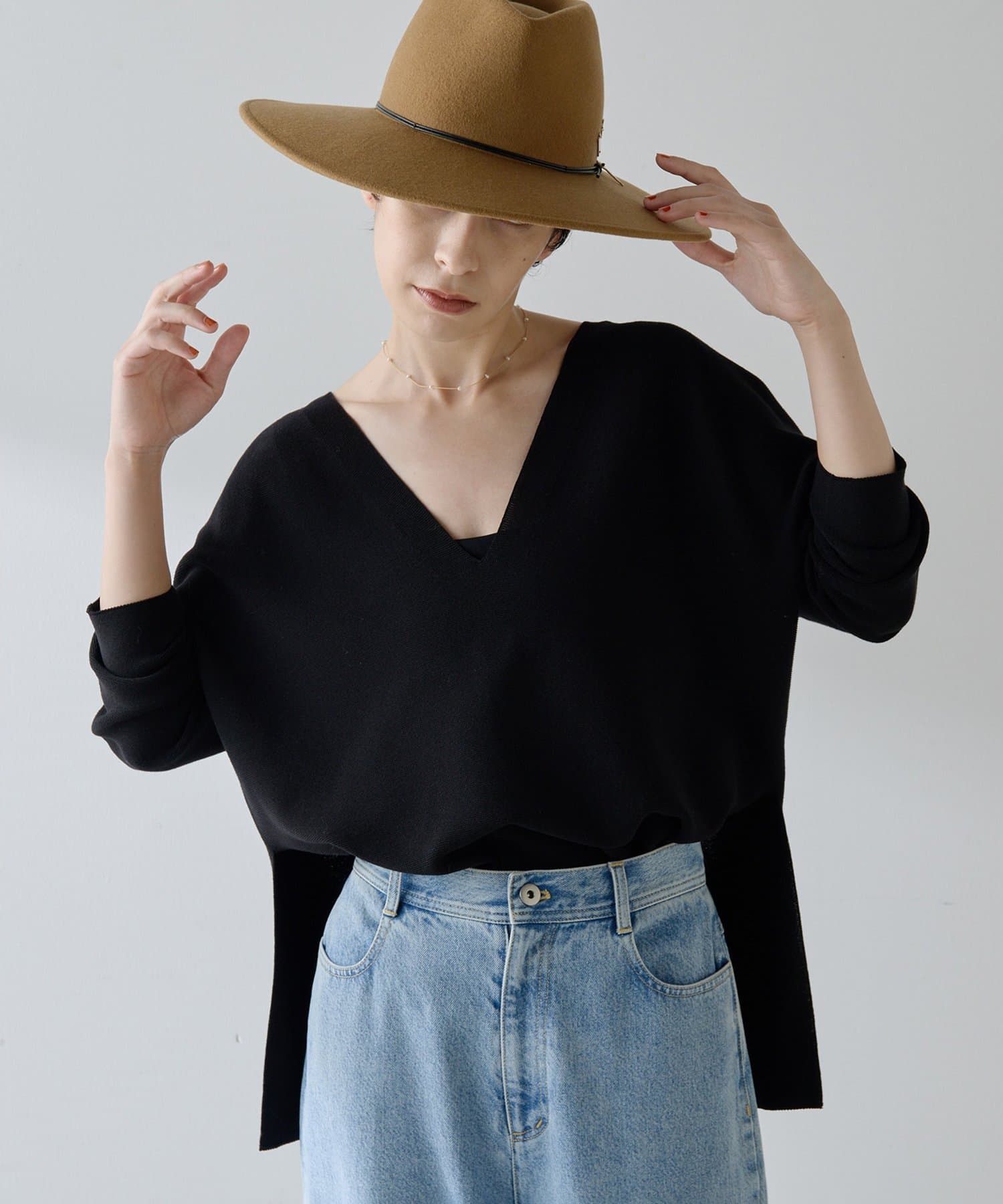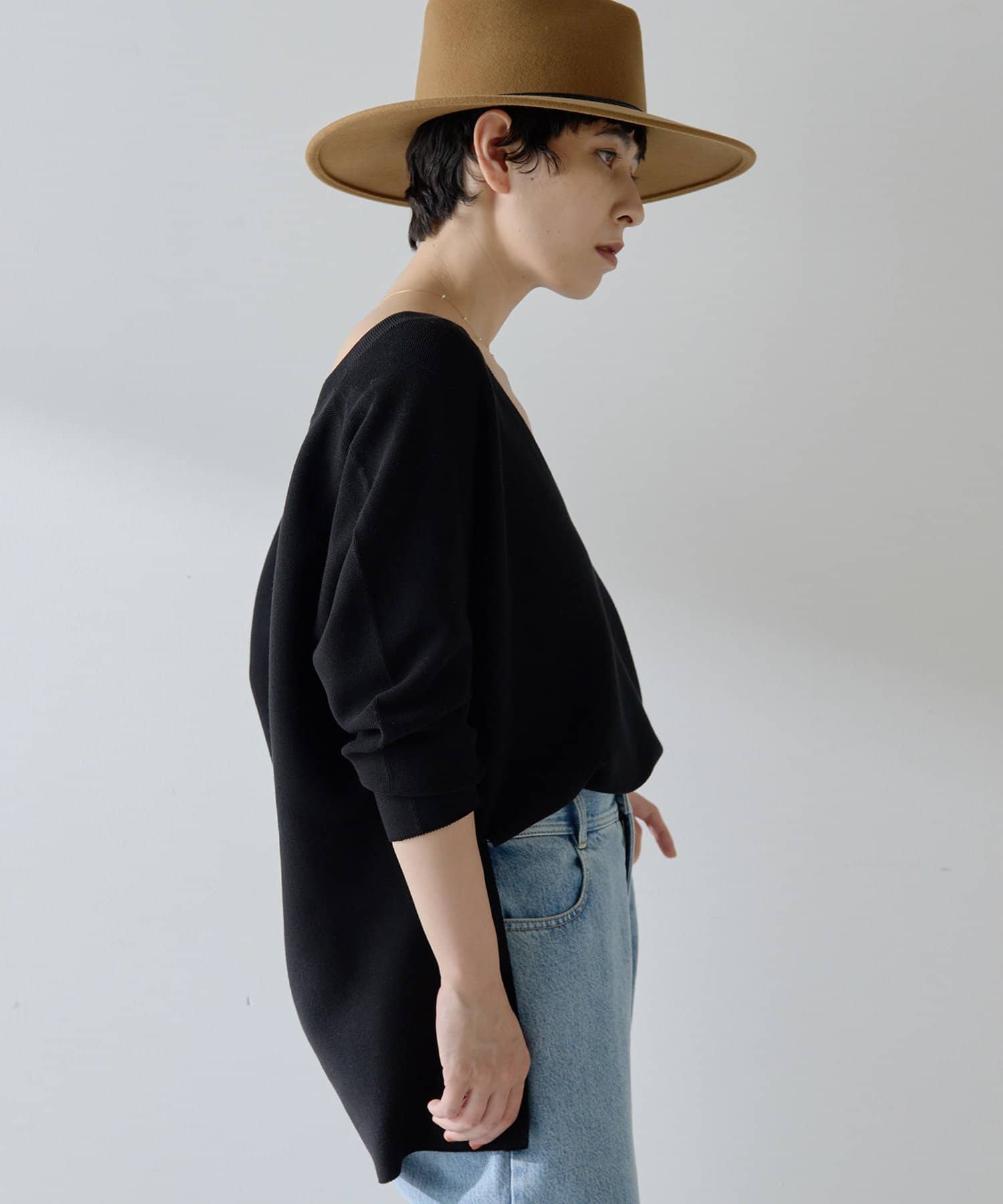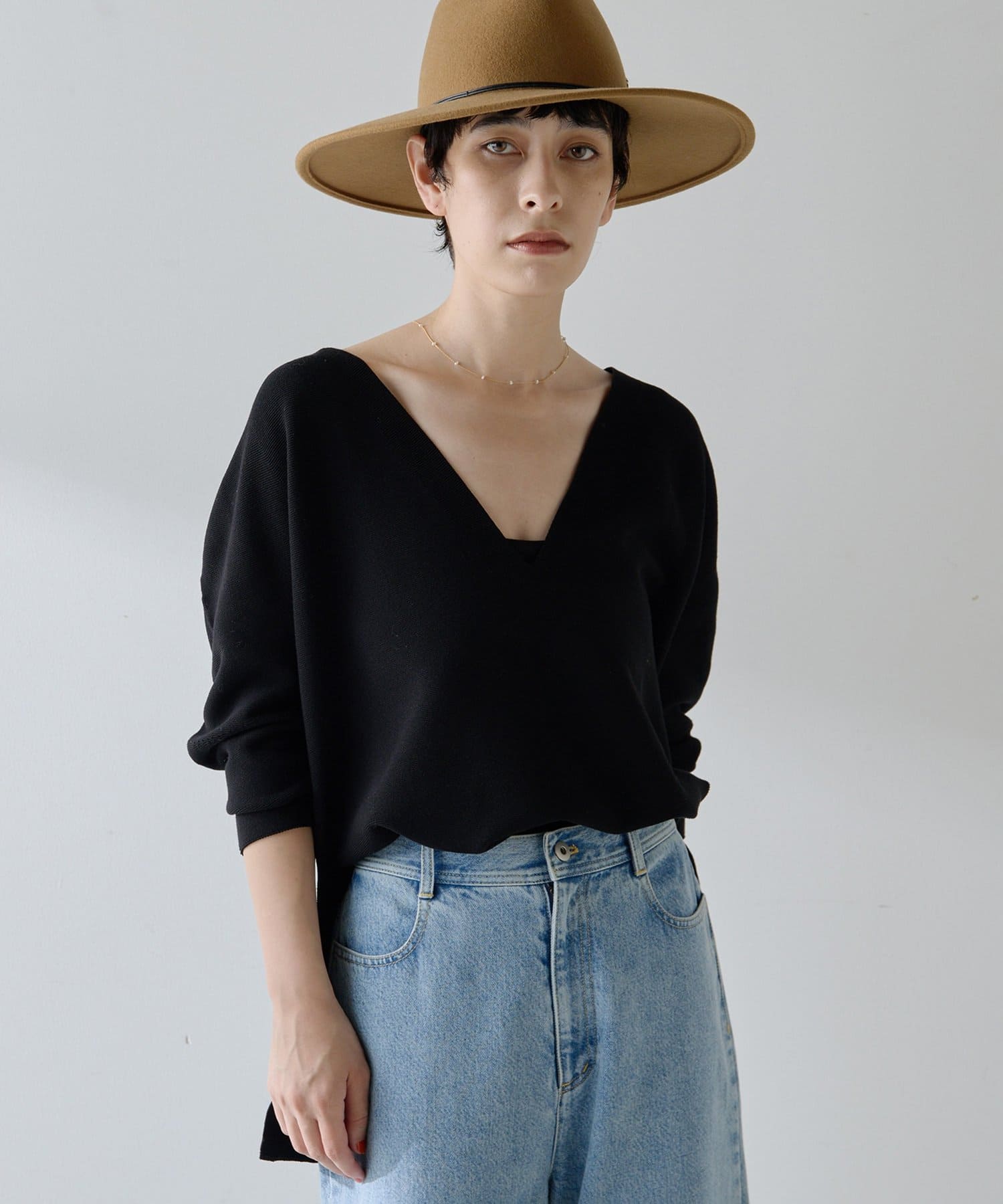 • Whim Gazette(ウィム ガゼット) 深Vスリットニットプルオーバー
