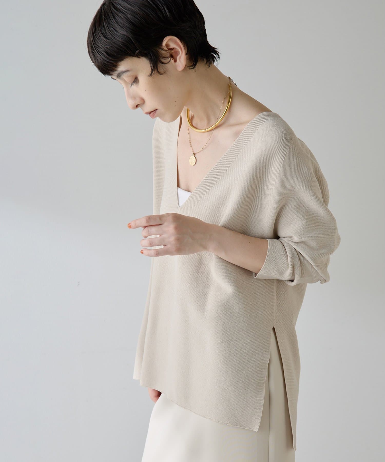 Whim Gazette(ウィム ガゼット) 深Vスリットニットプルオーバー