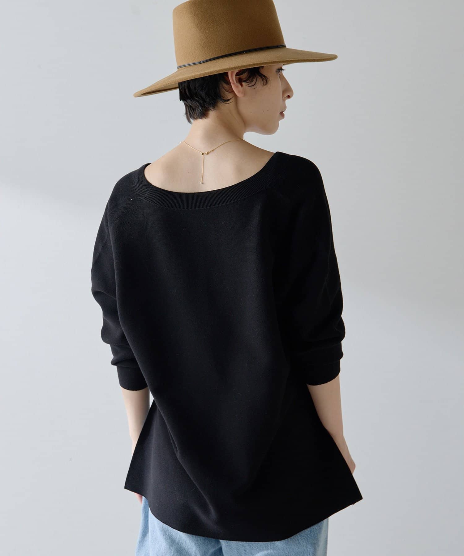 ■シャープなネックラインがすっきりとした印象で、着痩せ効果も期待できるデザイン。