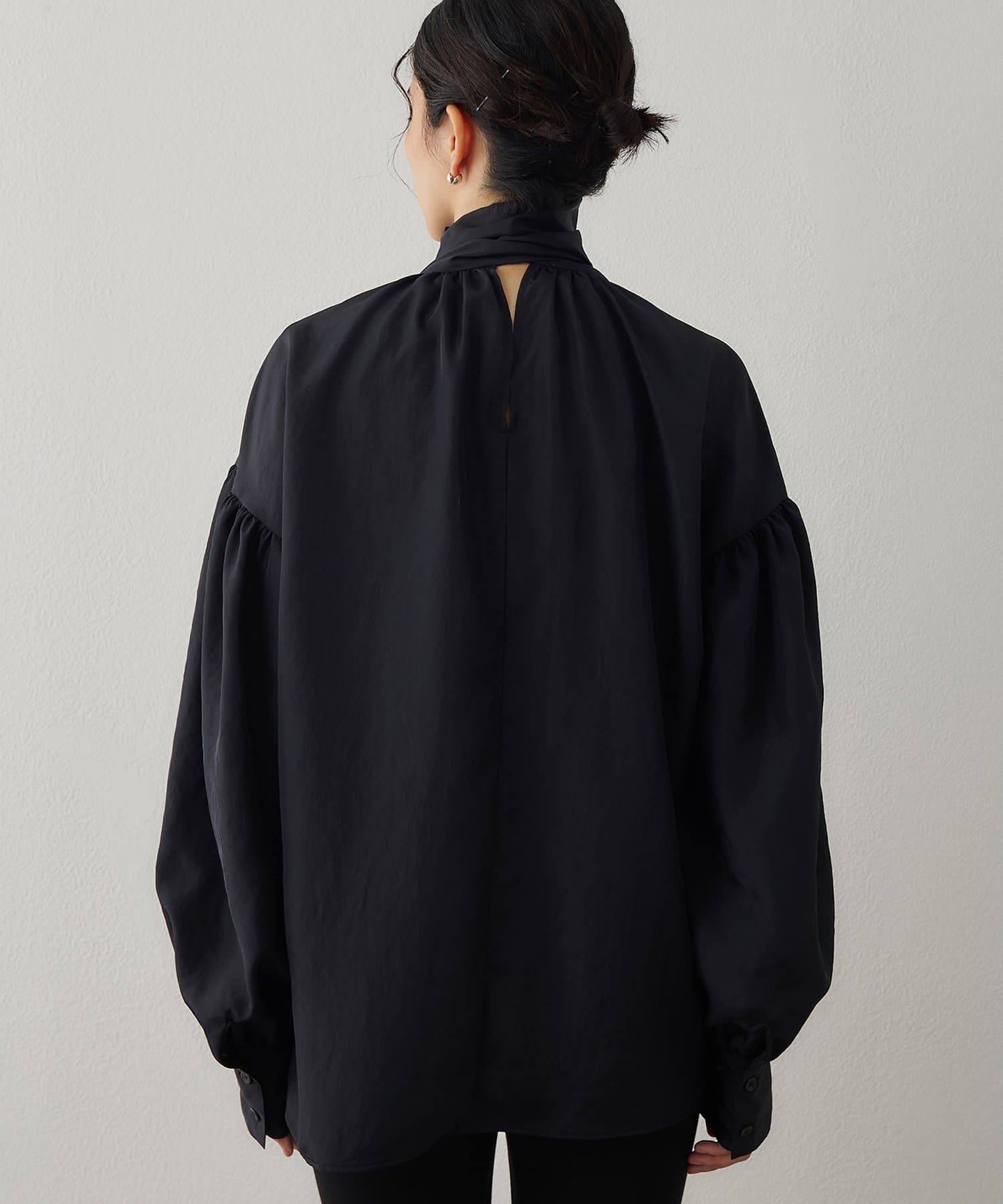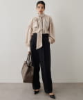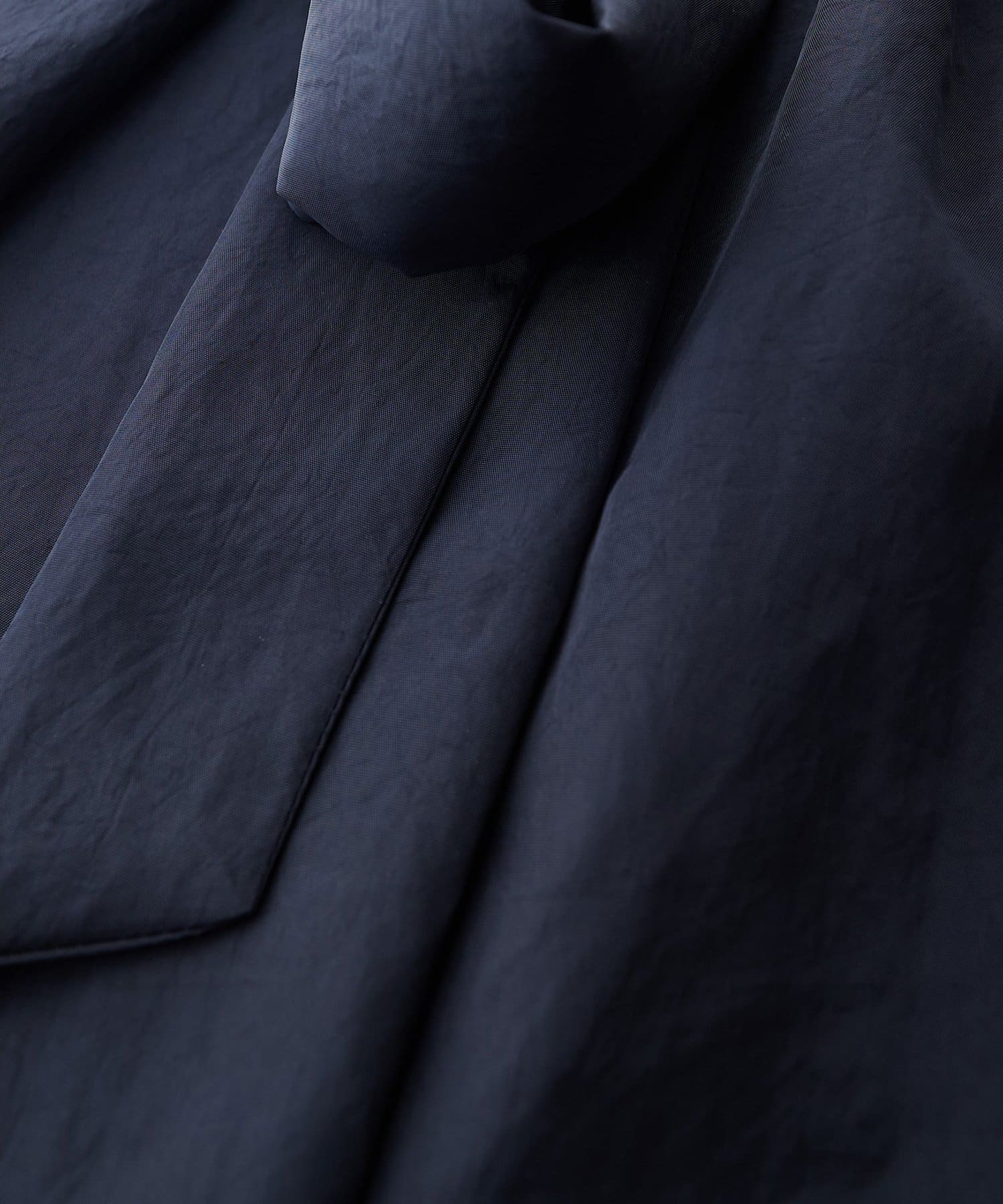 ■ボウタイは前リボン結びにしたりラフに垂らしたり、後ろで結んでハイネックブラウスのように着たりとアレンジ自在。