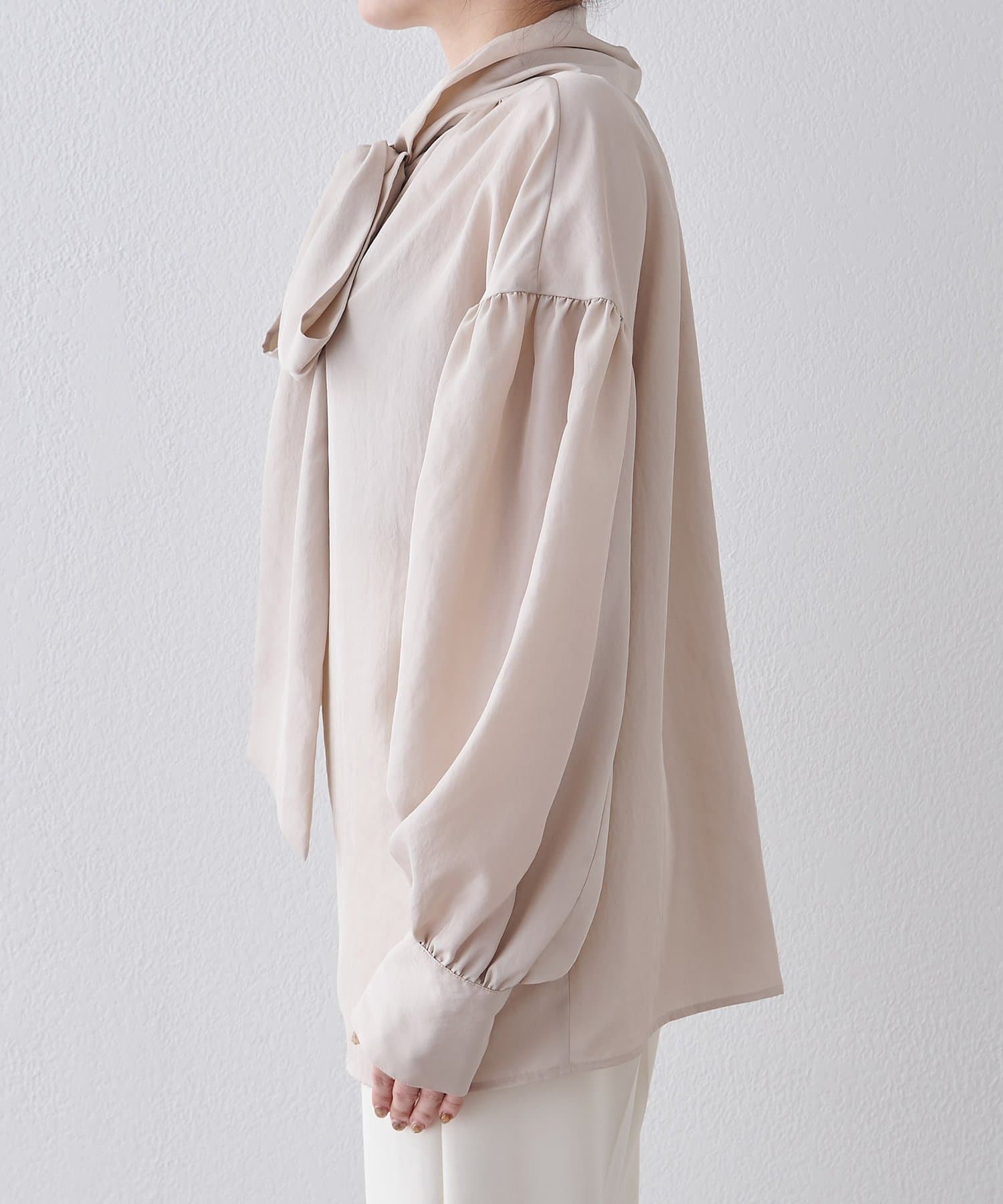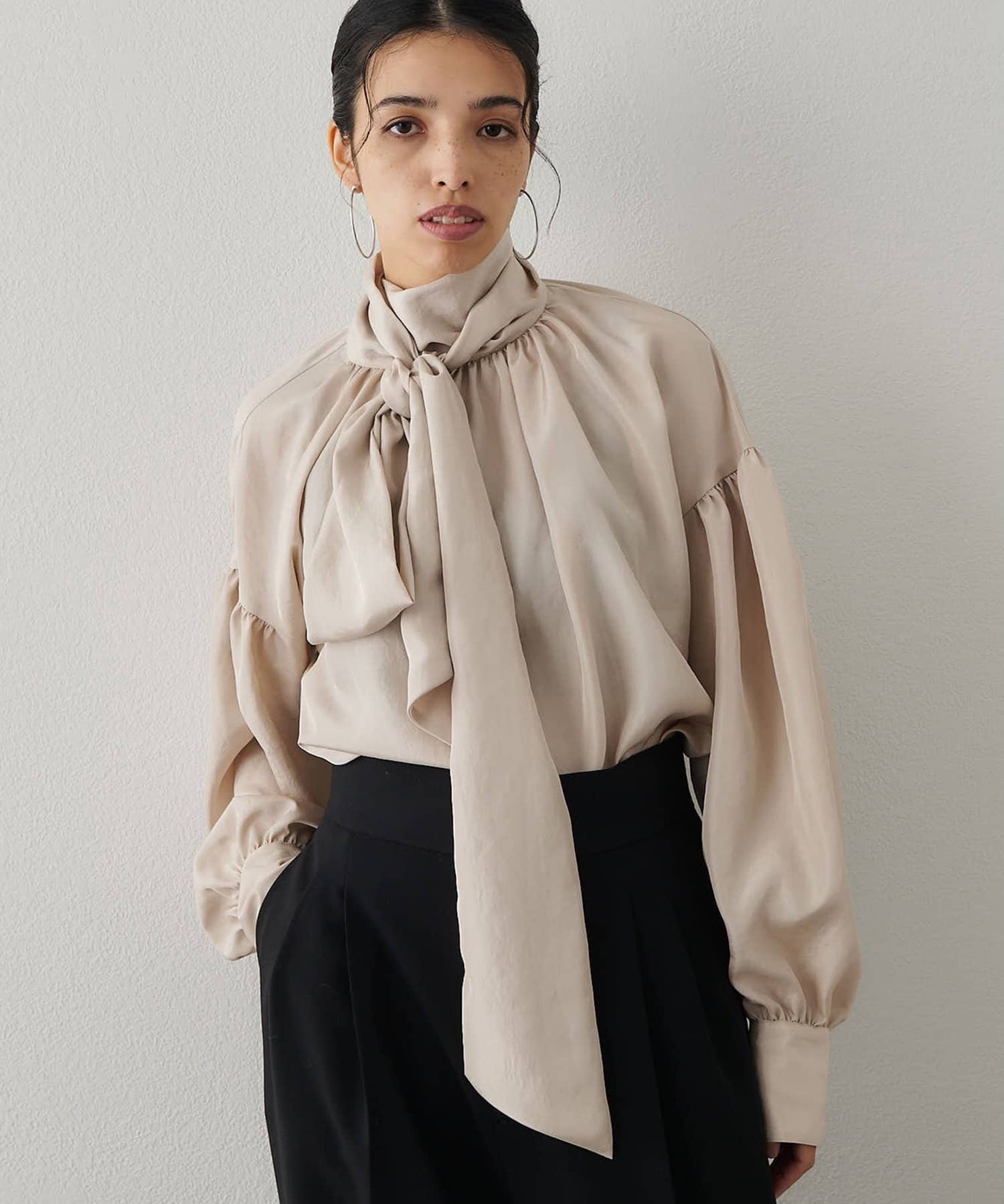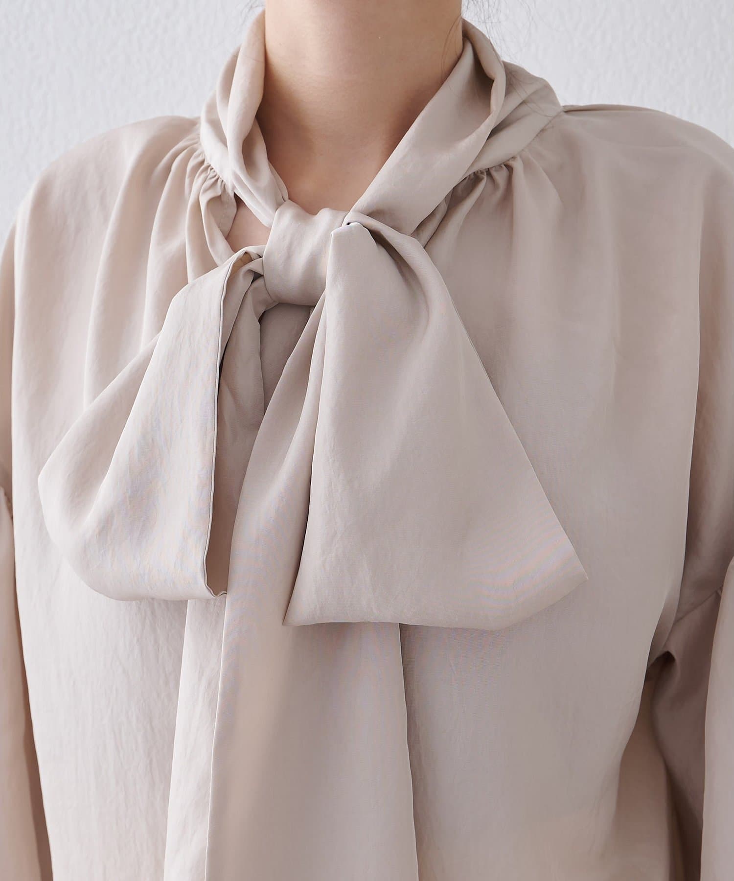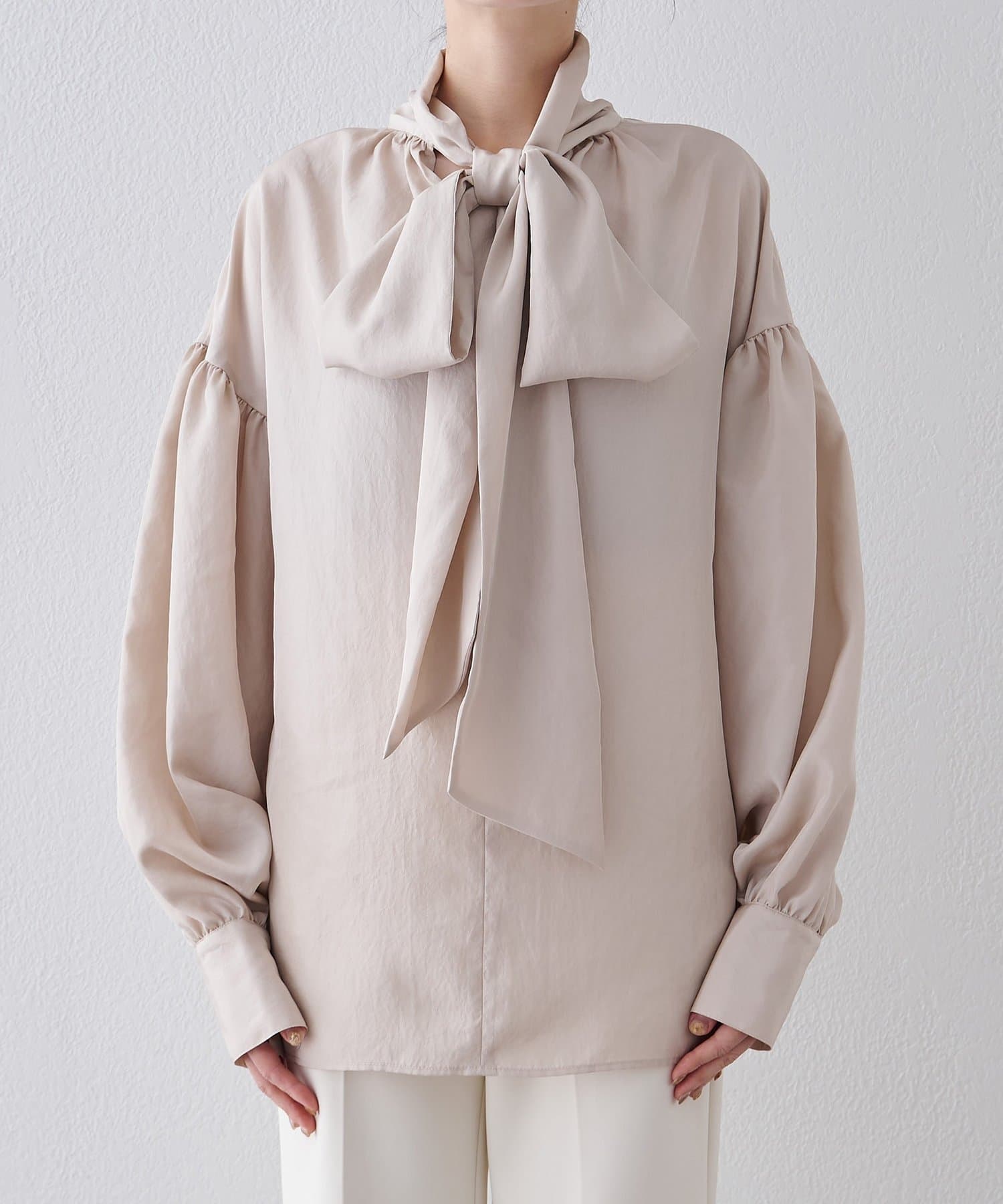 ■ボリューム感のあるデザインが華やかなボウタイブラウス。