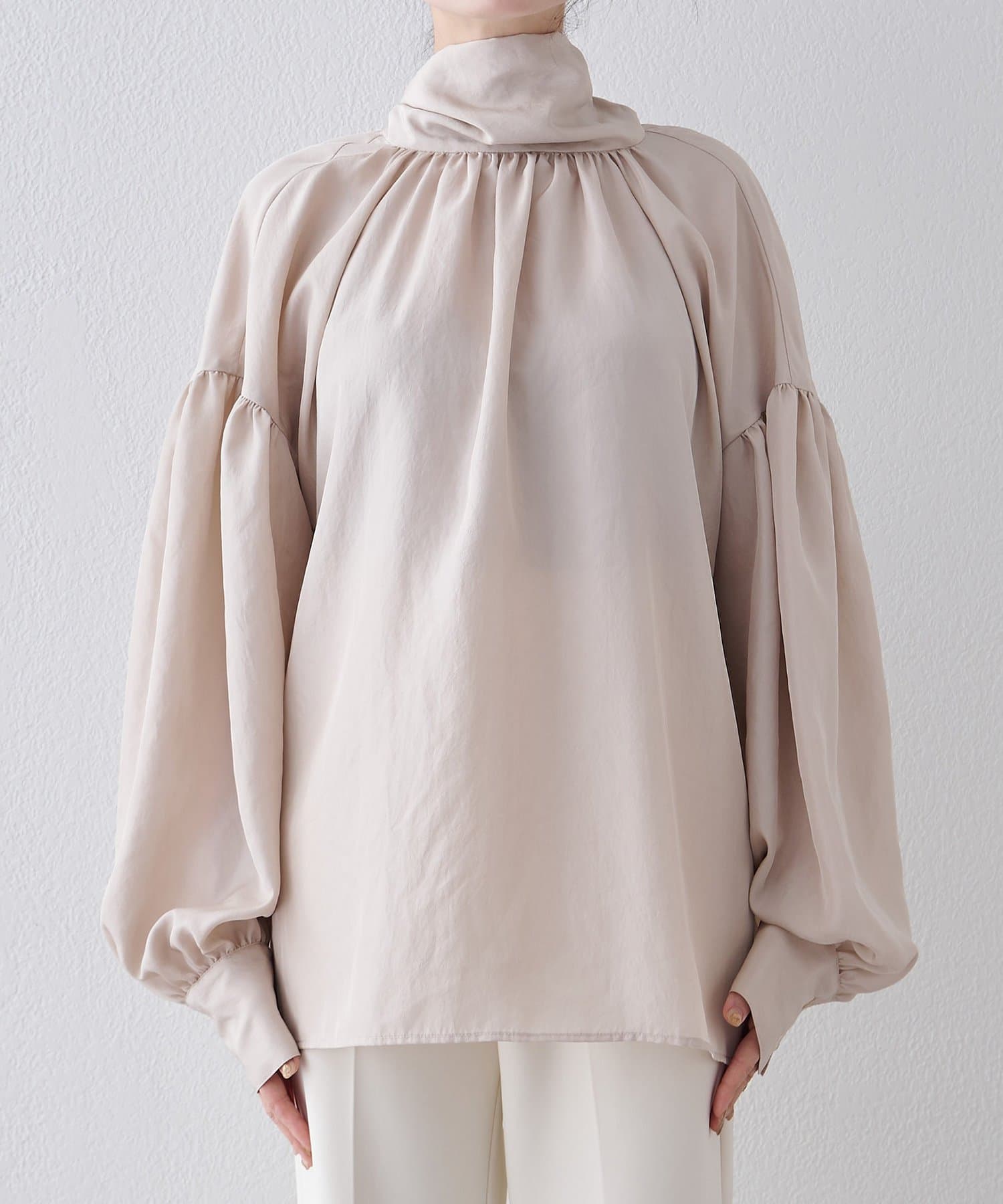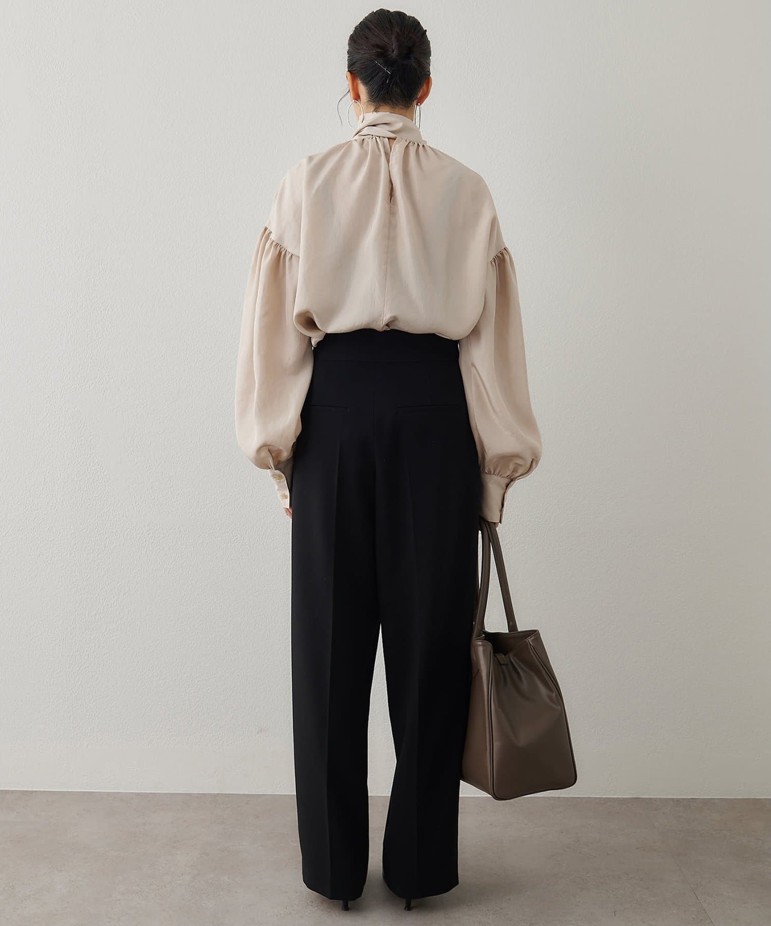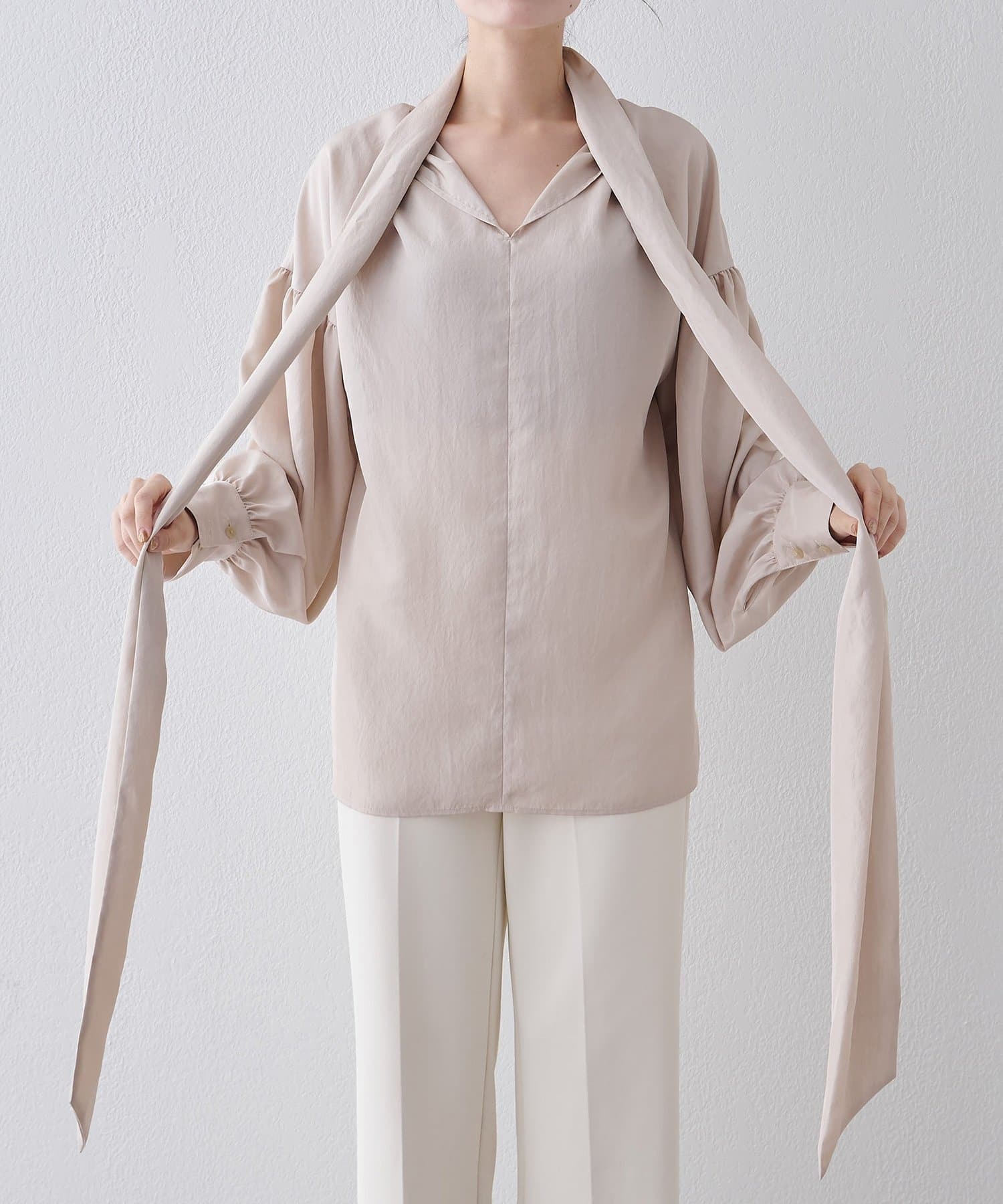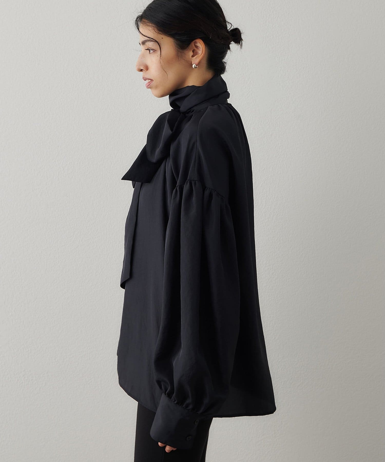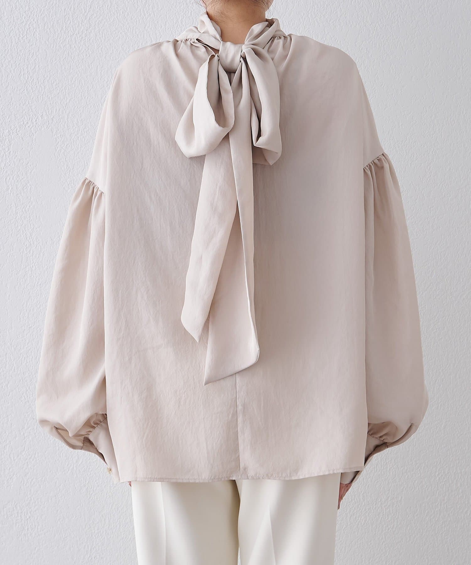 ■ボリューム感のあるデザインが華やかなボウタイブラウス。