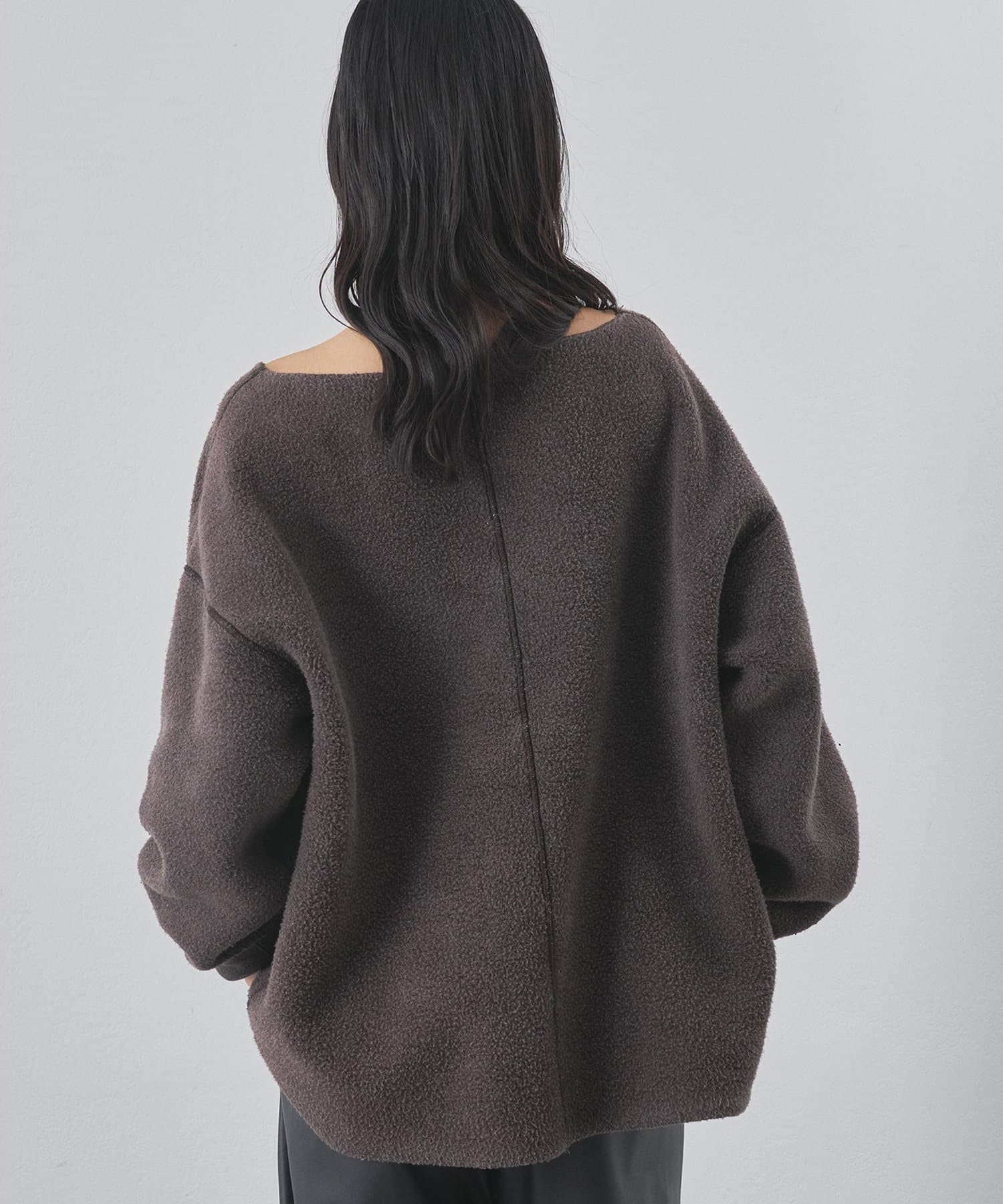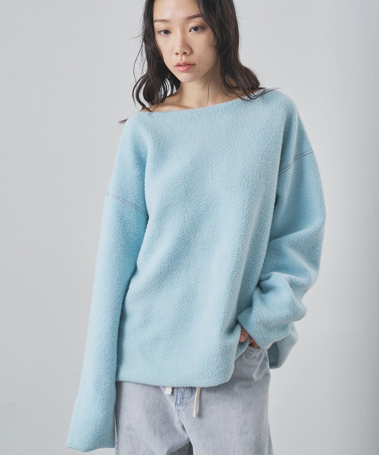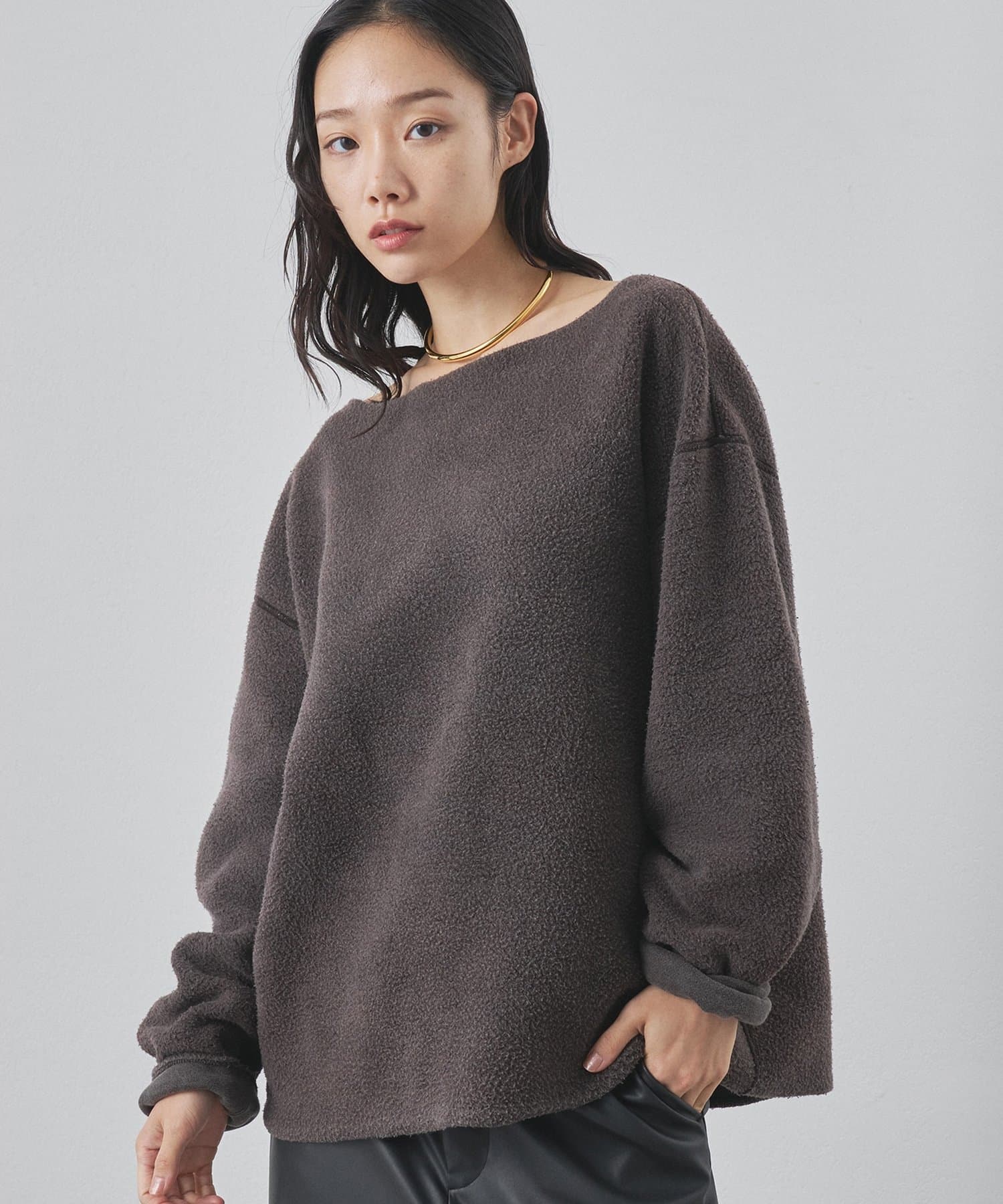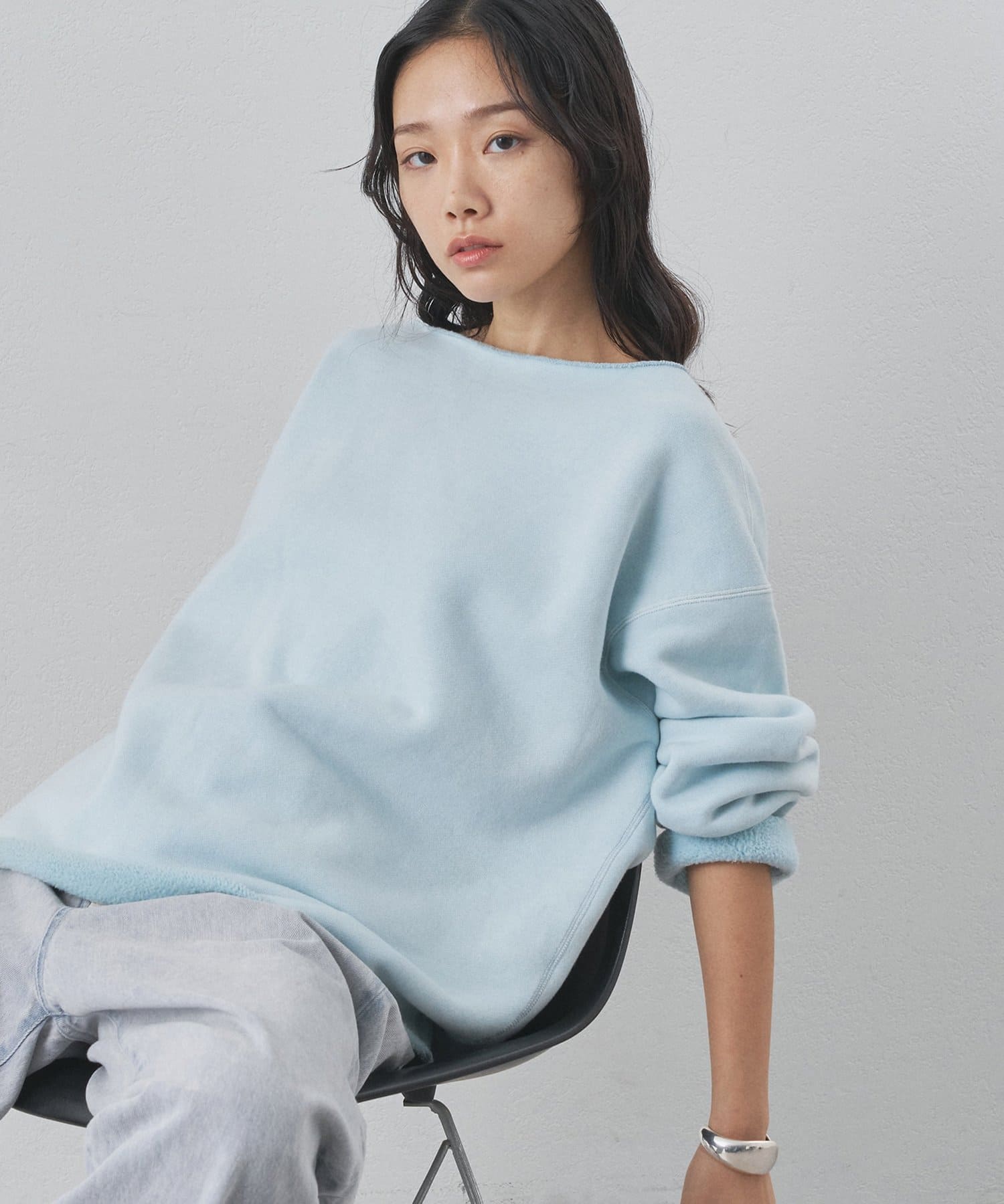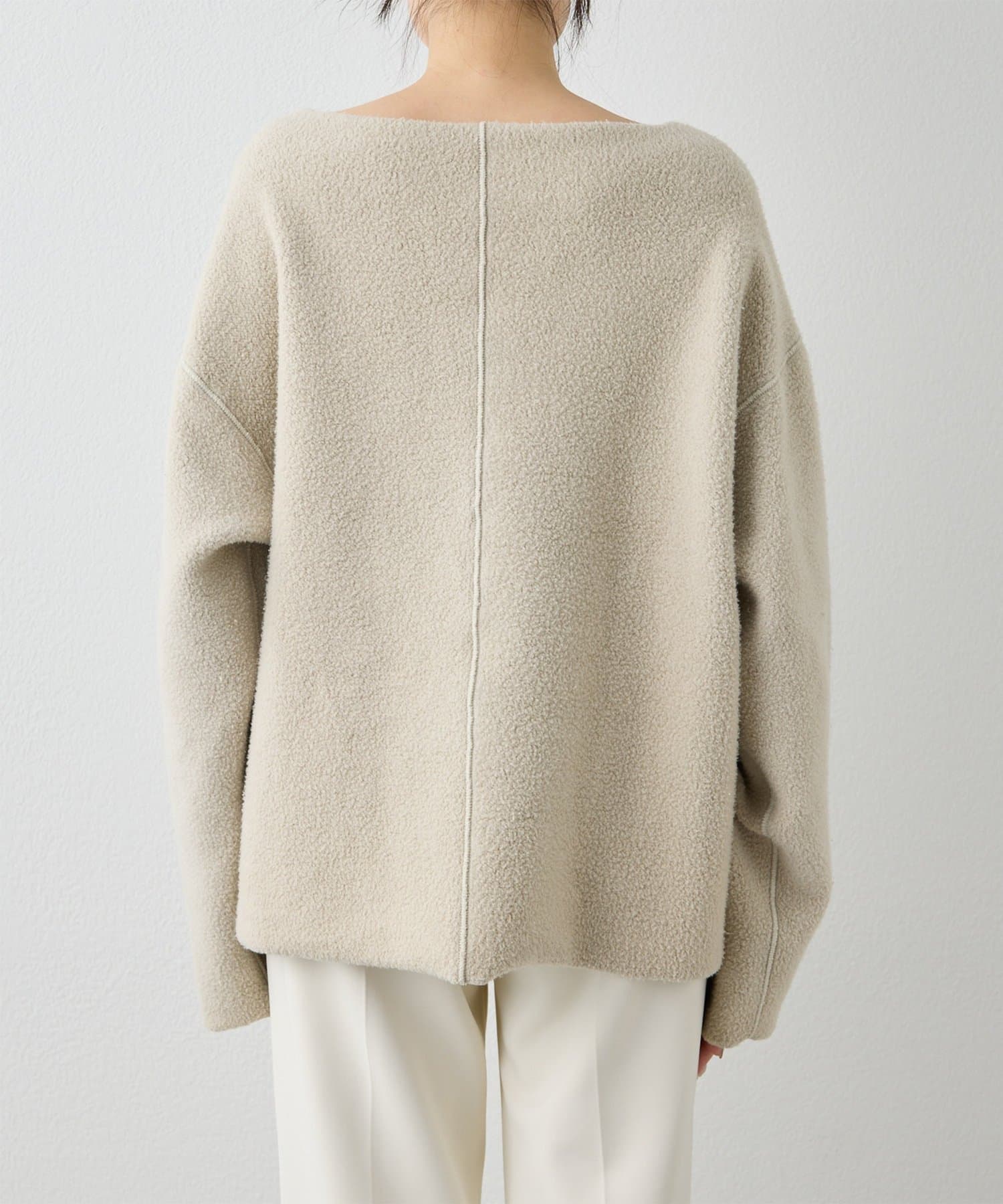 ■ゆったりとしたオーバーシルエットとボートネックが、リラックス感のある大人カジュアルを演出。