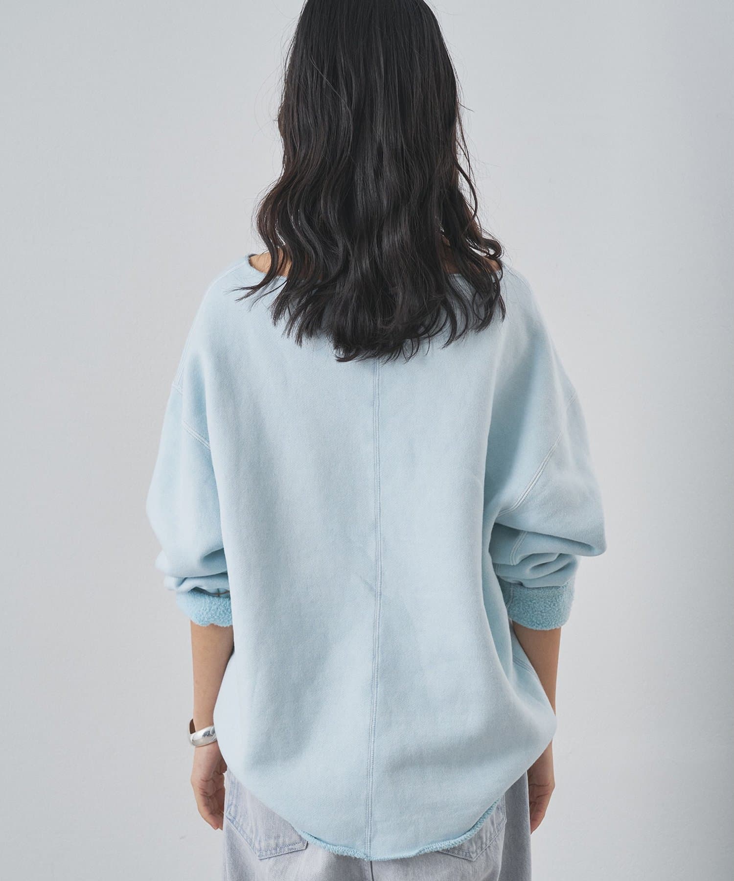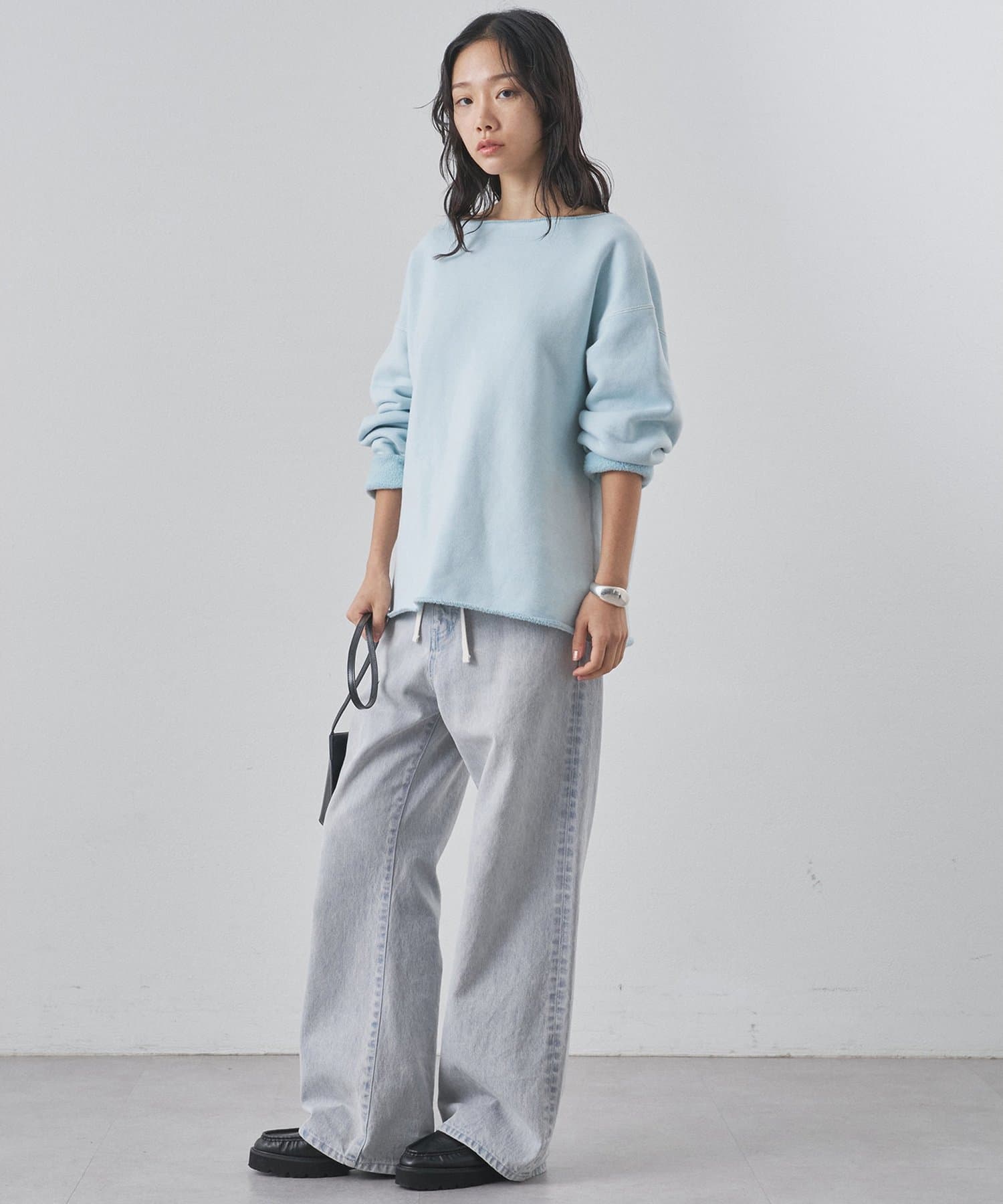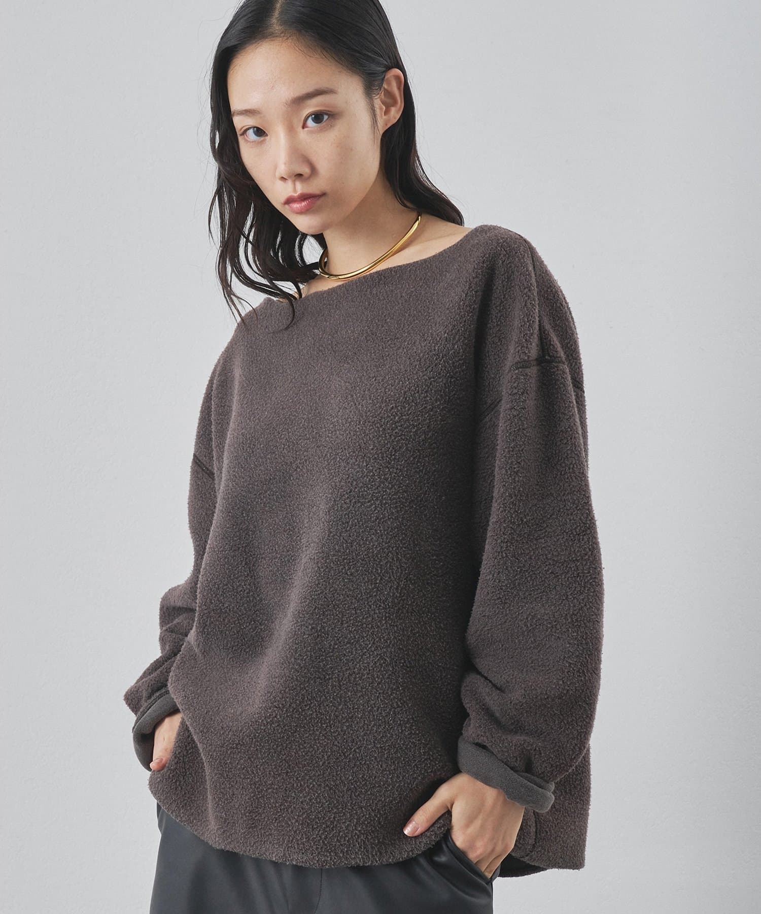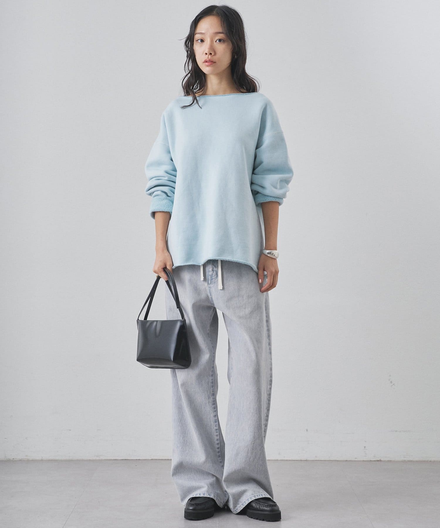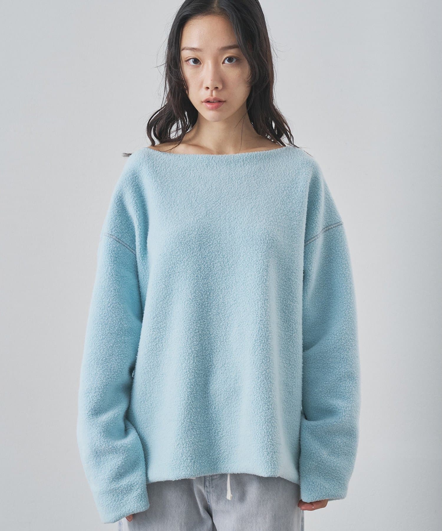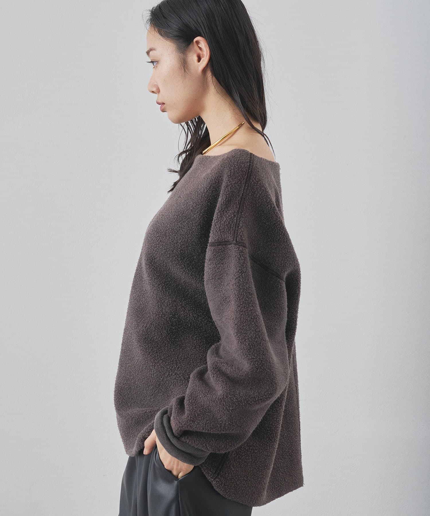 ■ゆったりとしたオーバーシルエットとボートネックが、リラックス感のある大人カジュアルを演出。