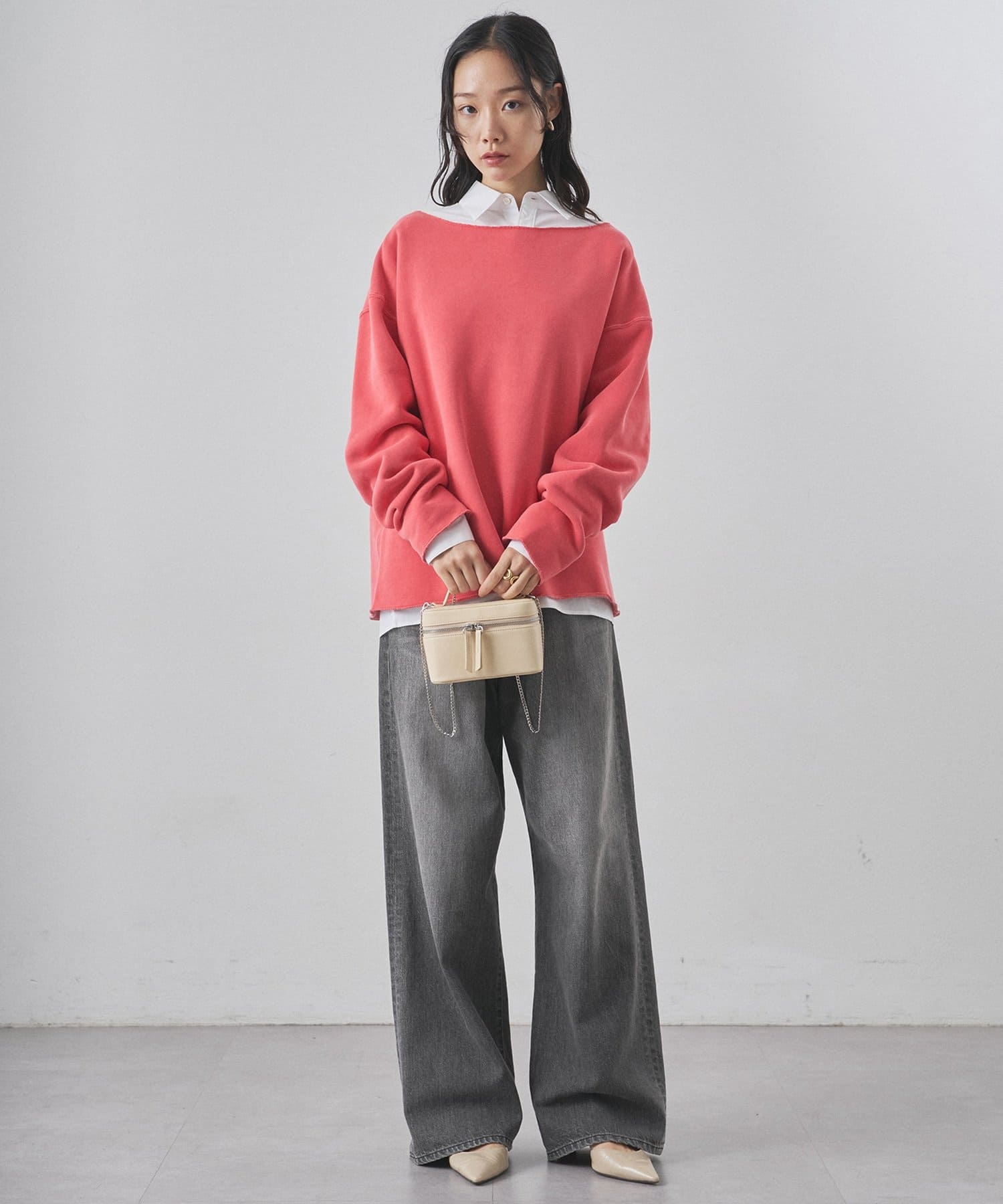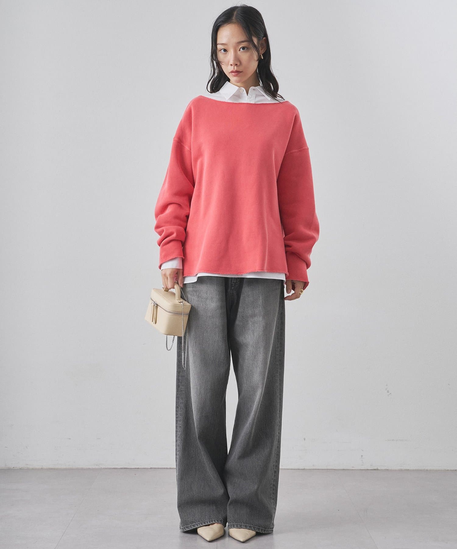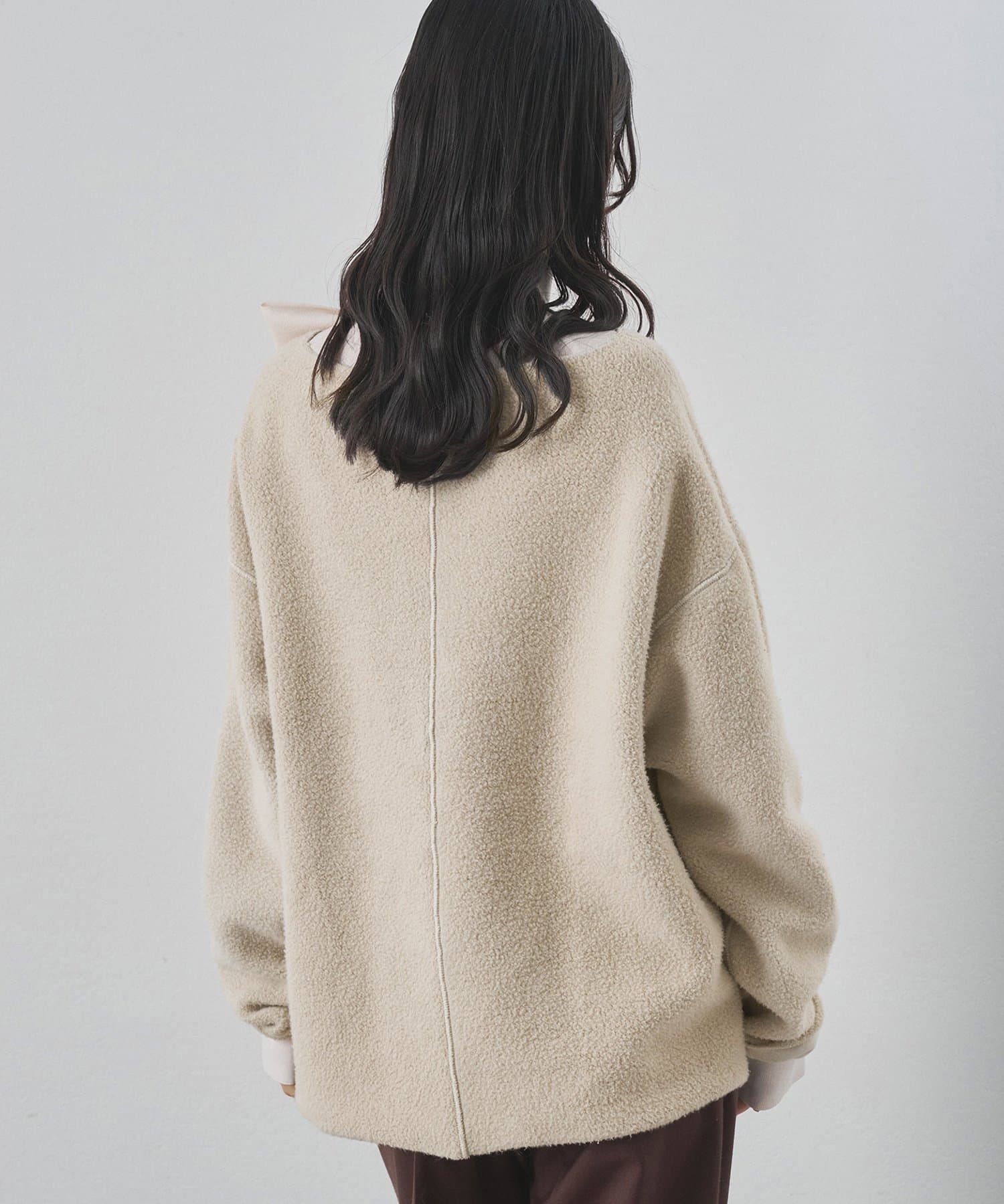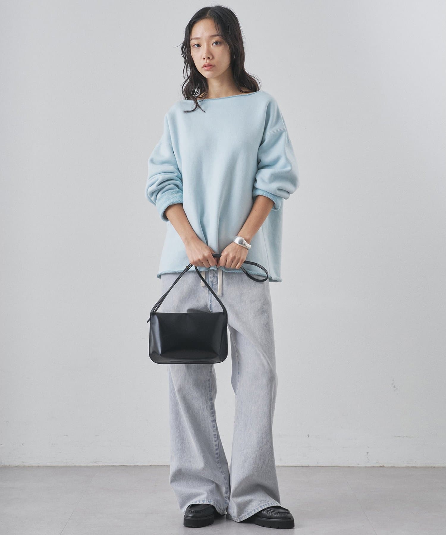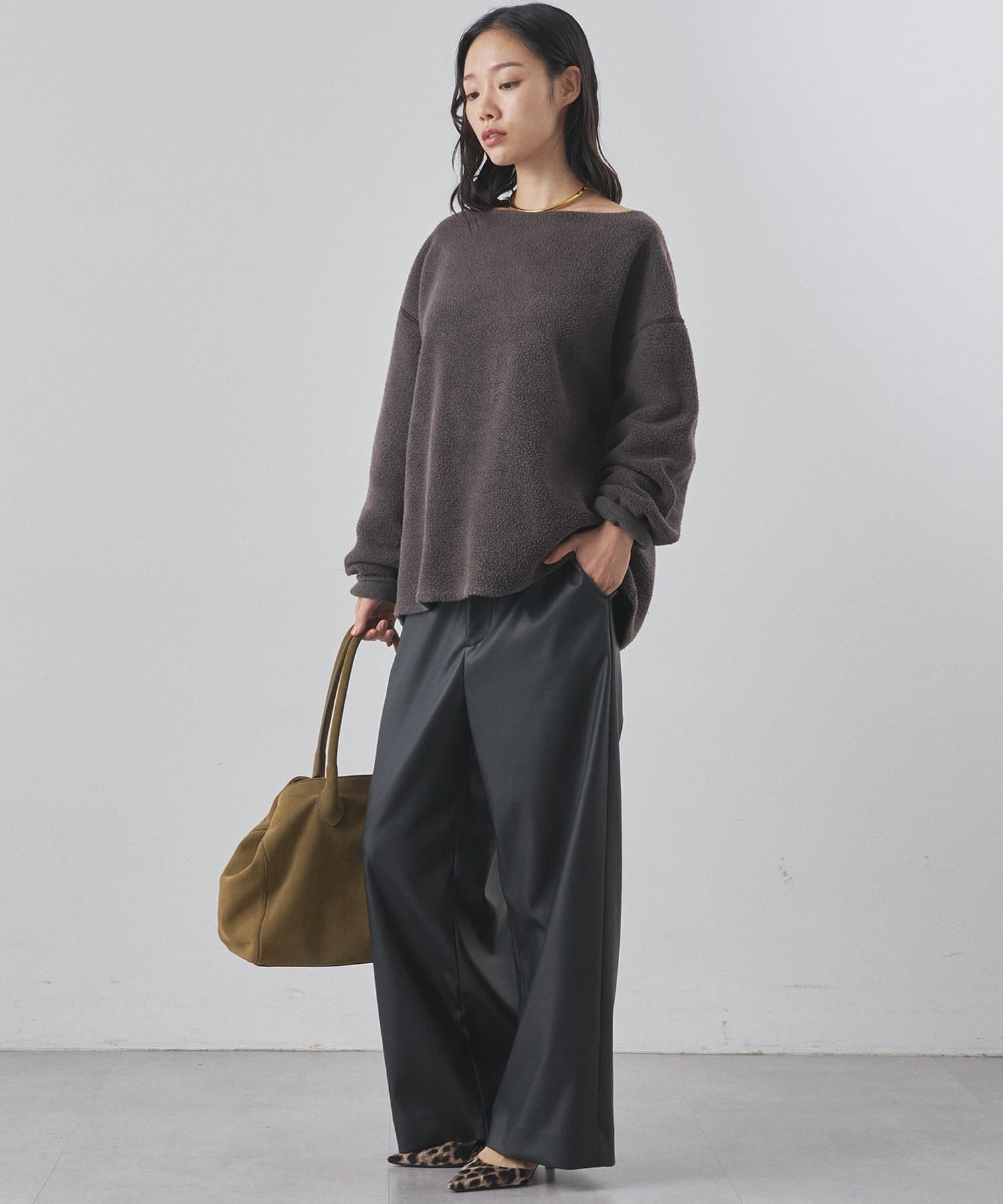 ■ゆったりとしたオーバーシルエットとボートネックが、リラックス感のある大人カジュアルを演出。