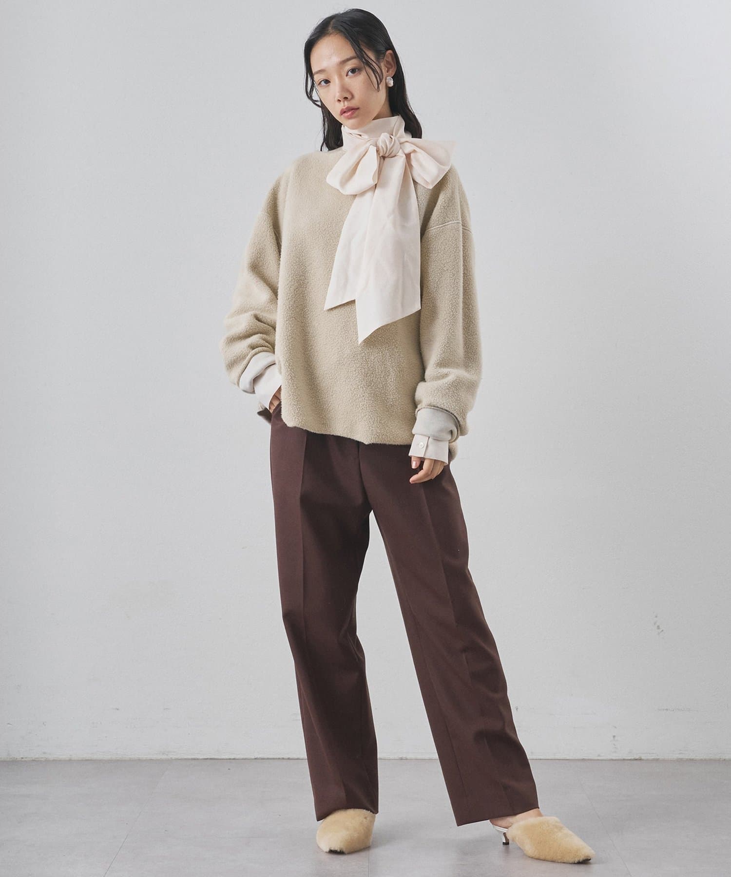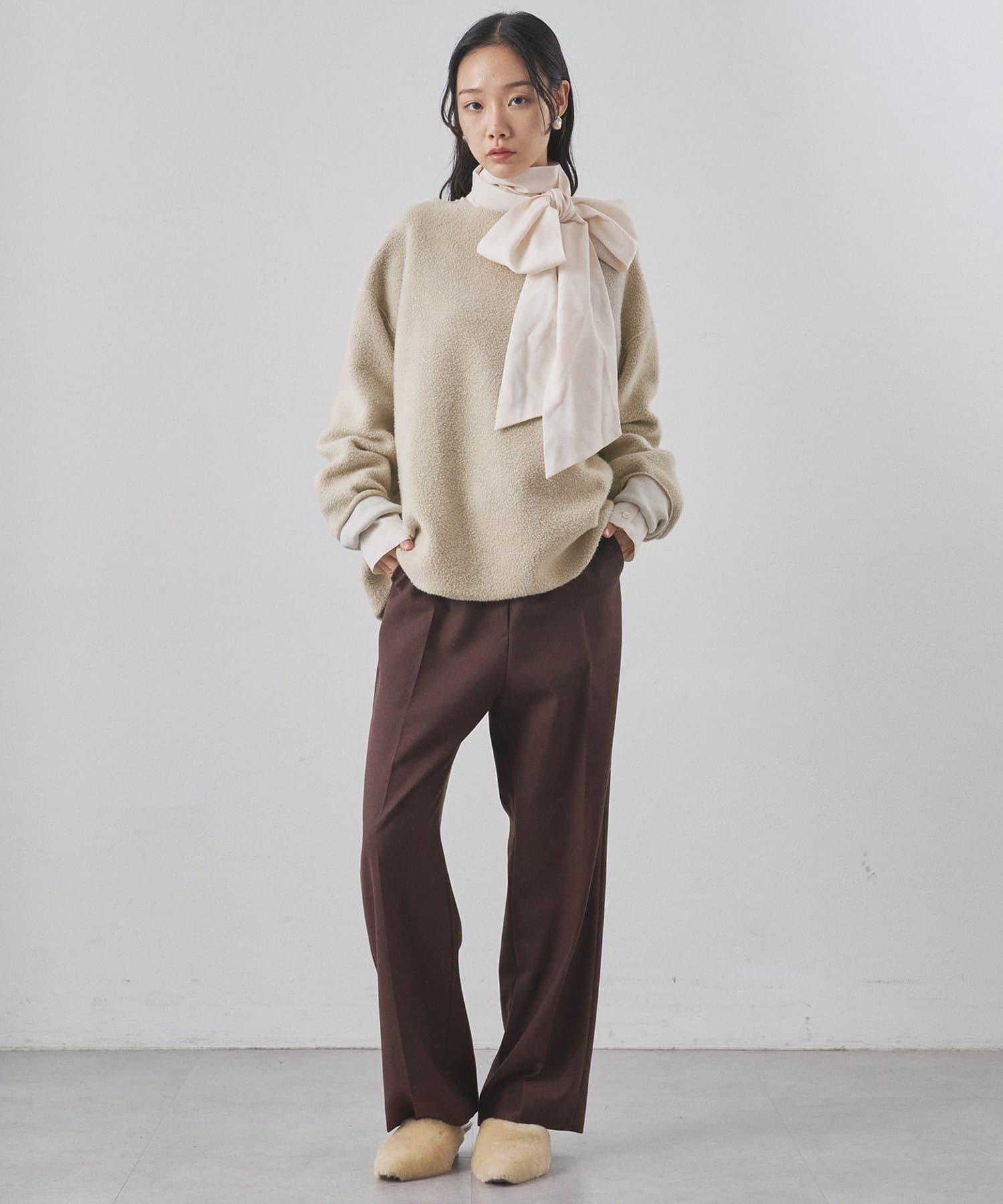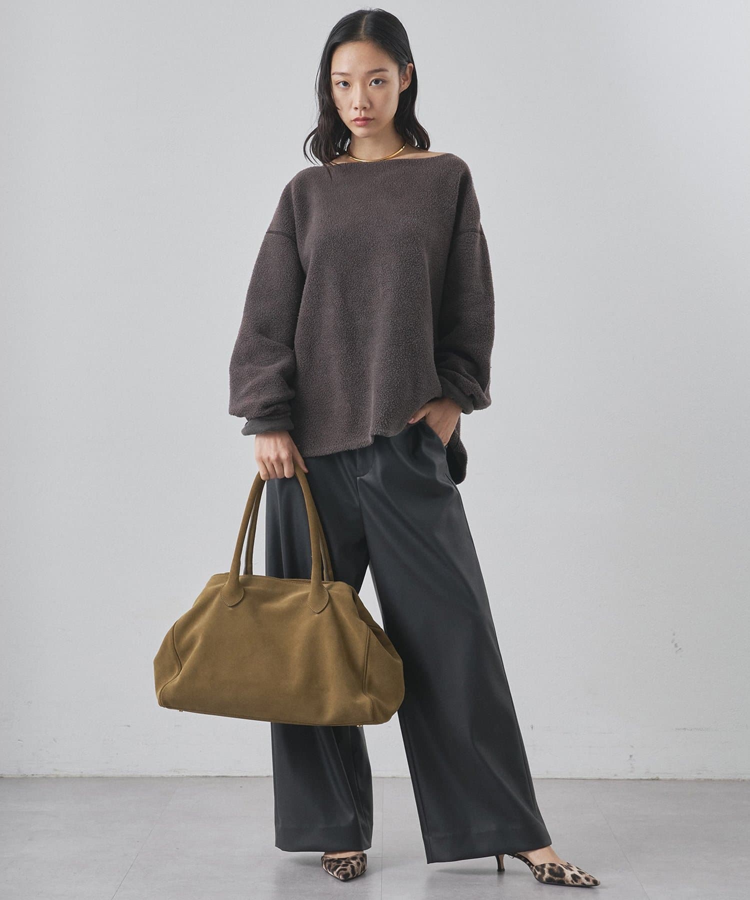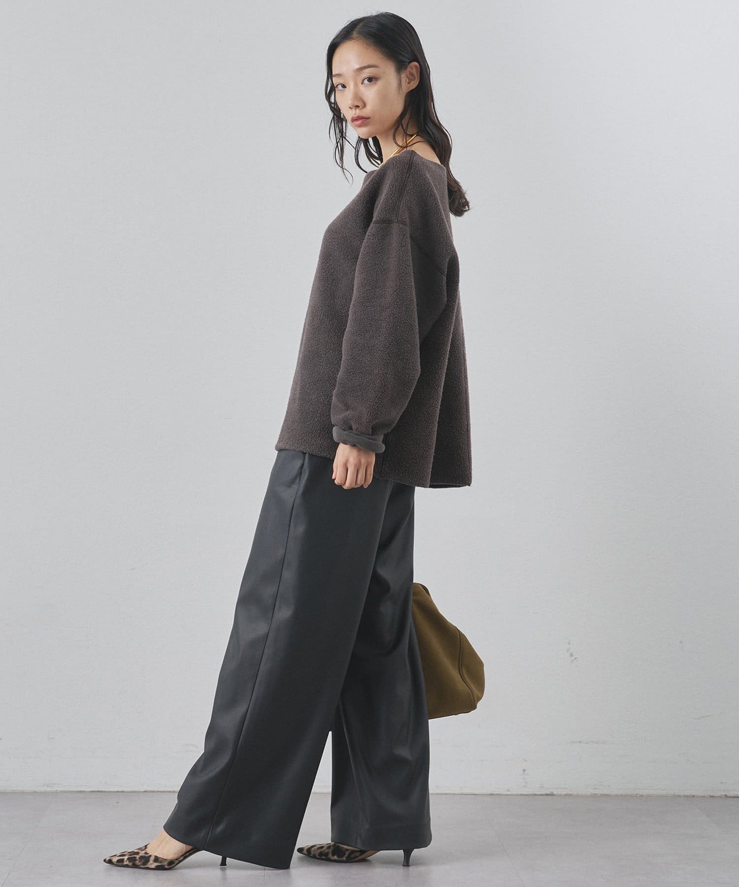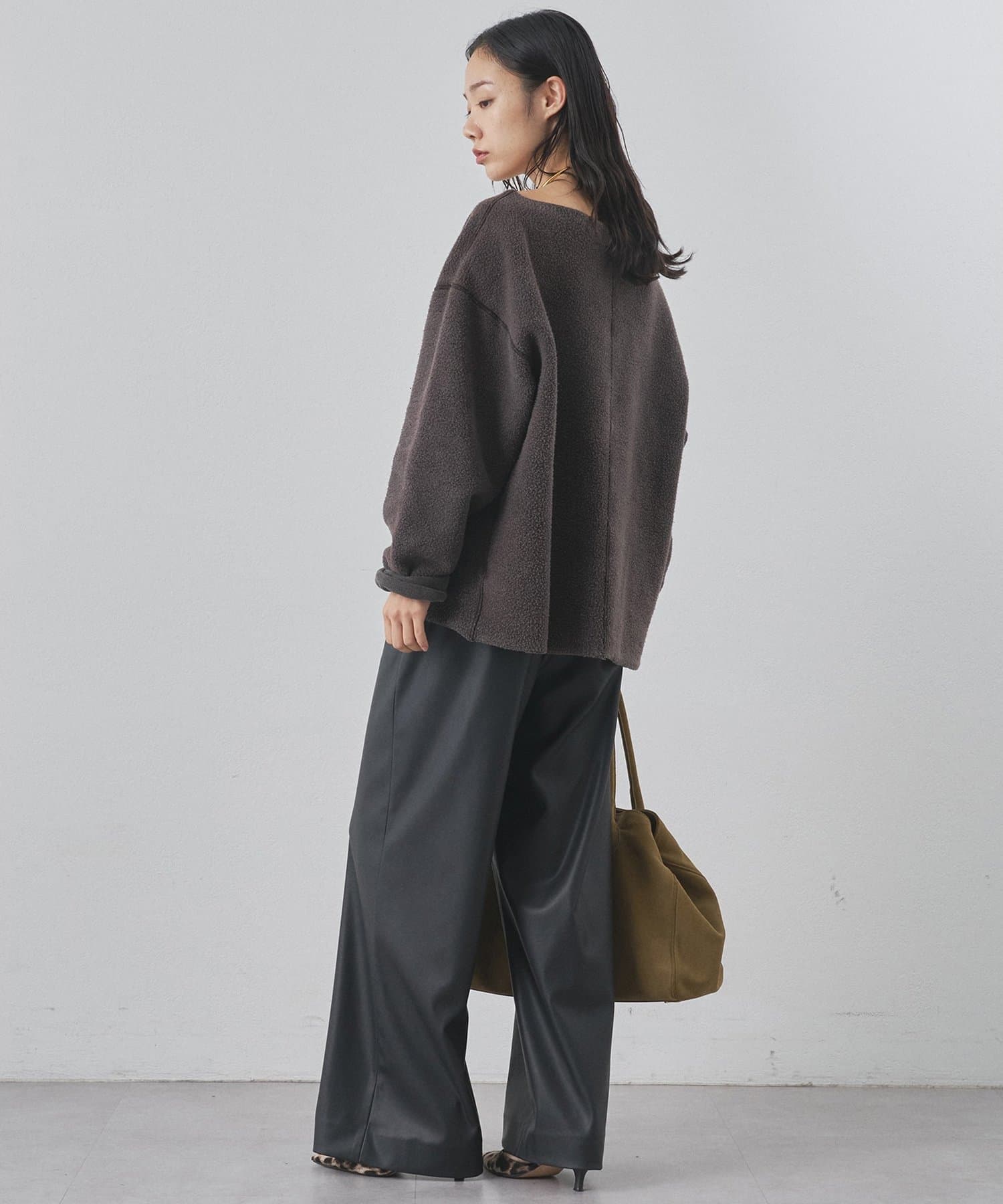 ■ゆったりとしたオーバーシルエットとボートネックが、リラックス感のある大人カジュアルを演出。