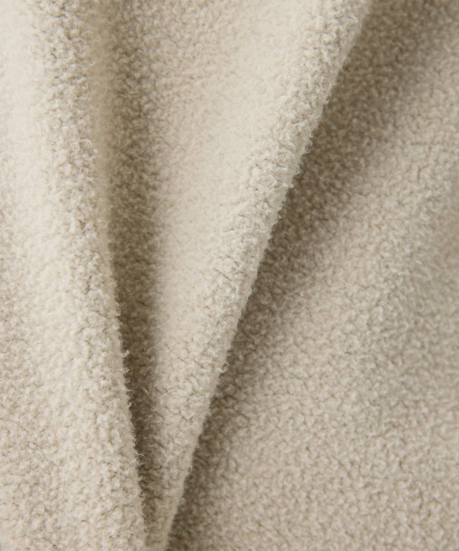 ■製品染めによるナチュラルなフェード感と、起毛面のモコモコとした表情が魅力。